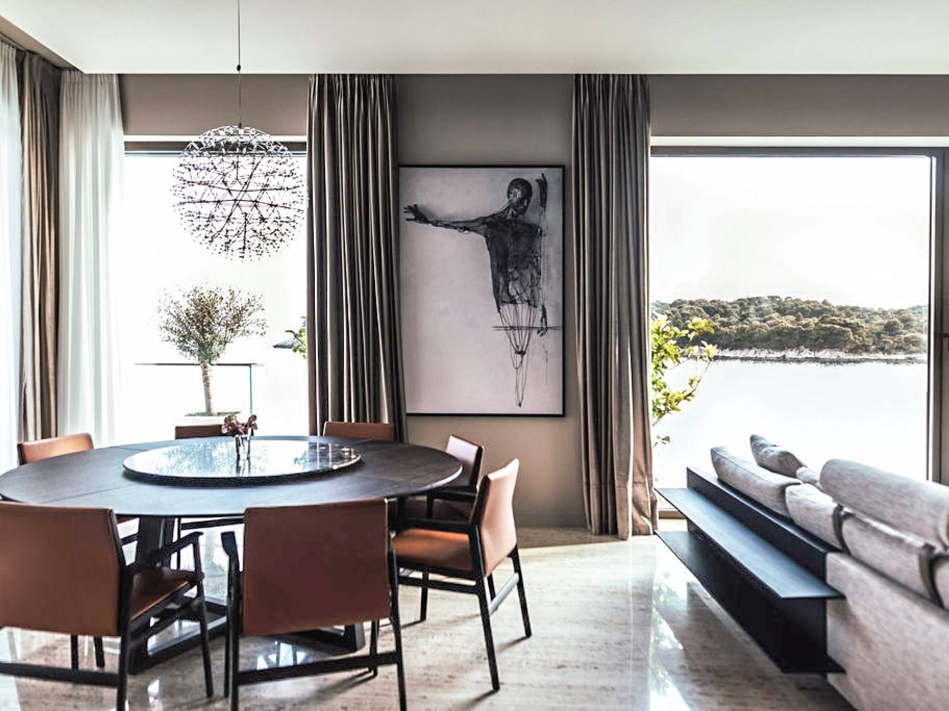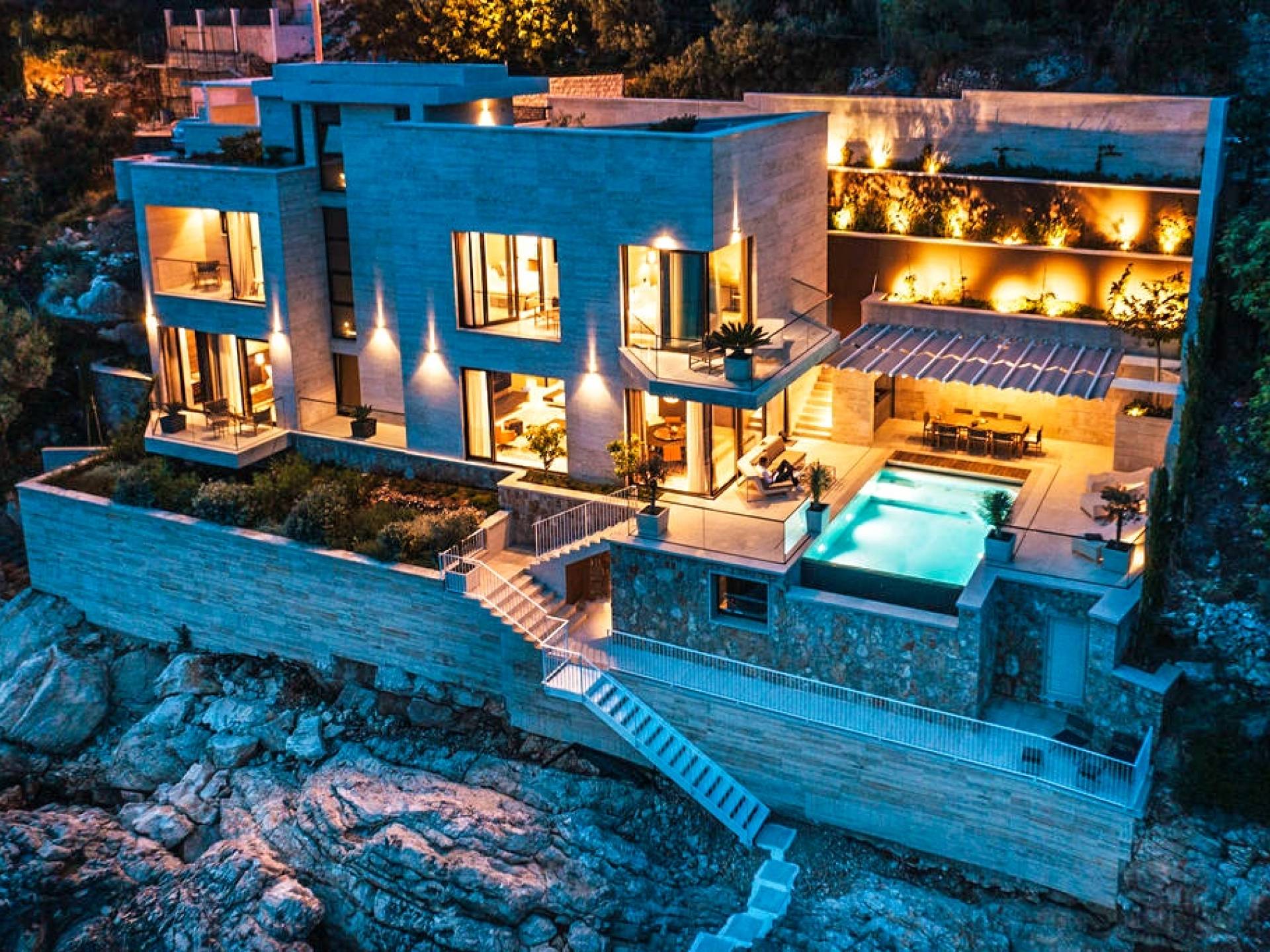 Des vues fascinantes dans toute la villa et des lumières naturelles donnent une sensation de détente en plein air de passer du temps au soleil toute la journée. La cuisine spacieuse et moderne est entièrement équipée pour préparer diverses spécialités qui peuvent être dégustées dans la salle à manger formelle. La cuisine spacieuse et moderne est entièrement équipée pour préparer diverses spécialités qui peuvent être dégustées dans la salle à manger formelle. Le salon dispose d'un mobilier de conception moderne idéal pour le temps à l'intérieur en cas de besoin. Les soirées barbecue d'été peuvent être servies dans la salle à manger en plein air installée à côté de la piscine à débordement surplombant toutes les nuances de bleu de l'Adriatique.