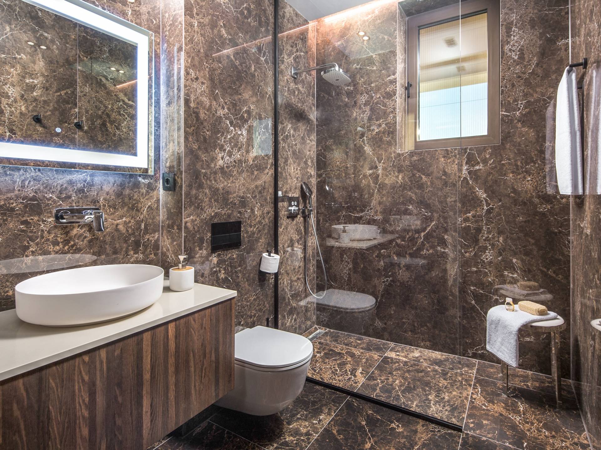 Il y a une buanderie séparée avec une laveuse et une sécheuse et un fer et une planche à repasser. Un lit bébé et une chaise haute sont également disponibles sur demande. La chambre principale comprend un lit king-size, une salle de bains privative avec baignoire et douche indépendante, un dressing, une télévision, un coffre-fort et une vue sur la mer. Deux autres chambres sont équipées d'un lit king-size, d'une salle de bains privative avec douche indépendante, d'une télévision, d'un coffre-fort et d'une vue sur la mer. La quatrième chambre a deux lits jumeaux, une salle de bain attenante avec une douche indépendante, une télévision, un coffre-fort et une vue sur la mer. La cinquième chambre dispose d'un lit queen-size, d'une salle de bain attenante avec une douche indépendante, d'une télévision et d'un coffre-fort.