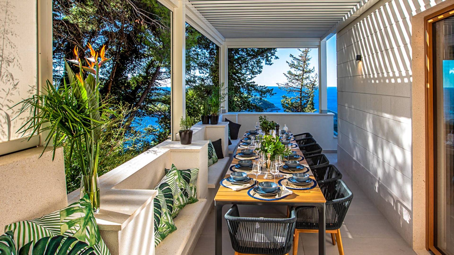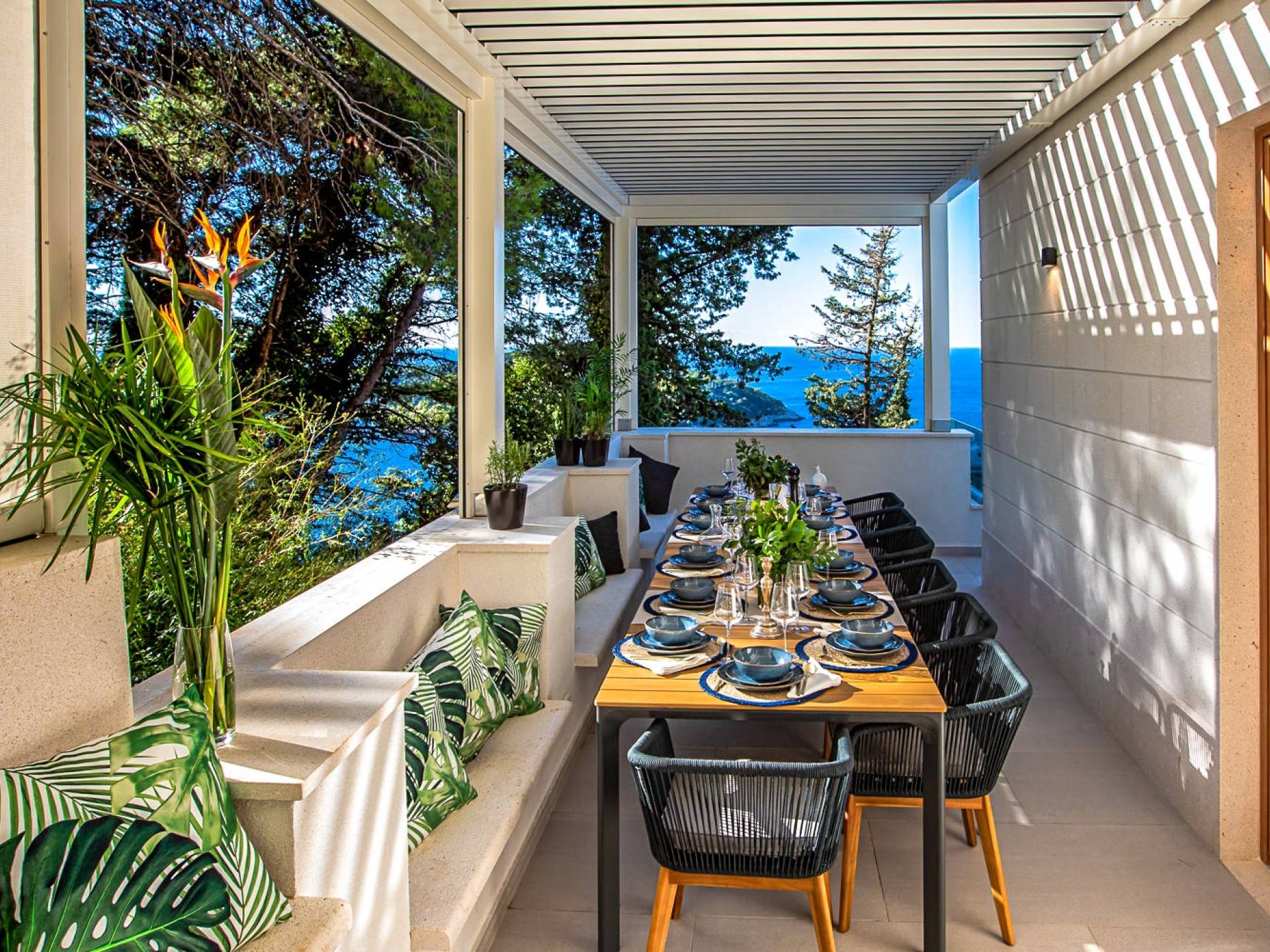 Avec une vue magnifique sur Dubrovnik depuis son emplacement à flanc de colline en bord de mer et à quelques pas de la vieille ville, il s'agit d'une villa de luxe chic et joyeuse en Croatie, une merveilleuse pièce unique. Villa Exclusive Dubrovnik offre une retraite de vacances paisible et exclusive pour les couples et les familles. Donnant sur les arbres et les toits en terre cuite jusqu'à la mer, la Villa Exclusive Dubrovnik semble, de l'extérieur, être une maison de ville traditionnelle, typique de la ville. Alors ses intérieurs chics et contemporains surprennent.