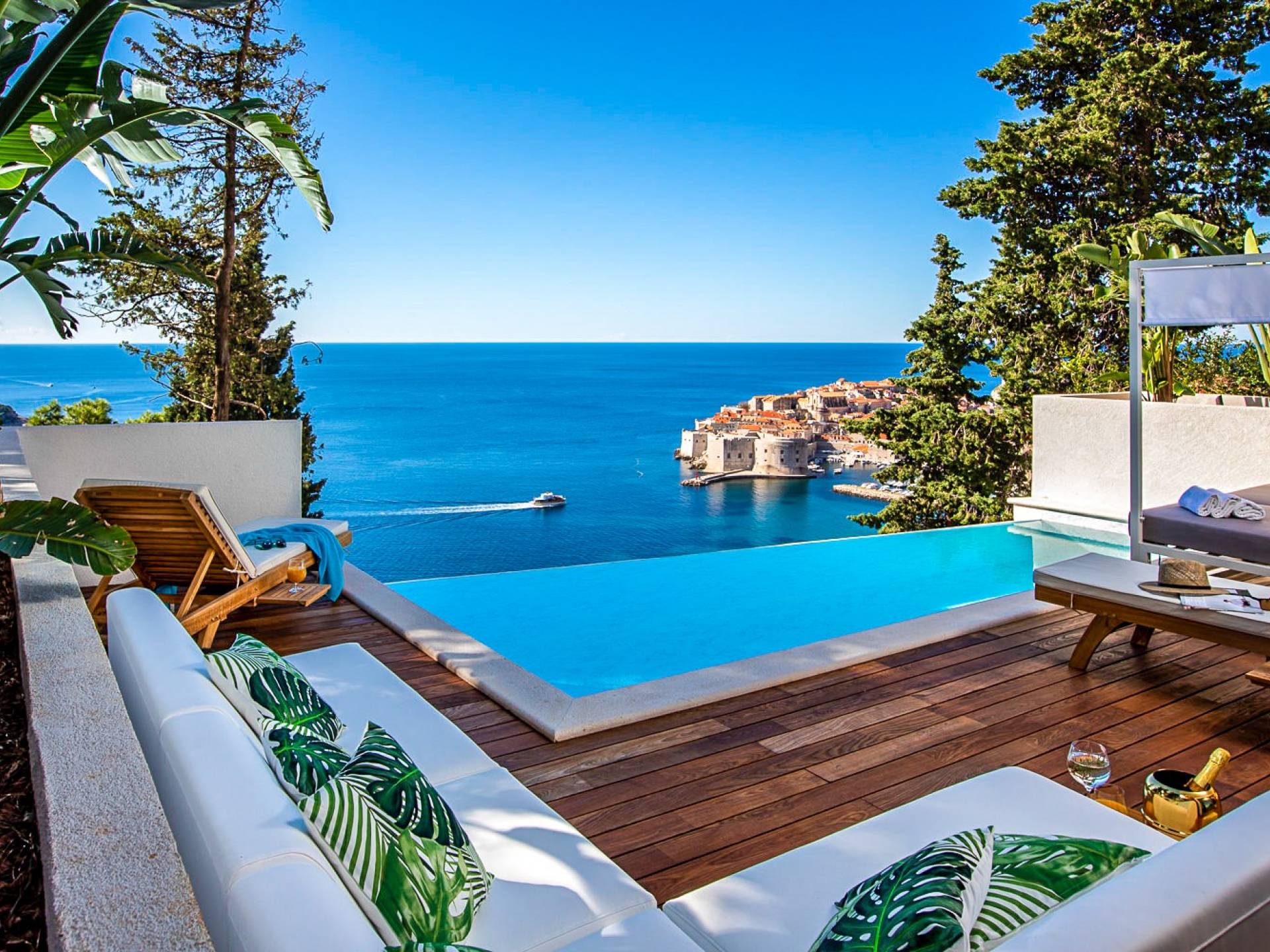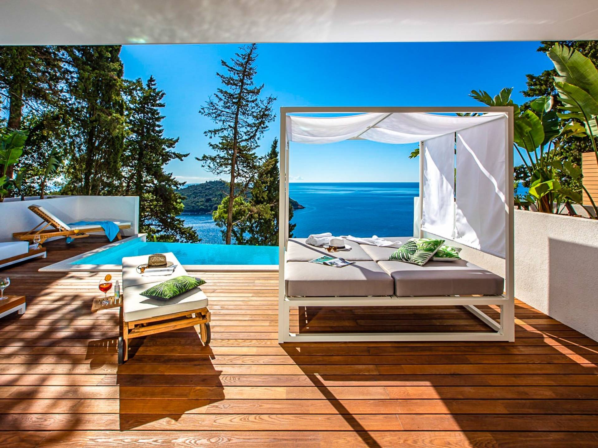 Tout cela est à quelques pas de la vieille ville animée de Dubrovnik, de toute l'animation et des commodités de l'une des destinations les plus populaires d'Europe. Quiconque a des aspirations de premier plan doit voir ses impressionnants remparts et observer les gens, un cocktail à la main, ou se promener sur la plage de galets de Banje. Voici des vacances où chaque jour est le jour qui restera avec vous, longtemps après la disparition du bronzage.
