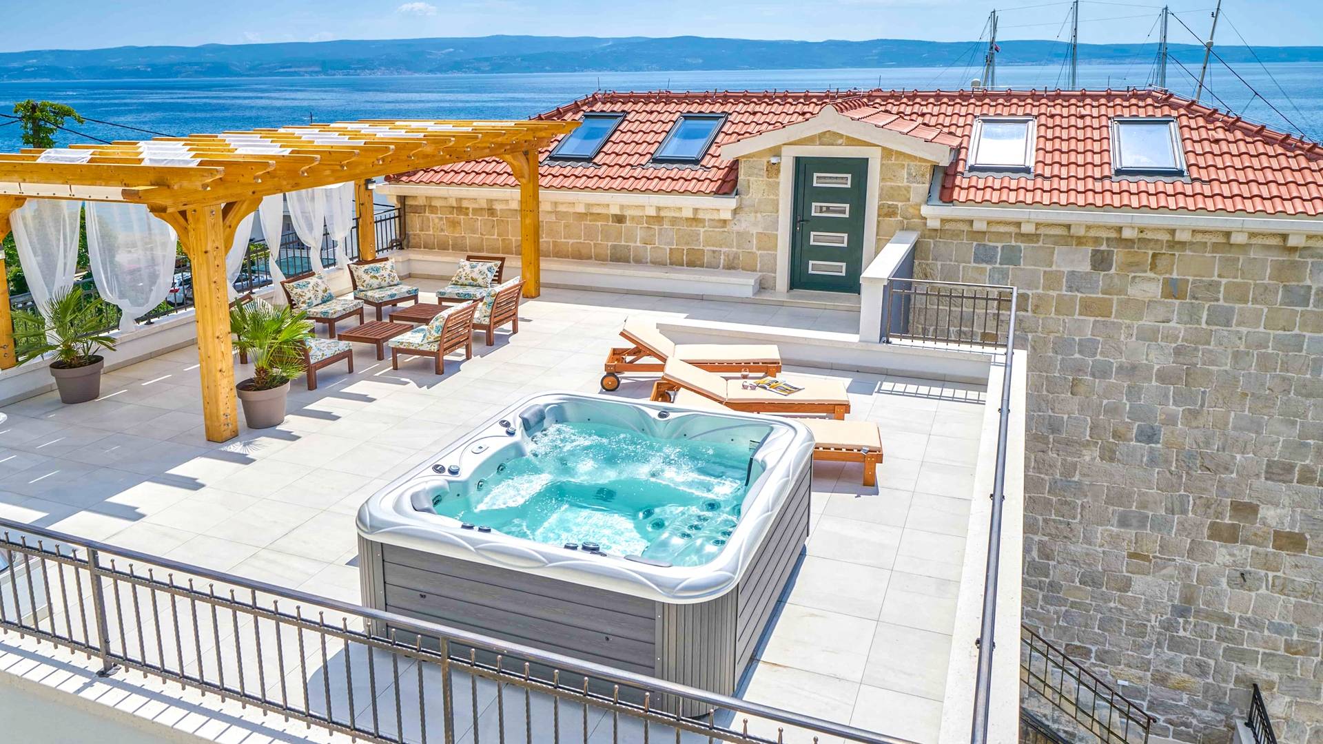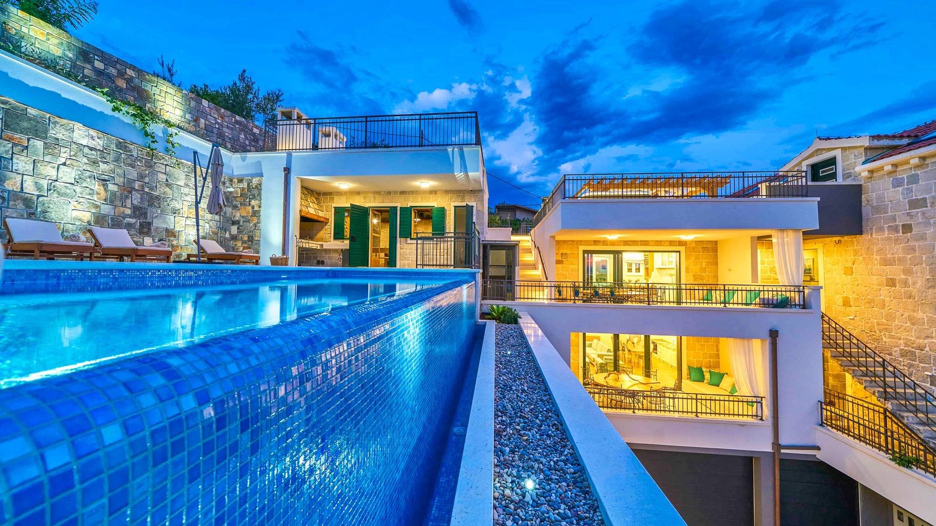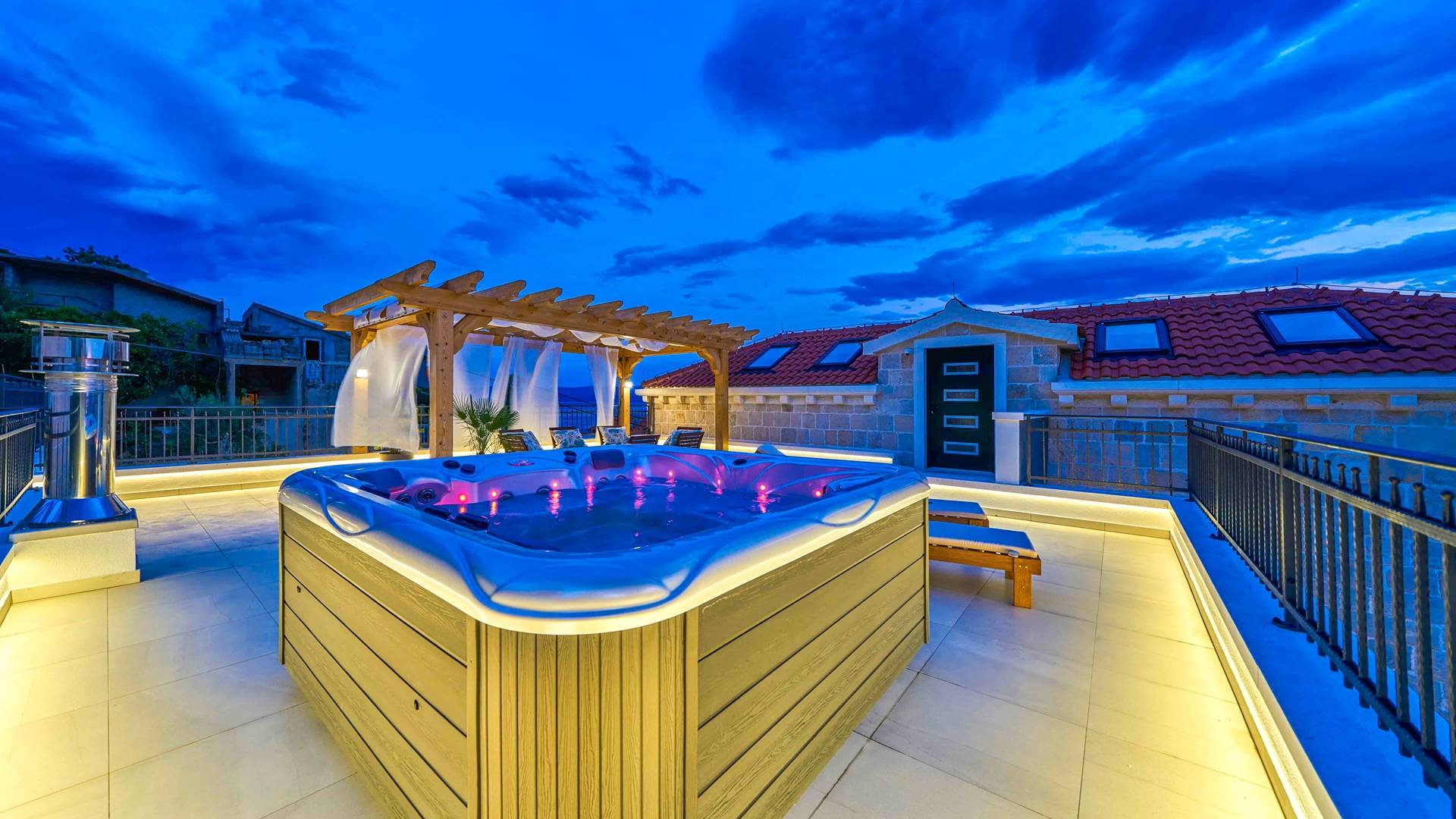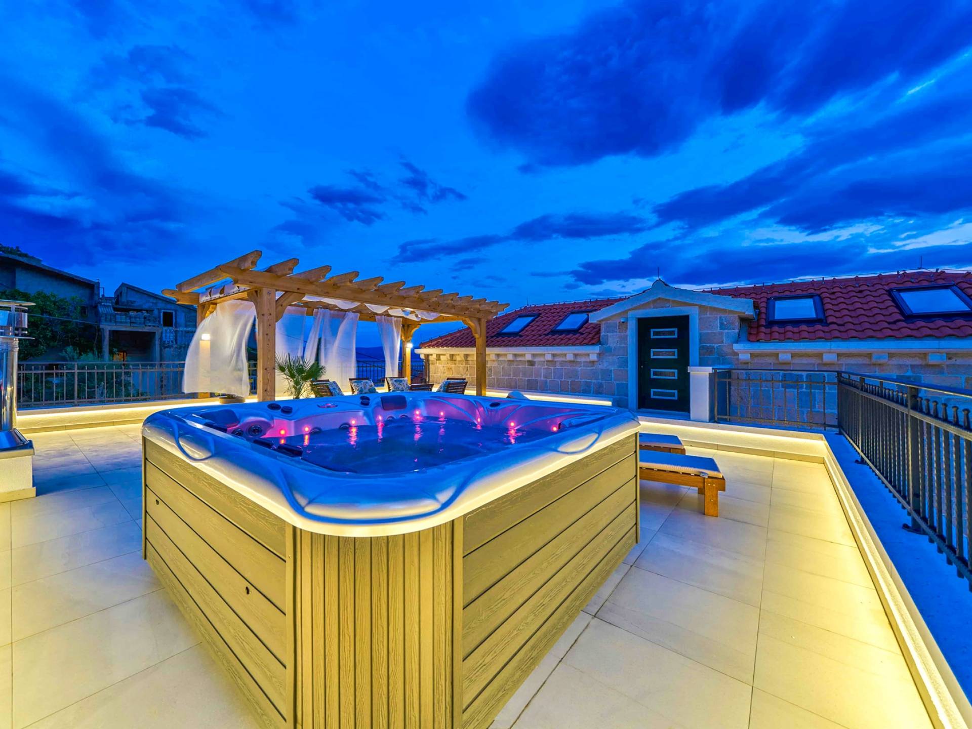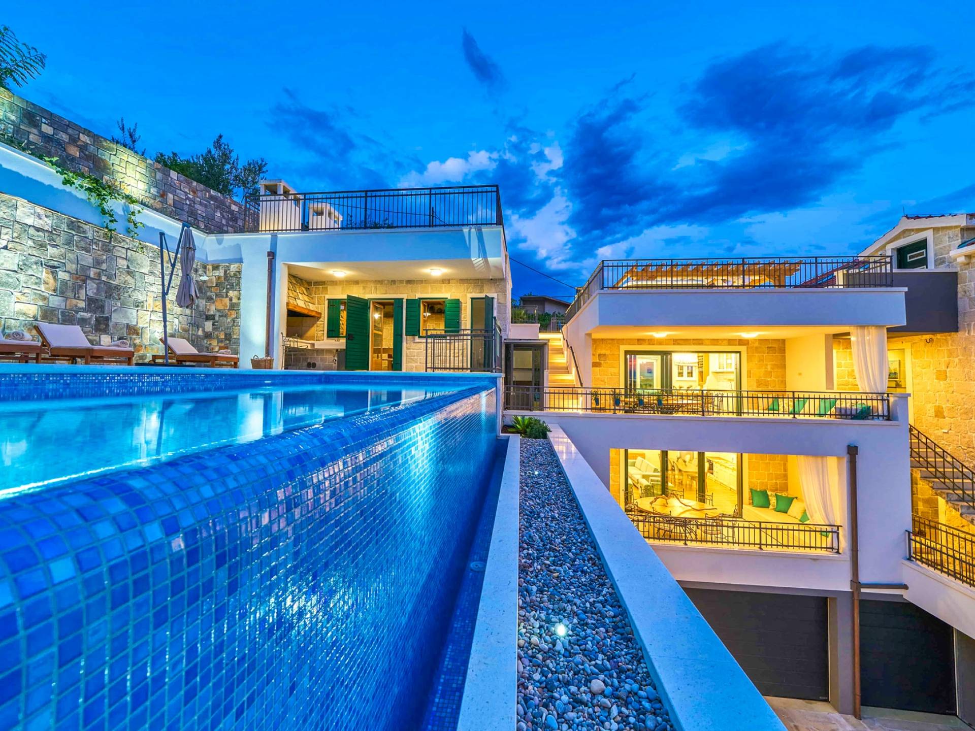 Magnifiquement conçu, meublé au plus haut niveau, présente une sélection parfaite pour des vacances en famille, des groupes de jeunes dans un environnement privé à proximité d'une belle plage. La Villa Mladenka Split dispose d'une piscine à débordement extérieure chauffée, d'un jacuzzi sur le toit pour 6 personnes, d'une salle de sport avec sauna, d'une aire de jeux et d'un intérieur moderne qui propose un hébergement équipé de luxe, 6 chambres avec salle de bains privative, pour un maximum de 12 personnes. La villa dispose de quatre cheminées, du chauffage au sol et de la climatisation complète, garantissant ainsi un hébergement confortable tout au long de l'année.