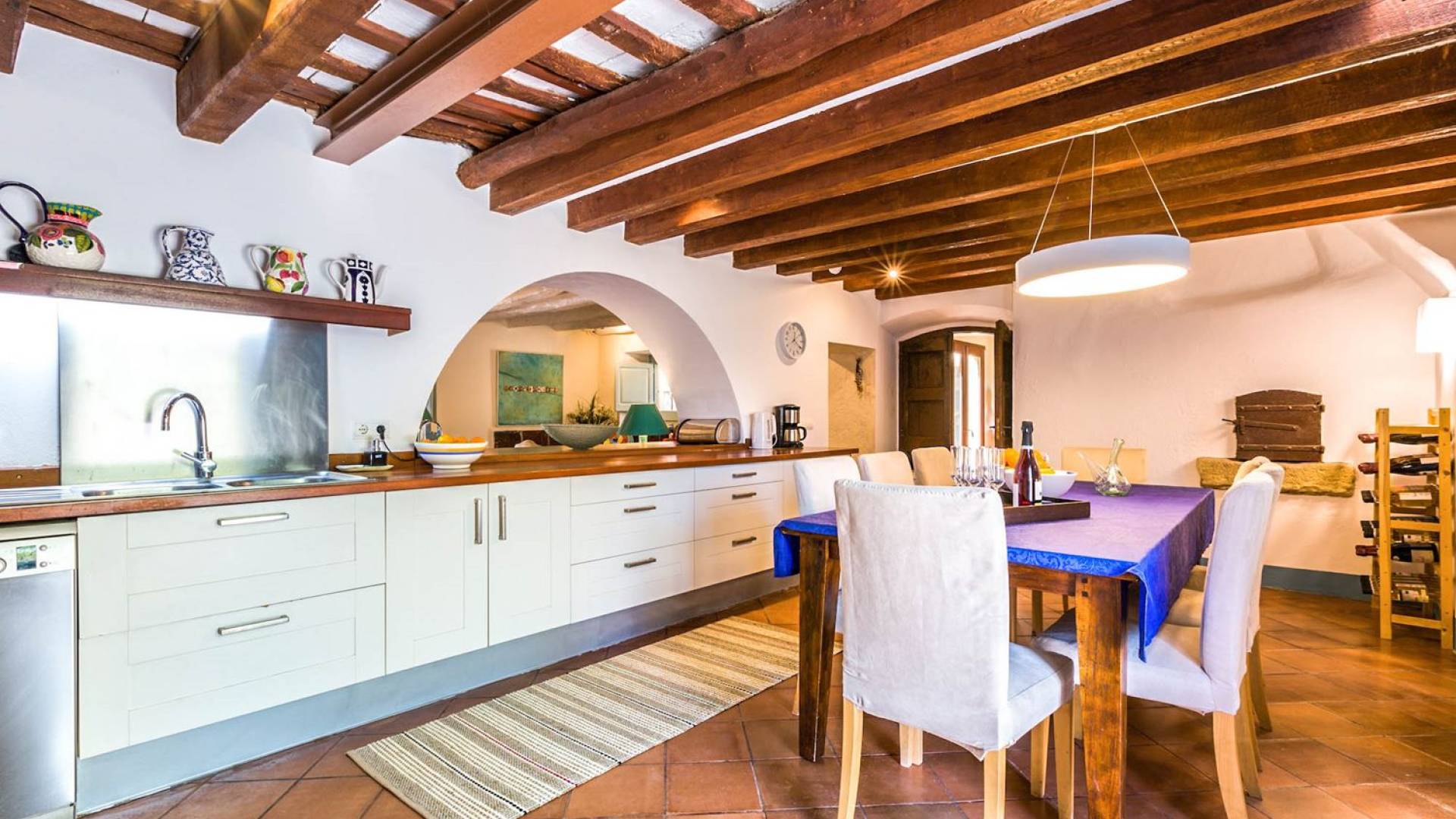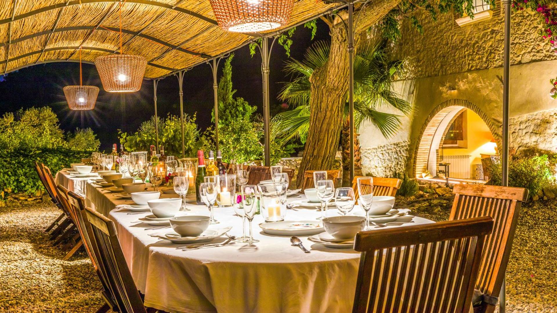Salles à manger : avec deux salles à manger, Can Marcer dispose de beaucoup d'espace pour que les grands groupes de vacances puissent tous s'asseoir ensemble. Une salle à manger peut accueillir 12 personnes et l'autre environ 26 convives. Pour les repas en plein air de nuit comme de jour, les tables couvertes de pergola peuvent accueillir plus de 26 personnes et offrent un bel espace ombragé et protégé pour dîner avec une vue magnifique sur le parc naturel du Garraf et les vignobles en face. Des radiateurs extérieurs sont également disponibles à la location pour les repas en plein air pendant les mois les plus froids.