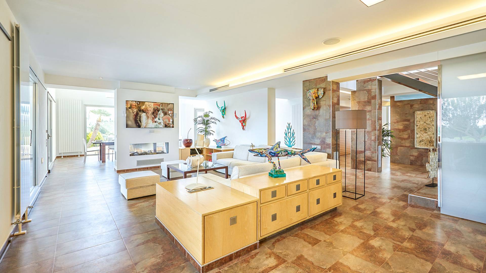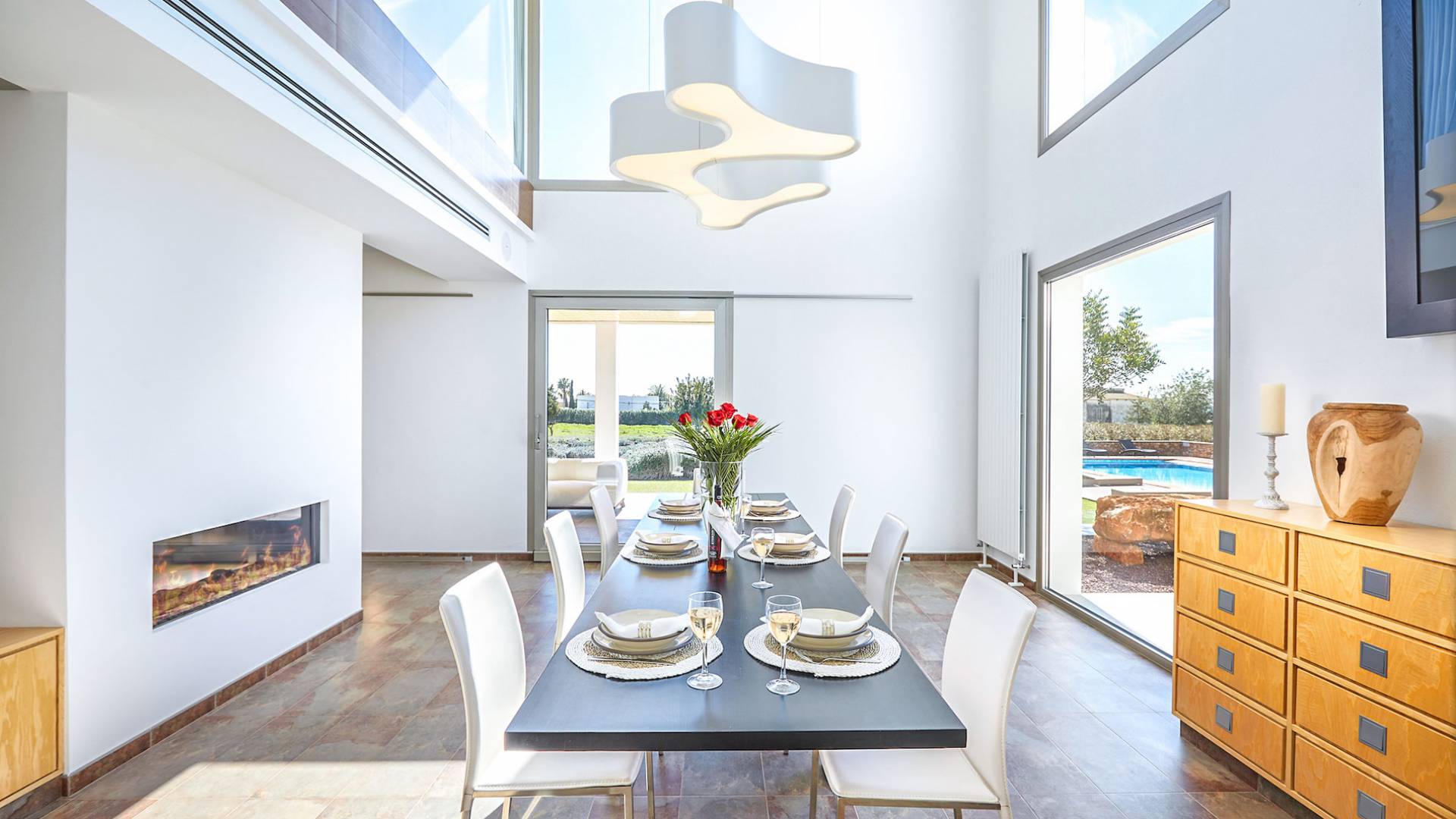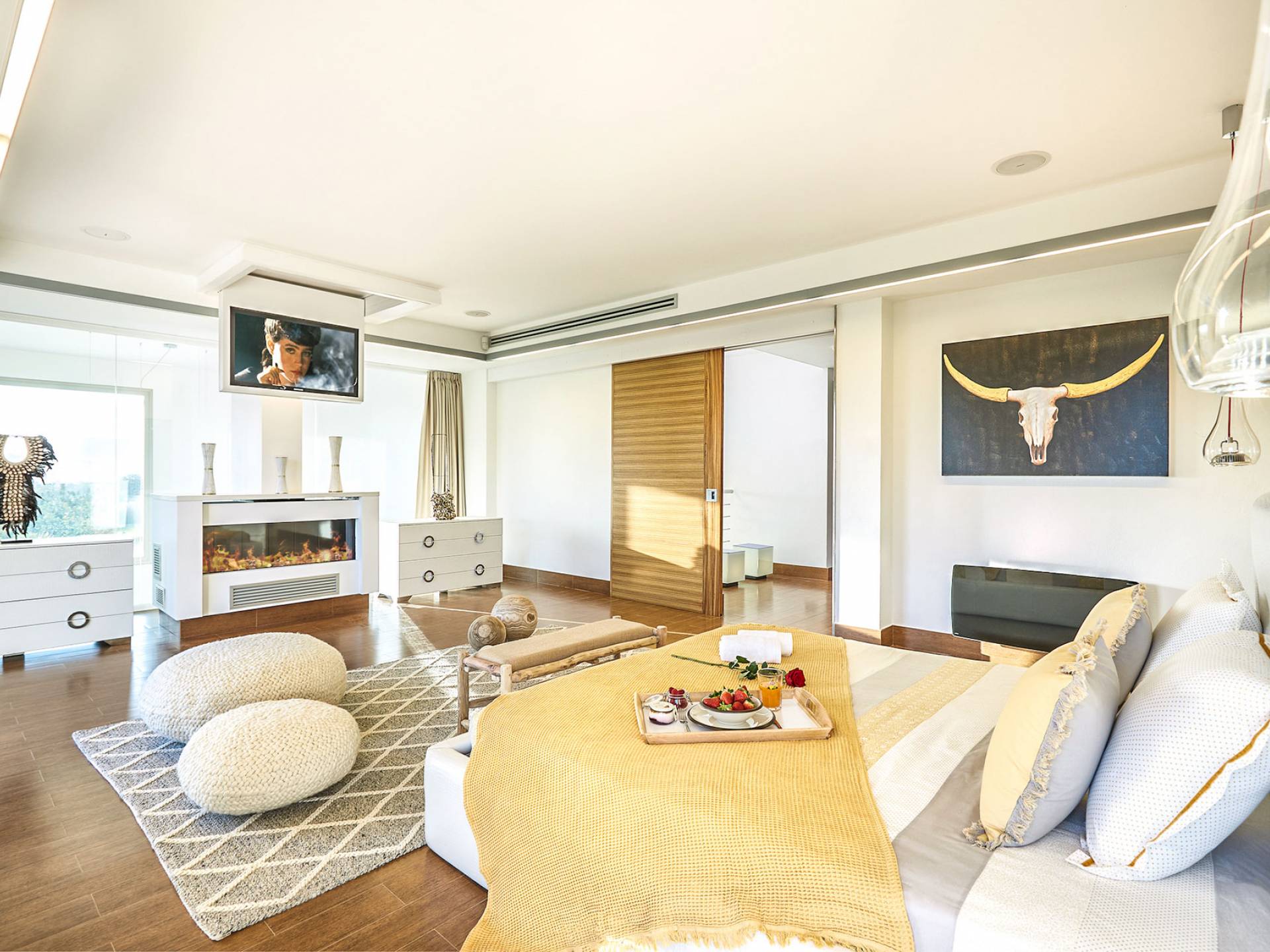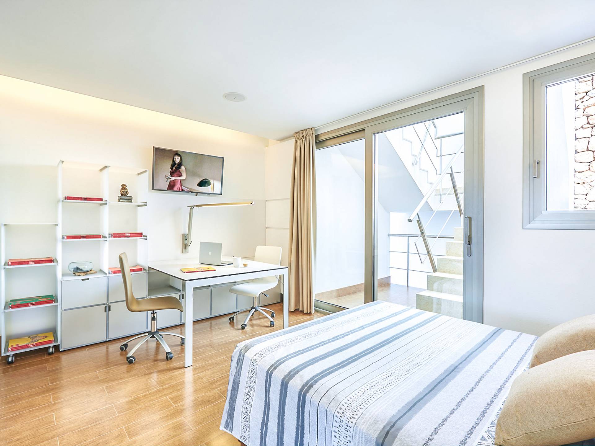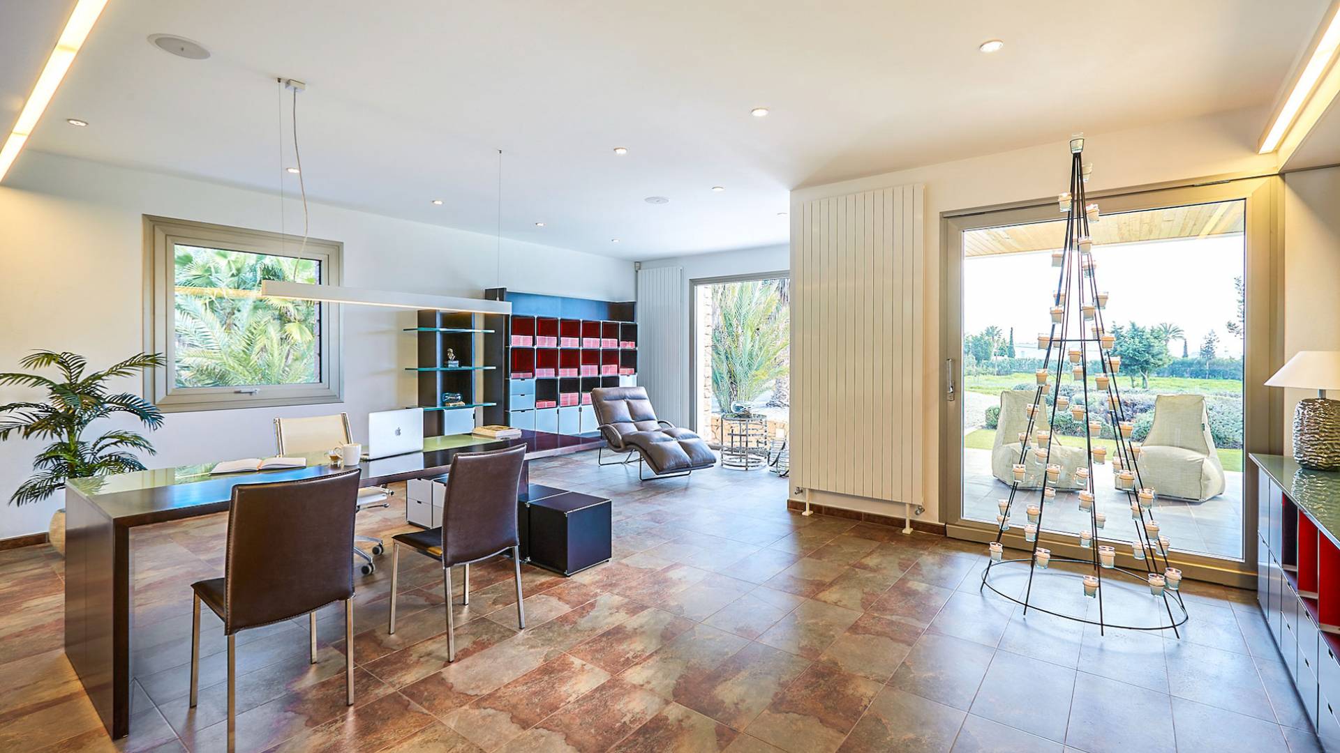 Les espaces de vie de la Villa Can Mia sont lumineux, décloisonnés et magnifiquement conçus. Le coin salon dispose de canapés confortables, ainsi que d'une grande télévision à écran plasma et d'une cheminée. La cheminée sépare le salon de la salle à manger attenante, qui contient une grande table avec une vue fantastique sur le jardin et la piscine. La cuisine design contient tout le matériel de cuisson nécessaire pour les plats préparés, comme un four vitrocéramique, une plaque de cuisson, un évier double, un four micro-ondes, un lave-vaisselle et des petits appareils de cuisine, comme un grille-pain et une machine à café. La Villa Can Mia dispose également d'un bar moderne de style petit-déjeuner et d'une table avec quatre chaises pour vous permettre de profiter de votre déjeuner sans avoir à quitter la cuisine. La buanderie est entièrement équipée avec des appareils de lavage et de séchage et il y a une salle de bain complète pour les invités au rez-de-chaussée.