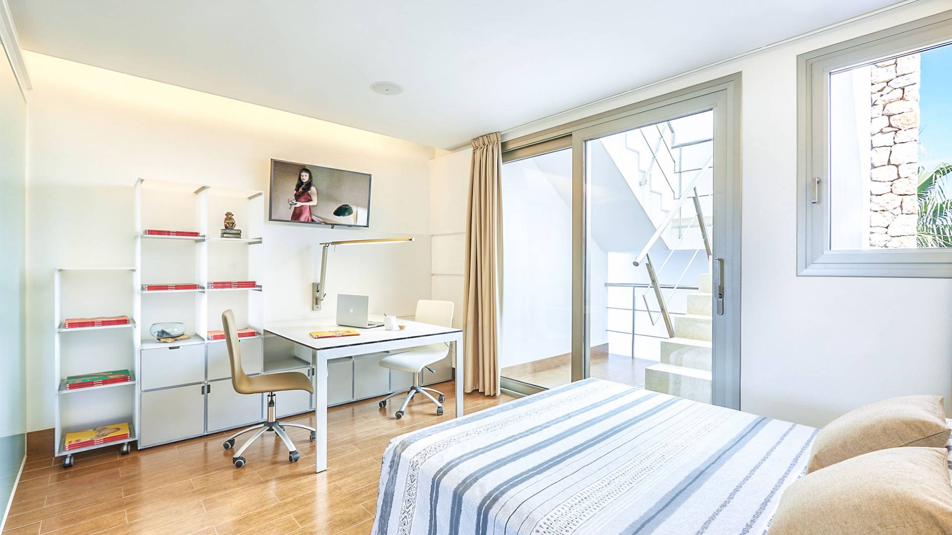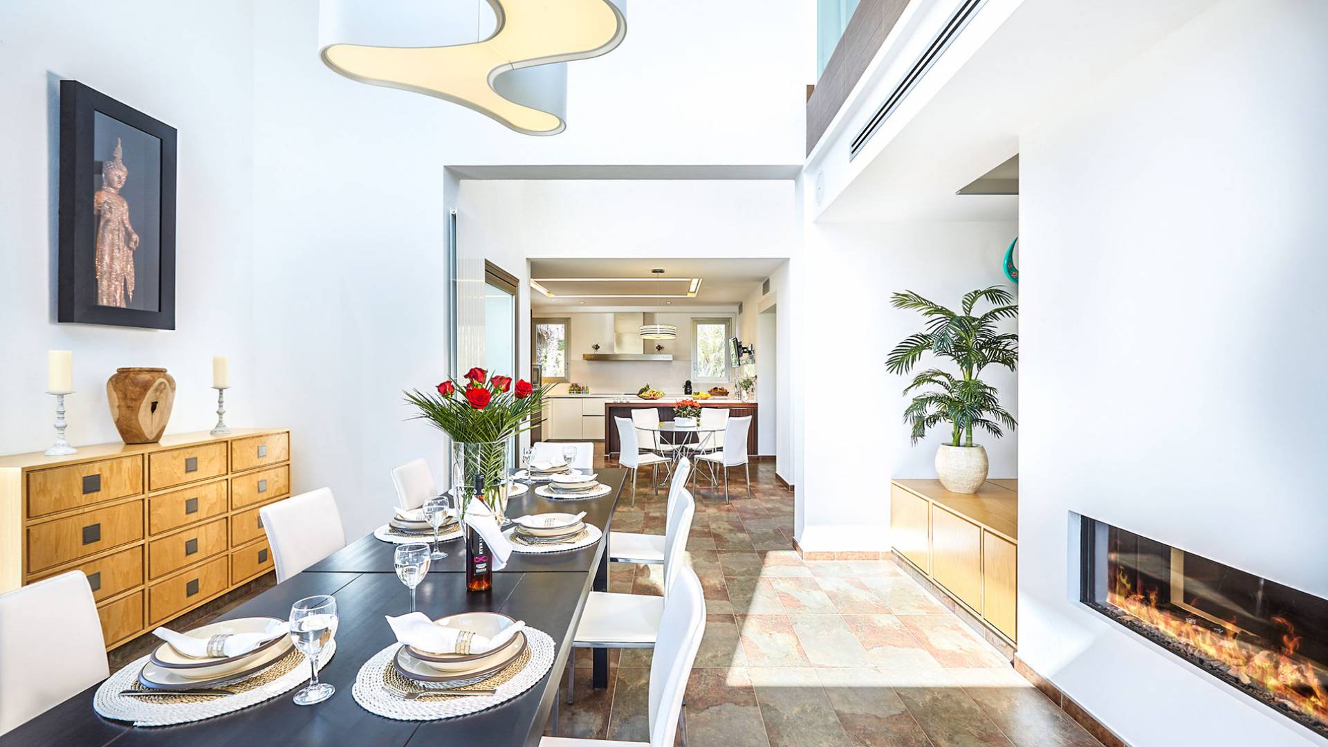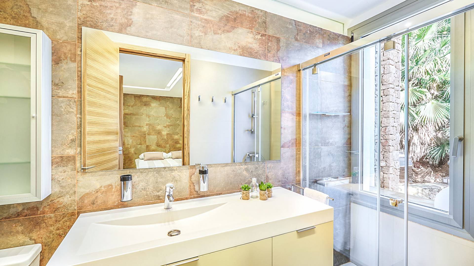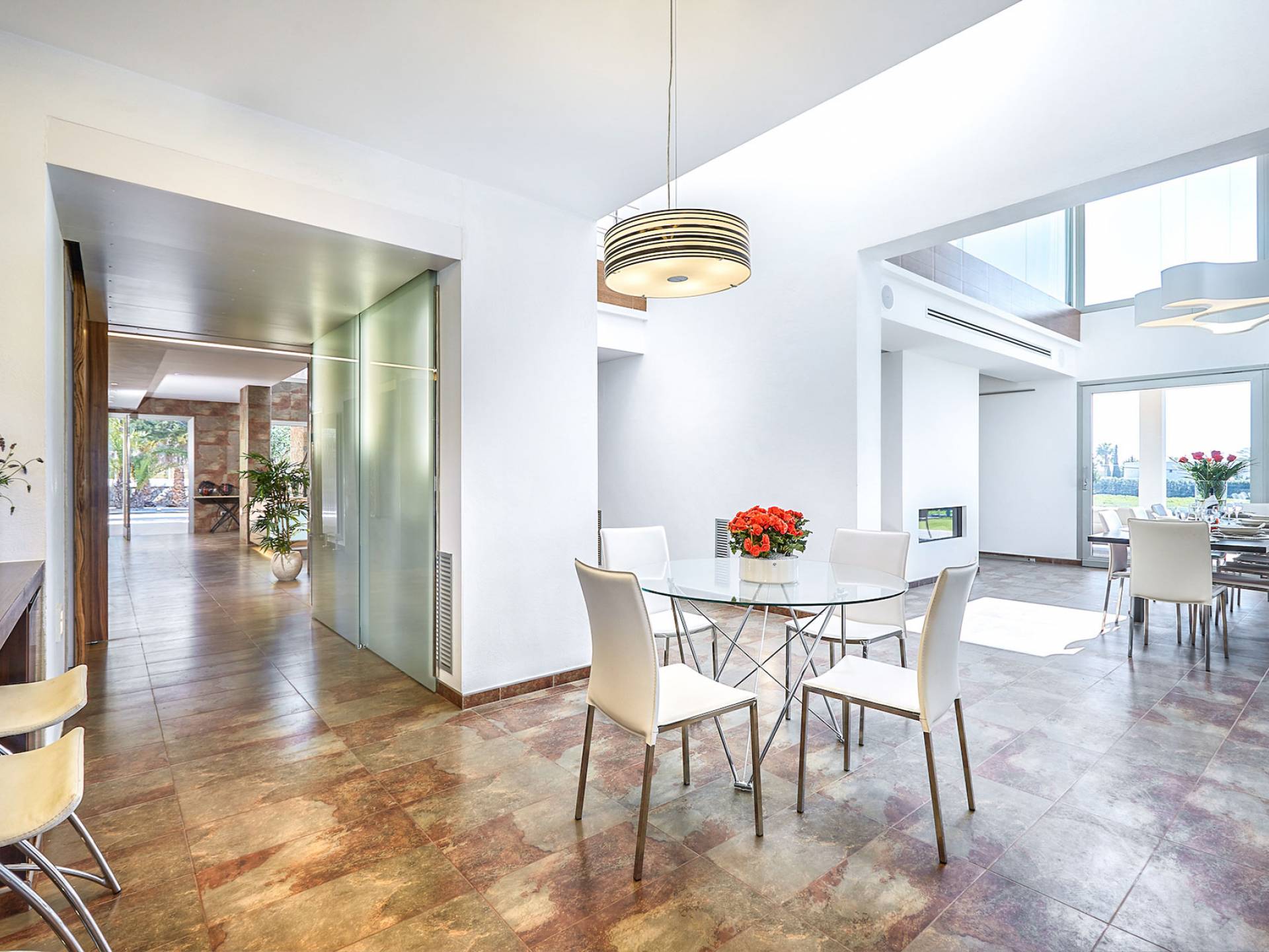 Les espaces de vie de la Villa Can Mia sont lumineux, décloisonnés et magnifiquement conçus. Le coin salon dispose de canapés confortables, ainsi que d'une grande télévision à écran plasma et d'une cheminée. La cheminée sépare le salon de la salle à manger attenante, qui contient une grande table avec une vue fantastique sur le jardin et la piscine. La cuisine design contient tout le matériel de cuisson nécessaire pour les plats préparés, comme un four vitrocéramique, une plaque de cuisson, un évier double, un four micro-ondes, un lave-vaisselle et des petits appareils de cuisine, comme un grille-pain et une machine à café. La Villa Can Mia dispose également d'un bar moderne de style petit-déjeuner et d'une table avec quatre chaises pour vous permettre de profiter de votre déjeuner sans avoir à quitter la cuisine. La buanderie est entièrement équipée avec des appareils de lavage et de séchage et il y a une salle de bain complète pour les invités au rez-de-chaussée.