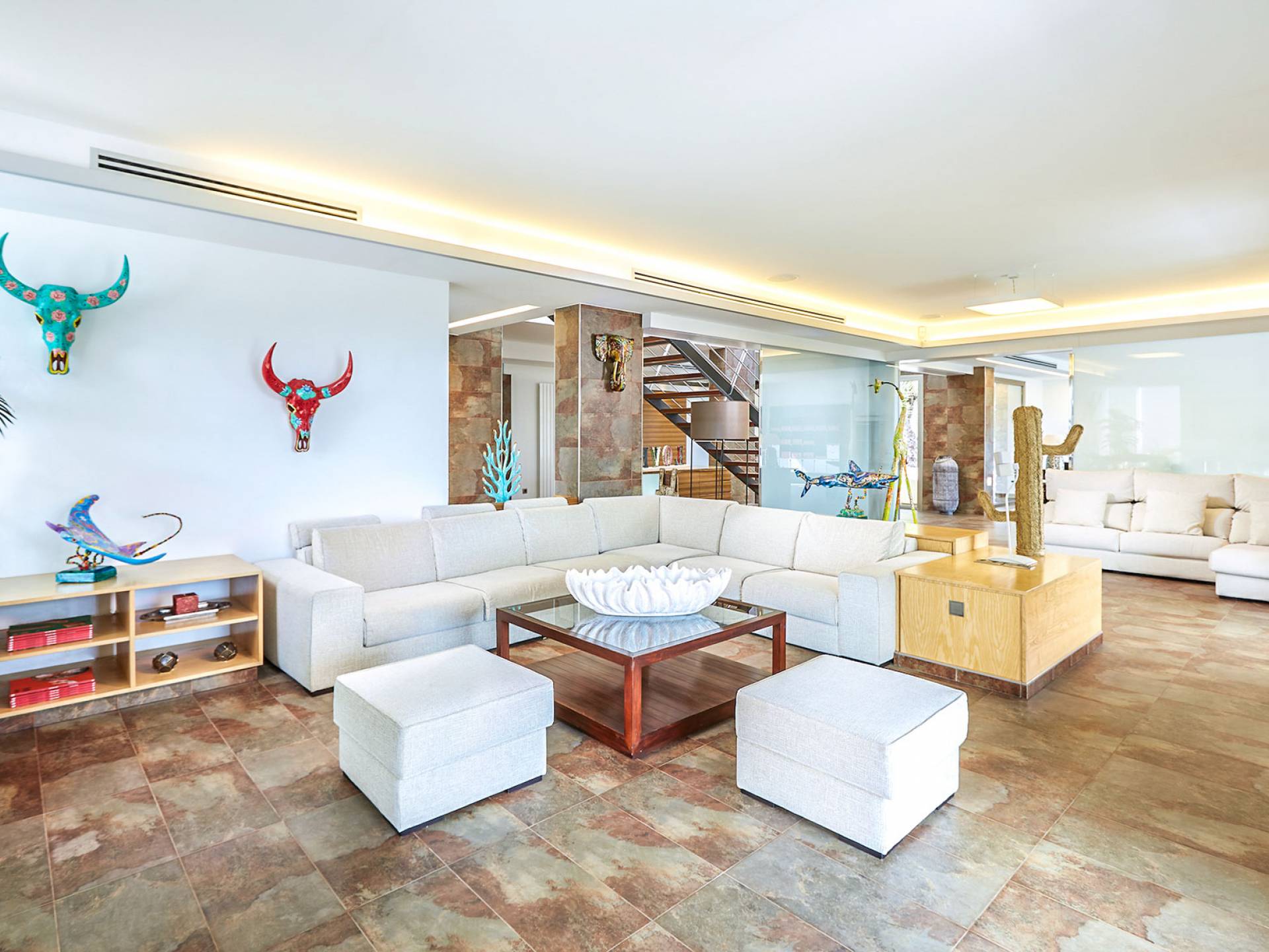 Villa Can Mia Ibiza est une toute nouvelle villa impressionnante et luxueuse qui respire l'essence pure d'Ibiza. Situé dans un quartier calme à proximité de Jésus, il s'agit d'une propriété spacieuse au design époustouflant avec une décoration minimaliste - la Villa Can Mia Ibiza garantit à ses clients un séjour et une expérience inoubliables. La propriété a des portes privées et est entièrement clôturée pour garantir l'intimité des clients, l'allée vers la maison est bordée d'énormes palmiers avec des jardins luxuriants et des pelouses au-delà. Derrière la villa, il y a un espace pour garer jusqu'à six véhicules à l'extérieur ou il y a un parking intérieur avec de la place pour encore plus de voitures.