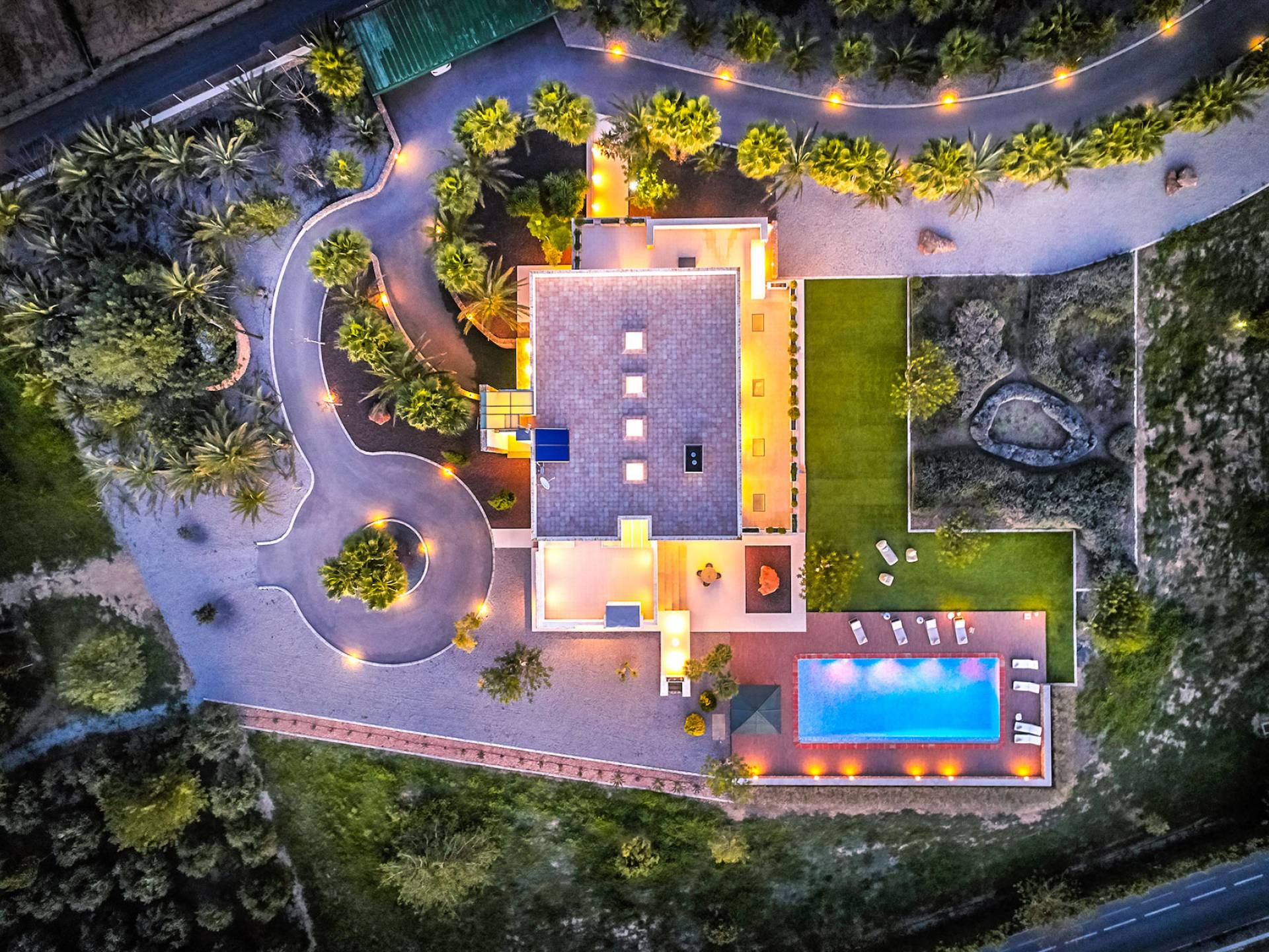 L'environnement extérieur spacieux offre de nombreuses fonctionnalités, des luxueuses chaises longues entourant une immense piscine à un porche joliment meublé avec télévision pour les divertissements en plein air, ainsi qu'une cuisine extérieure entièrement équipée. La cuisine extérieure couverte dispose d'un coin barbecue et est équipée de deux grands réfrigérateurs, d'un congélateur, d'un coin paella et d'un coin repas. Cet espace contient également une salle de bain extérieure avec douche qui dessert à la fois l'espace barbecue et les espaces extérieurs, parfait pour tous ceux qui ont besoin d'une douche après avoir utilisé la piscine. Depuis la cuisine extérieure, il y a un accès direct à une zone de détente et au magnifique jardin de plus de 10 000 mètres carrés.