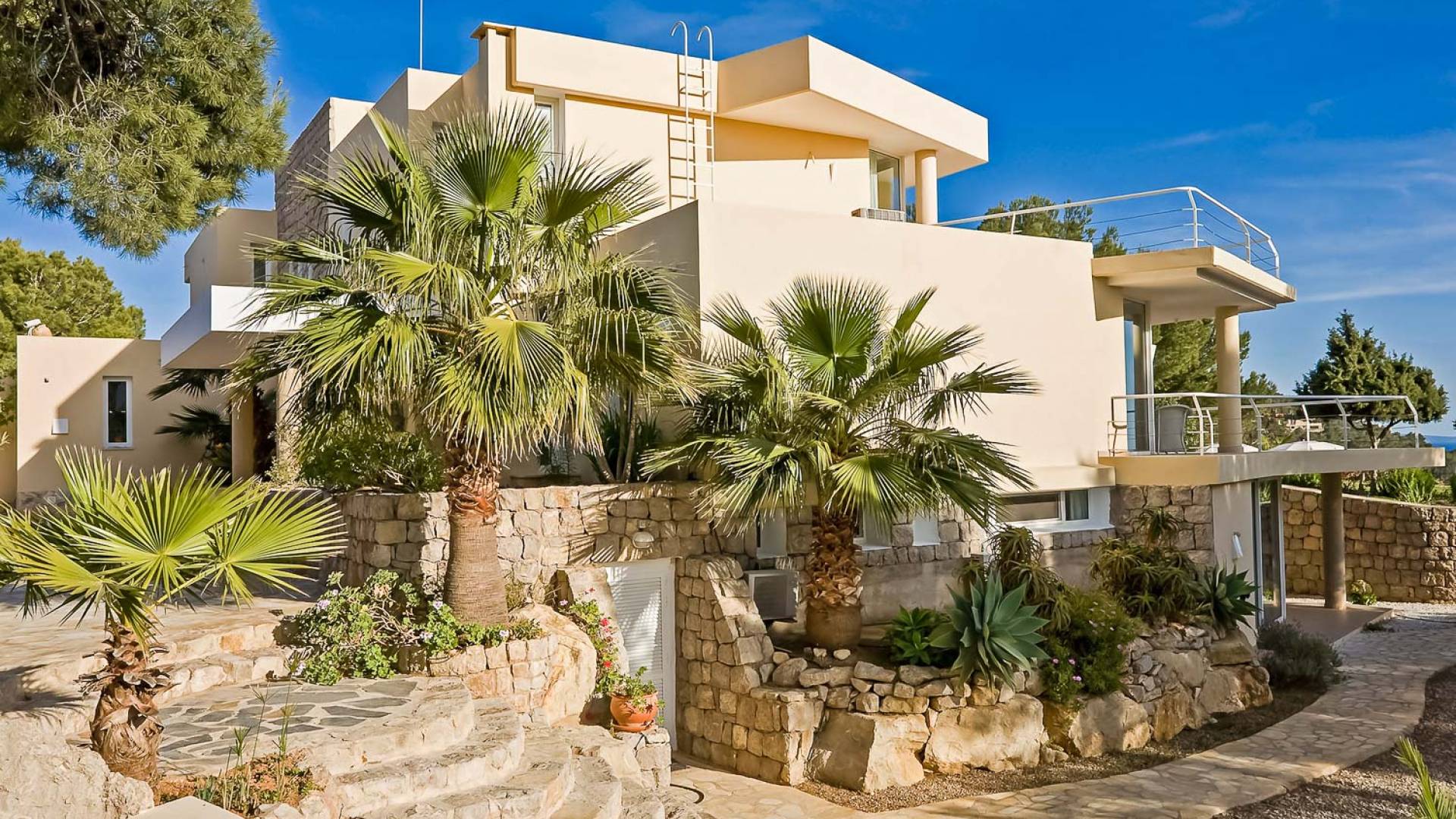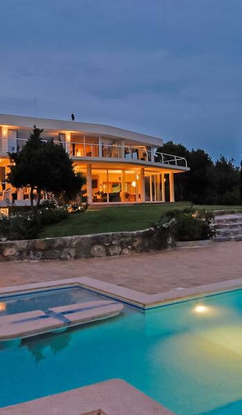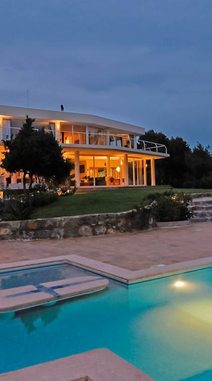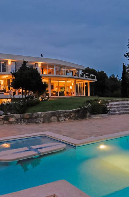 Cet incroyable, luxueux et moderne Vista S'Estanyol Ibiza est situé dans les collines isolées derrière Talamanca. Il est superbement situé avec une vue spectaculaire sur la mer surplombant la baie de S'Estanyol.