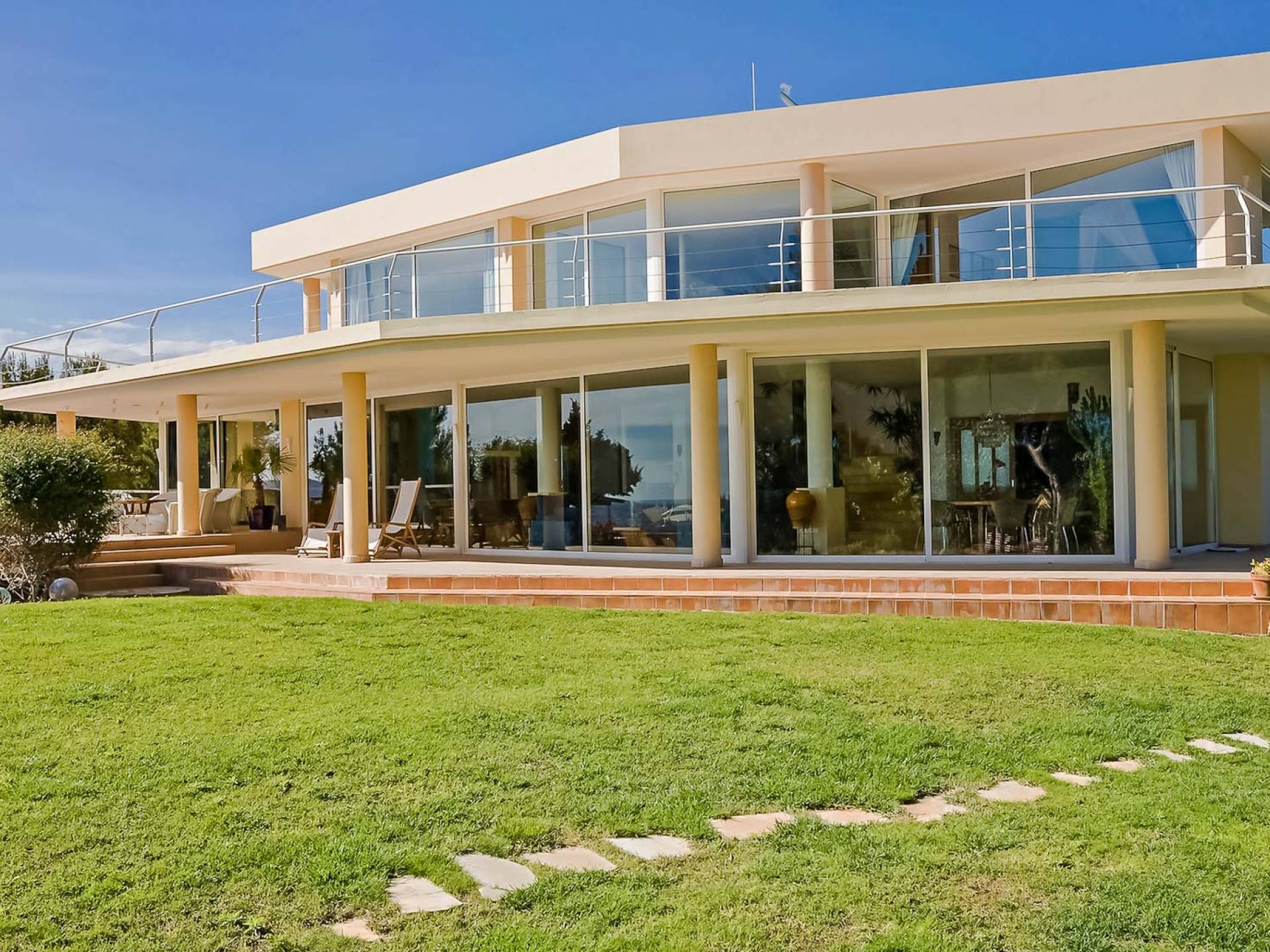 Vista S'Estanyol Ibiza est une location de luxe avec 6 chambres et privée piscine. Vista S'Estanyol Ibiza est situé dans Îles d'Ibiza, Ibiza. Consultez les photos, les tarifs et les informations ici.