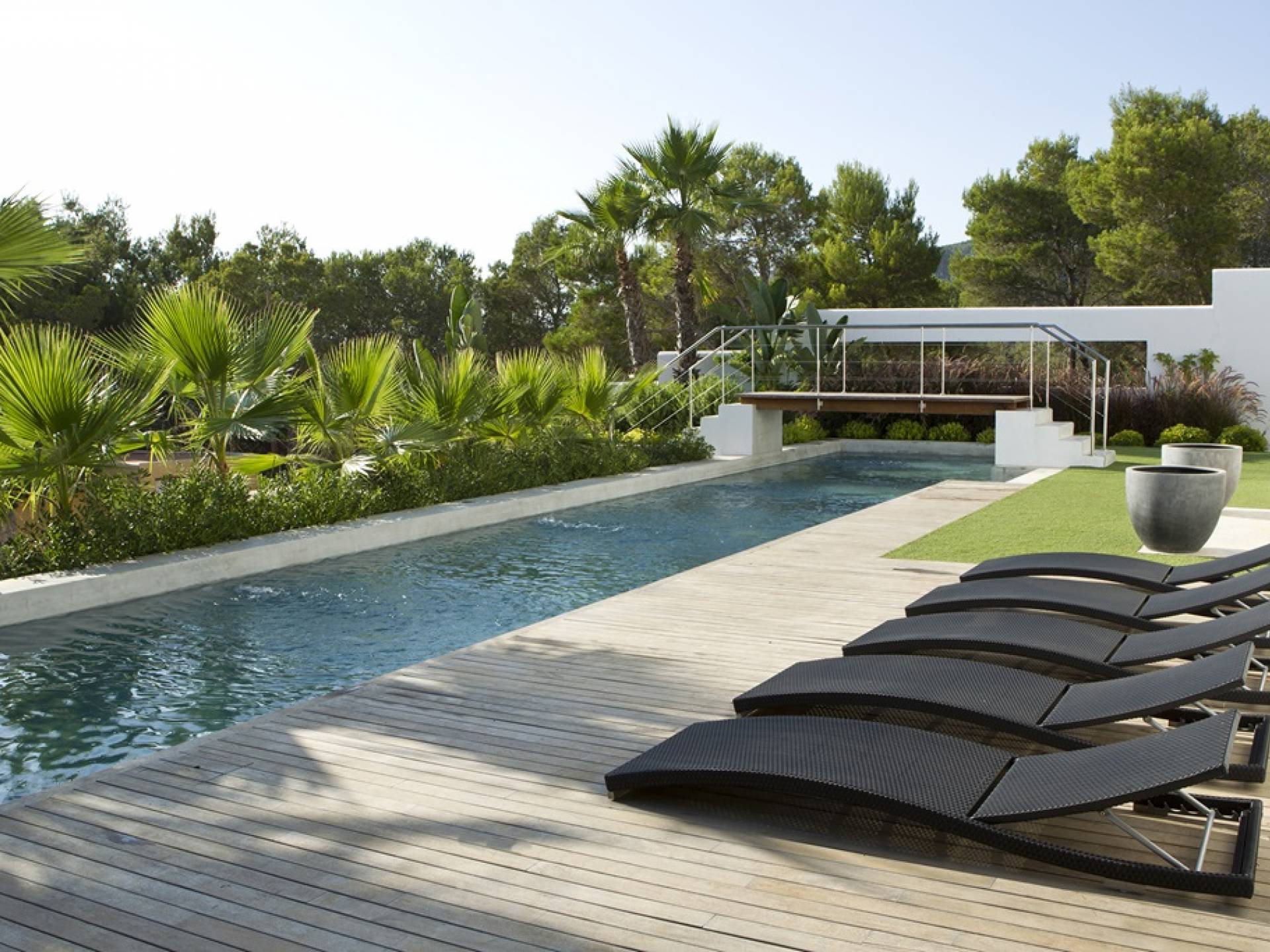Cala Salada Deluxe Villa propose deux piscines, chacune donnant sur des vues panoramiques incroyables sur la mer, la campagne environnante et la plage. C'est l'endroit idéal pour ceux qui recherchent la tranquillité, profitent des célèbres couchers de soleil d'Ibiza, tout en n'étant pas trop loin des quartiers populaires les plus animés de l'île. Les piscines sont spacieuses et dotées de chaises longues luxueuses, une piscine (15 mx 4 m) dispose d'un vélo aquatique, d'un marchepied et d'une passerelle, tandis que l'autre est une piscine à débordement (4 m x 8 m) avec une vue à couper le souffle. La salle à manger extérieure principale et couverte surplombe la mer et dispose d'une grande table pouvant accueillir jusqu'à 12 personnes où les couchers de soleil peuvent être vraiment appréciés. Le jacuzzi est situé sur une terrasse privée au niveau supérieur et est accessible via la suite parentale. La propriété bénéficie également d'un grand parking pouvant accueillir jusqu'à 4 voitures.
