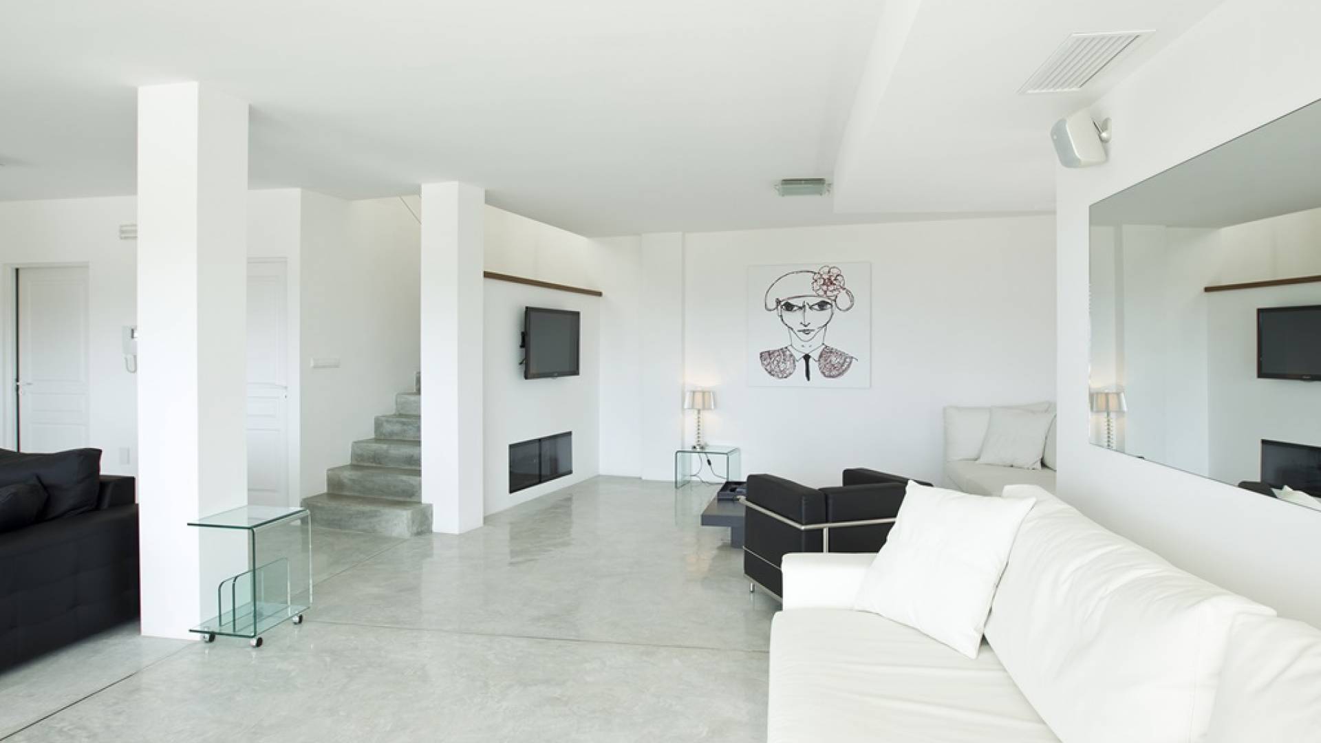 Il y a des espaces de vie sur les 3 étages, le salon principal est joliment meublé et se compose d'un salon décloisonné, d'un coin repas et d'une cuisine entièrement équipée, avec accès à une terrasse avec vue panoramique et un espace détente. Le grand séjour de 90m2 dispose de deux espaces canapés et TV satellite, le grand open-plan, la cuisine entièrement équipée dispose de deux réfrigérateurs, un congélateur, lave-vaisselle, four micro-ondes, plaque de cuisson, four, machine à café, etc. Il y a deux autres , des espaces de vie/TV plus petits, chacun avec canapés et réfrigérateur, ainsi qu'un WC visiteurs et une buanderie. L'établissement dispose de la climatisation/du chauffage, d'une connexion Wi-Fi et d'un système de musique Sonos.