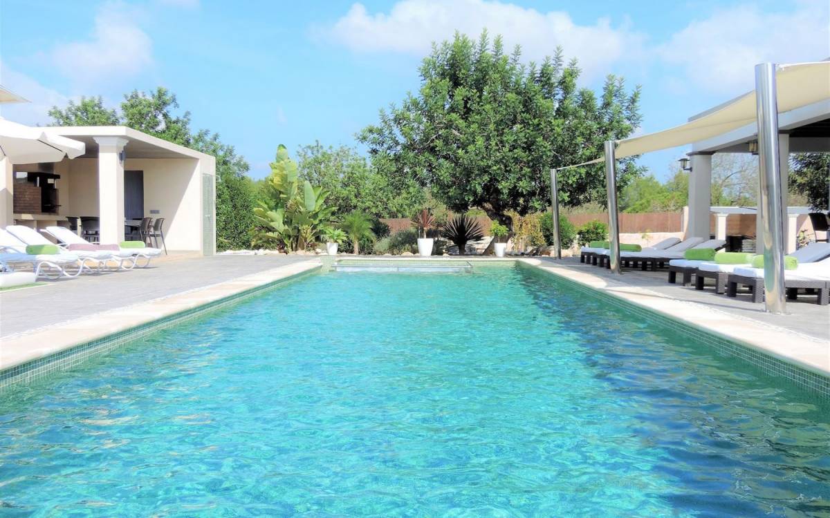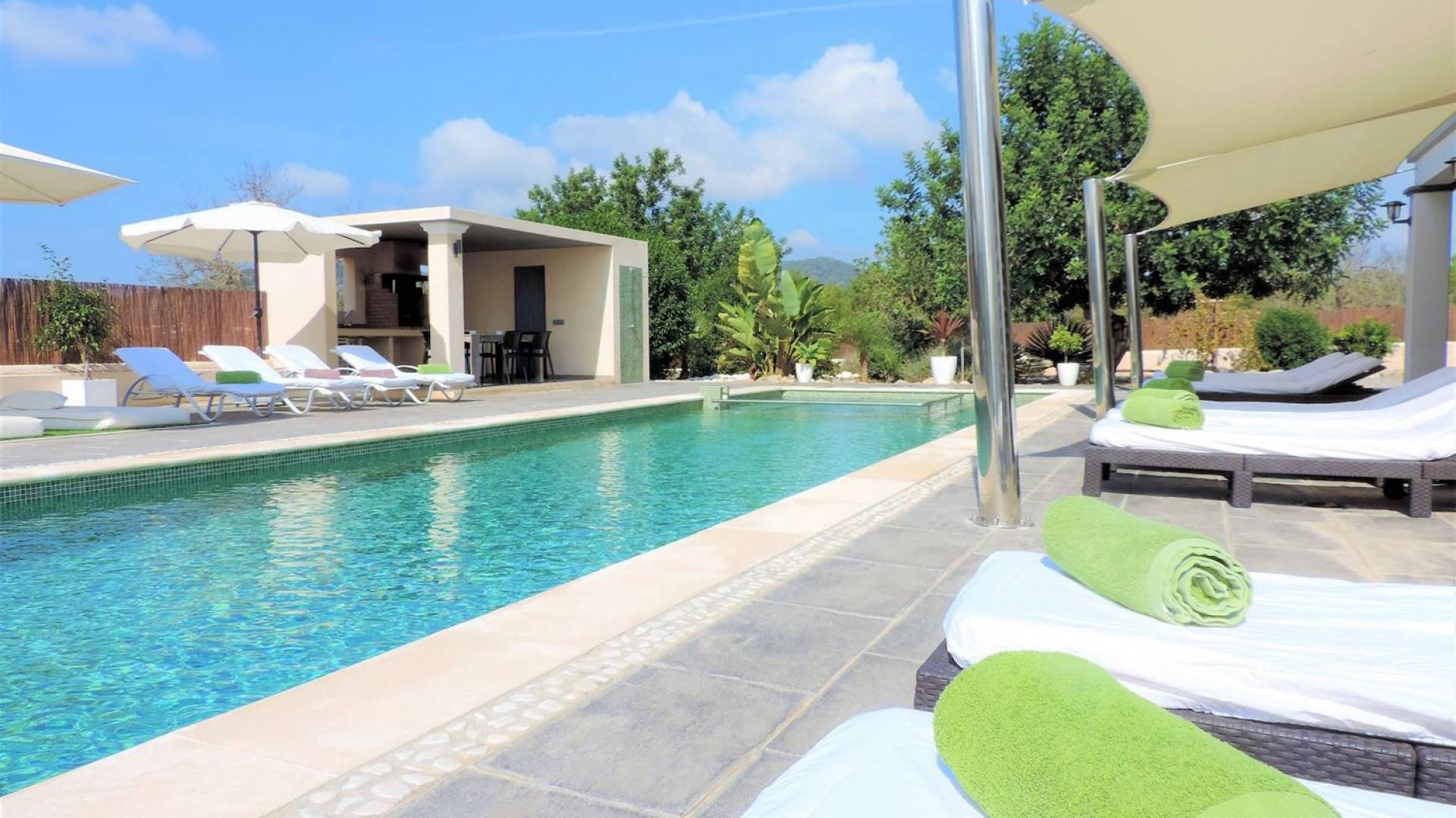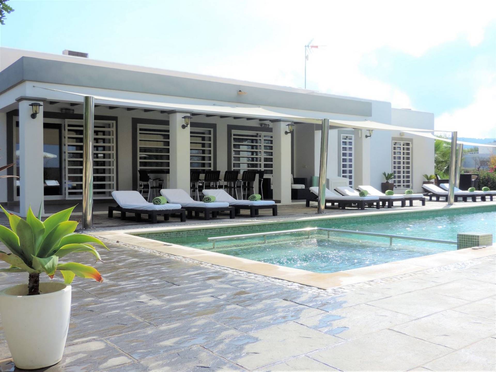 Casa Tobi Ibiza est une location de villa de luxe avec 5 chambres et une piscine privée. Casa Tobi est une belle villa neuve, entièrement clôturée avec une intimité totale, située entre San Rafael et San Antonio sur un terrain de 3 000 m2. La maison avec une construction totale de 330 mètres est située dans une belle zone rurale.