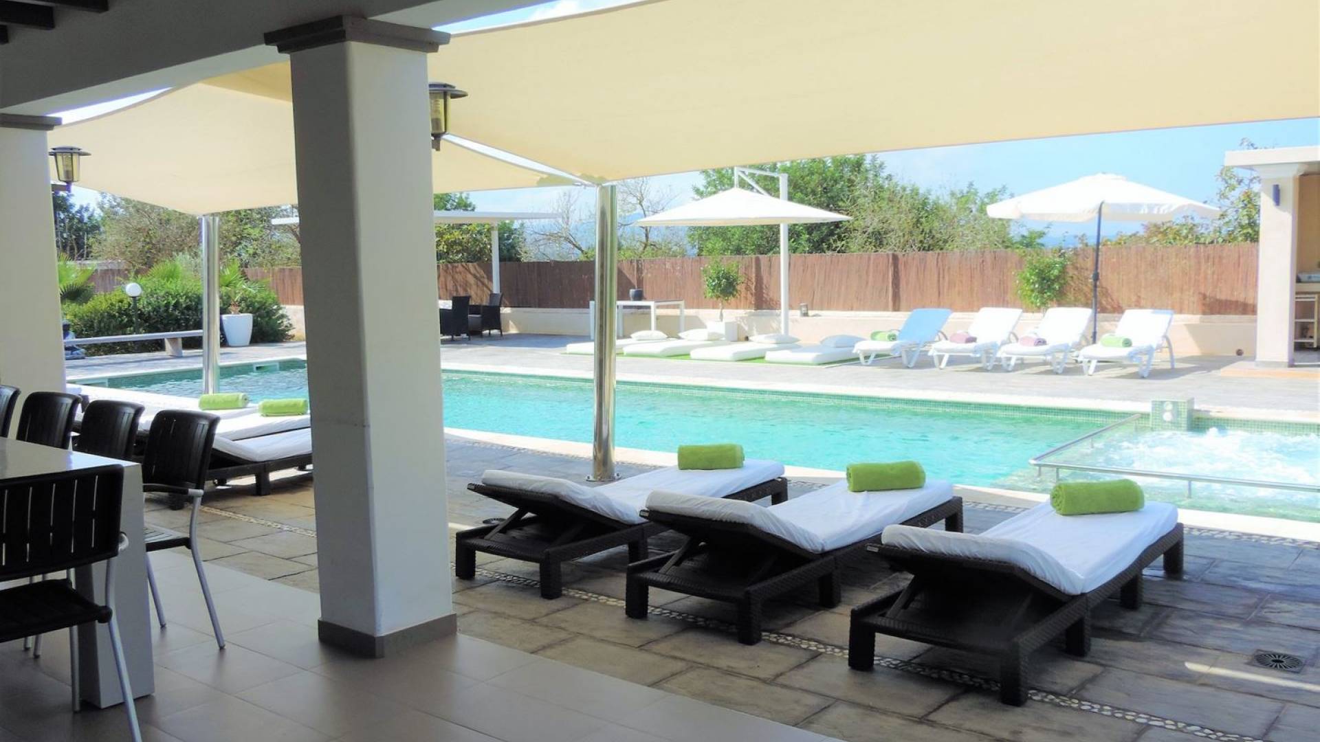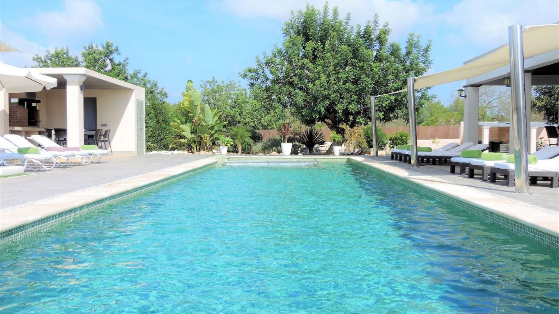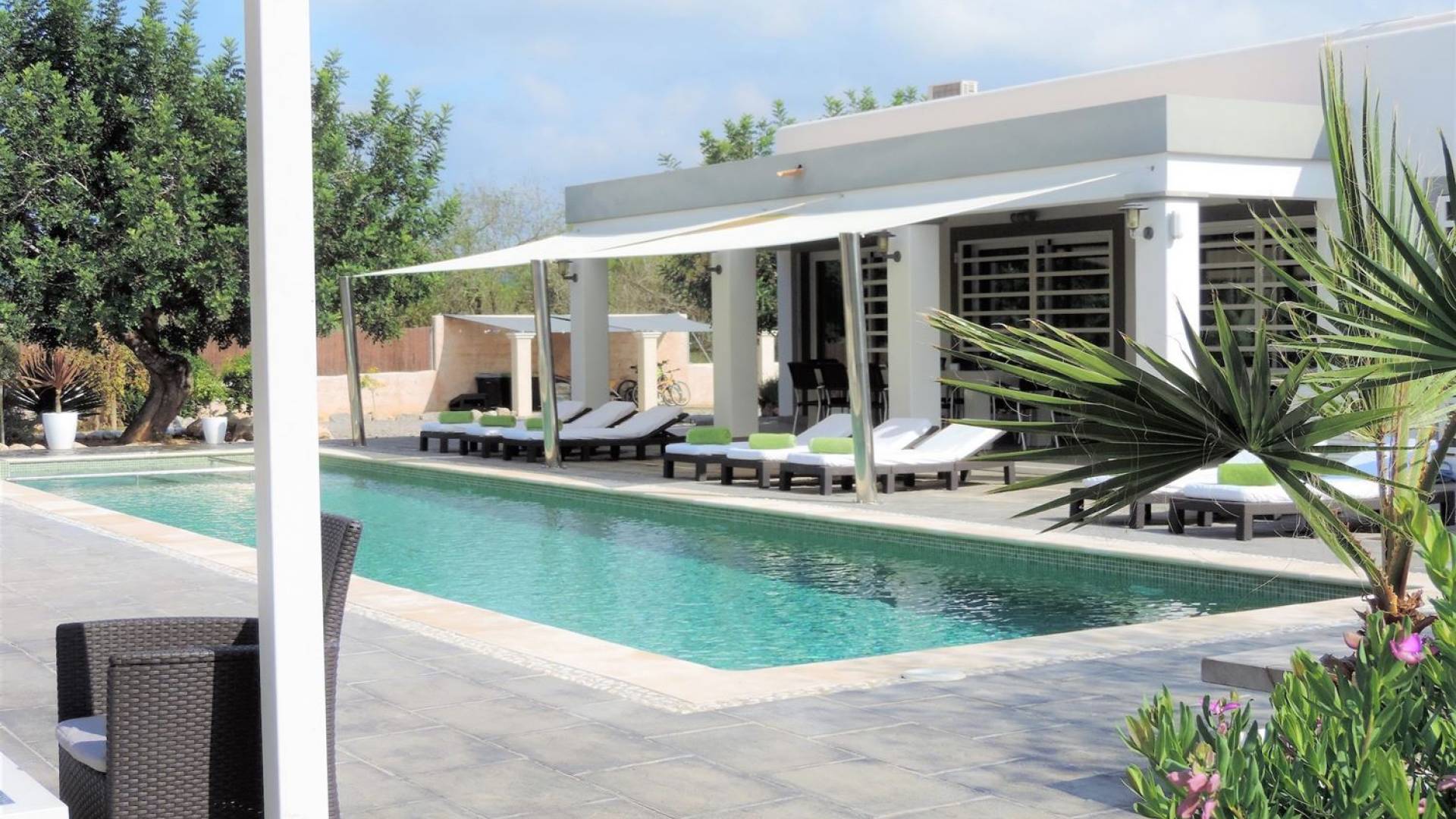 Casa Tobi Ibiza est une location de villa de luxe avec 5 chambres et une piscine privée. Casa Tobi est une belle villa neuve, entièrement clôturée avec une intimité totale, située entre San Rafael et San Antonio sur un terrain de 3 000 m2. La maison avec une construction totale de 330 mètres est située dans une belle zone rurale.