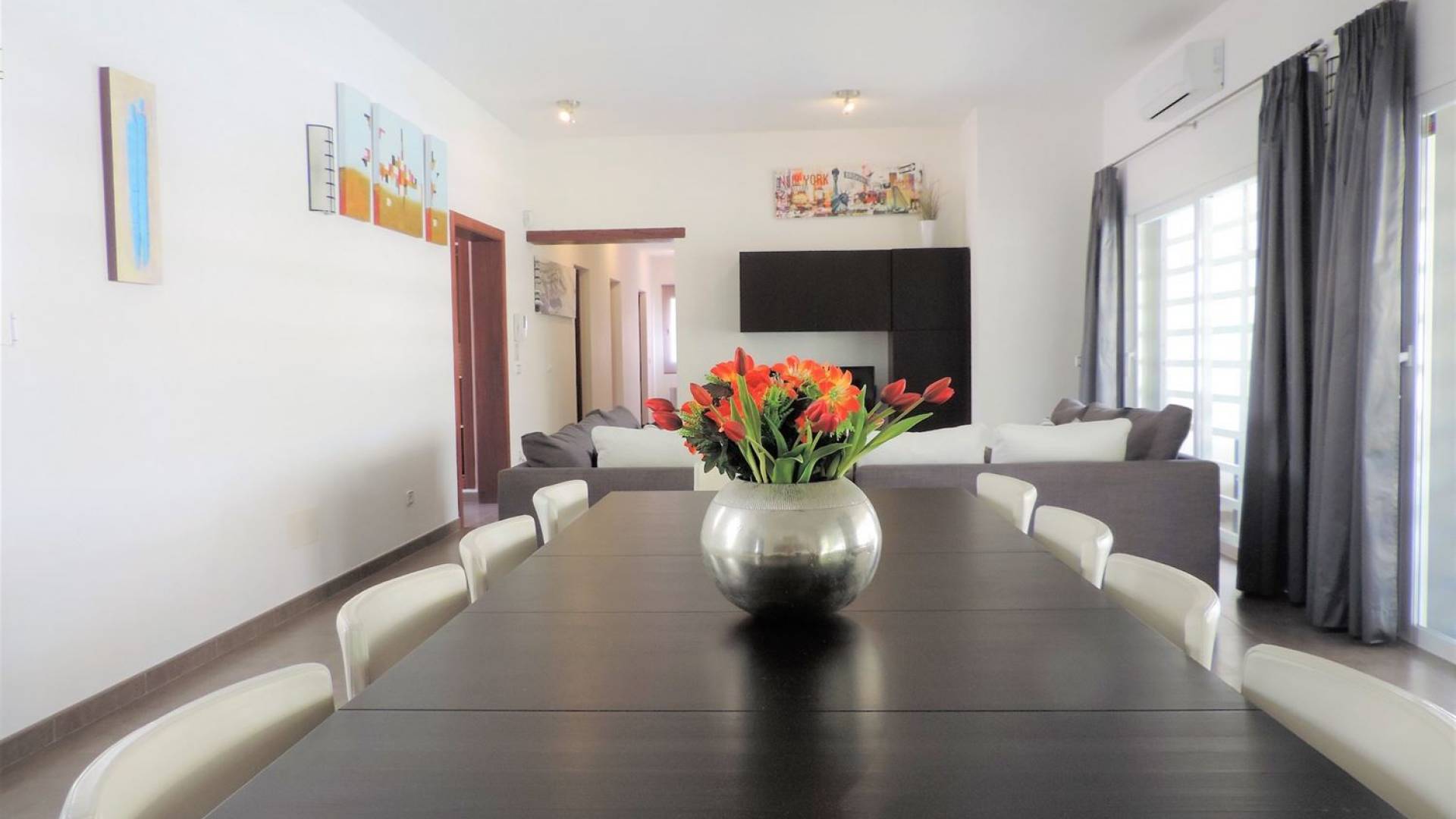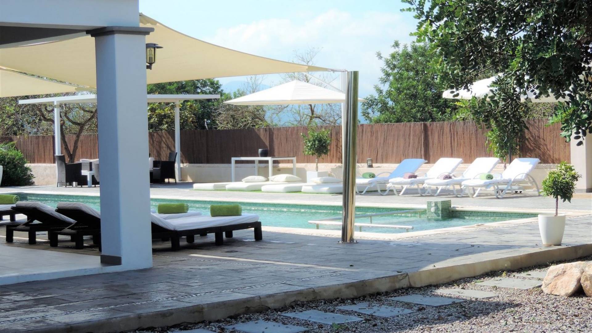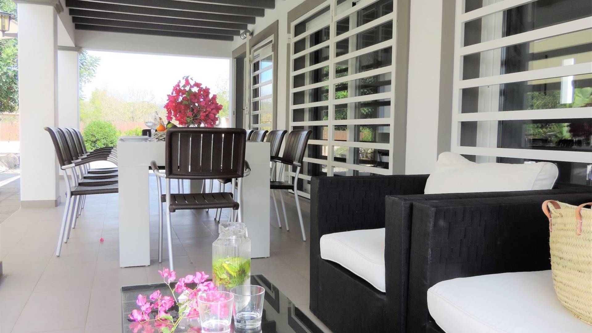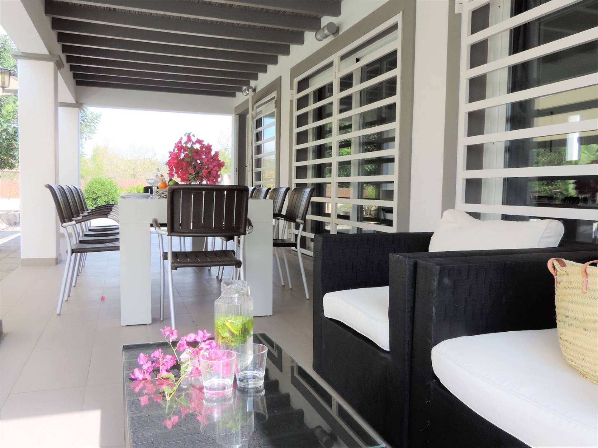 L'extérieur dispose d'une grande piscine de 16 mètres de long avec un jacuzzi et de nombreux espaces ensoleillés ou ombragés pour se détendre. Préparez de délicieux repas dans la cuisine extérieure avec barbecue située près de la piscine, puis dînez en plein air sous la confortable terrasse couverte avec espace de détente. À l'intérieur, le salon spacieux avec télévision par satellite s'ouvre sur la grande terrasse couverte, tandis que la cuisine moderne et brillante dispose de tous les appareils modernes. Il y a 5 chambres doubles et 4 salles de bains dont une maison d'amis séparée avec 1 chambre double et une salle de bain complète.