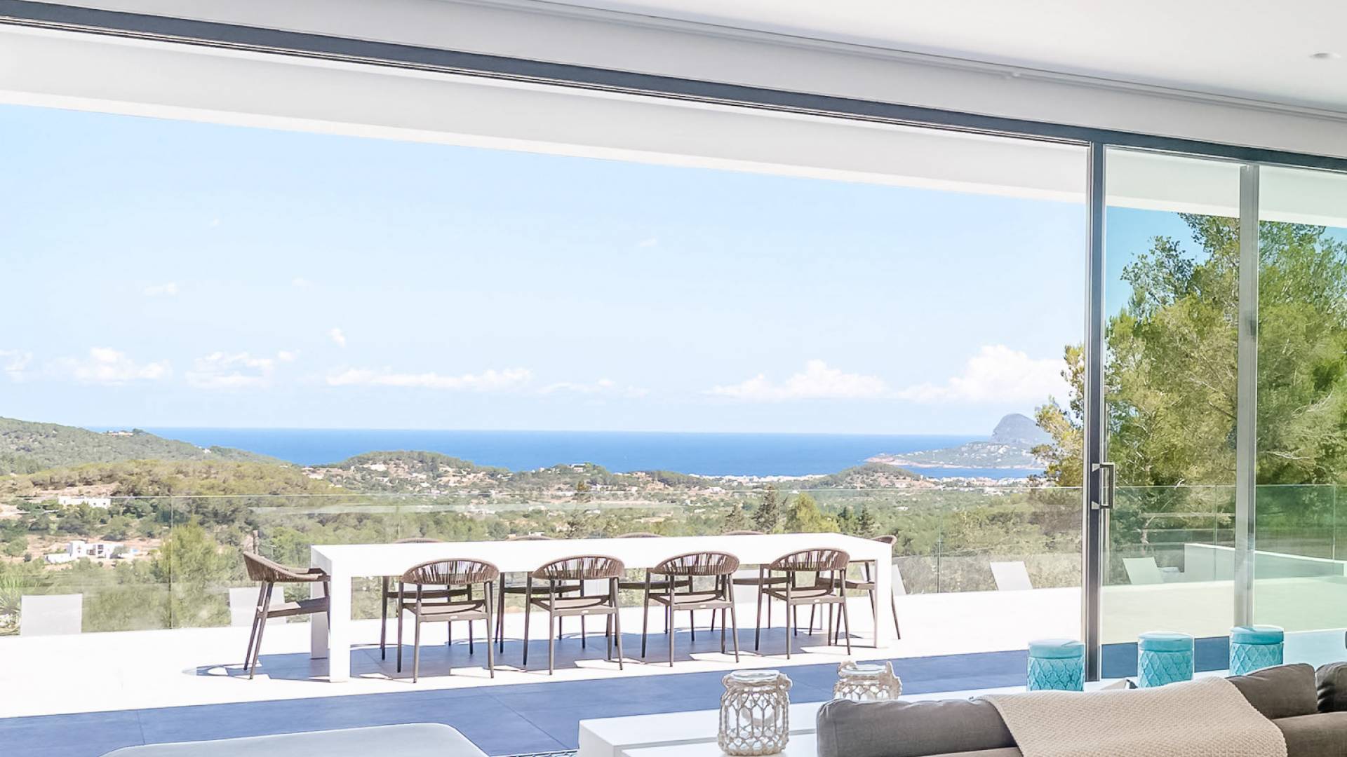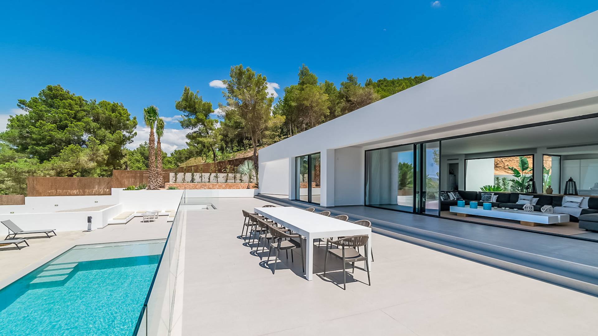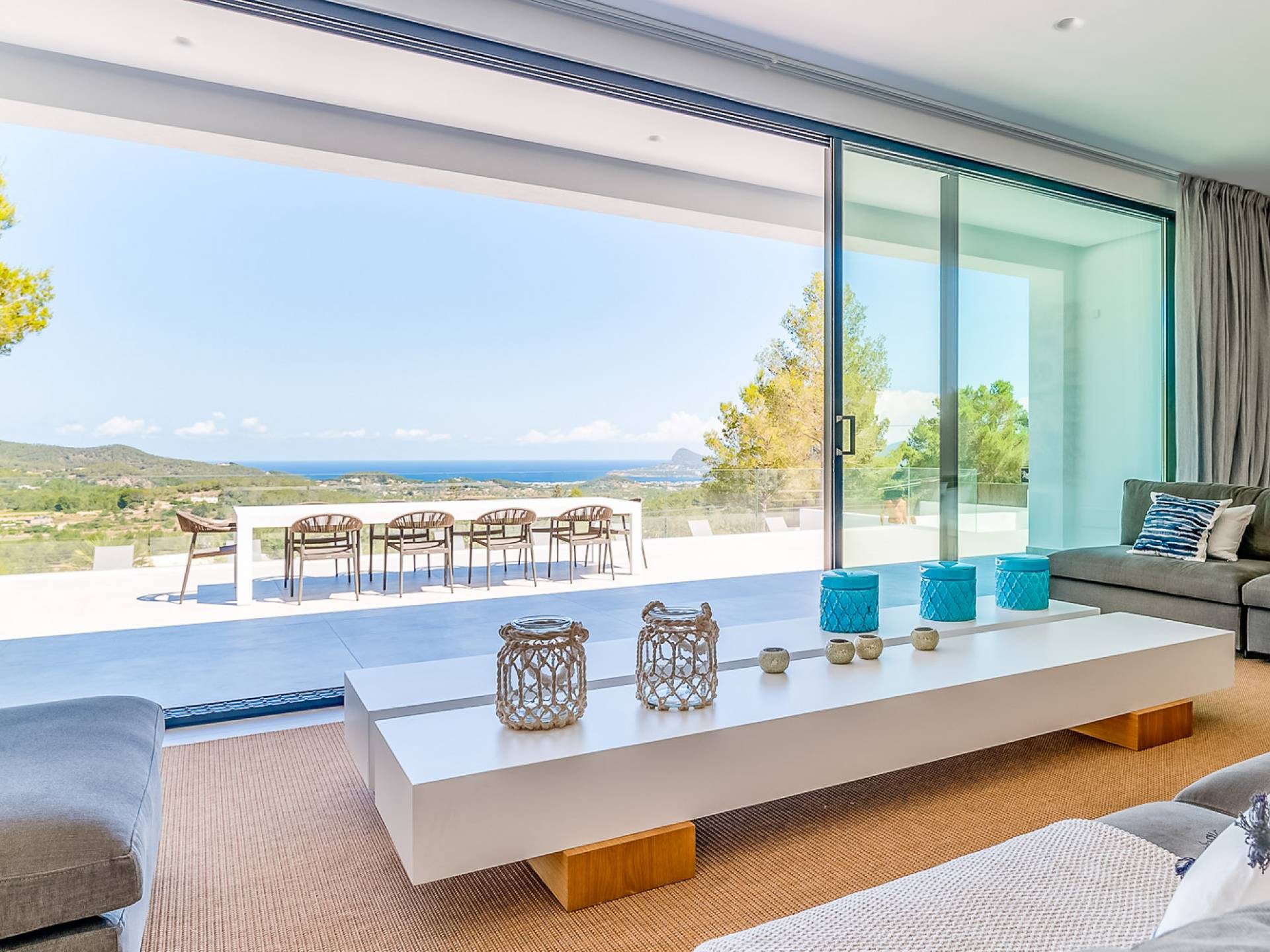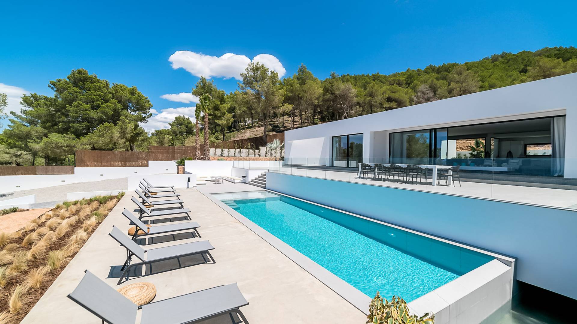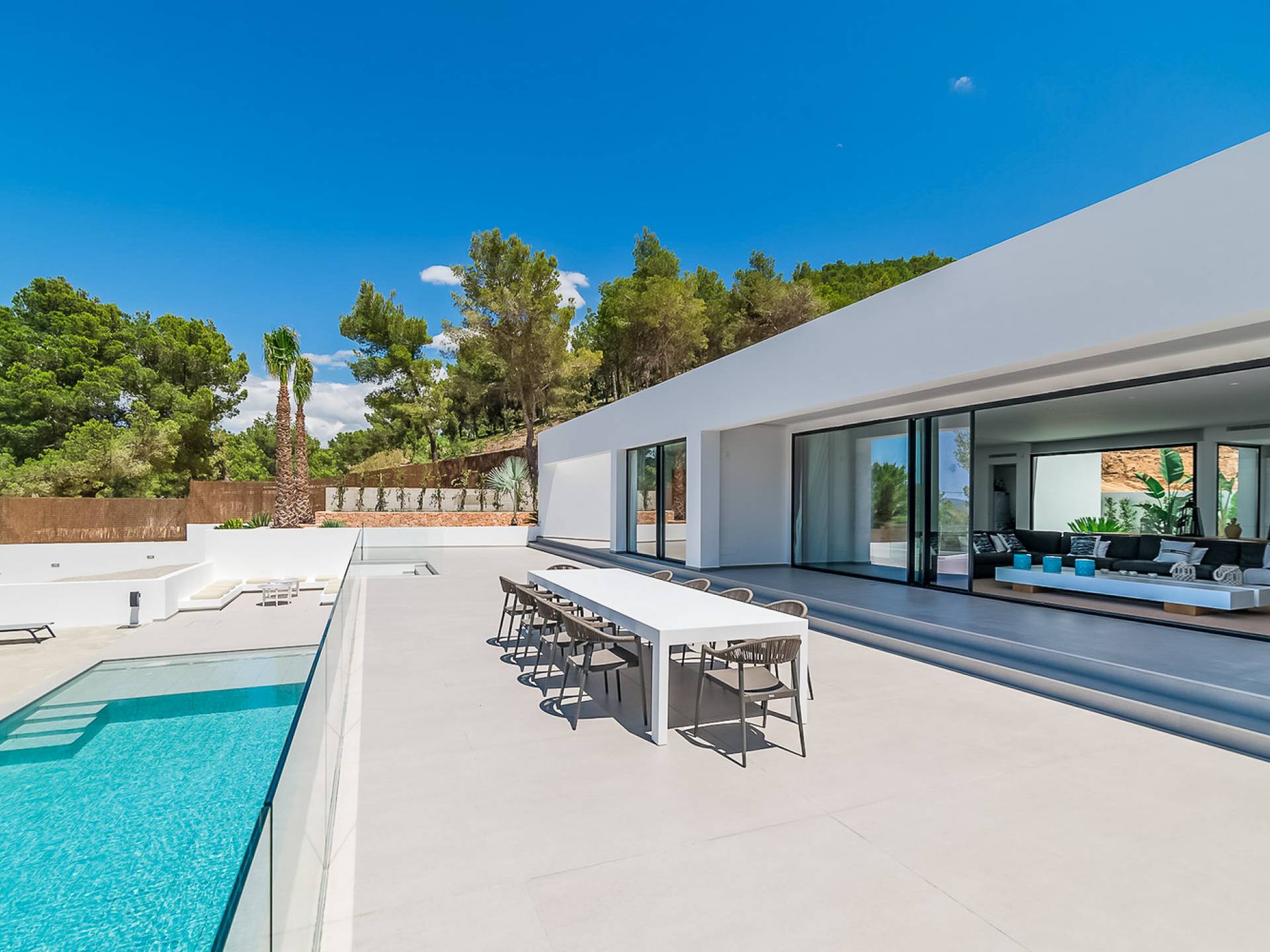 La Villa Ofelia Ibiza a été savamment conçue et meublée par le célèbre architecte d'intérieur Jose Antonio Flores. Tous les équipements et installations de pointe ont été installés - y compris les équipements de cuisine, les équipements de sécurité et les installations de blanchisserie/nettoyage. Le salon dispose d'immenses portes coulissantes du sol au plafond, où les vues pendant que vous vous détendez sur les canapés luxueusement confortables sont tout simplement époustouflantes. La salle à manger peut accueillir 10 personnes et est décloisonnée avec un coin salon et une cuisine ultramoderne entièrement équipée. Toute la maison bénéficie des dernières technologies en matière de climatisation et de chauffage ; il y a un système de sécurité Paradox, un système de divertissement home cinéma à l'intérieur et à l'extérieur et il y a une connexion Internet haut débit gratuite avec accès WiFi.