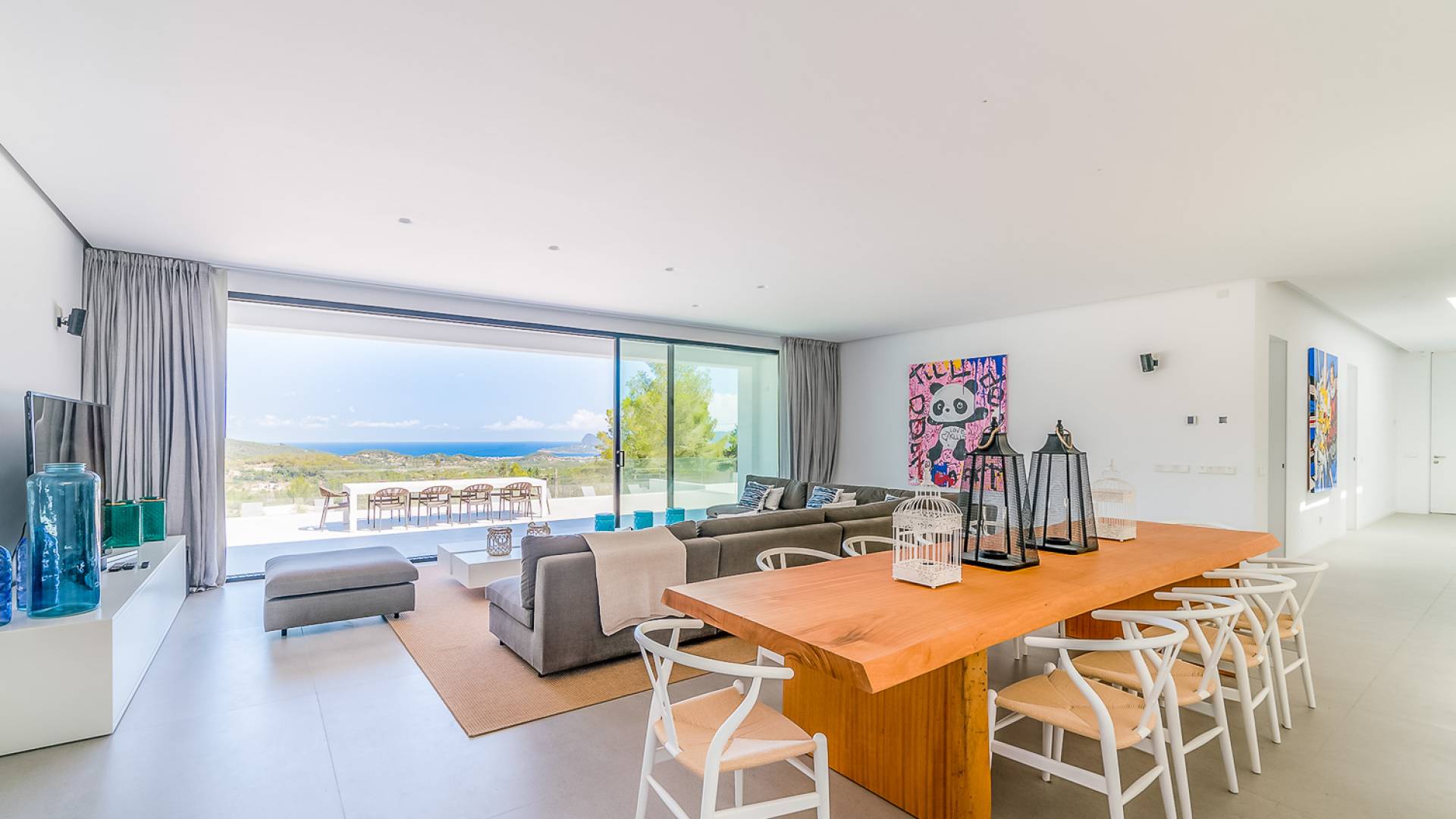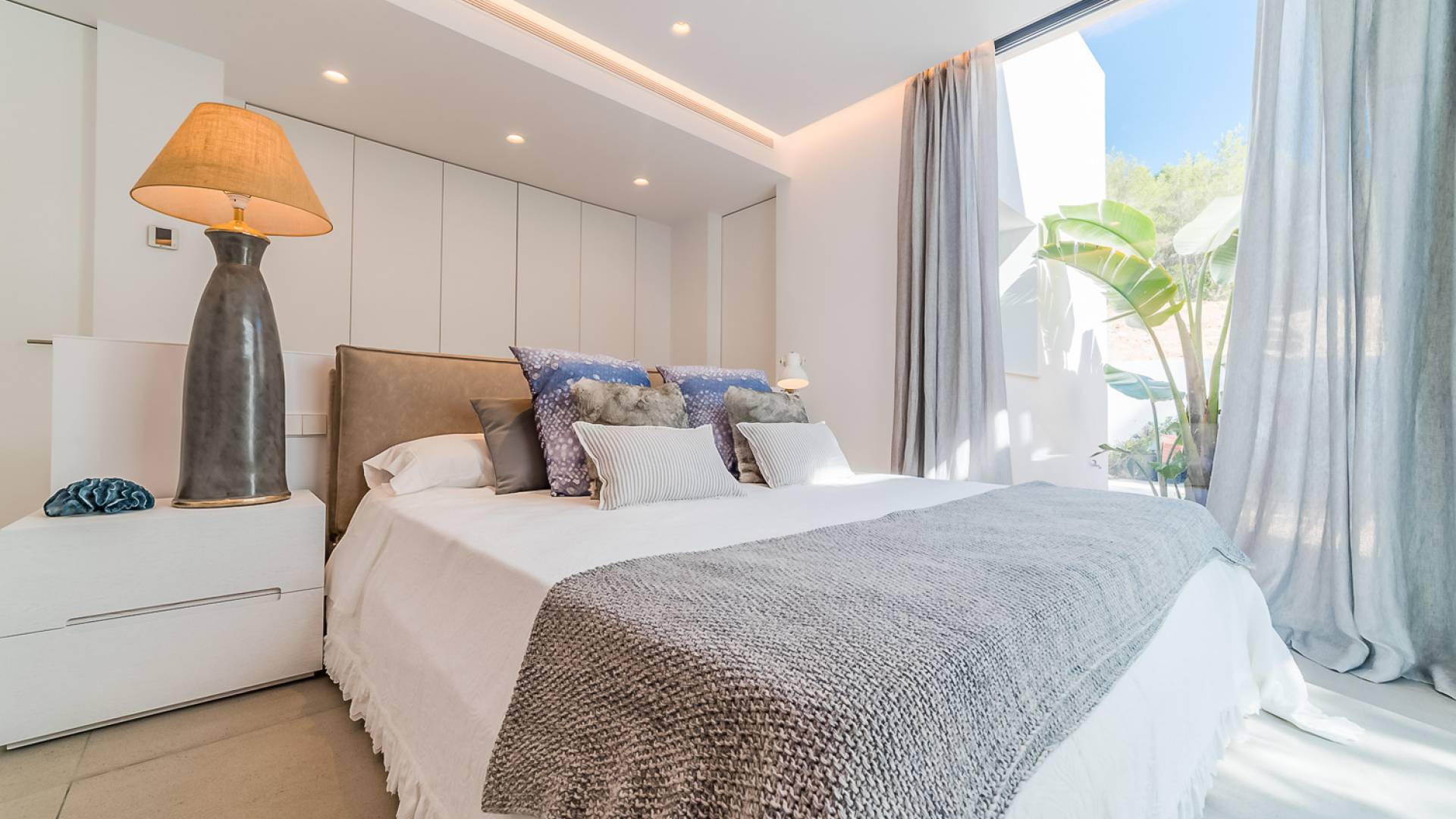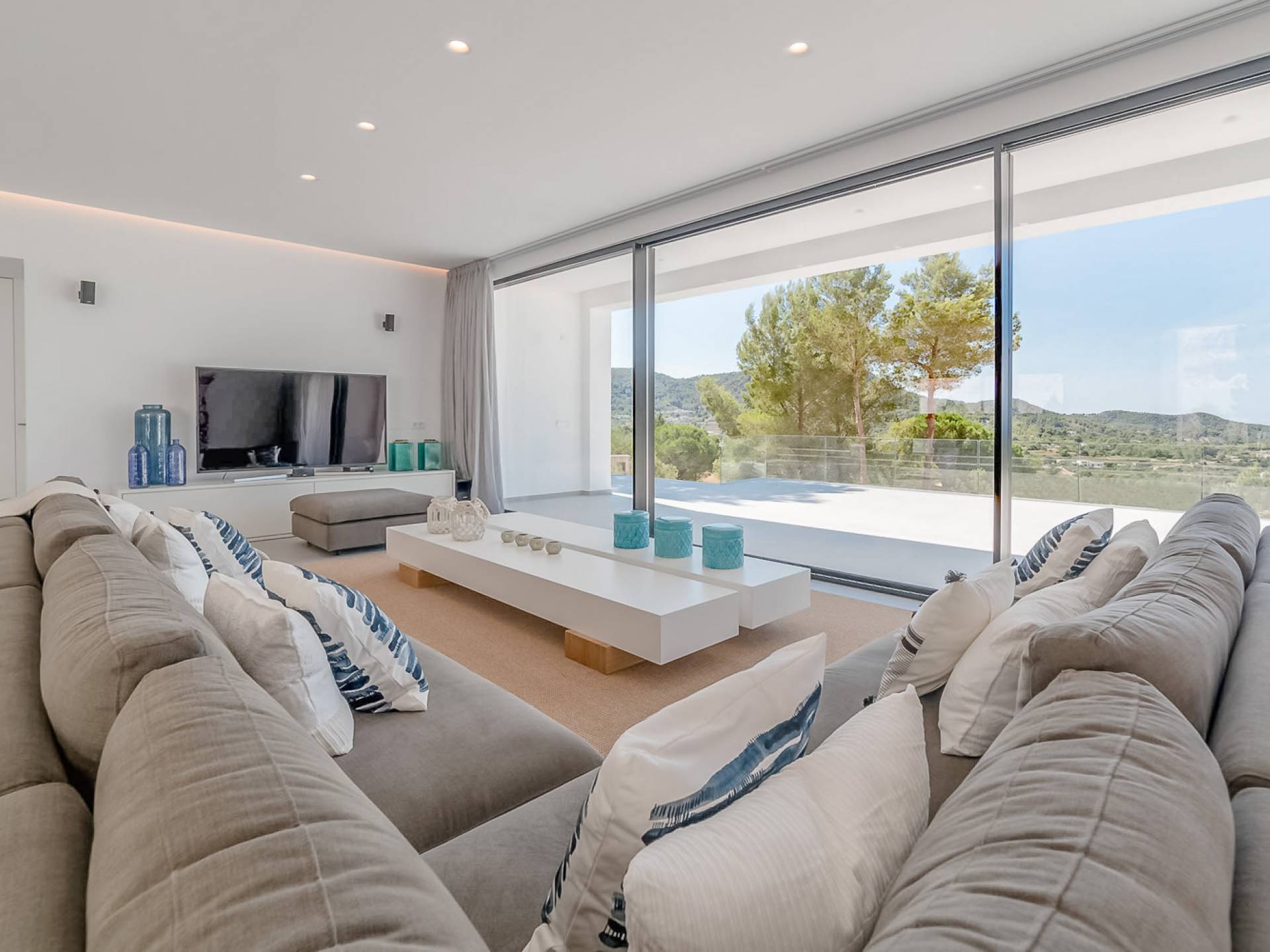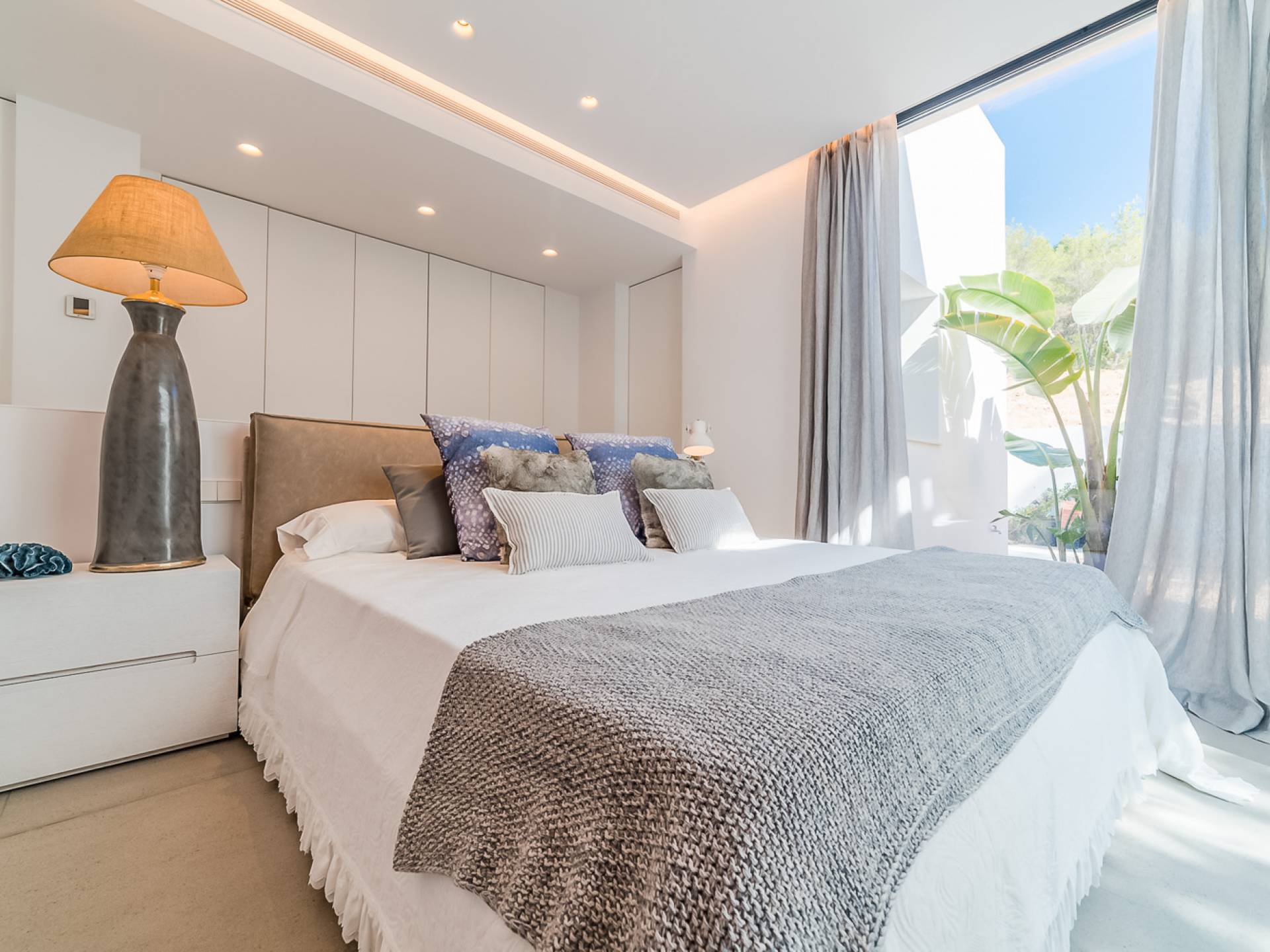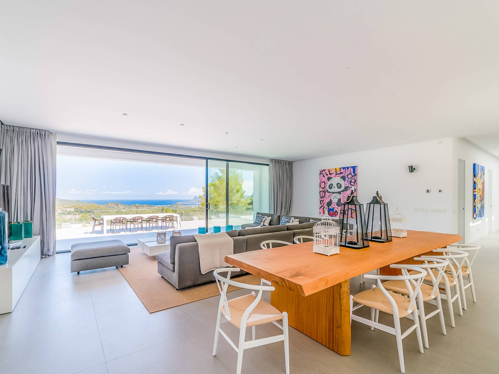 La Villa Ofelia Ibiza a été savamment conçue et meublée par le célèbre architecte d'intérieur Jose Antonio Flores. Tous les équipements et installations de pointe ont été installés - y compris les équipements de cuisine, les équipements de sécurité et les installations de blanchisserie/nettoyage. Le salon dispose d'immenses portes coulissantes du sol au plafond, où les vues pendant que vous vous détendez sur les canapés luxueusement confortables sont tout simplement époustouflantes. La salle à manger peut accueillir 10 personnes et est décloisonnée avec un coin salon et une cuisine ultramoderne entièrement équipée. Toute la maison bénéficie des dernières technologies en matière de climatisation et de chauffage ; il y a un système de sécurité Paradox, un système de divertissement home cinéma à l'intérieur et à l'extérieur et il y a une connexion Internet haut débit gratuite avec accès WiFi.