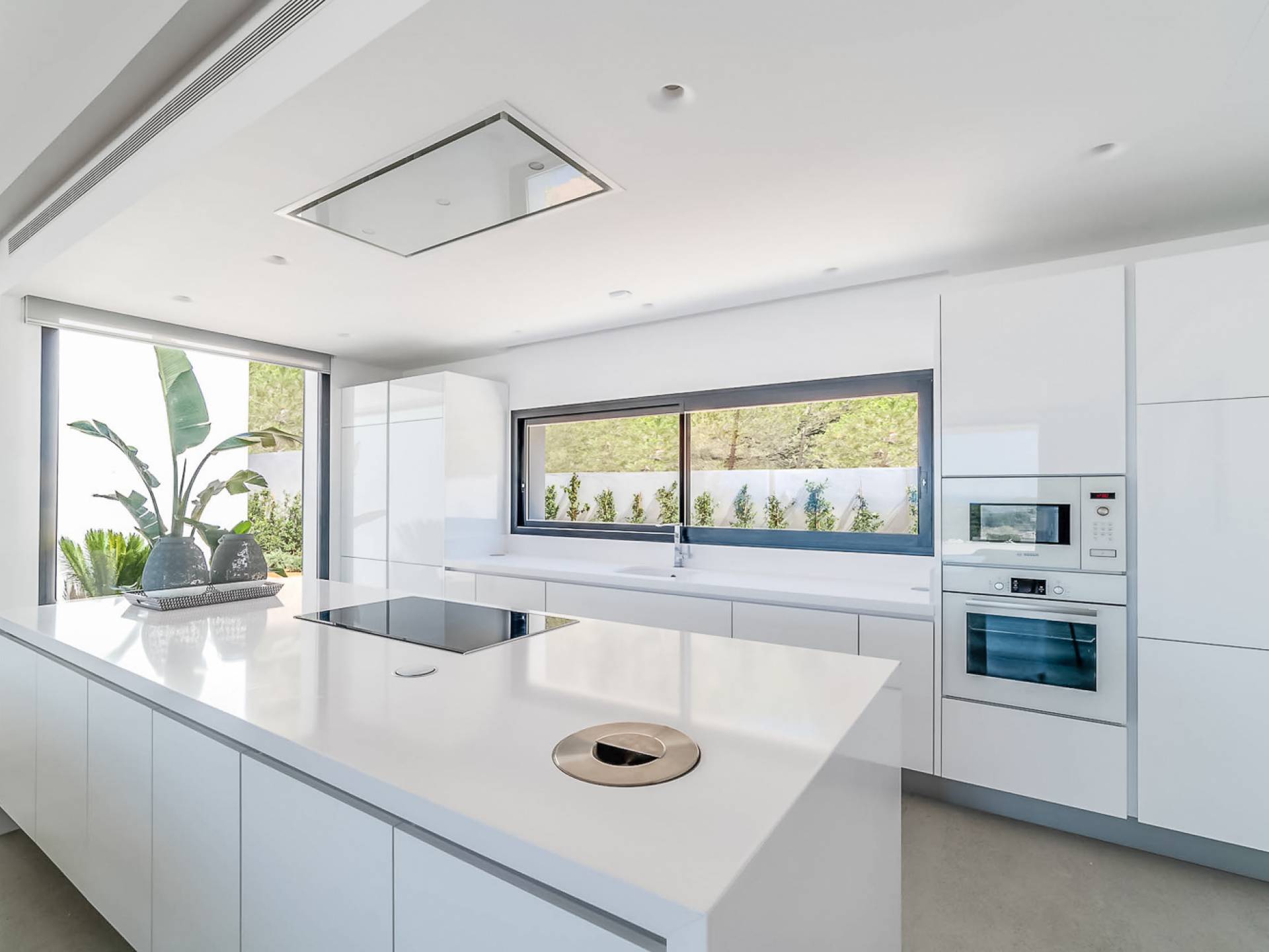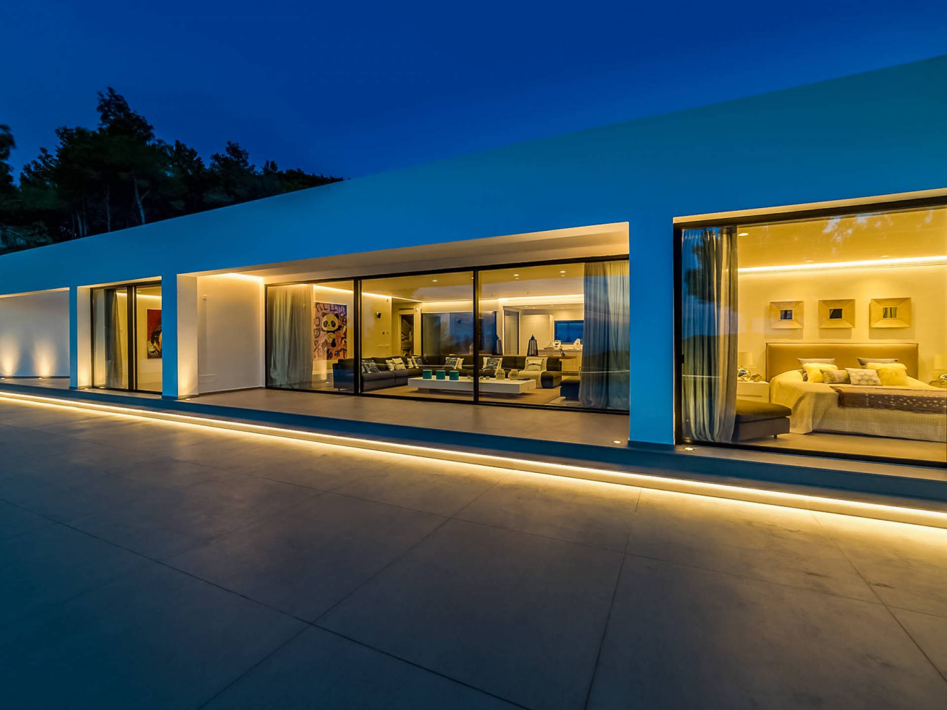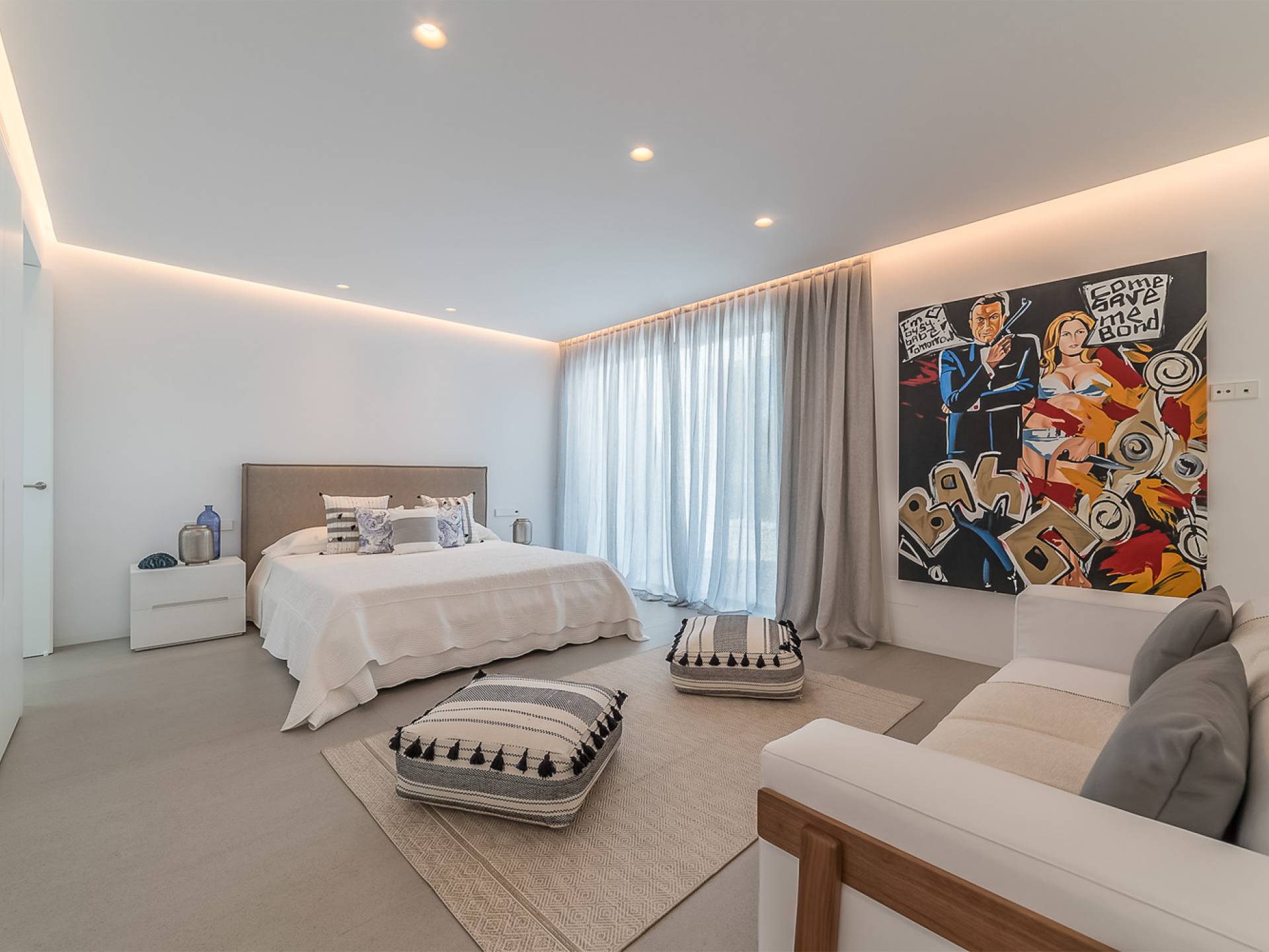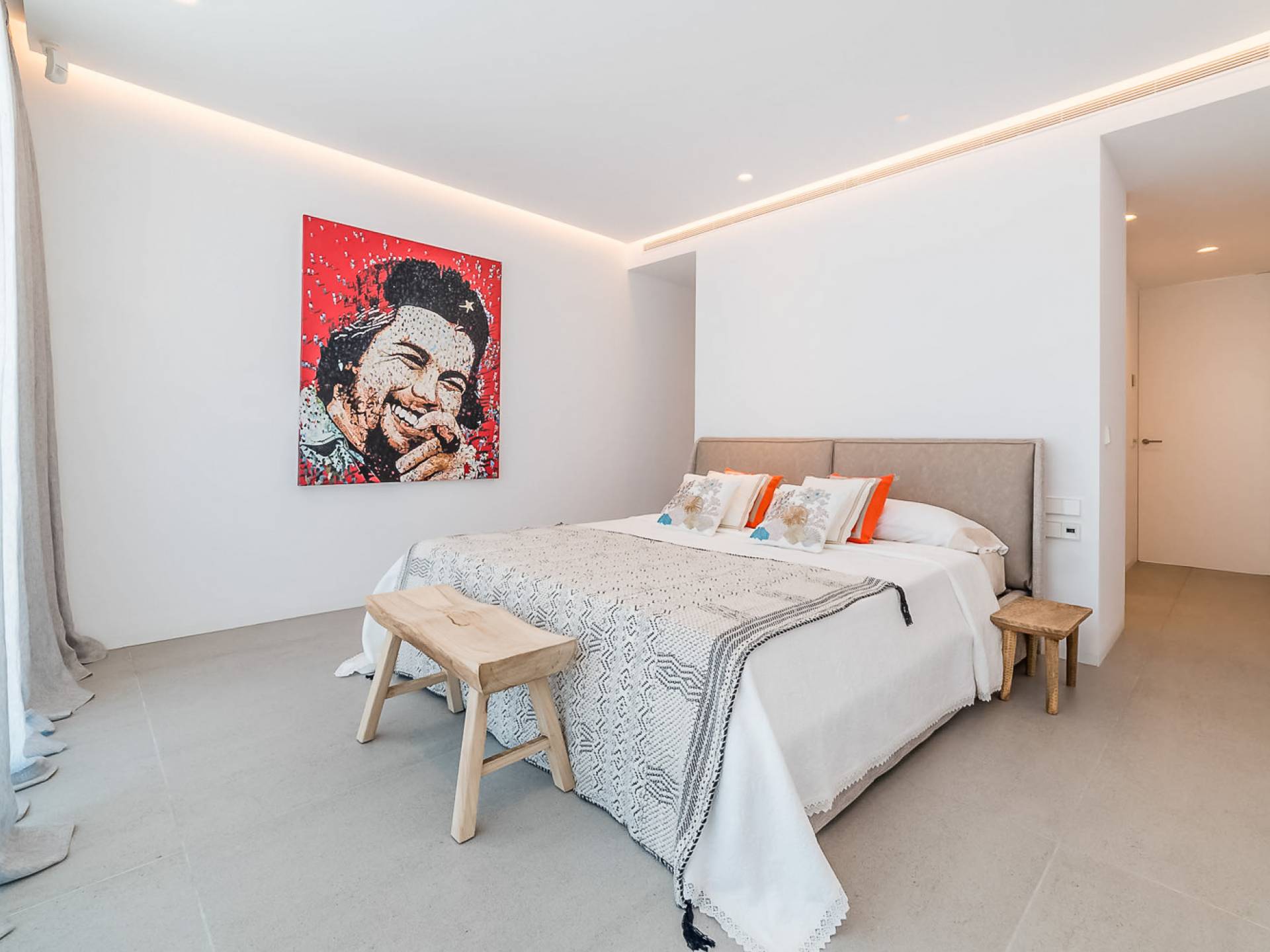 La Villa Ofelia Ibiza a été savamment conçue et meublée par le célèbre architecte d'intérieur Jose Antonio Flores. Tous les équipements et installations de pointe ont été installés - y compris les équipements de cuisine, les équipements de sécurité et les installations de blanchisserie/nettoyage. Le salon dispose d'immenses portes coulissantes du sol au plafond, où les vues pendant que vous vous détendez sur les canapés luxueusement confortables sont tout simplement époustouflantes. La salle à manger peut accueillir 10 personnes et est décloisonnée avec un coin salon et une cuisine ultramoderne entièrement équipée. Toute la maison bénéficie des dernières technologies en matière de climatisation et de chauffage ; il y a un système de sécurité Paradox, un système de divertissement home cinéma à l'intérieur et à l'extérieur et il y a une connexion Internet haut débit gratuite avec accès WiFi.