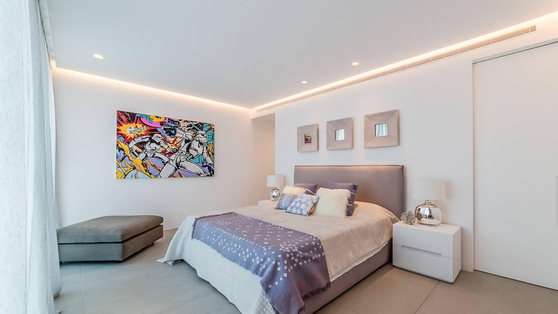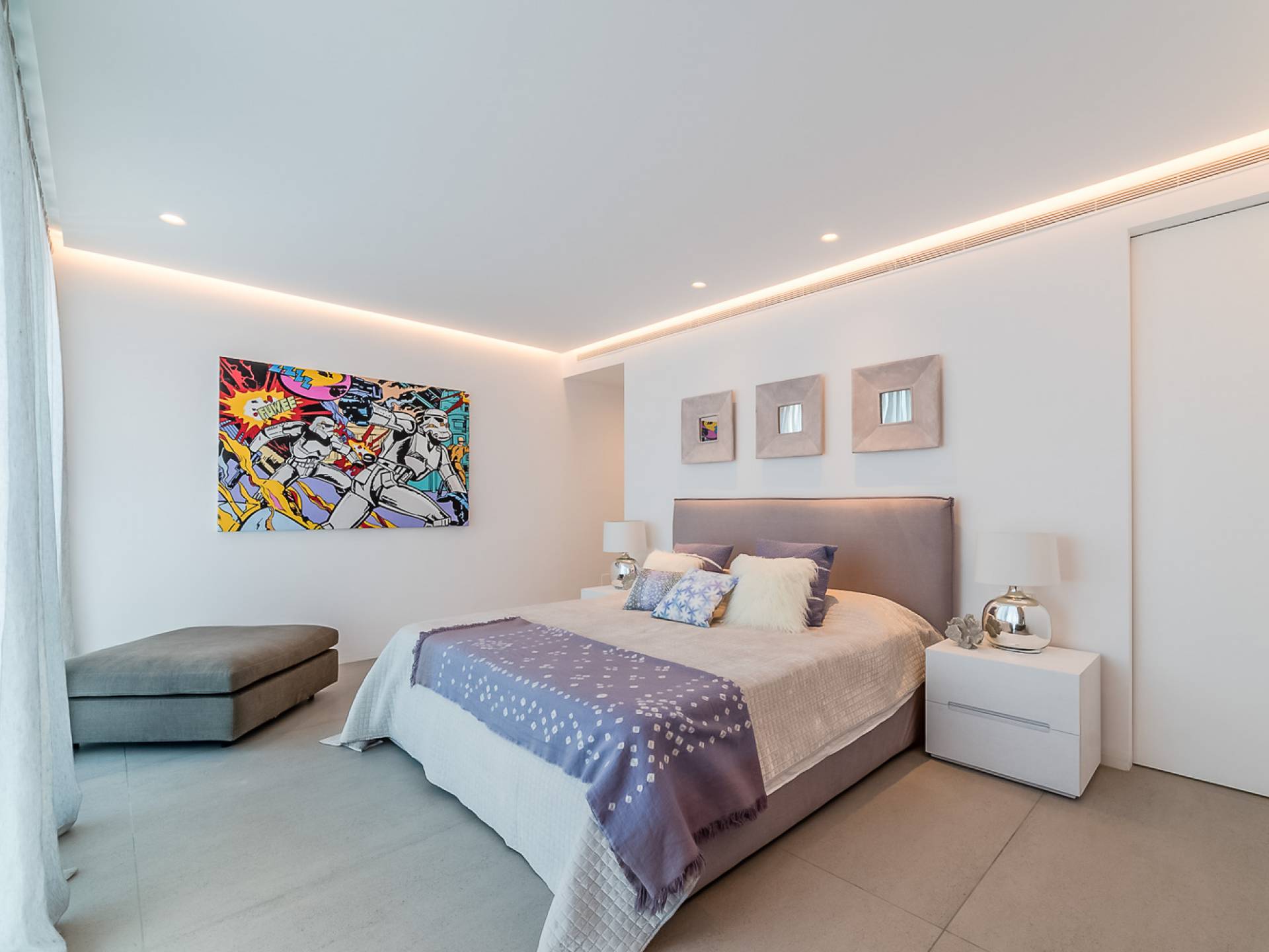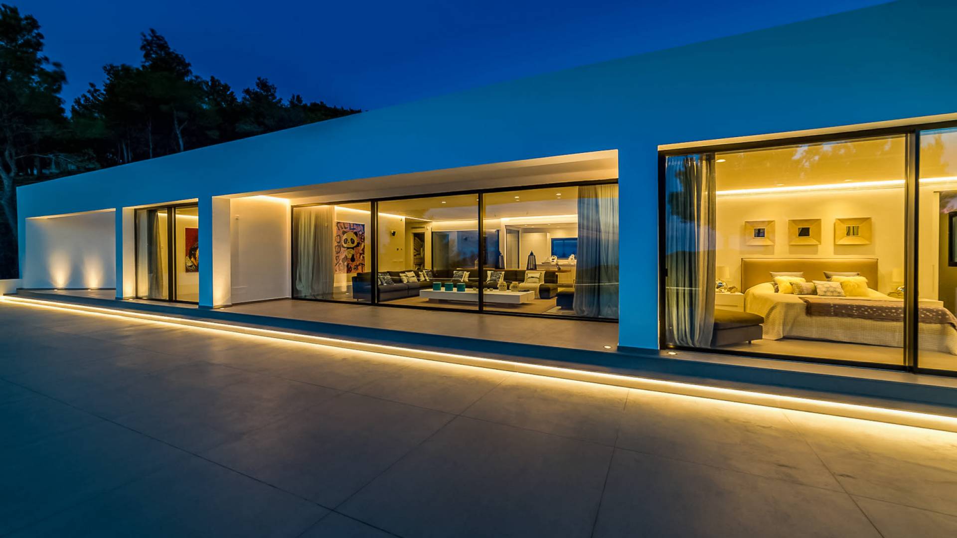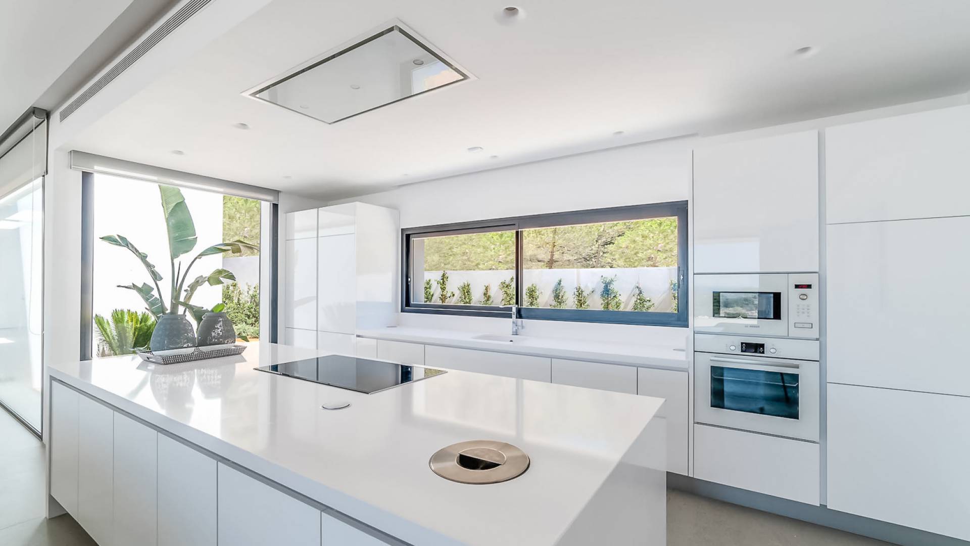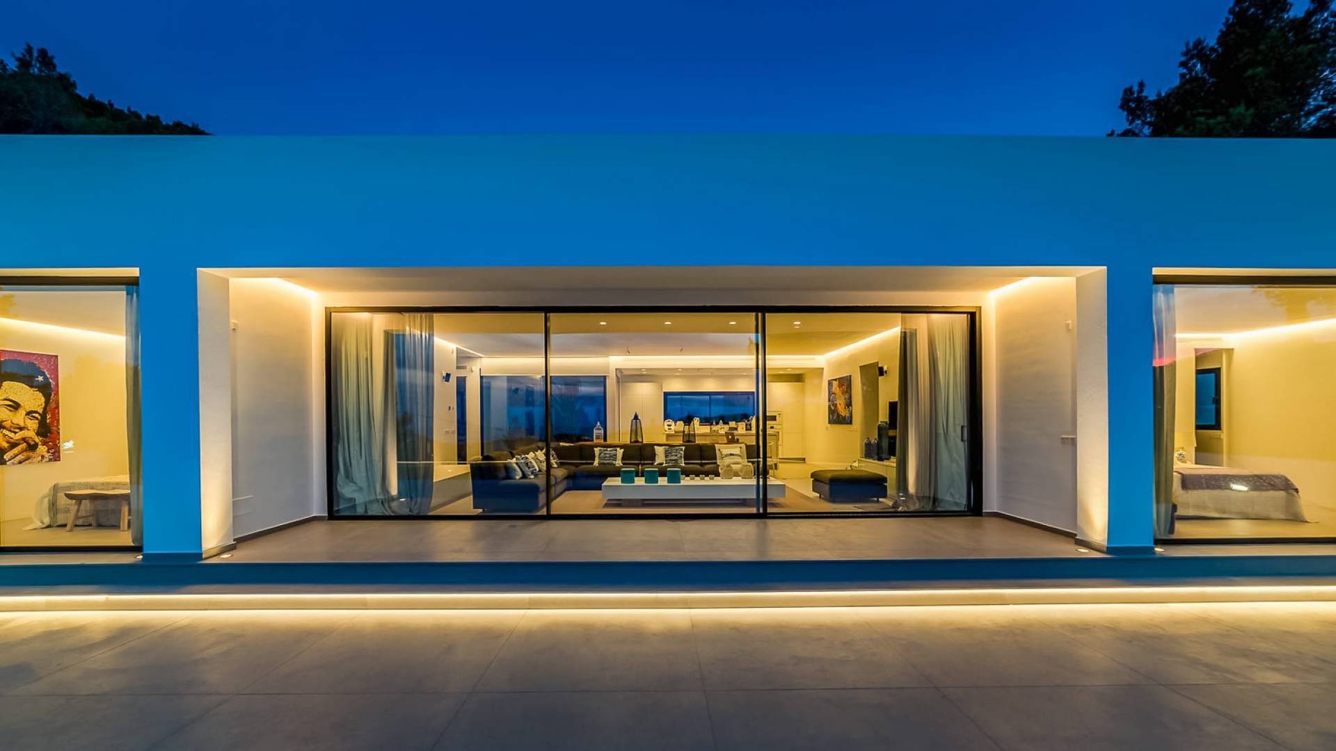 La Villa Ofelia Ibiza a été savamment conçue et meublée par le célèbre architecte d'intérieur Jose Antonio Flores. Tous les équipements et installations de pointe ont été installés - y compris les équipements de cuisine, les équipements de sécurité et les installations de blanchisserie/nettoyage. Le salon dispose d'immenses portes coulissantes du sol au plafond, où les vues pendant que vous vous détendez sur les canapés luxueusement confortables sont tout simplement époustouflantes. La salle à manger peut accueillir 10 personnes et est décloisonnée avec un coin salon et une cuisine ultramoderne entièrement équipée. Toute la maison bénéficie des dernières technologies en matière de climatisation et de chauffage ; il y a un système de sécurité Paradox, un système de divertissement home cinéma à l'intérieur et à l'extérieur et il y a une connexion Internet haut débit gratuite avec accès WiFi.