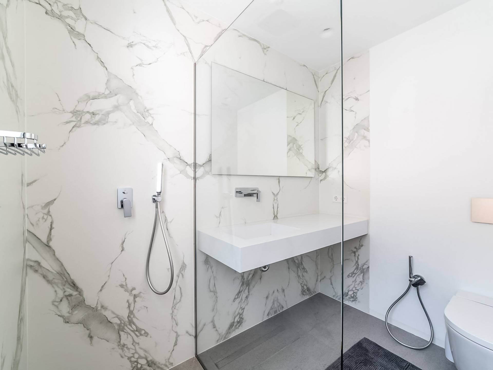 Le merveilleux temps méditerranéen peut être apprécié au bord de la grande piscine à débordement (20 mètres de long) où vous pourrez vous détendre sur la spacieuse terrasse ensoleillée et apprécier la magnifique vue ininterrompue sur la campagne, la mer et le coucher du soleil. Il y a une grande salle à manger extérieure pouvant accueillir 10 personnes, un espace de détente spacieux à côté de la piscine ainsi qu'un coin salon extérieur confortable près de la table à manger extérieure et une terrasse sur le toit. Des portes privées mènent à un parking suffisamment grand pour plusieurs voitures.