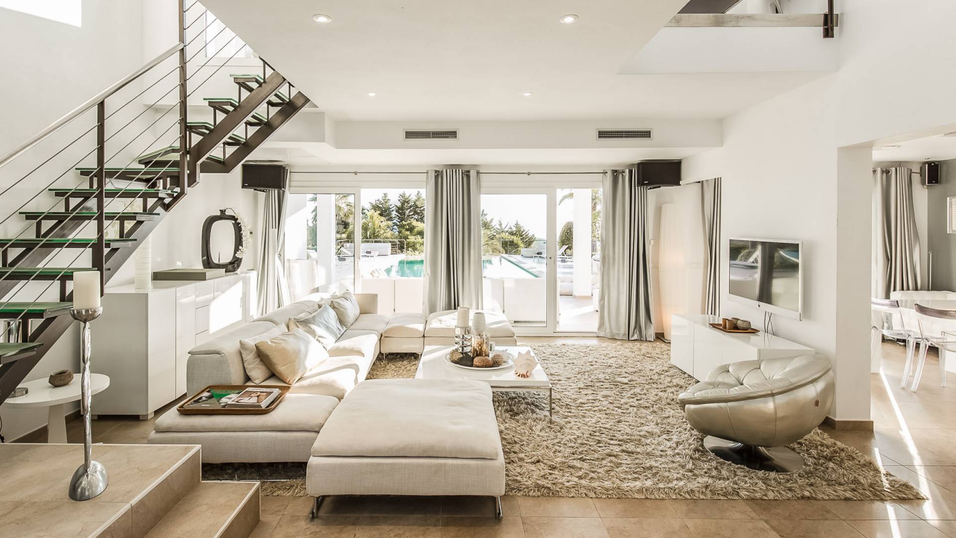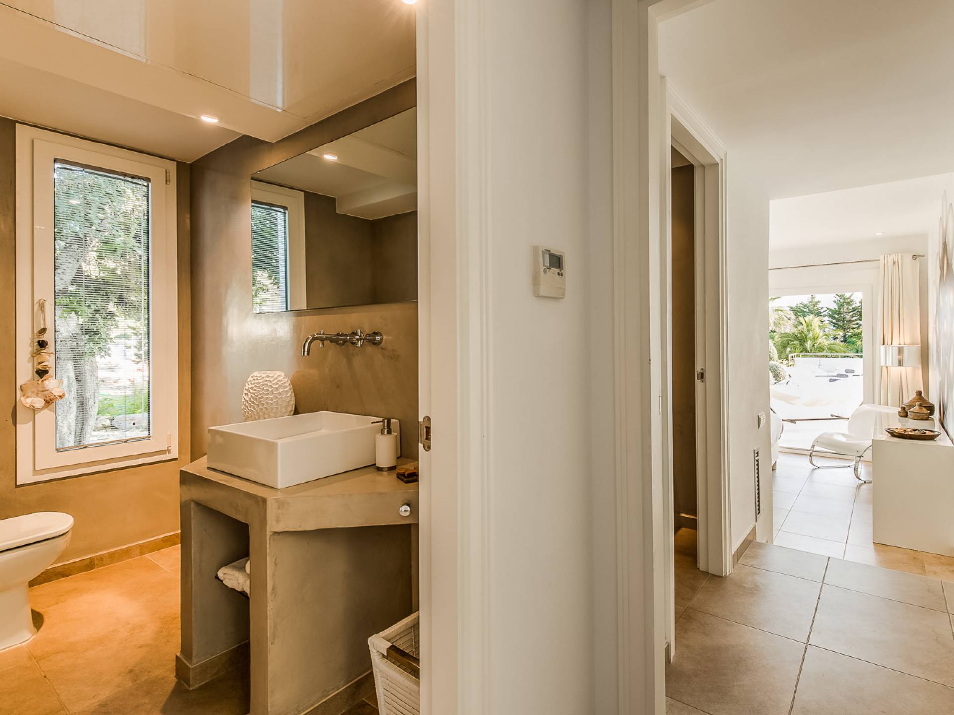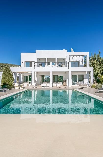 Villa Vista Cala Jondal Ibiza est une propriété au design unique avec un grand espace extérieur et une vue imprenable sur Cala Jondal. Il y a 7 chambres et 7 salles de bains, toutes luxueusement meublées au plus haut niveau, dont 3 offrent une vue imprenable sur la mer. Villa Vista Cala Jondal Ibiza dispose également du chauffage au sol, de la climatisation et d'une alarme complète.