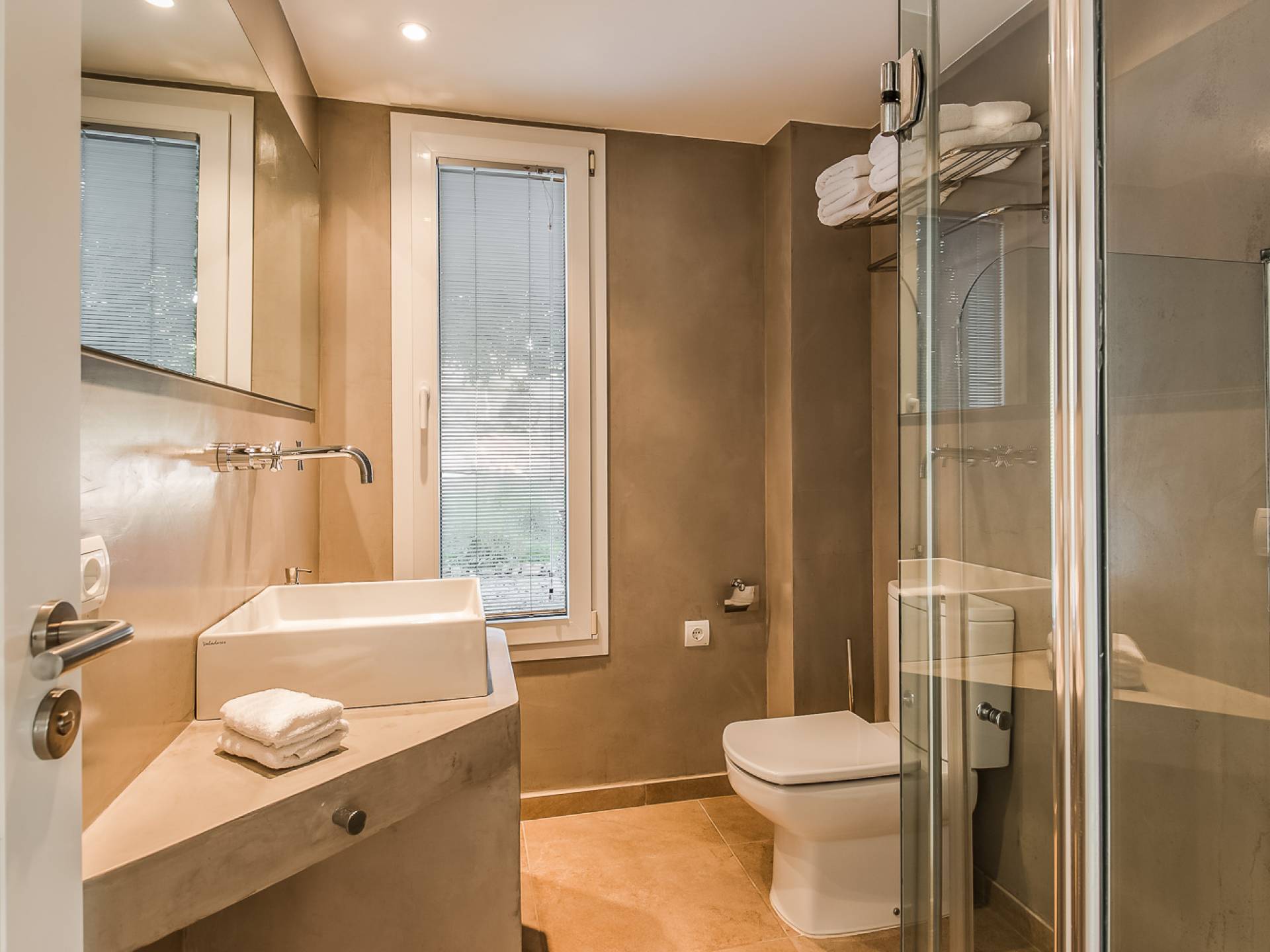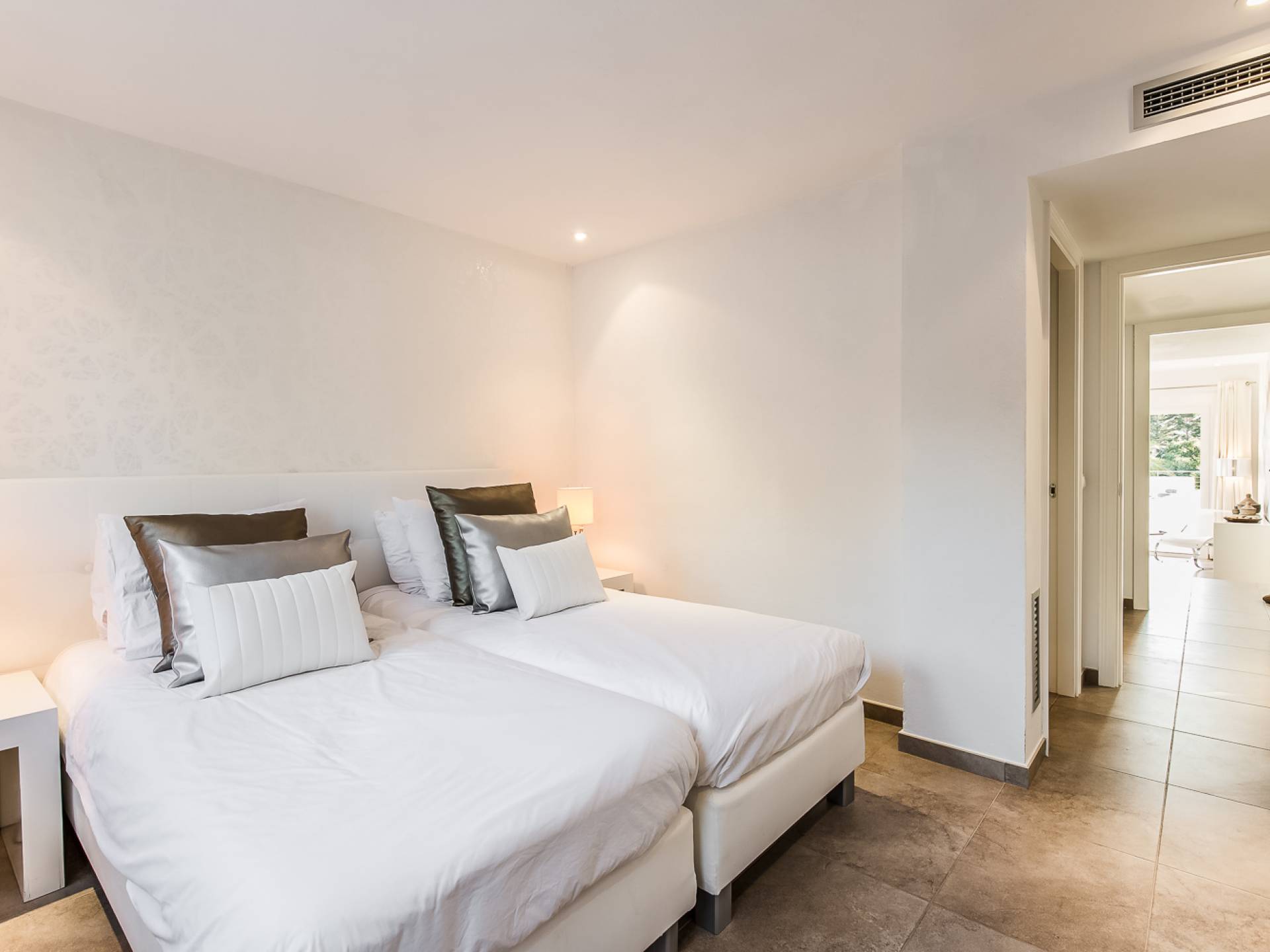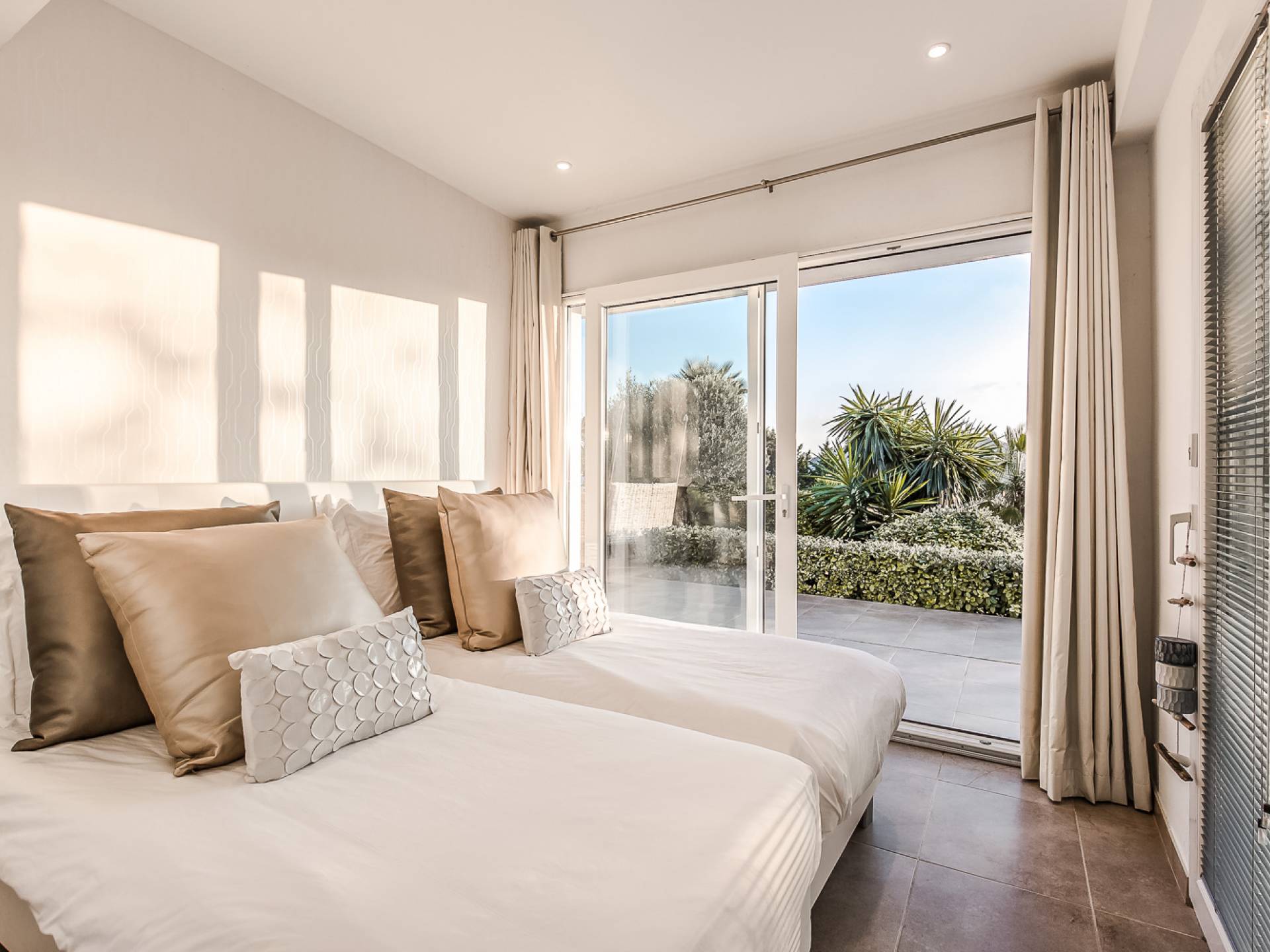 L'entrée sécurisée donne accès à un hall spacieux avec toilettes invités. Le grand salon décoré avec goût a des portes coulissantes en verre avec une vue impressionnante et les grands canapés confortables forment un coin salon confortable avec télévision par satellite, DVD, WiFi et 2 stations d'accueil pour iPod B & BW à l'intérieur et à l'extérieur. Il y a une cuisine moderne entièrement équipée et la buanderie dispose d'un réfrigérateur-congélateur supplémentaire, d'un refroidisseur à vin/champagne, d'un lave-linge et d'un sèche-linge. La salle à manger a une très grande table à manger avec 10 places assises et depuis la cuisine, vous pouvez rejoindre la terrasse couverte où se trouve une grande salle à manger extérieure avec 14 places assises, il y a aussi une fantastique terrasse sur le toit.