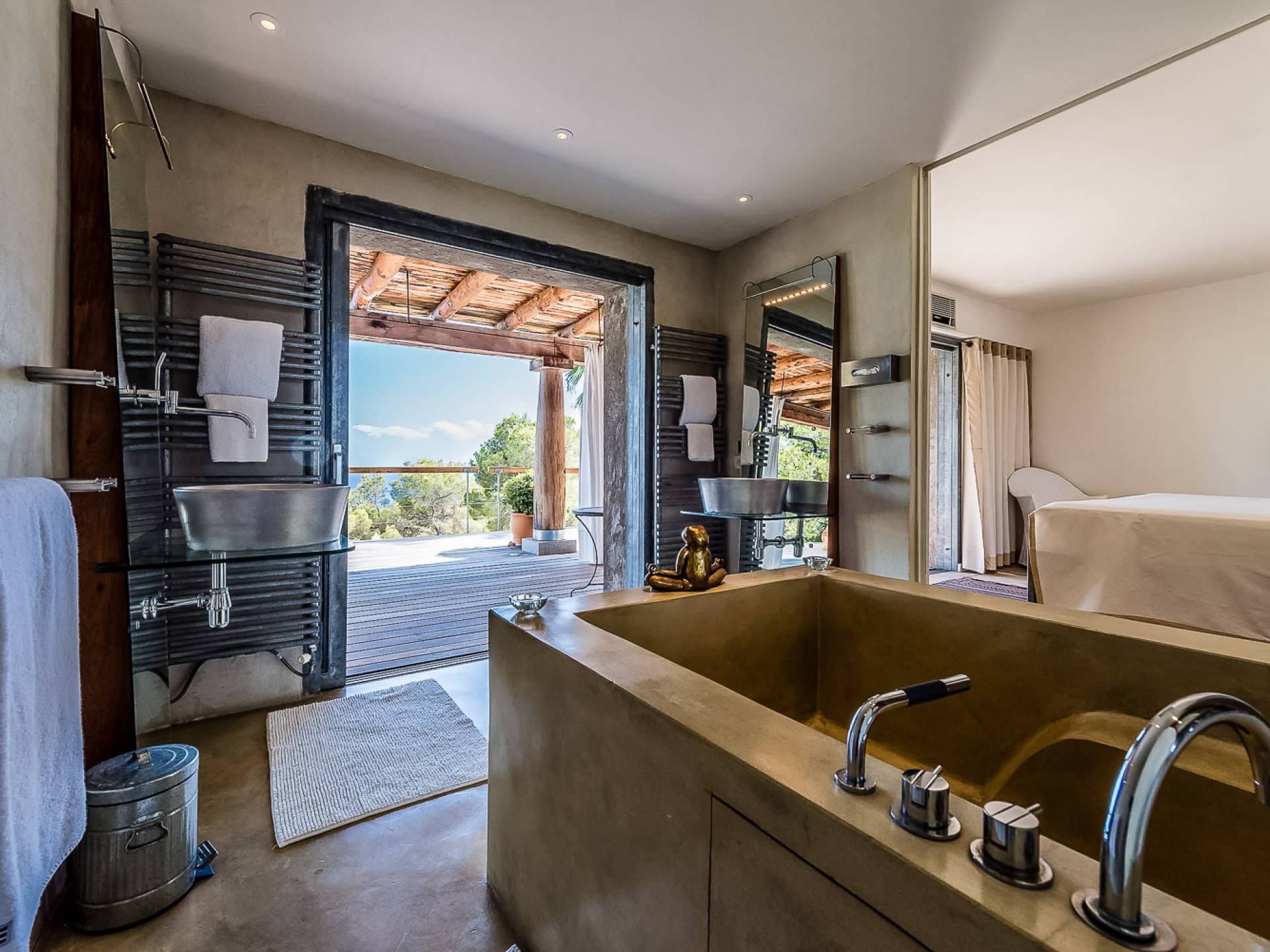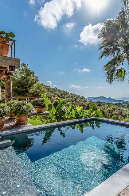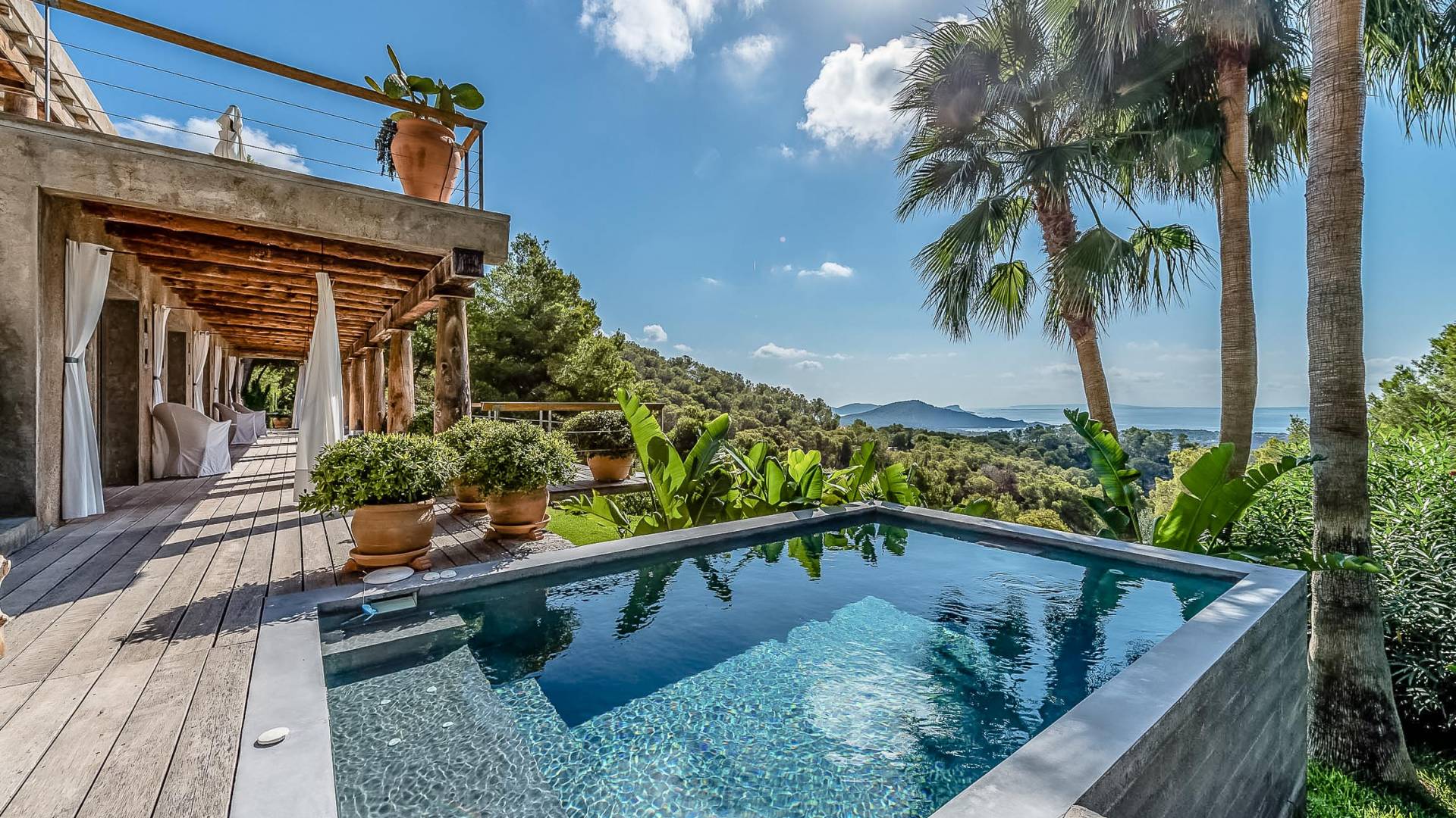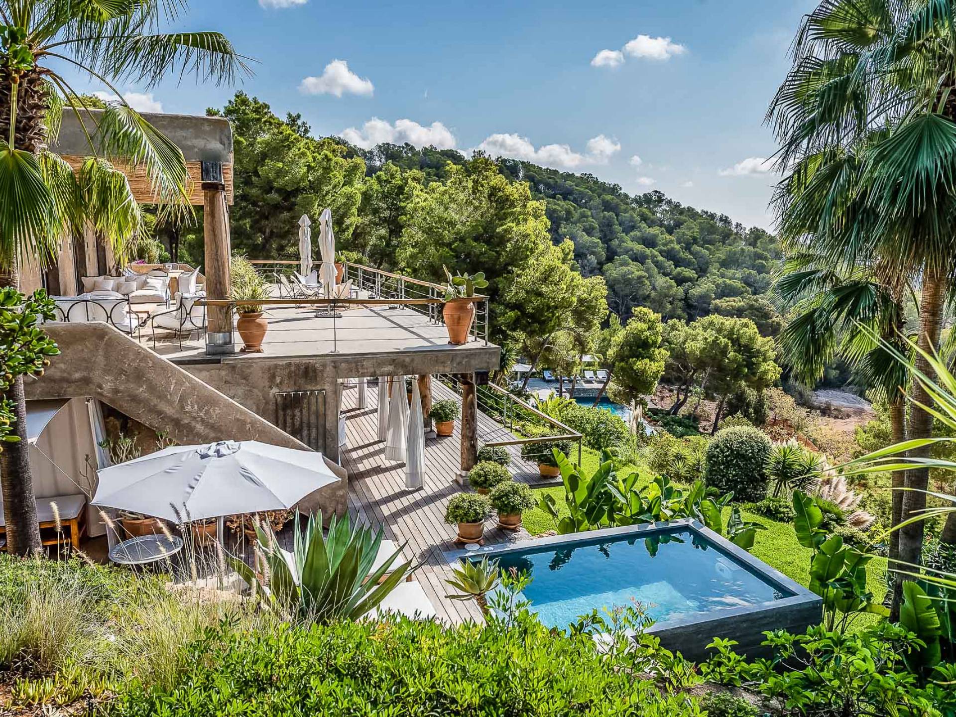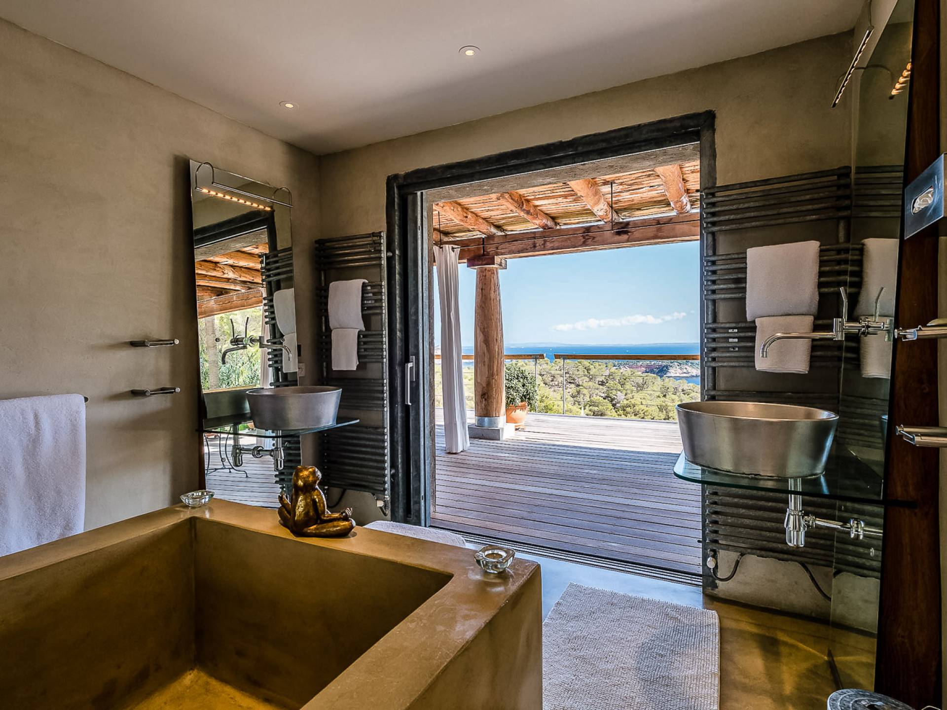 Villa Yama Ibiza est une location de villa de luxe avec 6 chambres et une piscine privée. Propriété au design unique située au milieu de la forêt avec une vue imprenable sur la mer. La Villa Yama Ibiza est une incroyable villa de six chambres (toutes avec salle de bains privative), située à proximité d'Es Cubells, de Porroig et de la plage de Cala Jondal. De construction récente, il a une excellente disposition avec une fantastique salle de réception décloisonnée qui donne sur une immense terrasse, avec une vue absolument époustouflante sur la magnifique mer Méditerranée. Villa Yama Ibiza est une propriété idéale, pour les familles ou les groupes, à la recherche d'une location de villa de luxe dans un endroit magnifique.