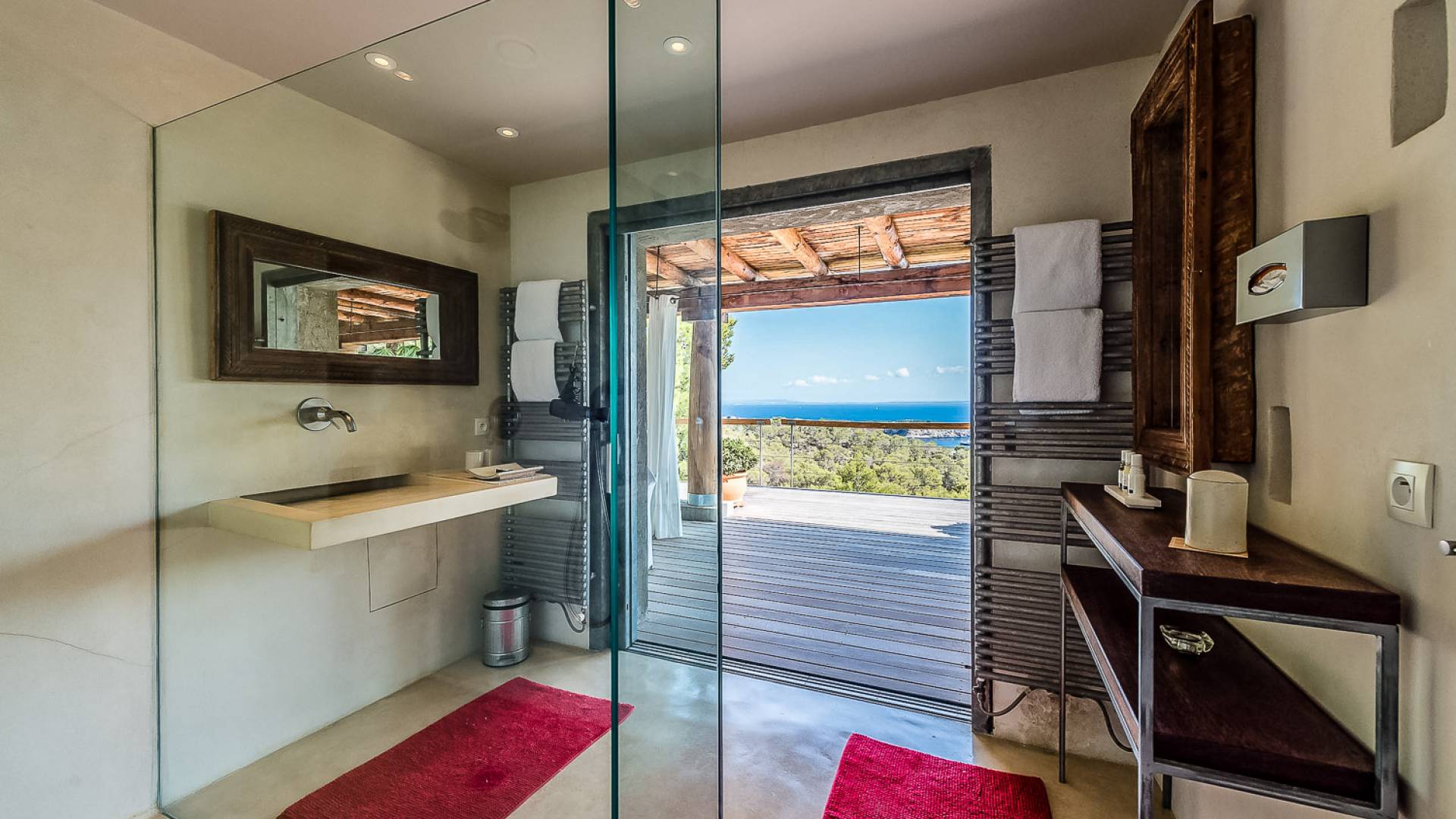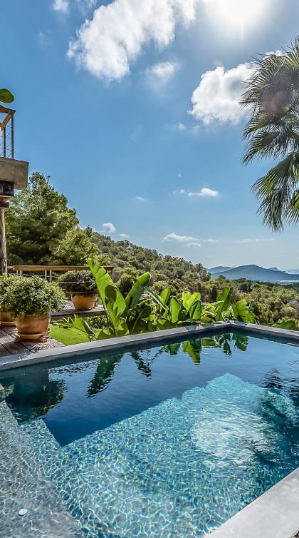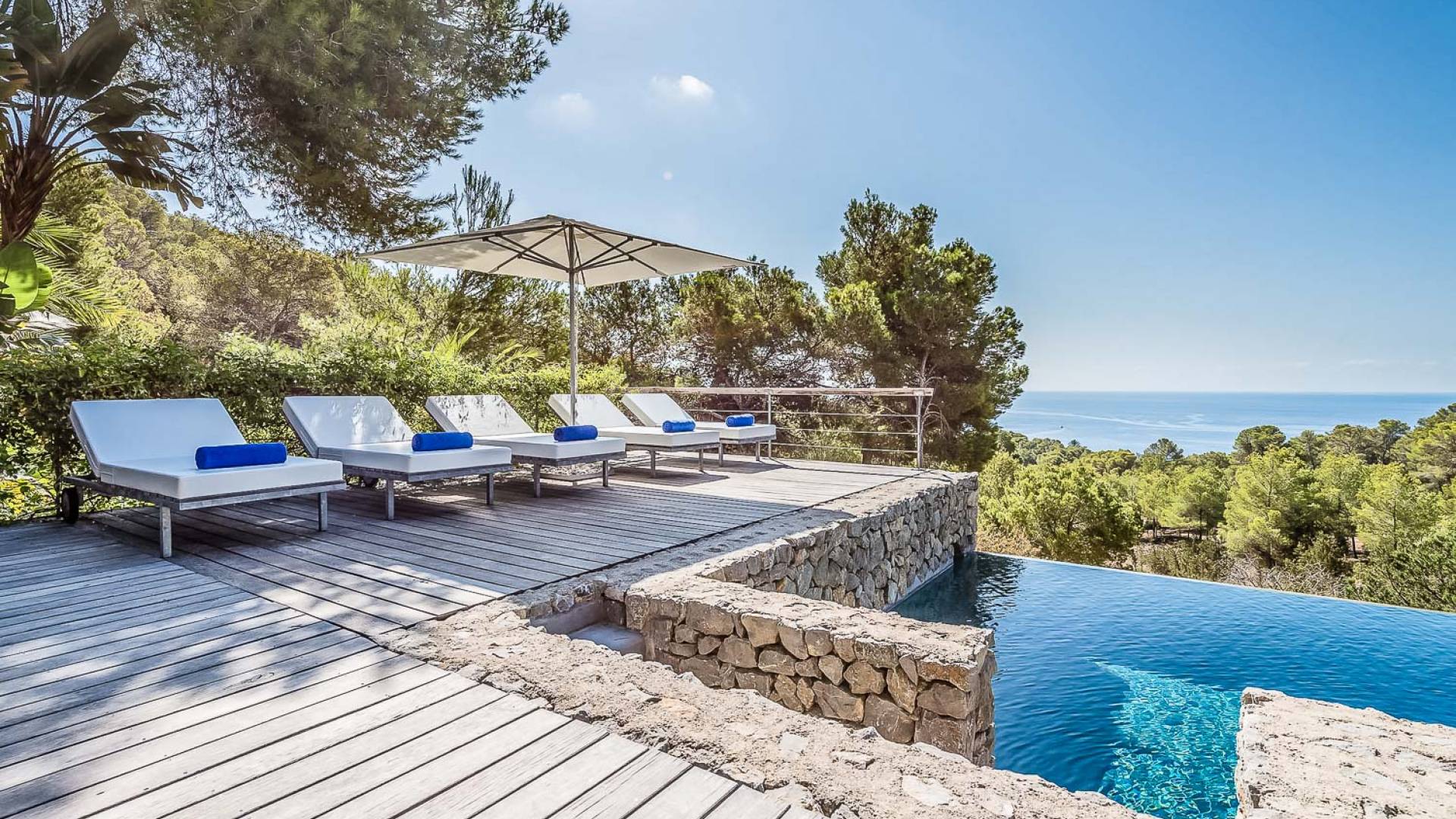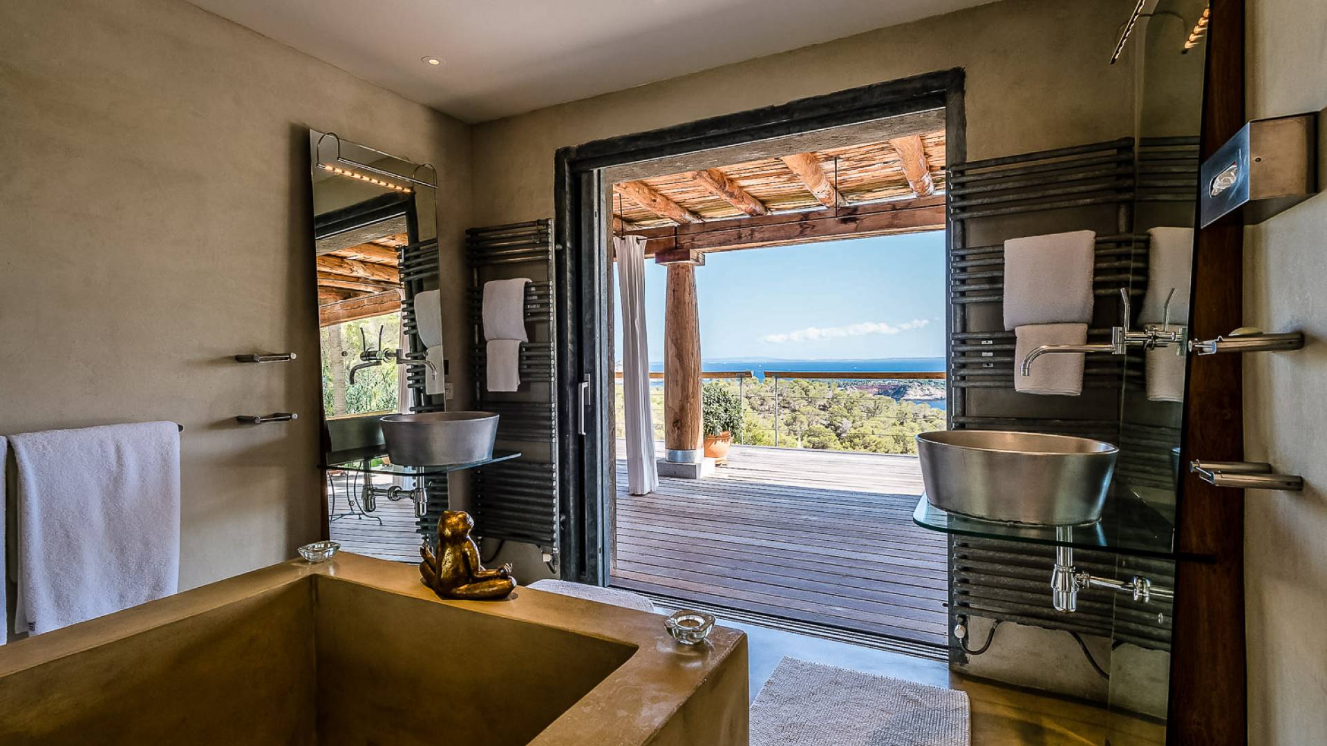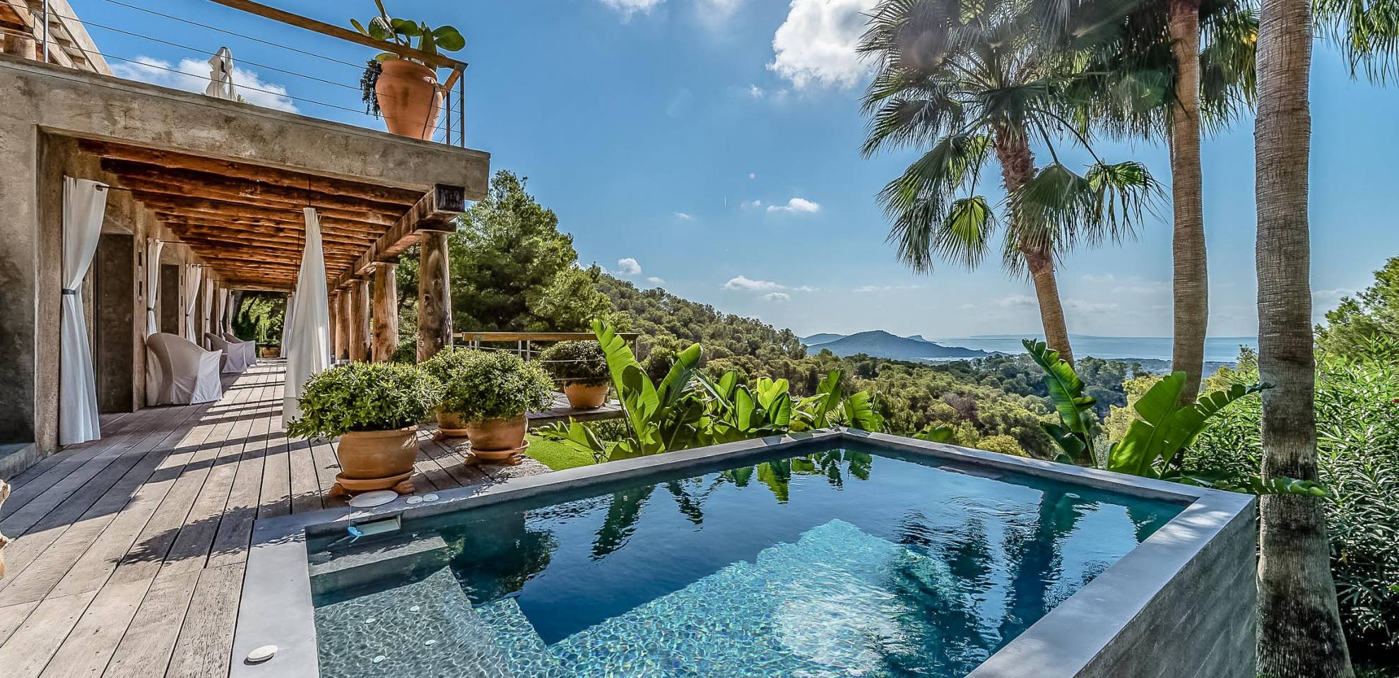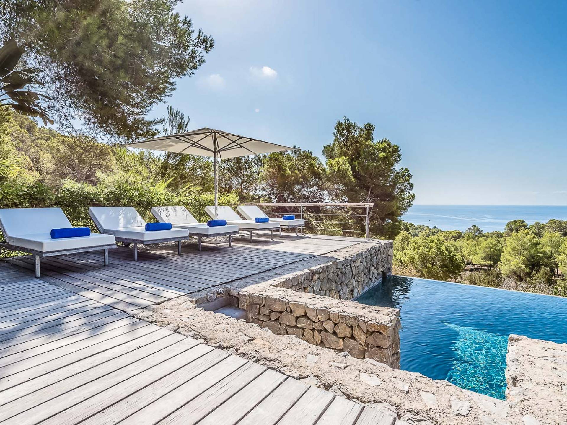Villa Yama Ibiza est une location de villa de luxe avec 6 chambres et une piscine privée. Propriété au design unique située au milieu de la forêt avec une vue imprenable sur la mer. La Villa Yama Ibiza est une incroyable villa de six chambres (toutes avec salle de bains privative), située à proximité d'Es Cubells, de Porroig et de la plage de Cala Jondal. De construction récente, il a une excellente disposition avec une fantastique salle de réception décloisonnée qui donne sur une immense terrasse, avec une vue absolument époustouflante sur la magnifique mer Méditerranée. Villa Yama Ibiza est une propriété idéale, pour les familles ou les groupes, à la recherche d'une location de villa de luxe dans un endroit magnifique.