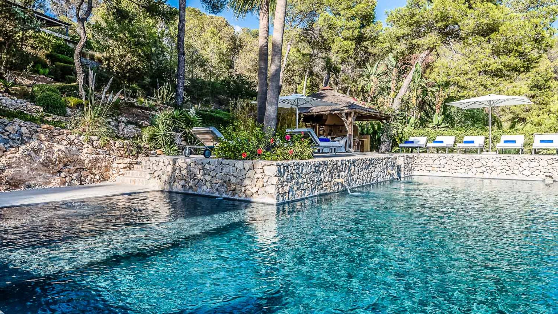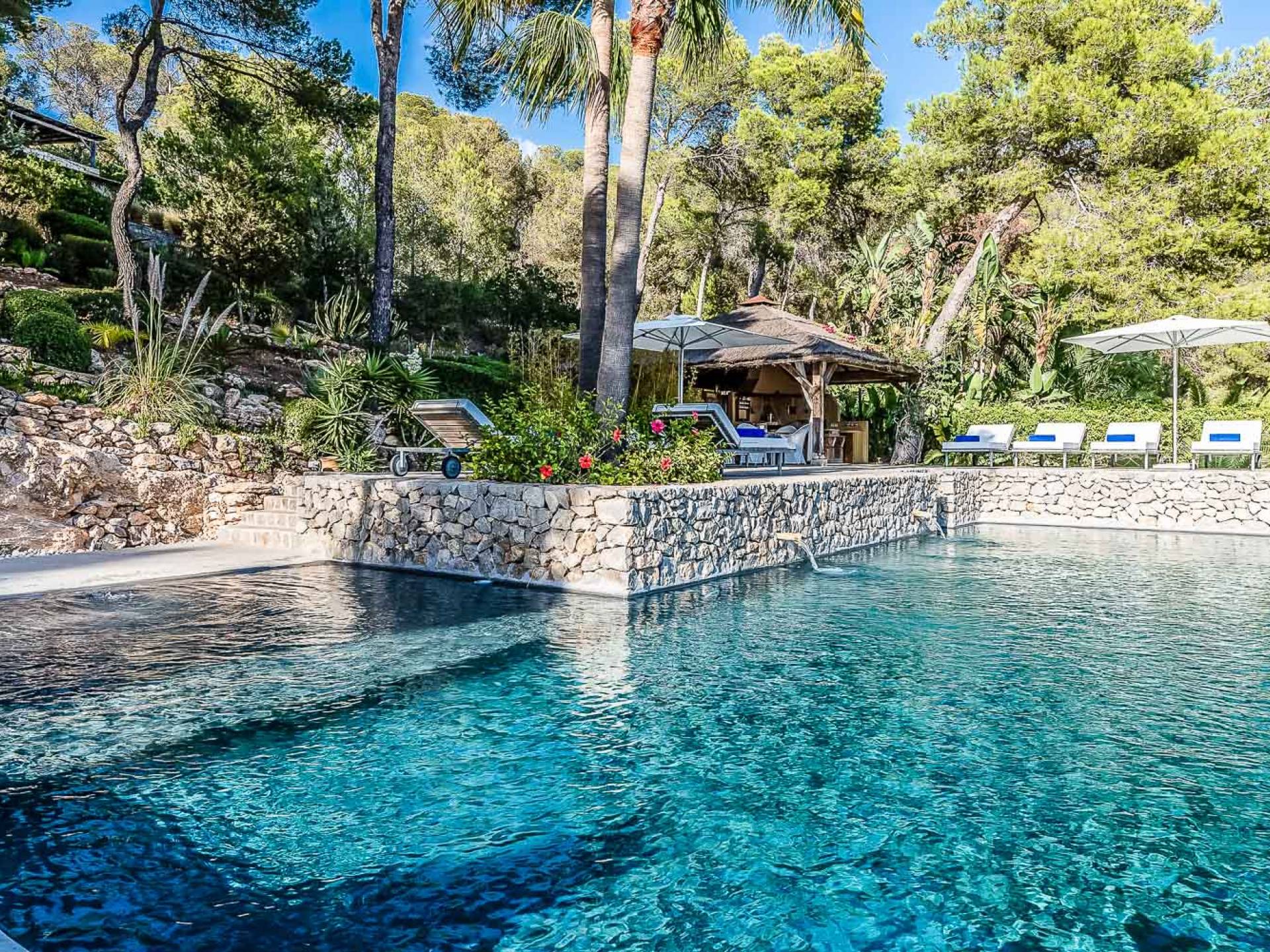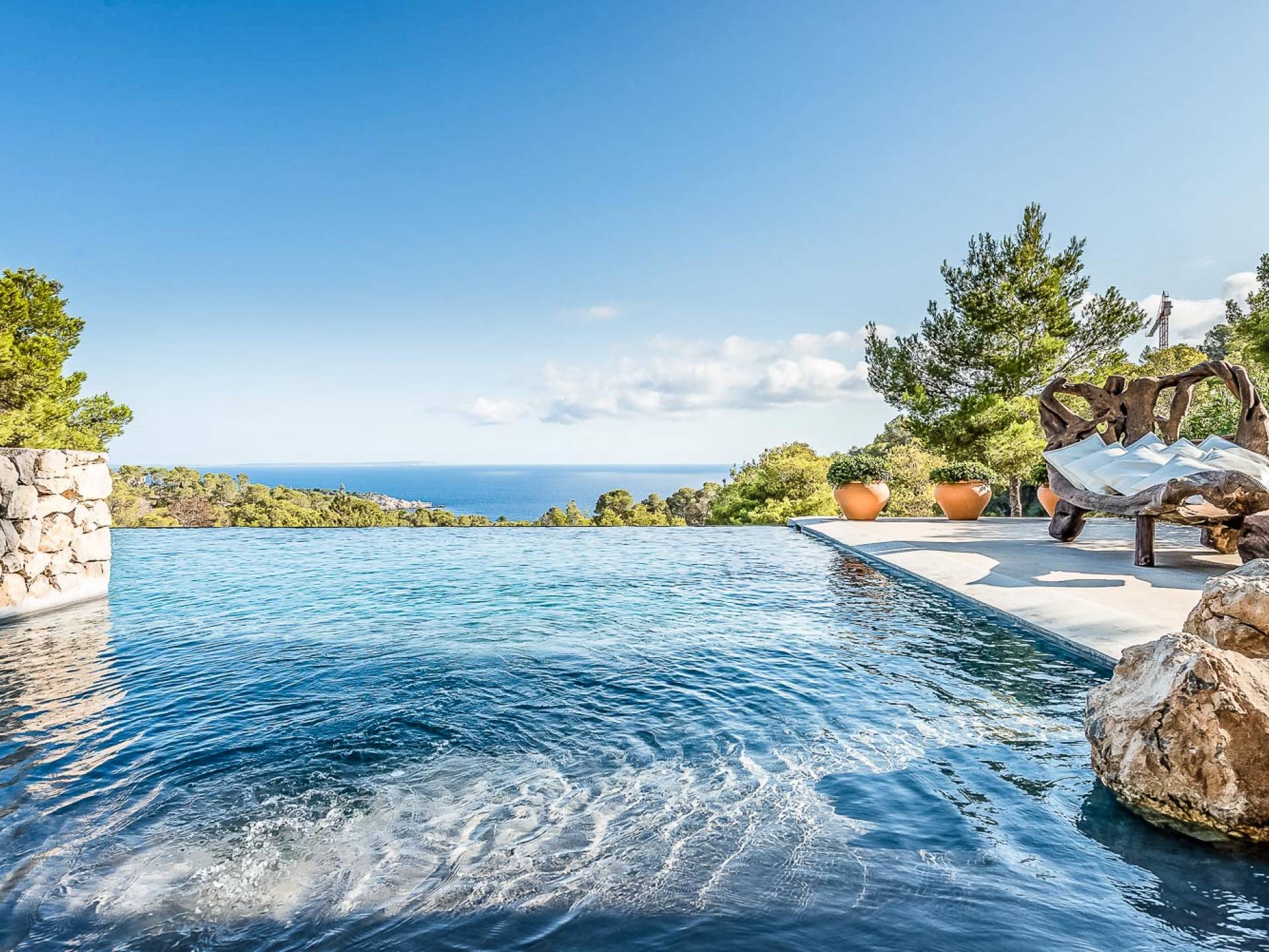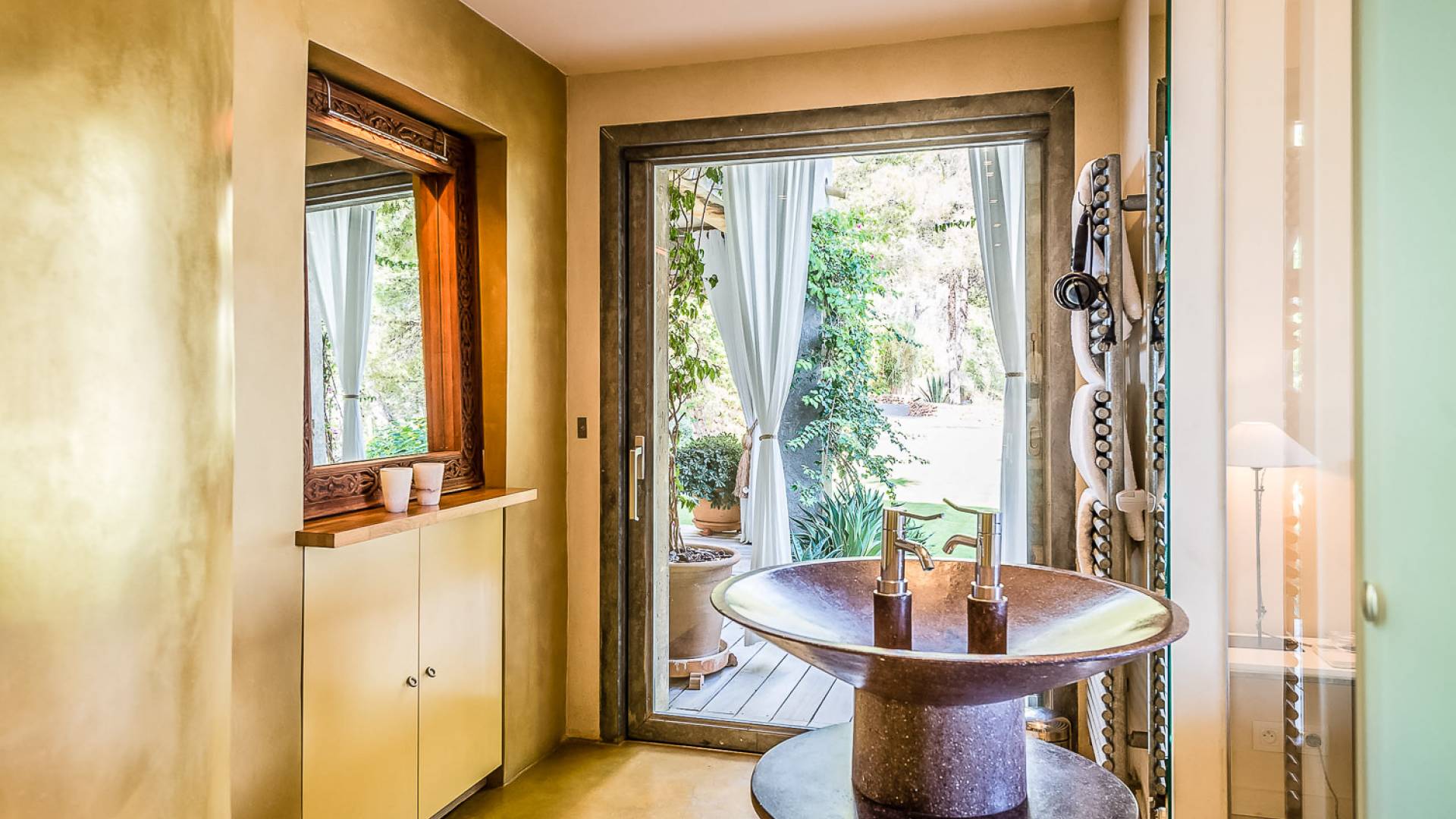 Villa Yama Ibiza est une location de villa de luxe avec 6 chambres et une piscine privée. Propriété au design unique située au milieu de la forêt avec une vue imprenable sur la mer. La Villa Yama Ibiza est une incroyable villa de six chambres (toutes avec salle de bains privative), située à proximité d'Es Cubells, de Porroig et de la plage de Cala Jondal. De construction récente, il a une excellente disposition avec une fantastique salle de réception décloisonnée qui donne sur une immense terrasse, avec une vue absolument époustouflante sur la magnifique mer Méditerranée. Villa Yama Ibiza est une propriété idéale, pour les familles ou les groupes, à la recherche d'une location de villa de luxe dans un endroit magnifique.