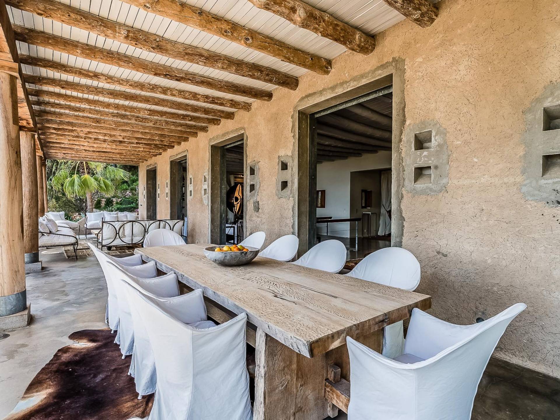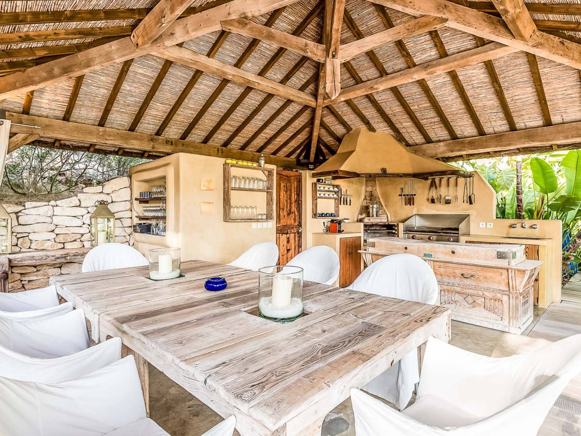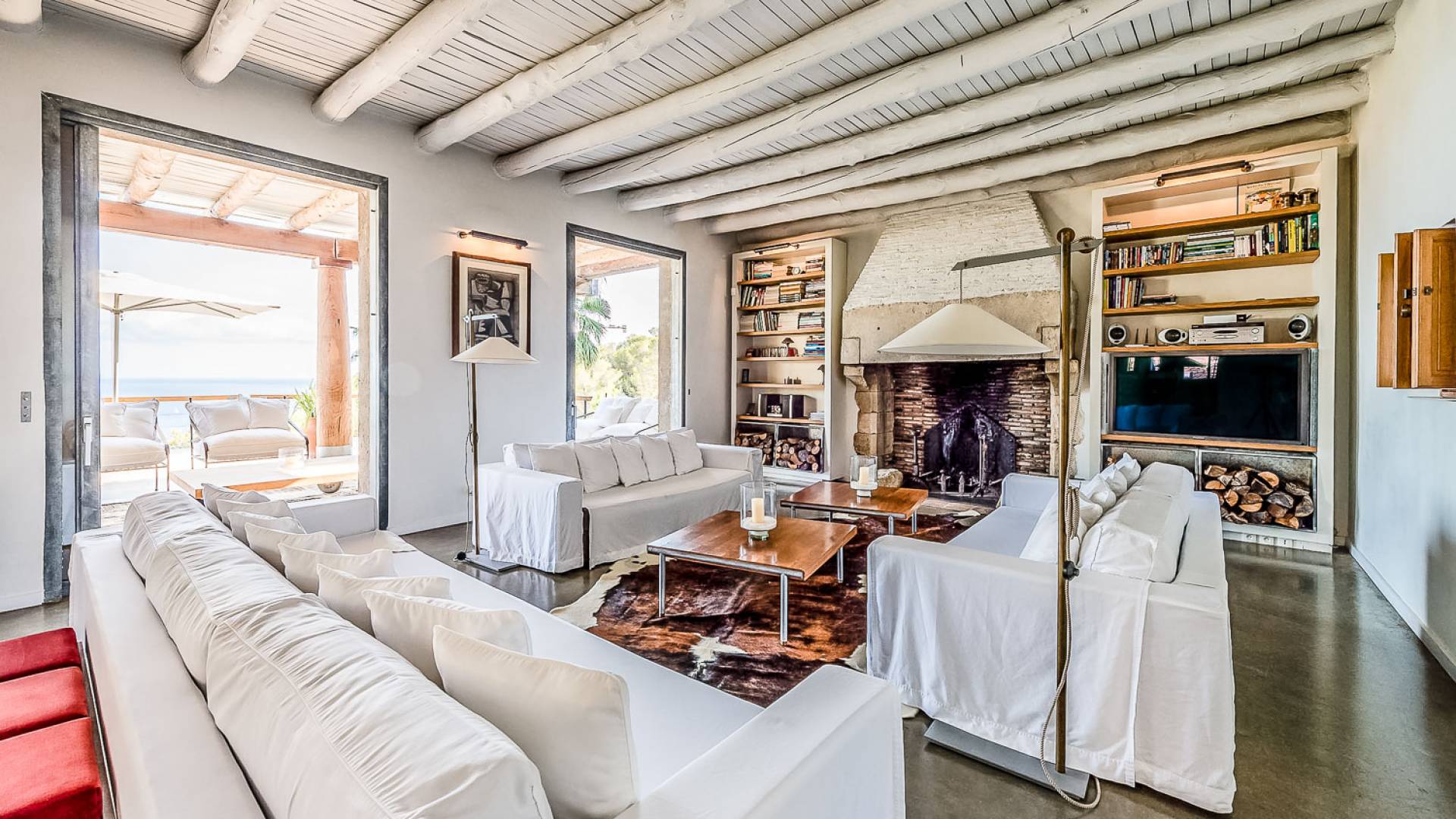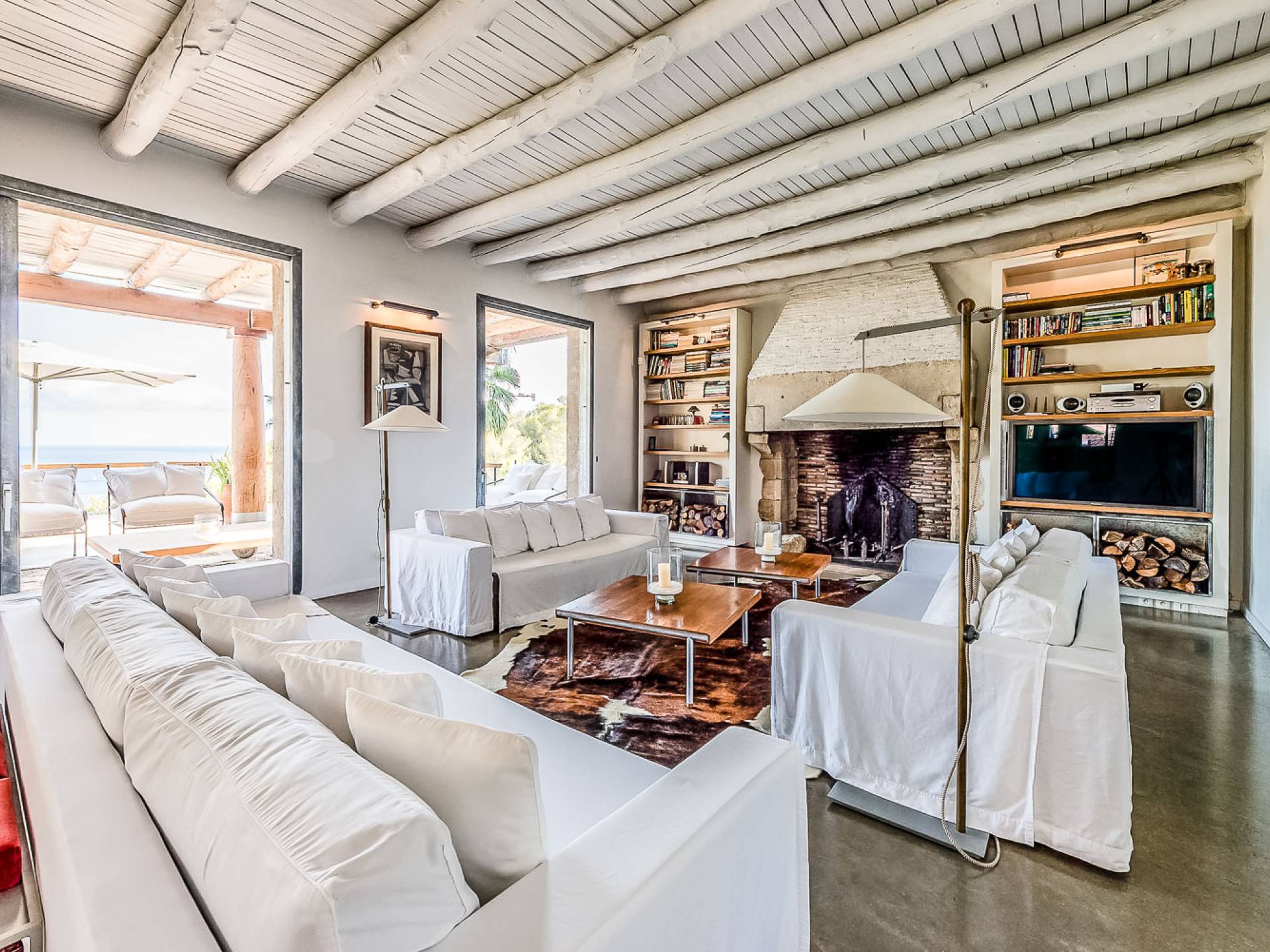 À l'intérieur de la Villa Yama Ibiza, les espaces de vie spacieux ont été magnifiquement conçus et meublés à un niveau exceptionnellement élevé. Il y a une grande salle de réception avec des canapés confortables menant à une cuisine américaine entièrement équipée. Les deux espaces bénéficient de plusieurs portes-fenêtres qui mènent à l'immense terrasse. La terrasse est meublée avec divers coins salon, repas et détente, où vous pourrez vous détendre et profiter de la vue spectaculaire sur la mer.