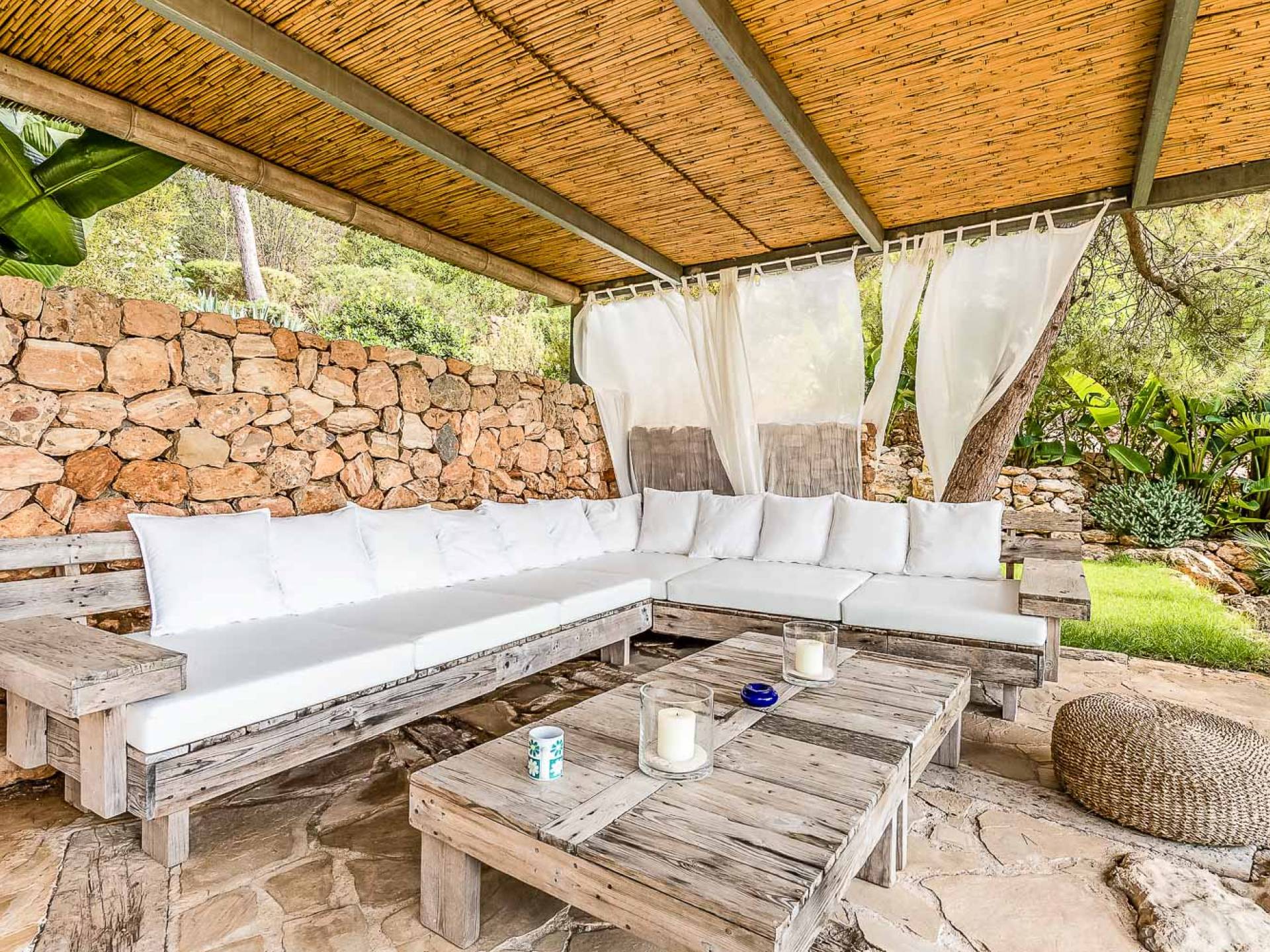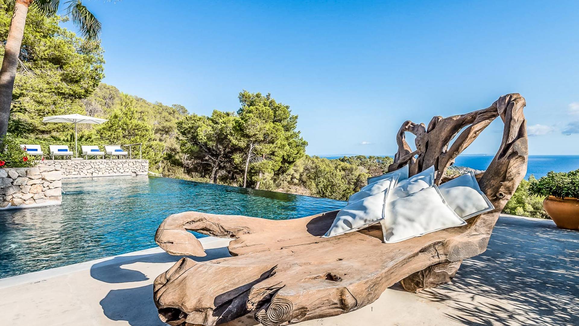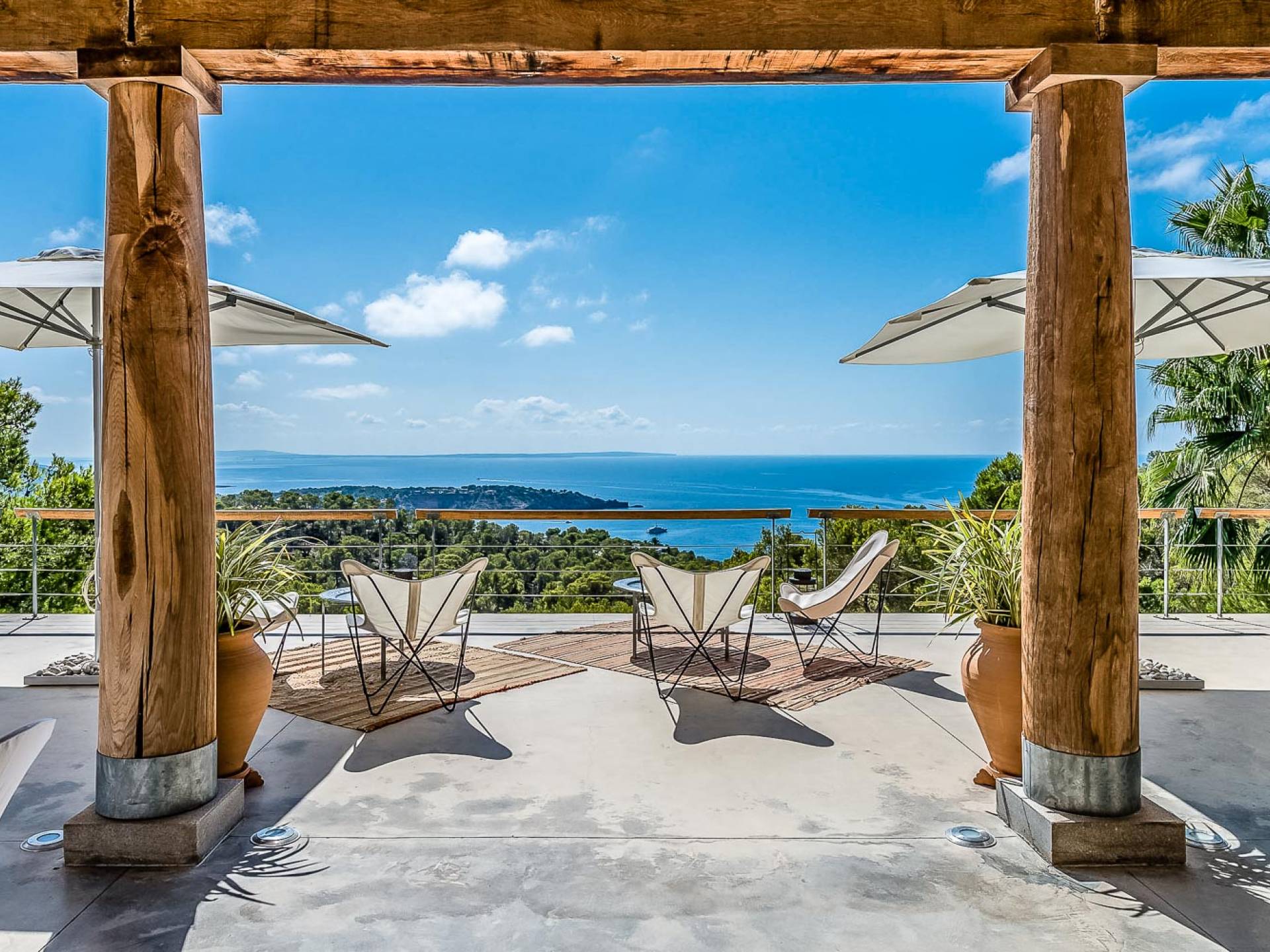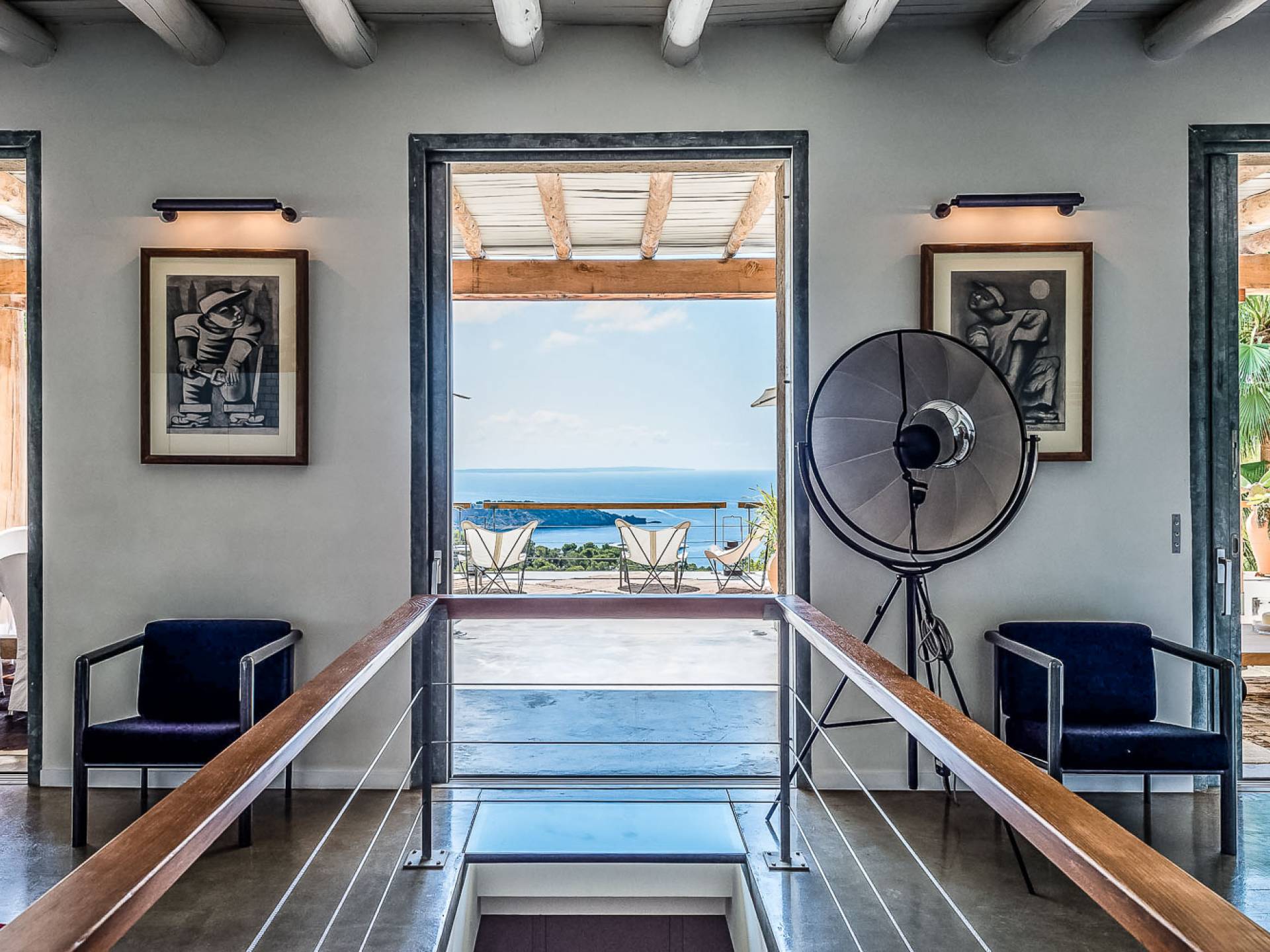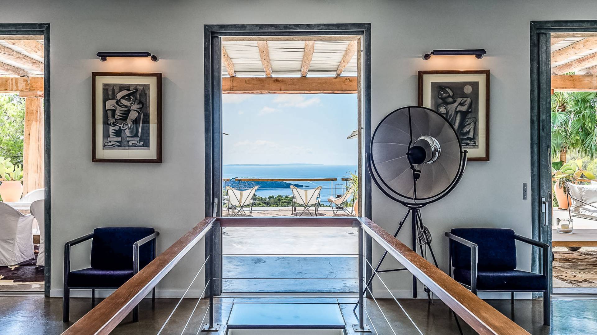 À l'intérieur de la Villa Yama Ibiza, les espaces de vie spacieux ont été magnifiquement conçus et meublés à un niveau exceptionnellement élevé. Il y a une grande salle de réception avec des canapés confortables menant à une cuisine américaine entièrement équipée. Les deux espaces bénéficient de plusieurs portes-fenêtres qui mènent à l'immense terrasse. La terrasse est meublée avec divers coins salon, repas et détente, où vous pourrez vous détendre et profiter de la vue spectaculaire sur la mer.