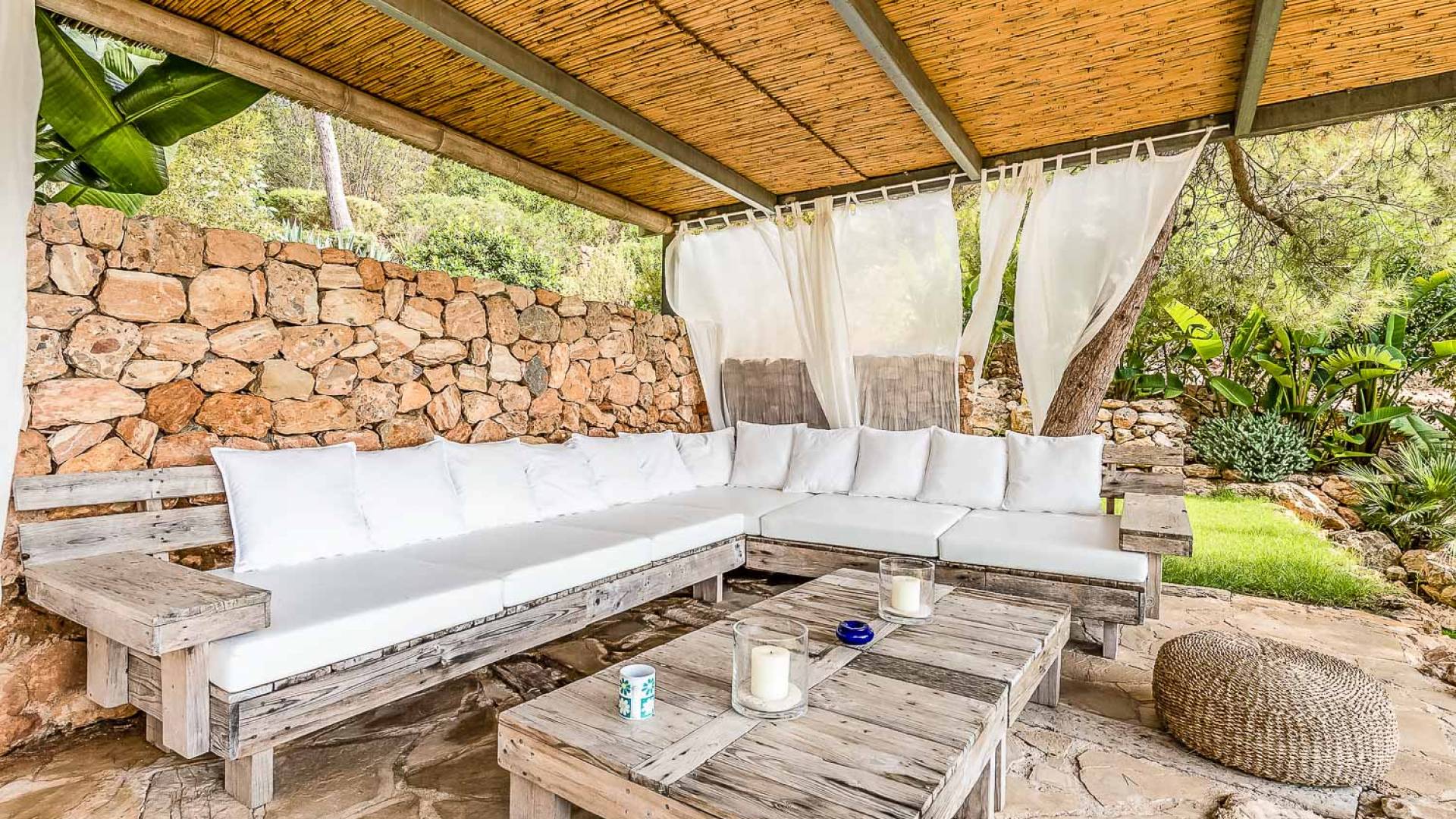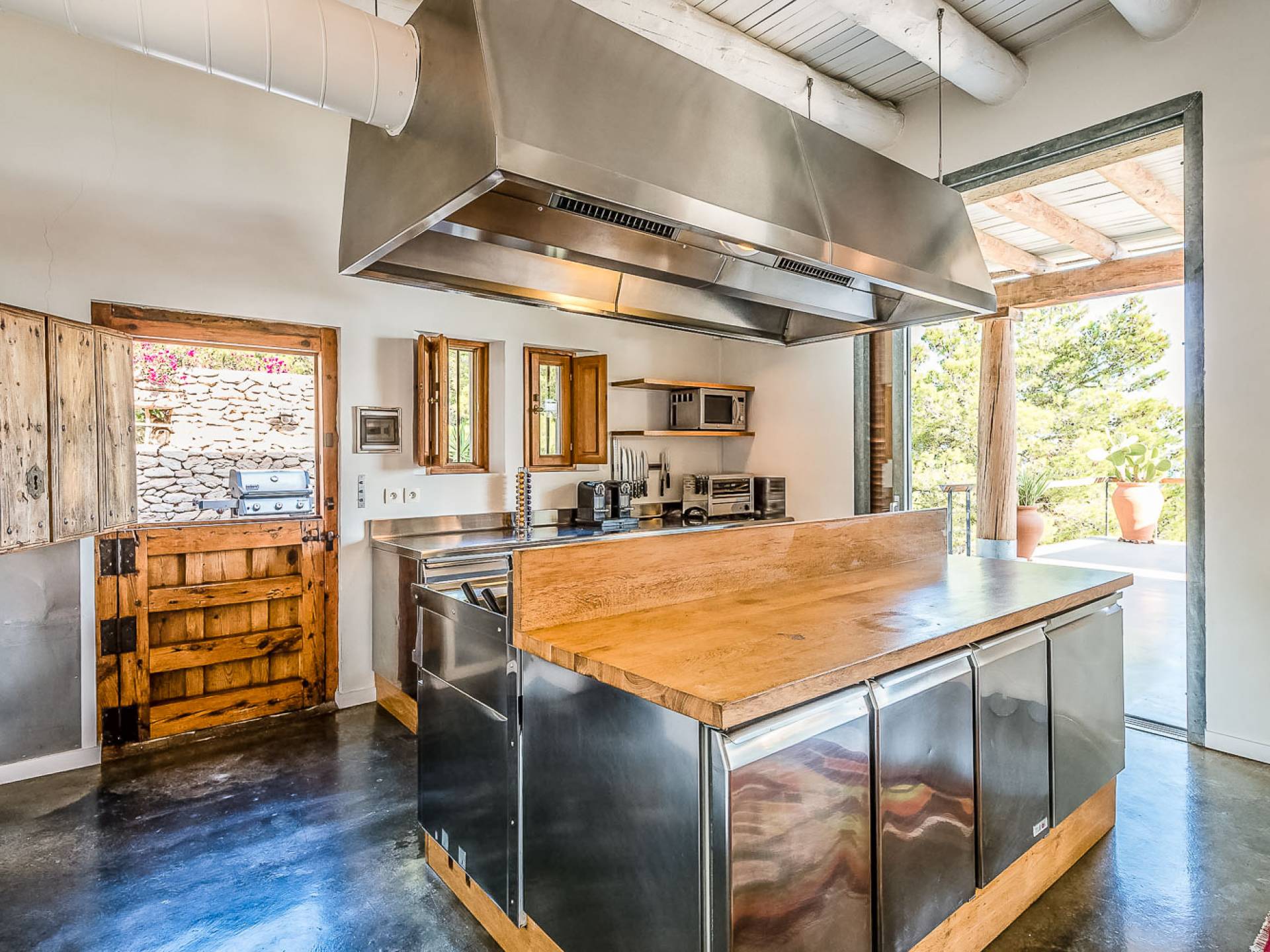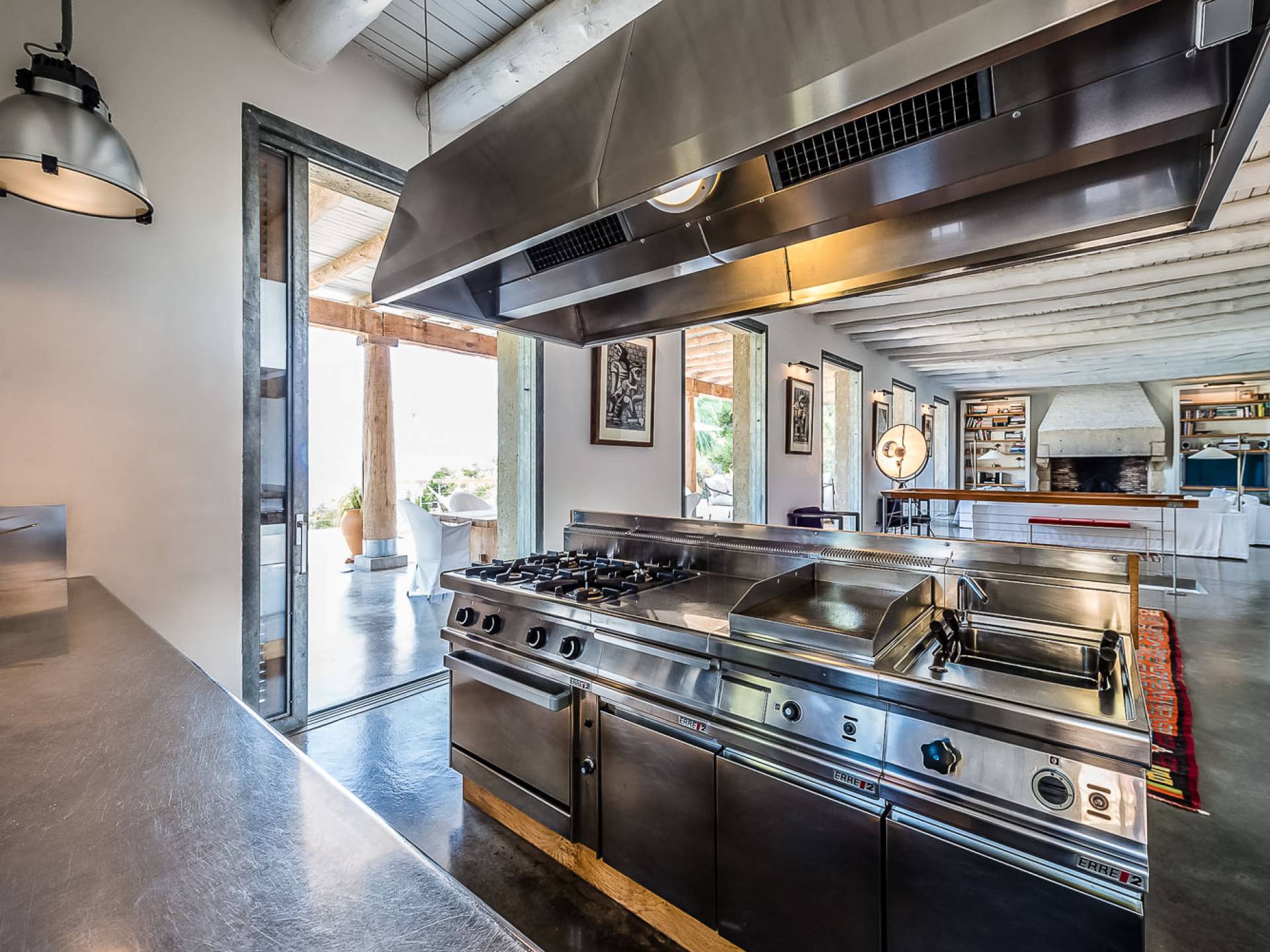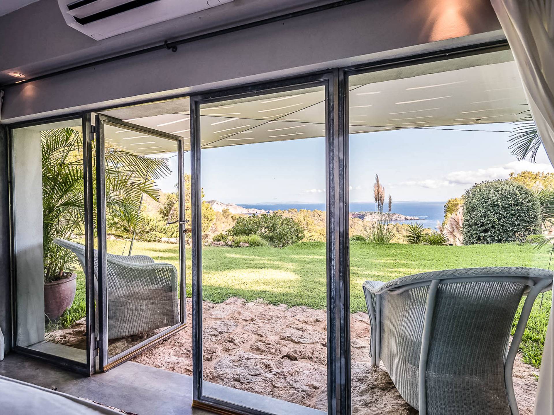 À l'intérieur de la Villa Yama Ibiza, les espaces de vie spacieux ont été magnifiquement conçus et meublés à un niveau exceptionnellement élevé. Il y a une grande salle de réception avec des canapés confortables menant à une cuisine américaine entièrement équipée. Les deux espaces bénéficient de plusieurs portes-fenêtres qui mènent à l'immense terrasse. La terrasse est meublée avec divers coins salon, repas et détente, où vous pourrez vous détendre et profiter de la vue spectaculaire sur la mer.