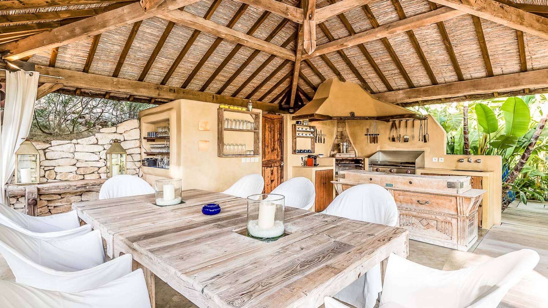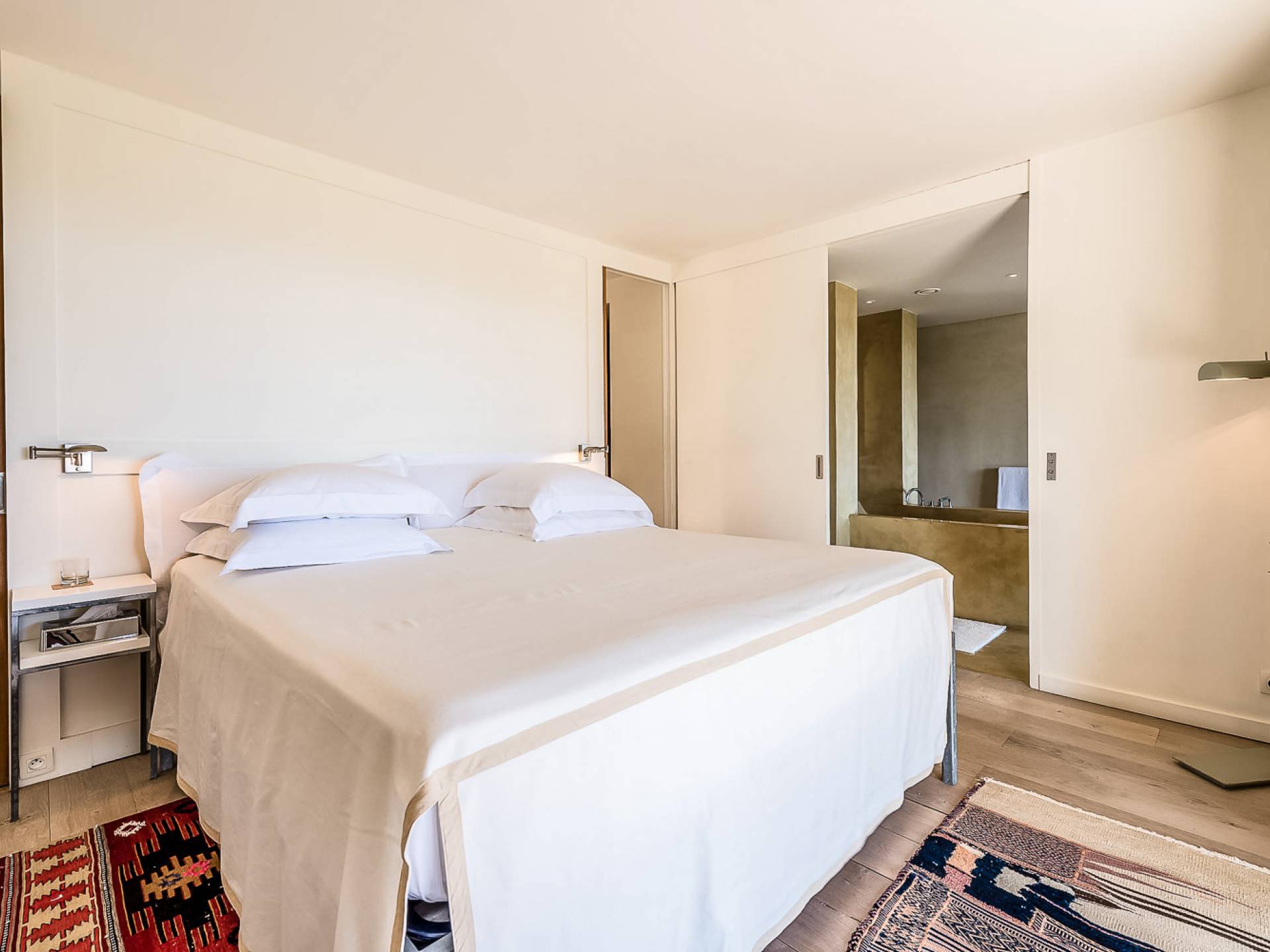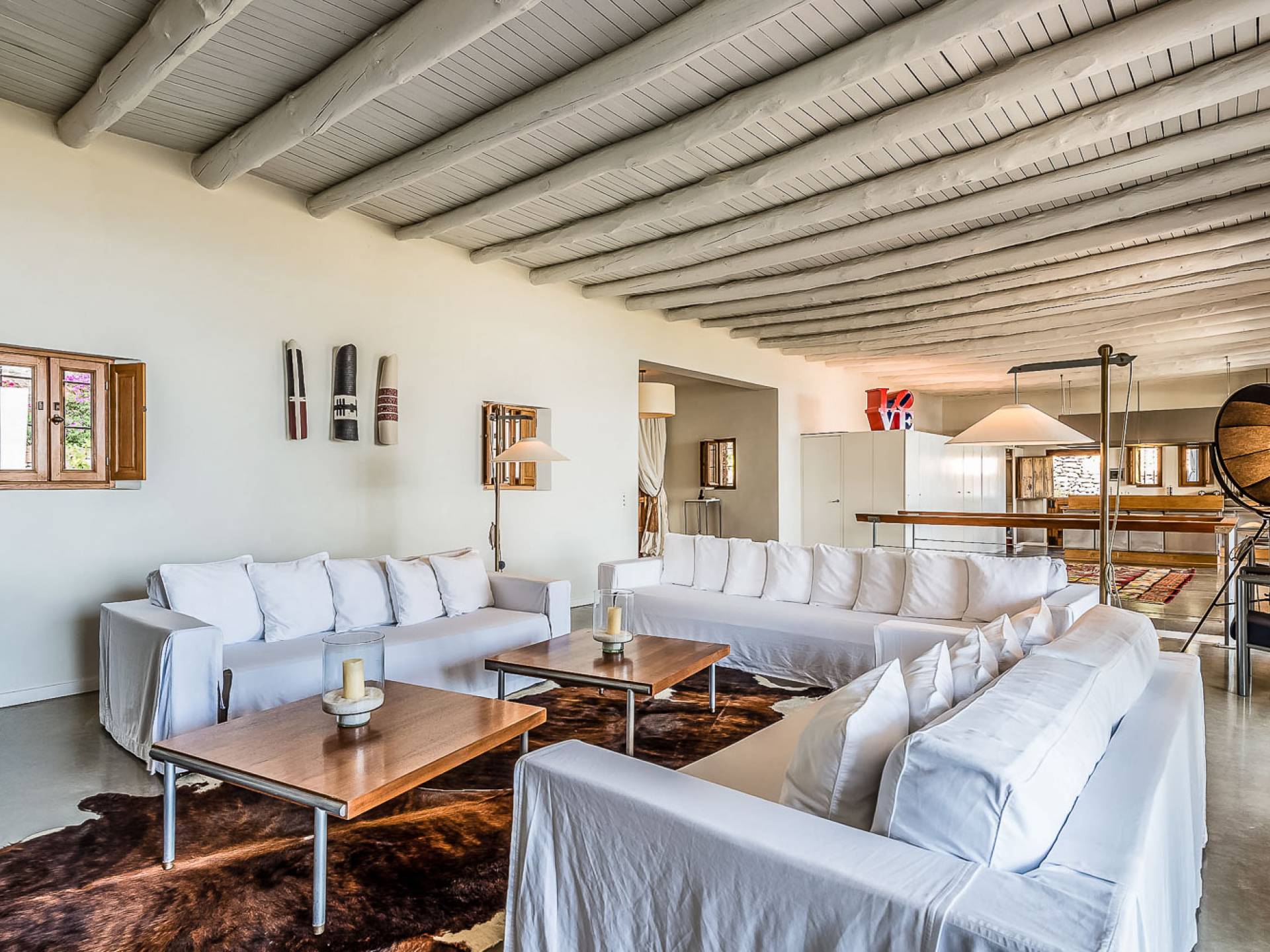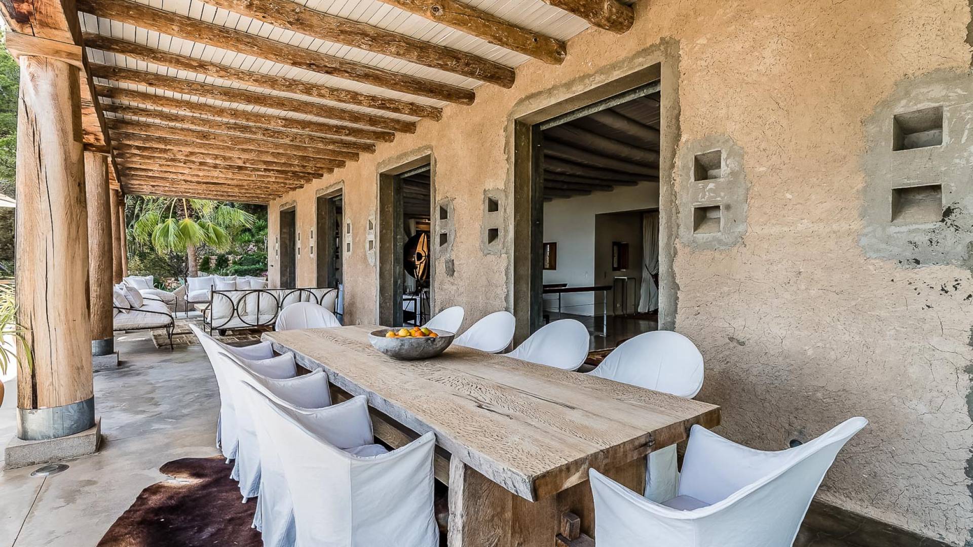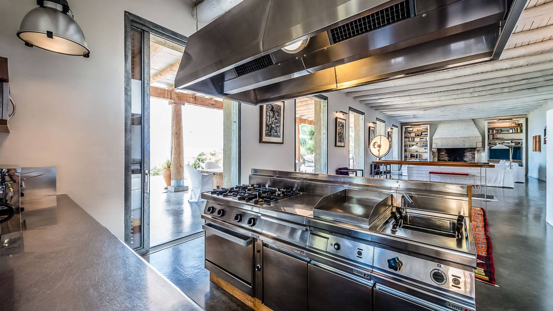 À l'intérieur de la Villa Yama Ibiza, les espaces de vie spacieux ont été magnifiquement conçus et meublés à un niveau exceptionnellement élevé. Il y a une grande salle de réception avec des canapés confortables menant à une cuisine américaine entièrement équipée. Les deux espaces bénéficient de plusieurs portes-fenêtres qui mènent à l'immense terrasse. La terrasse est meublée avec divers coins salon, repas et détente, où vous pourrez vous détendre et profiter de la vue spectaculaire sur la mer.