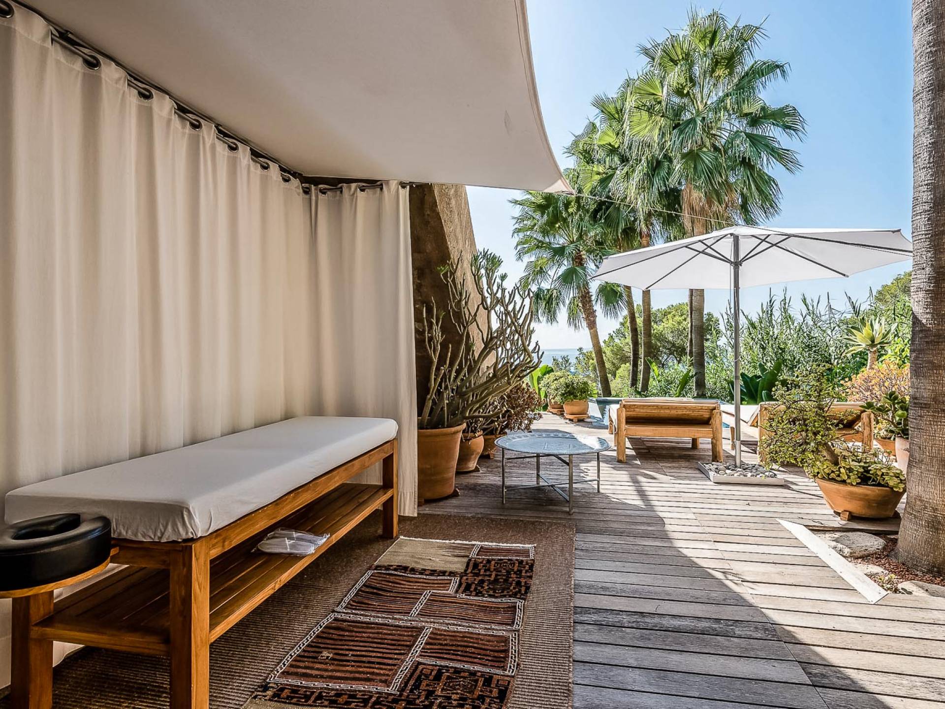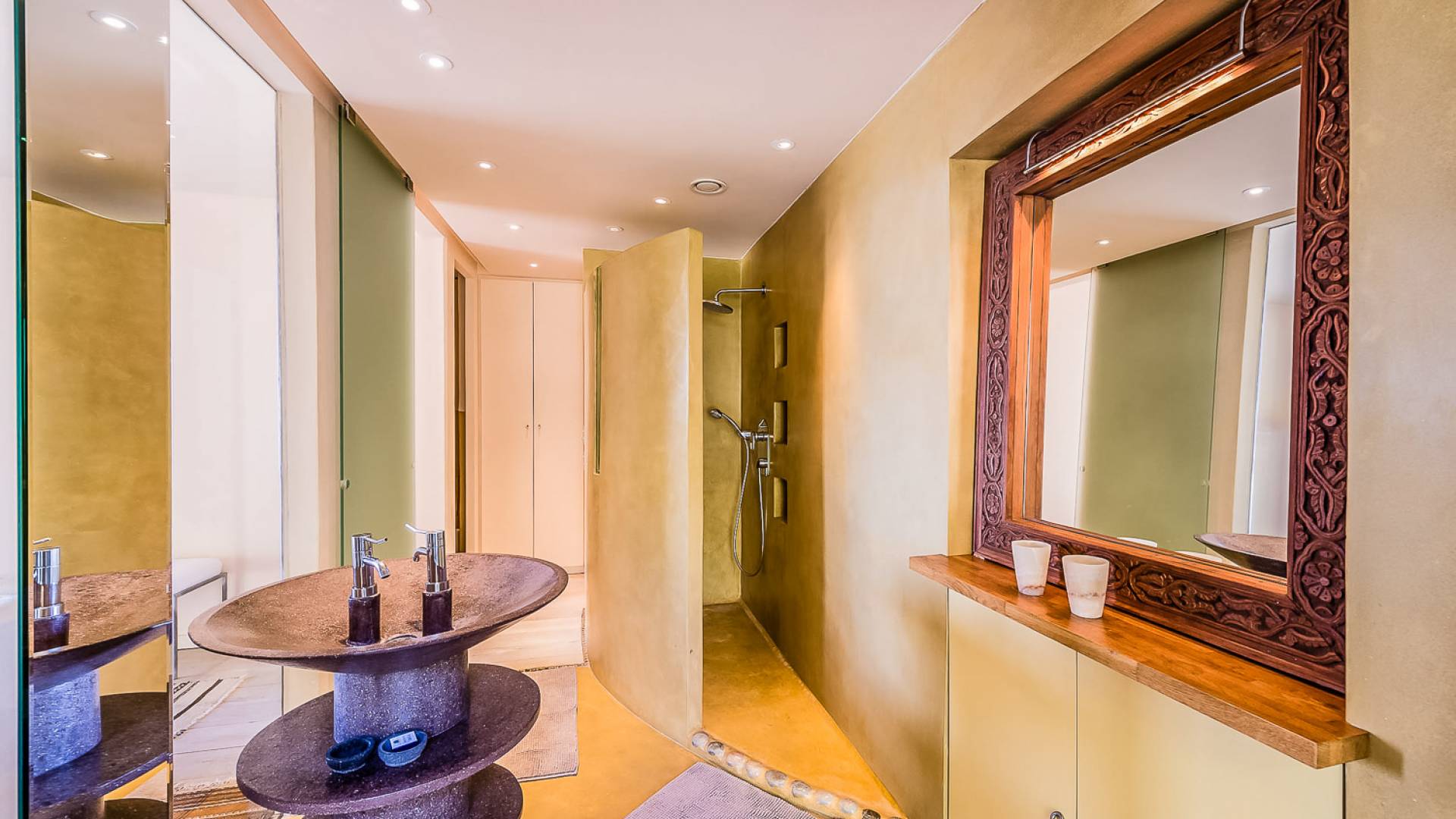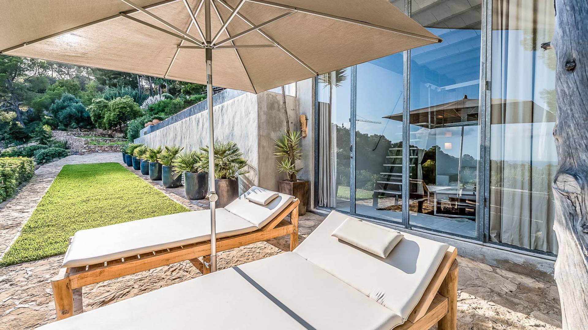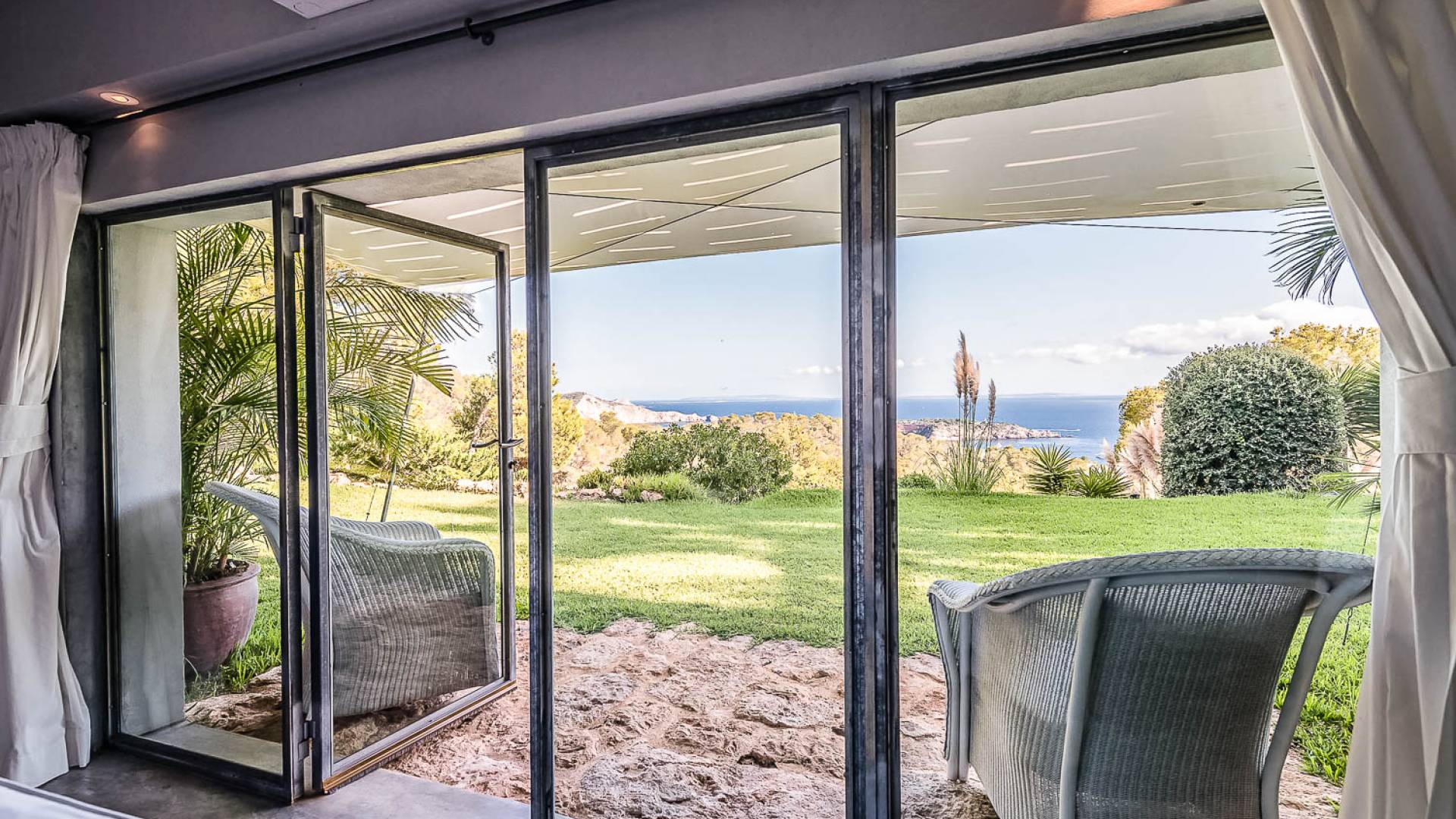 À l'intérieur de la Villa Yama Ibiza, les espaces de vie spacieux ont été magnifiquement conçus et meublés à un niveau exceptionnellement élevé. Il y a une grande salle de réception avec des canapés confortables menant à une cuisine américaine entièrement équipée. Les deux espaces bénéficient de plusieurs portes-fenêtres qui mènent à l'immense terrasse. La terrasse est meublée avec divers coins salon, repas et détente, où vous pourrez vous détendre et profiter de la vue spectaculaire sur la mer.