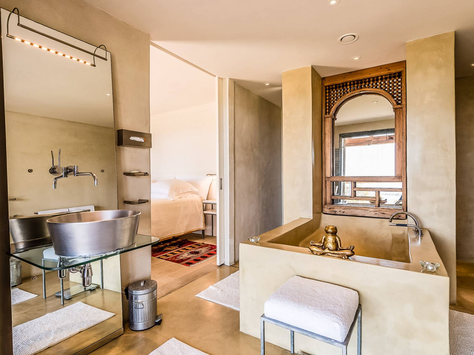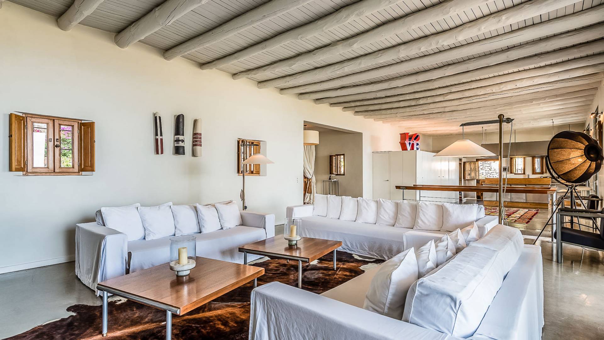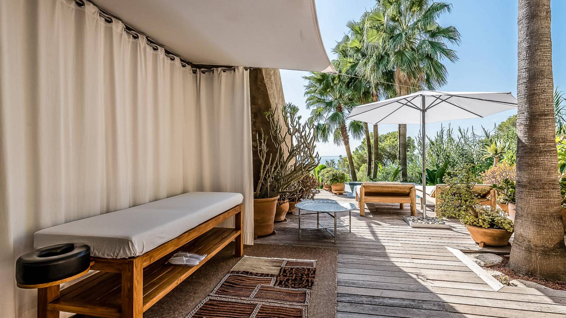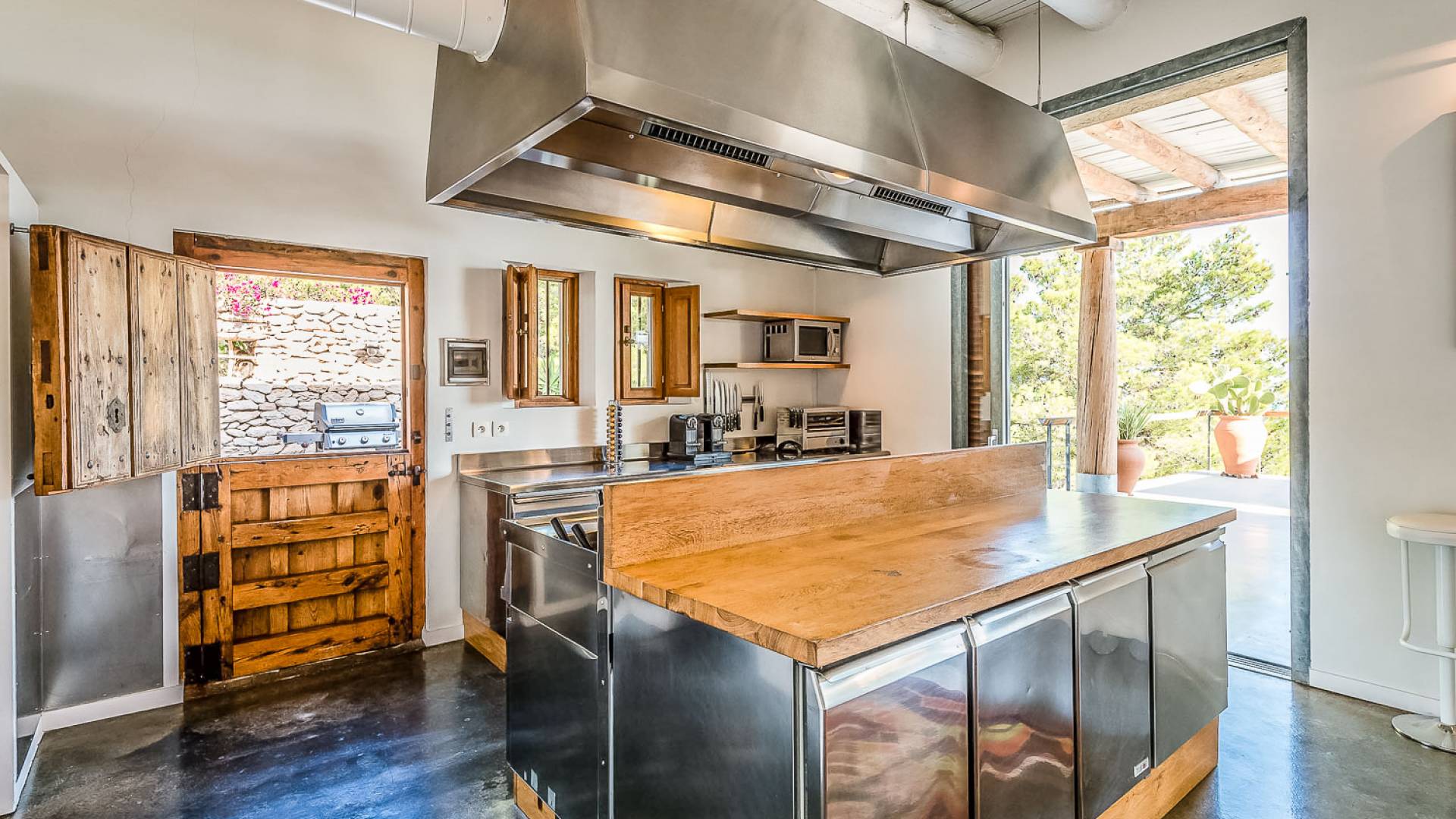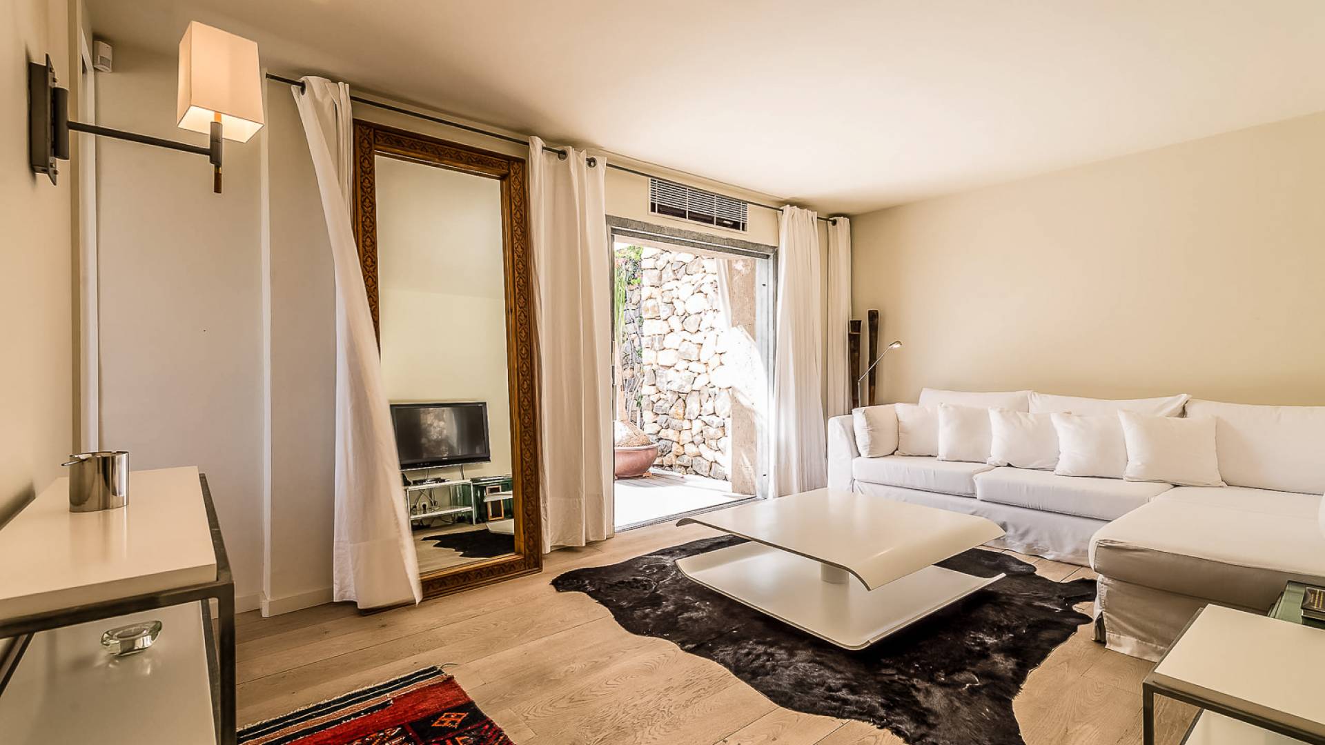 À l'intérieur de la Villa Yama Ibiza, les espaces de vie spacieux ont été magnifiquement conçus et meublés à un niveau exceptionnellement élevé. Il y a une grande salle de réception avec des canapés confortables menant à une cuisine américaine entièrement équipée. Les deux espaces bénéficient de plusieurs portes-fenêtres qui mènent à l'immense terrasse. La terrasse est meublée avec divers coins salon, repas et détente, où vous pourrez vous détendre et profiter de la vue spectaculaire sur la mer.