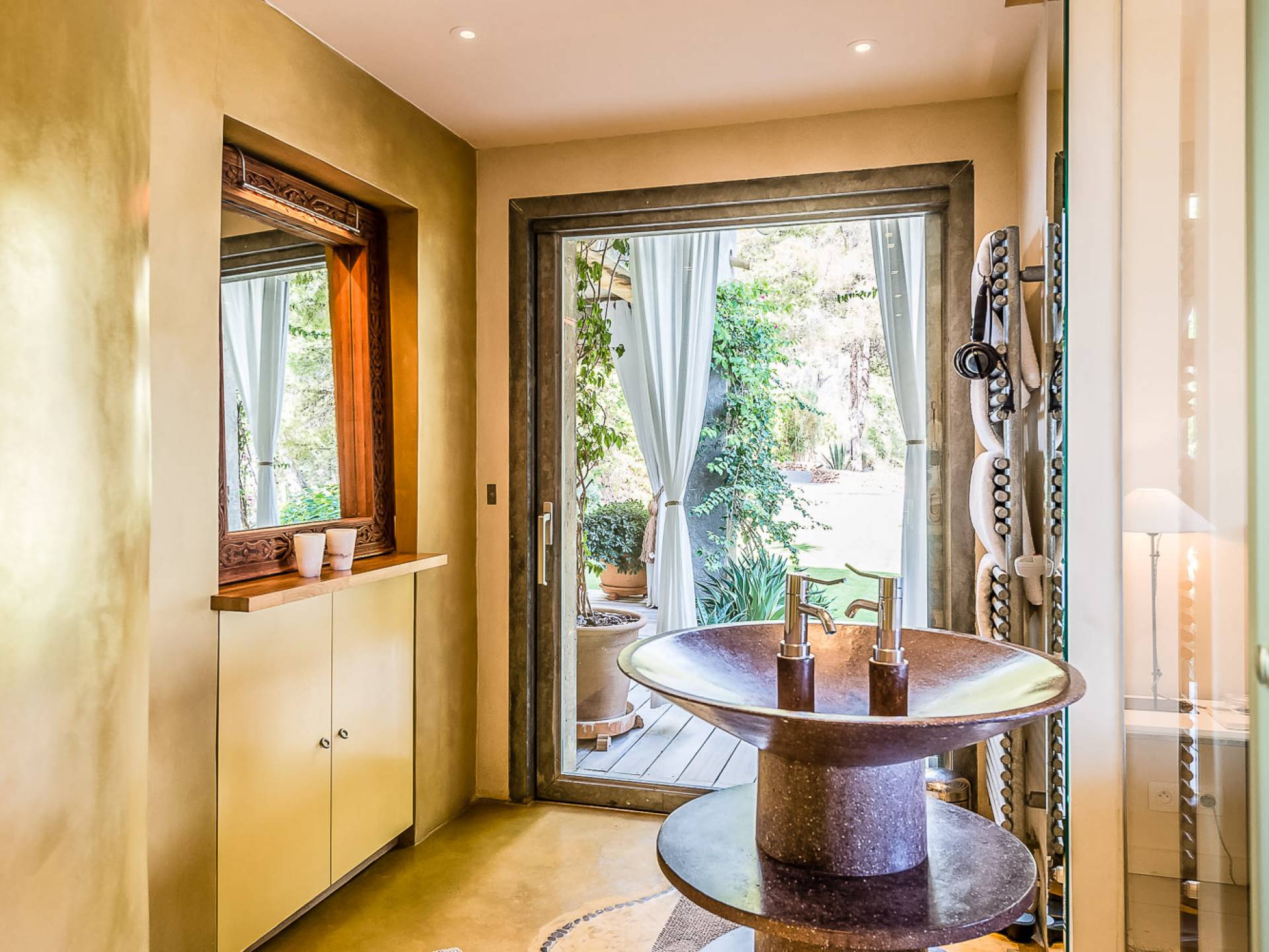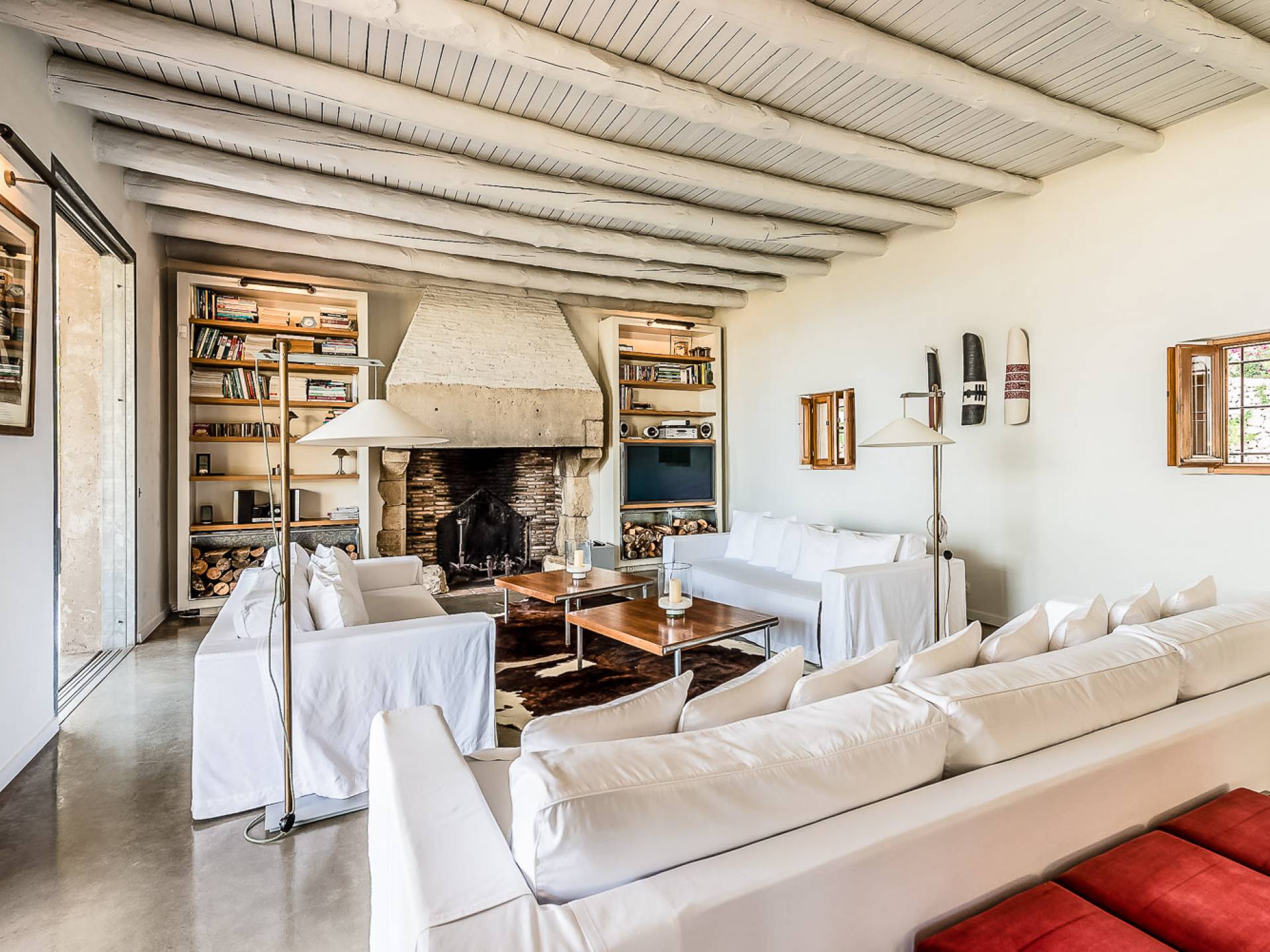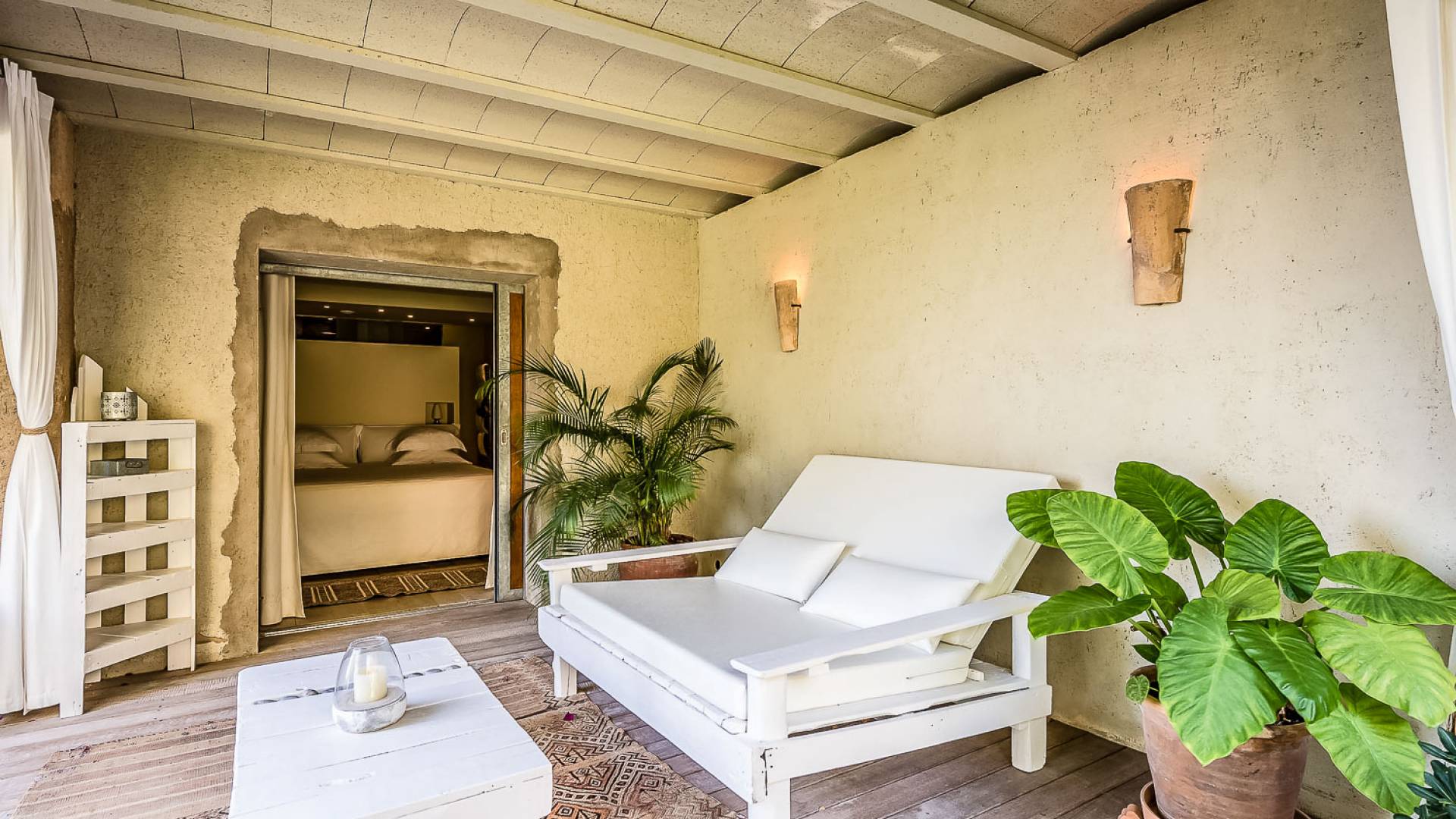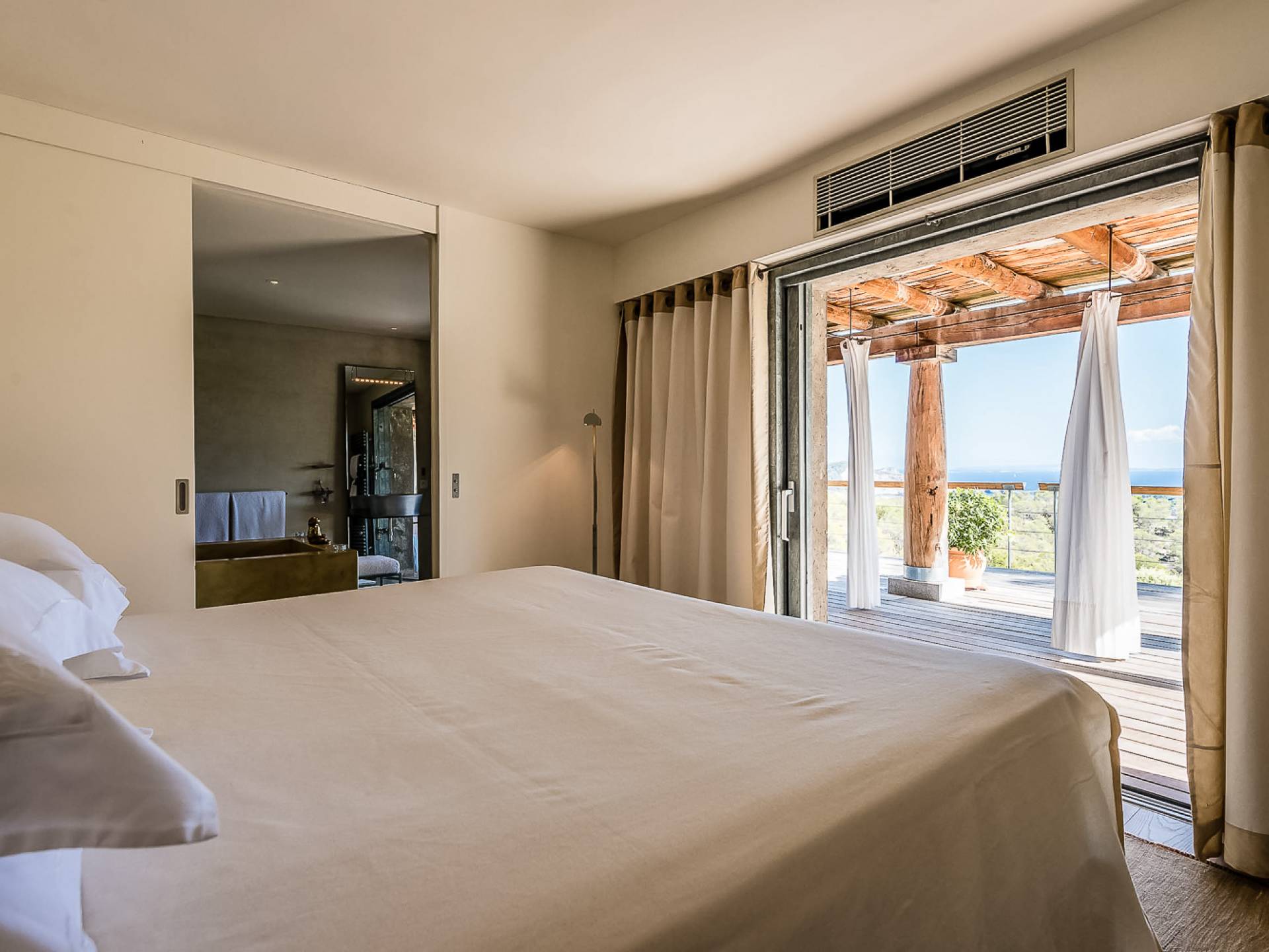 À l'extérieur, il y a un jardin fabuleux, plusieurs terrasses où vous pourrez profiter du soleil autour de la grande piscine, de nombreux coins salons et repas, une cuisine équipée, un garde-manger, des toilettes et une douche.