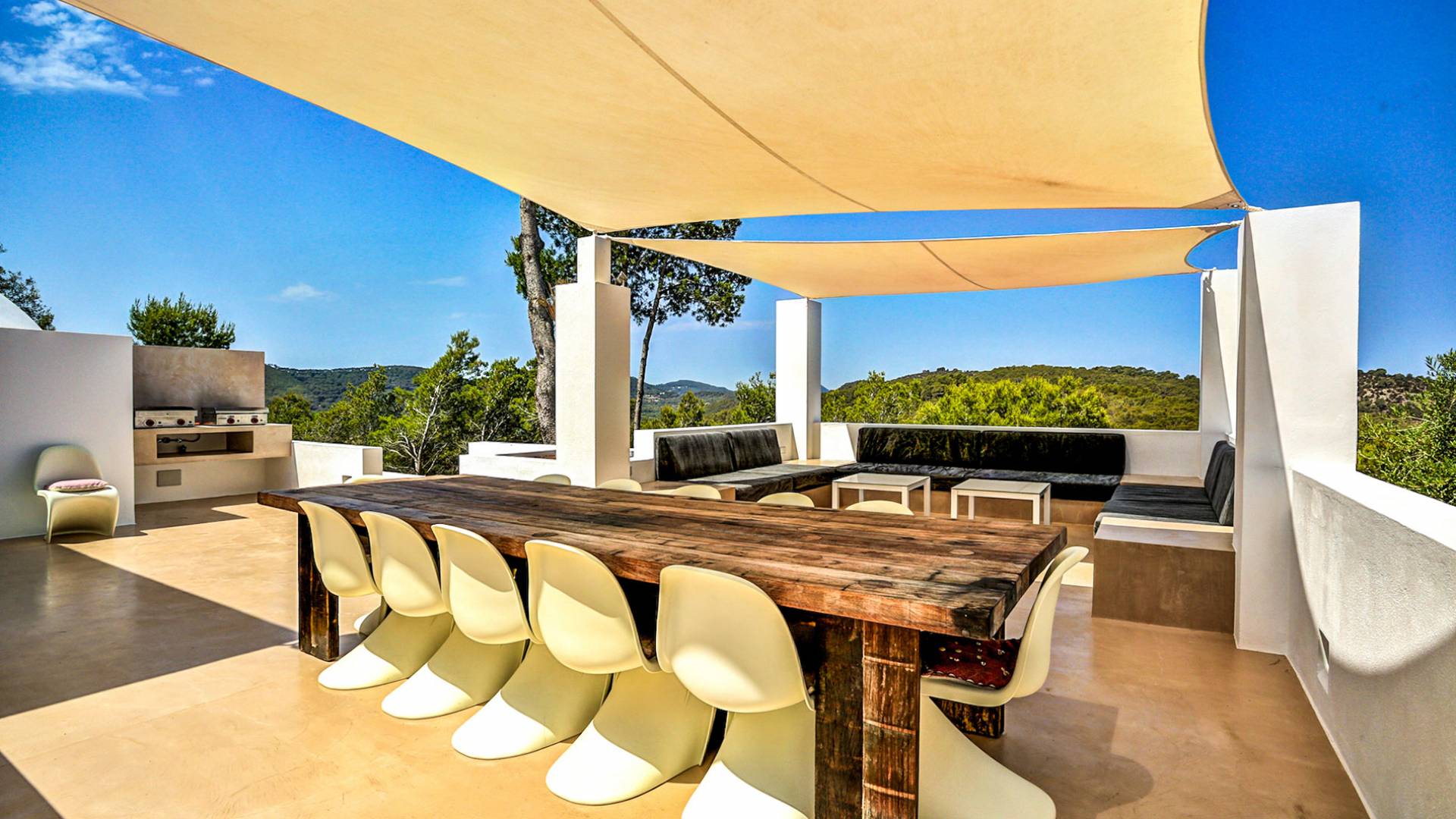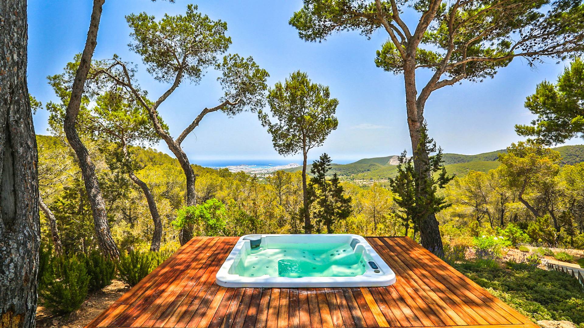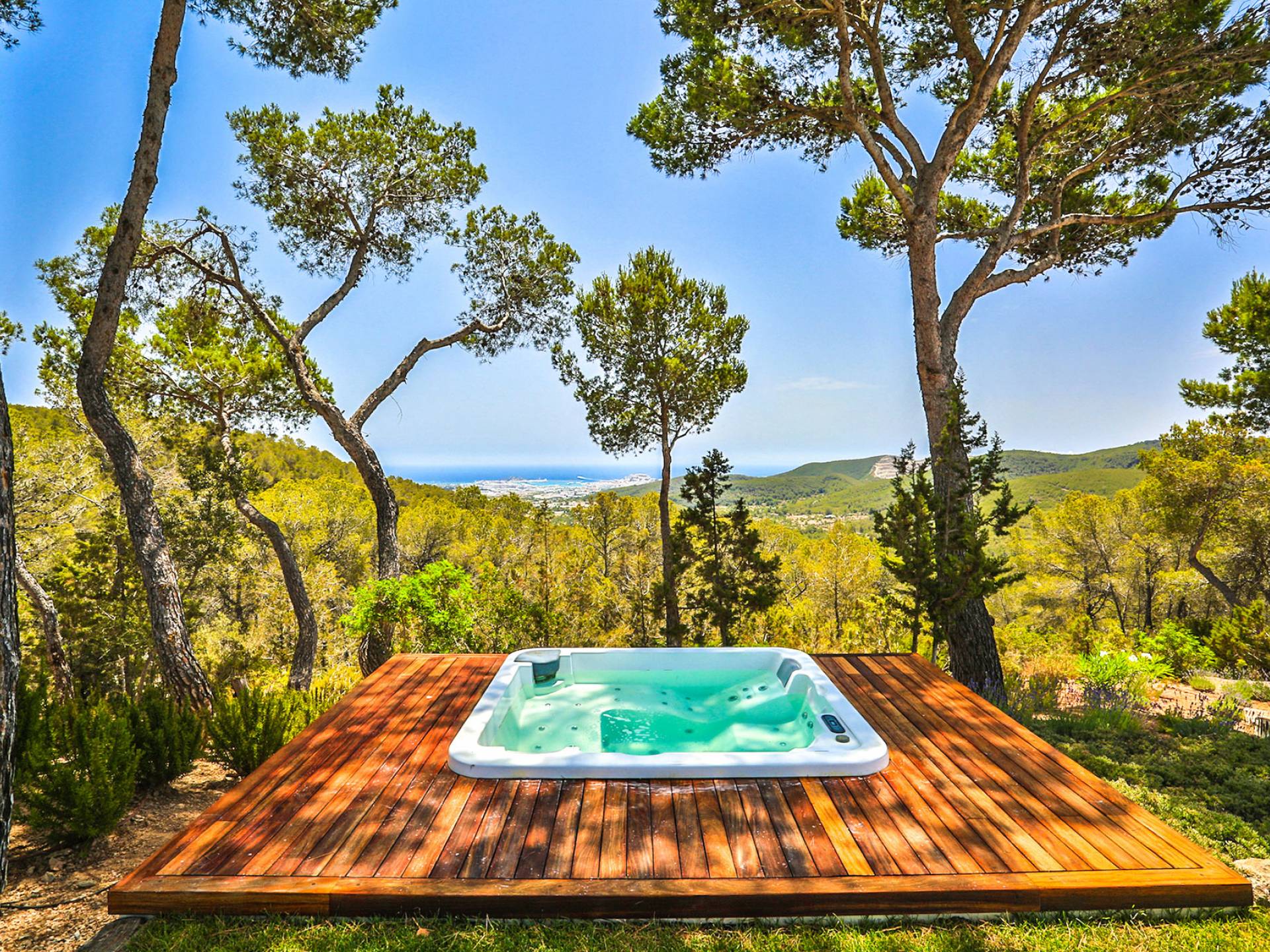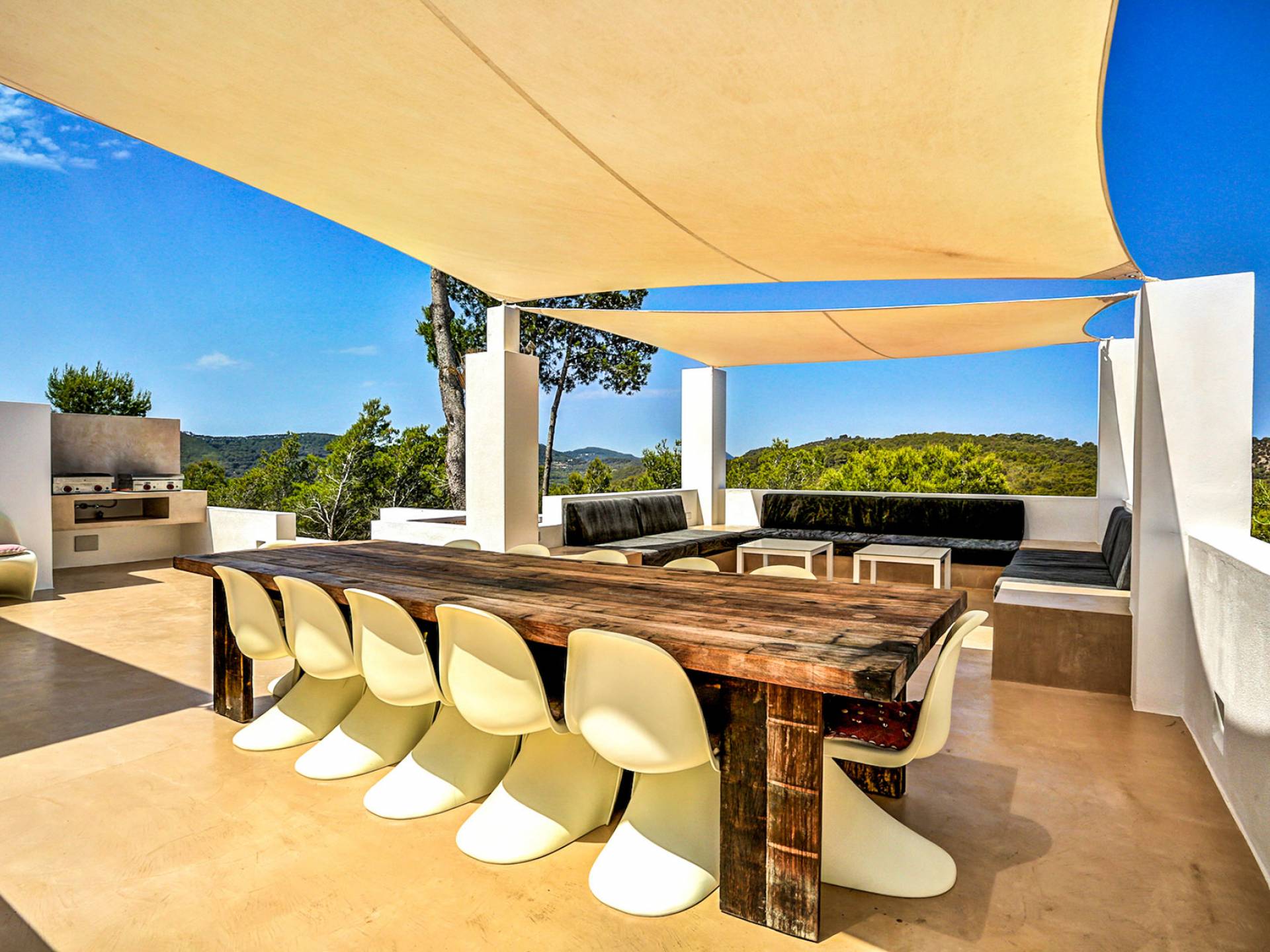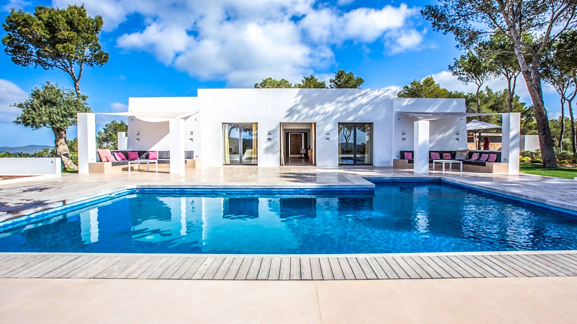 Villa Bella Vista est une location de villa de luxe avec 7 chambres et piscine privée. Idéalement situé au sommet de la montagne moderne Villa Bella Vista Ibiza qui offre une vue sur le coucher et le lever du soleil. La Villa Bella Vista est située dans de superbes jardins juste à l'extérieur de la ville d'Ibiza et offre une vue panoramique fantastique sur la mer, la ville d'Ibiza, Formentera et les couchers de soleil de l'ouest. Il est très bien situé à moins de 10 minutes de certains des meilleurs restaurants et plages de l'île.