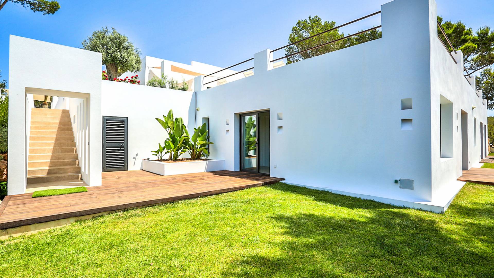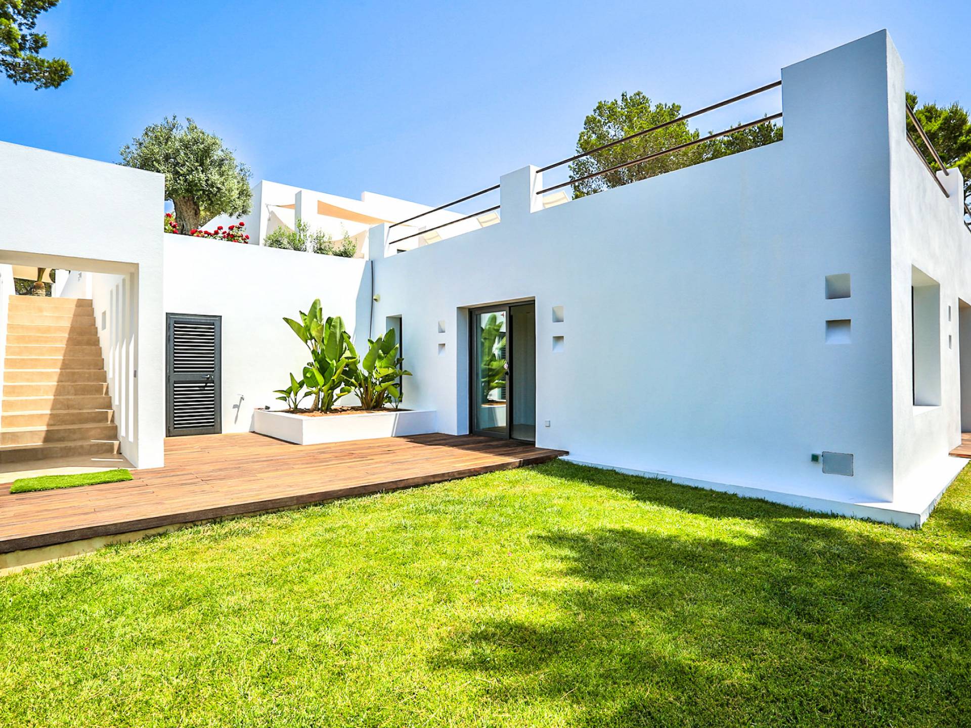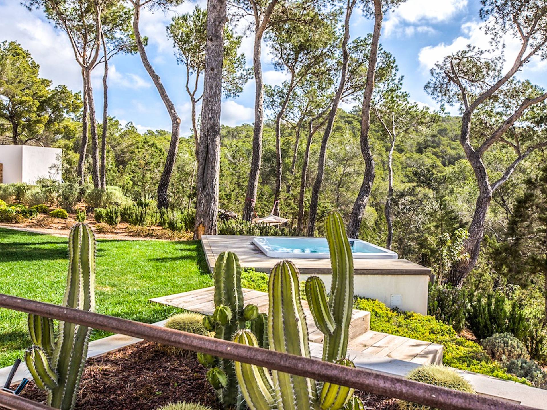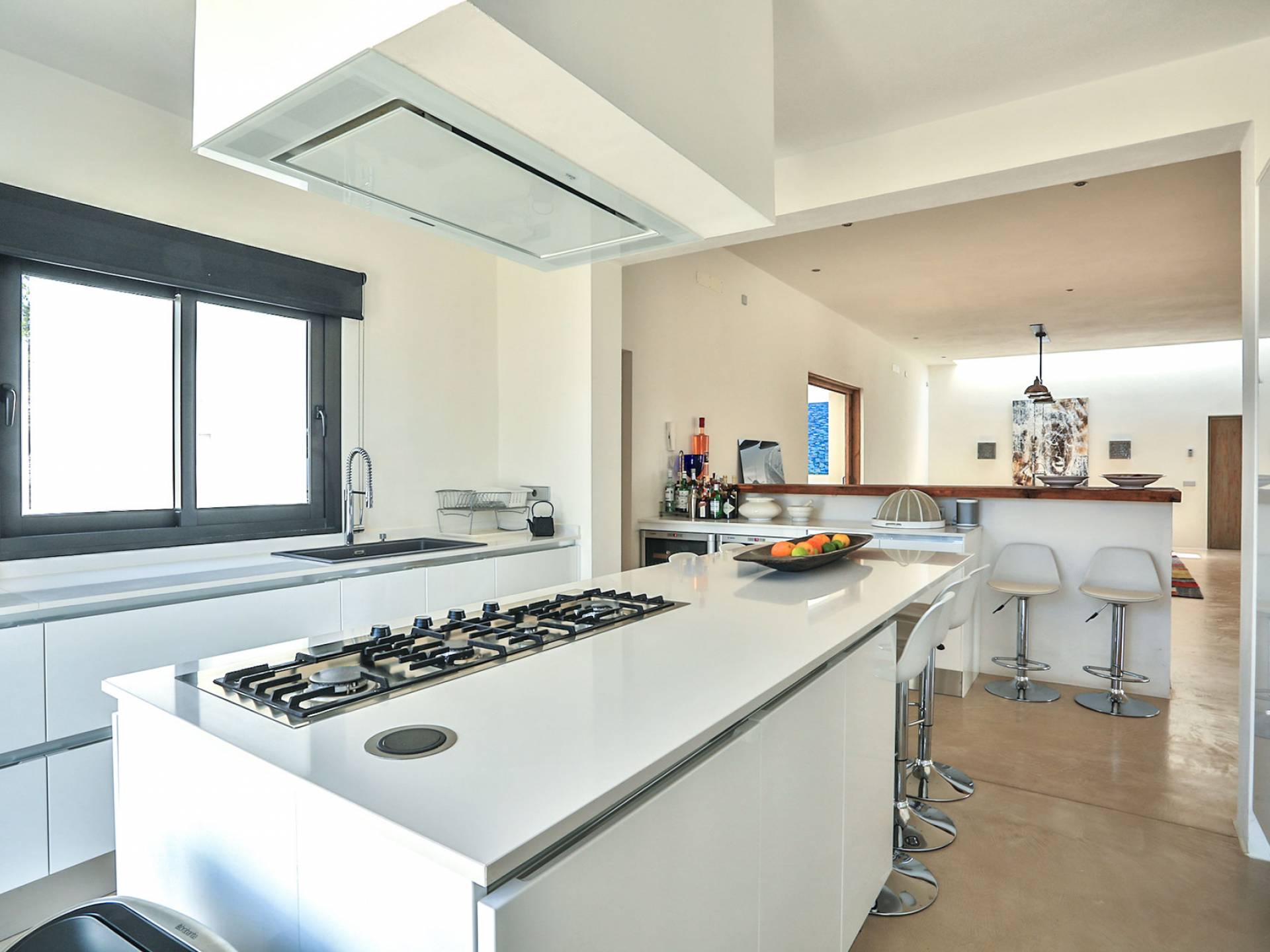 À l'extérieur, parmi les jardins, vous trouverez un jacuzzi, une piscine, une zone de détente orientée à l'ouest, un bar et une immense salle à manger extérieure idéale pour se divertir. Le salon, la salle à manger et la cuisine sont décloisonnés et meublés avec style, il y a aussi une cuisine plus petite avec sa propre entrée.