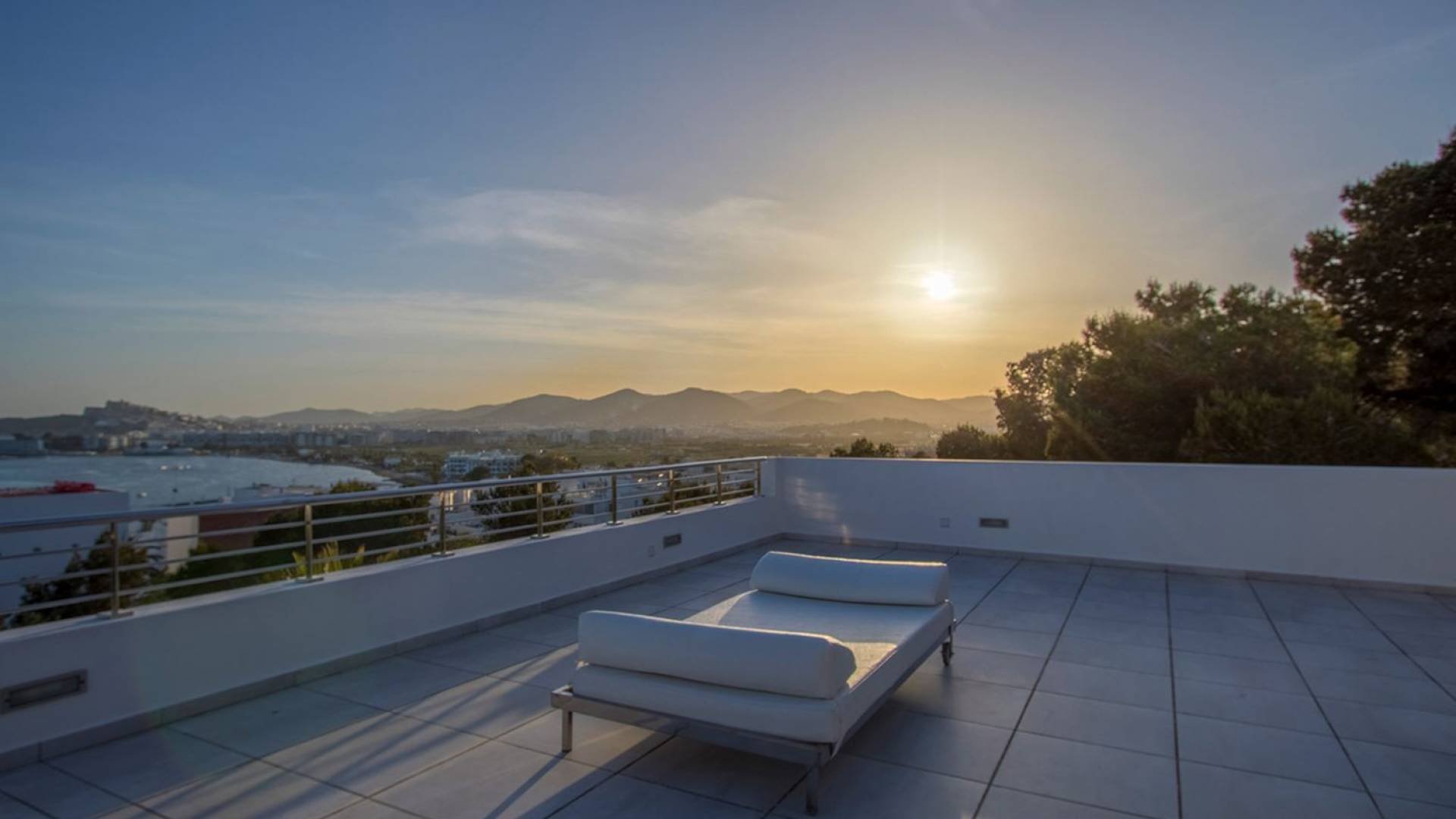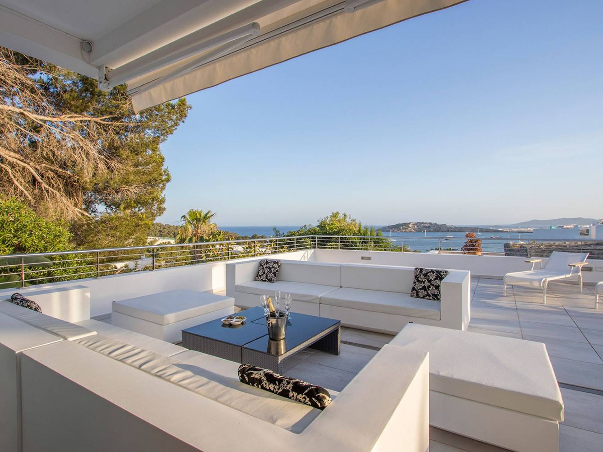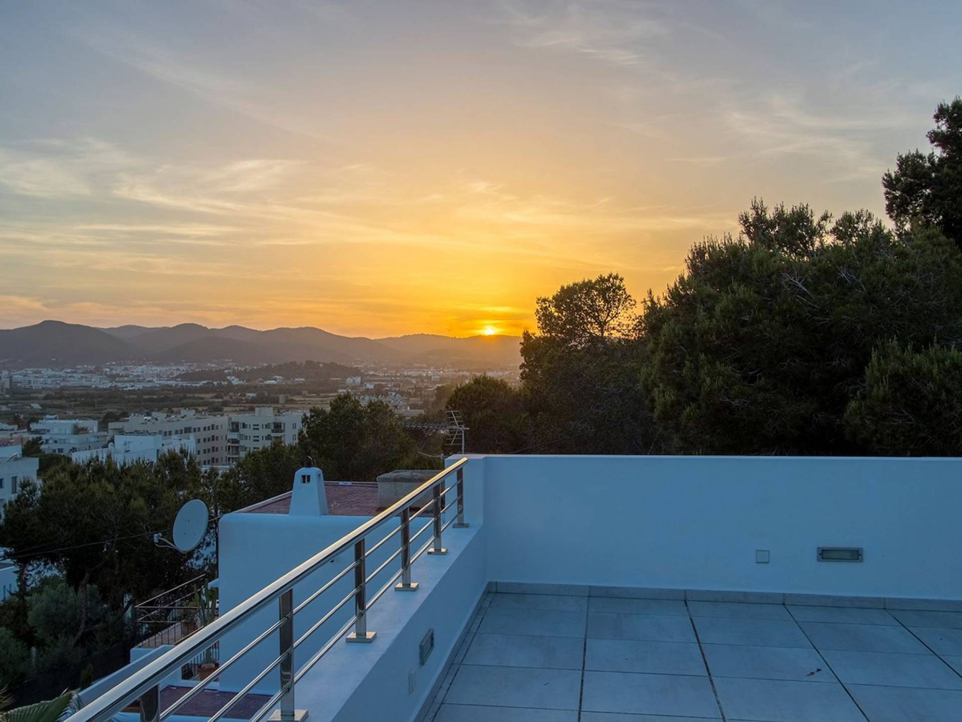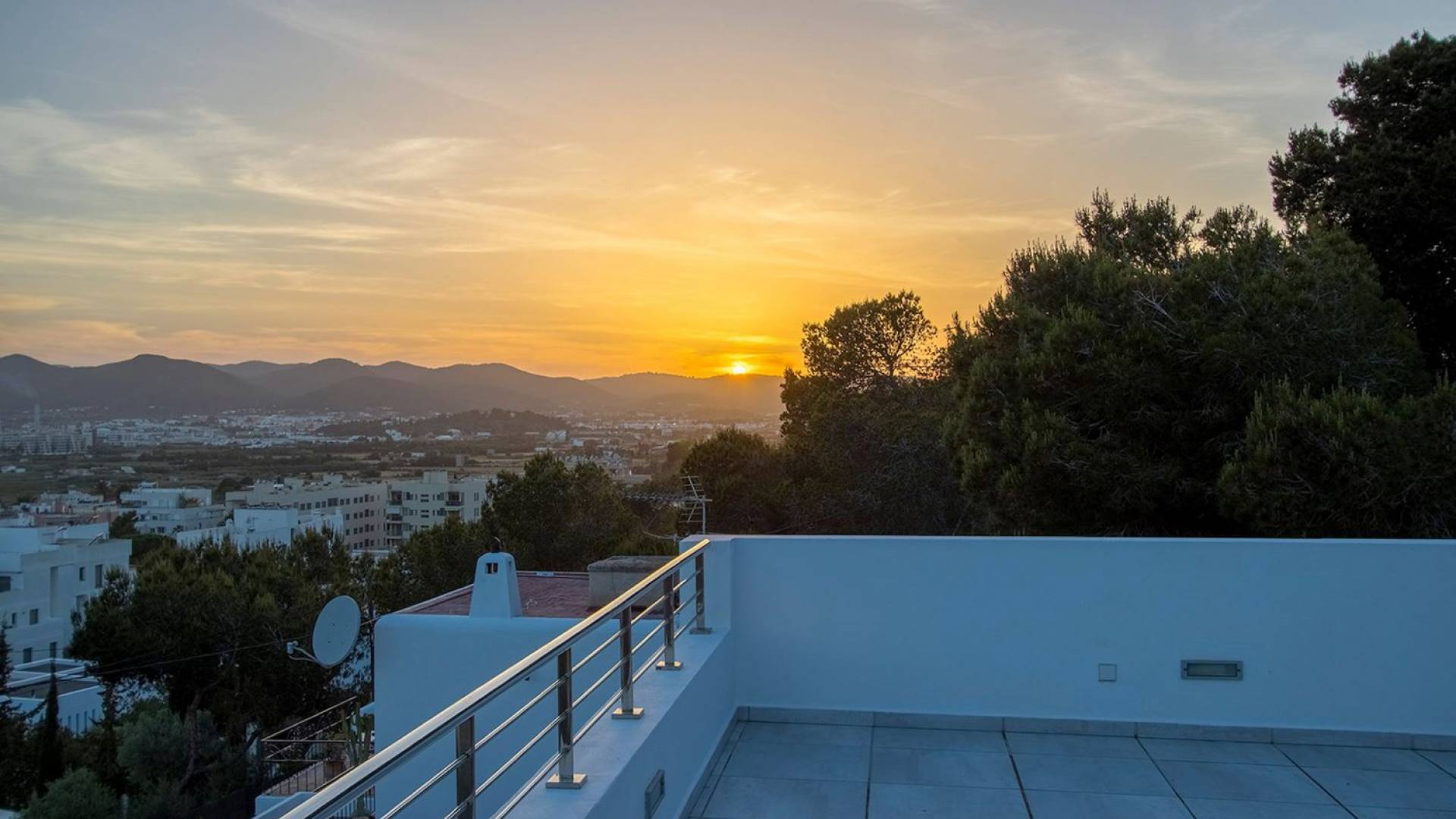 Rez-de-chaussée Grande entrée/salon, cuisine entièrement équipée avec bar, terrasse, 1 salle de bain invité. Deuxième étage Salle de bain invité, grand salon/salle à manger avec accès direct à la terrasse. Le salon est équipé d'un Bose Sound System fixe et d'une autre connexion Bluetooth Bowers & Wilkins portable, d'une télévision, d'une cheminée, d'une kitchenette entièrement équipée et d'une buanderie. Grande terrasse avec salon extérieur, salle à manger d'été équipée d'un barbecue à gaz et d'un évier et vue imprenable sur la ville d'Ibiza. La piscine dispose d'une terrasse en bois entourant la piscine de 9m x 5m, il y a aussi un bar, des hamacs et un grand parasol. Cette zone a également une zone ombragée importante.