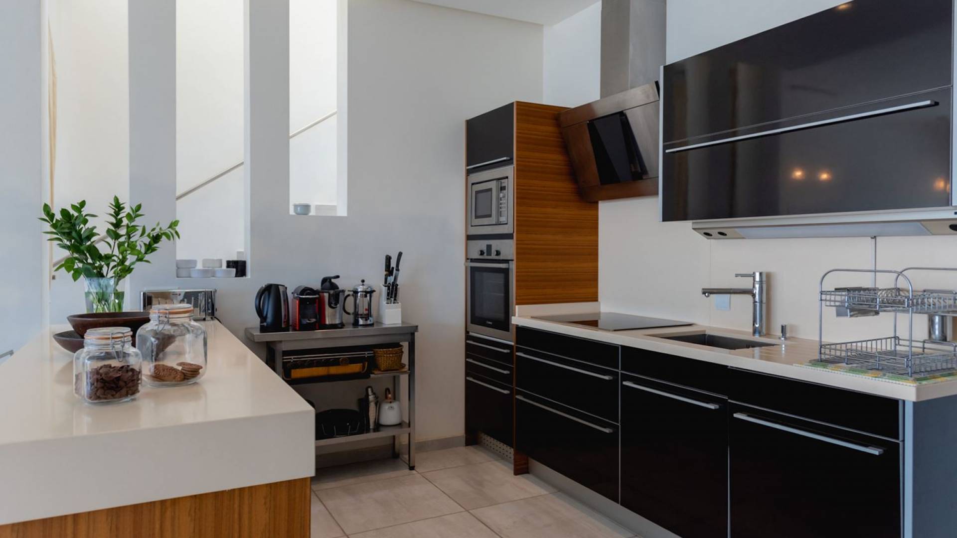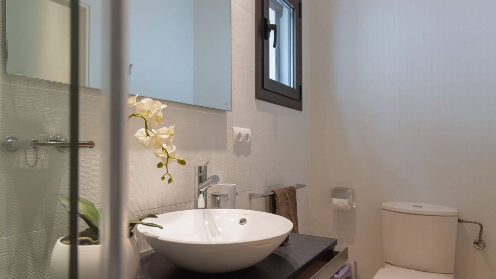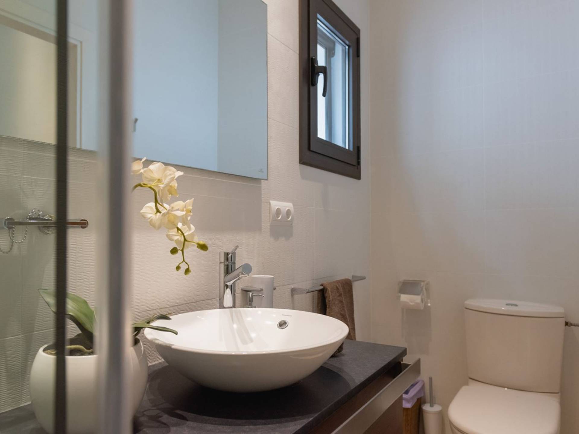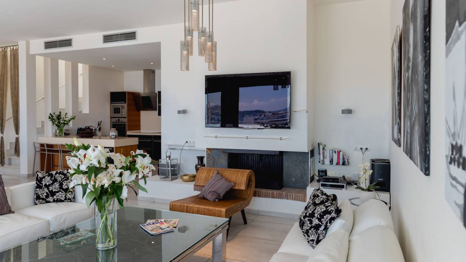 Rez-de-chaussée Grande entrée/salon, cuisine entièrement équipée avec bar, terrasse, 1 salle de bain invité. Deuxième étage Salle de bain invité, grand salon/salle à manger avec accès direct à la terrasse. Le salon est équipé d'un Bose Sound System fixe et d'une autre connexion Bluetooth Bowers & Wilkins portable, d'une télévision, d'une cheminée, d'une kitchenette entièrement équipée et d'une buanderie. Grande terrasse avec salon extérieur, salle à manger d'été équipée d'un barbecue à gaz et d'un évier et vue imprenable sur la ville d'Ibiza. La piscine dispose d'une terrasse en bois entourant la piscine de 9m x 5m, il y a aussi un bar, des hamacs et un grand parasol. Cette zone a également une zone ombragée importante.