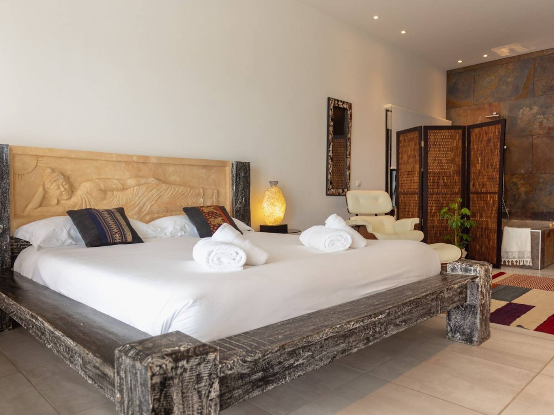 Casa Marisol Ibiza est une location de villa de luxe avec 5 chambres et une piscine privée. Cette villa moderne est située dans l'un des quartiers les plus recherchés de Talamanca en direction de Can Pep Simó. Il offre une vue imprenable sur Dalt Vila à Ibiza, Formentera et sur la mer, et se trouve à seulement 5 minutes en voiture du centre d'Ibiza et un peu moins de Pacha, Destino, Lio et Talamanca Beach. La propriété est également proche de Jesús, où se trouvent une variété de magasins, tels que des supermarchés, des pharmacies, des boulangeries, etc. Cette villa est nouvellement construite, développée sur trois niveaux et dispose de cinq chambres et sept salles de bains (5 en suite et 2 toilettes invités).