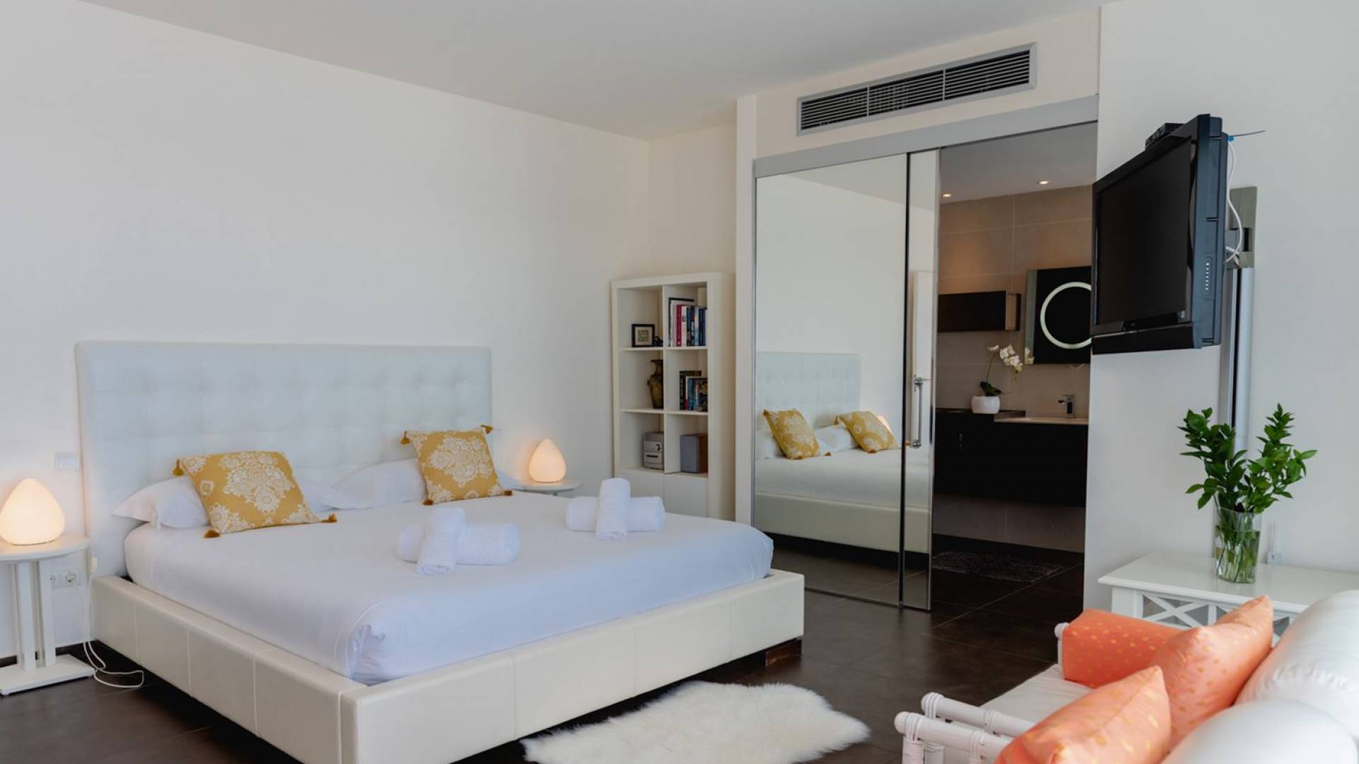Santa Eulària des Riu est une ville côtière au sud-est d'Ibiza et la troisième plus grande ville de l'île qui comprend également la seule rivière d'Ibiza. La ville est à 15 km au nord-est de la ville d'Ibiza et à 22 km de l'aéroport, à côté d'une large baie avec le promontoire de Punta Arabí à l'extrémité est. Port Esportiu est un nouveau port et marin bordé de restaurants, de boutiques et de bars. La ville comprend des plages de sable sûres idéales pour s'amuser en famille. À l'extrémité ouest de la baie, vous trouverez la colline verdoyante du «Puig d 'en Fita» qui domine le paysage et offre de beaux sentiers de randonnée.