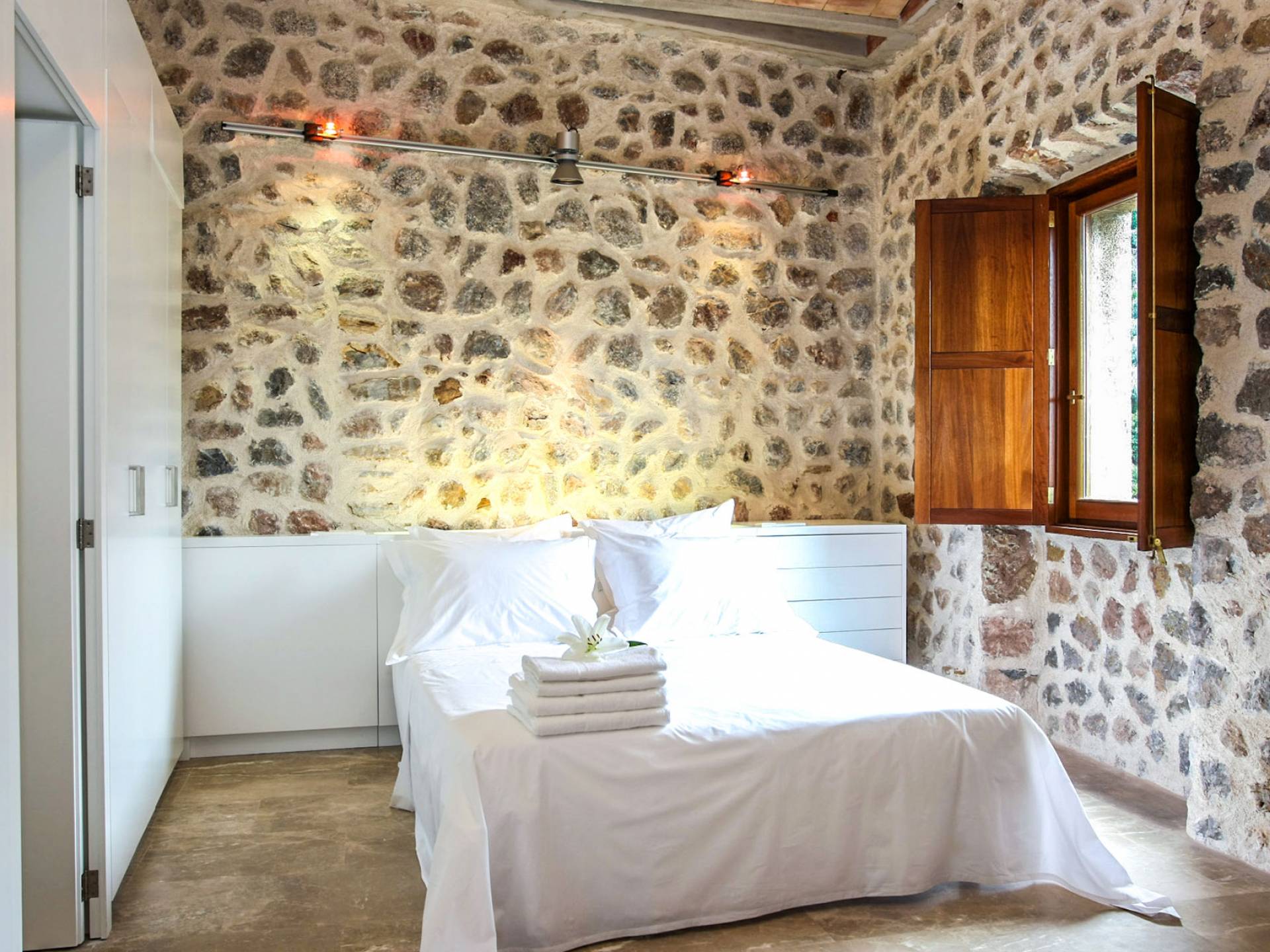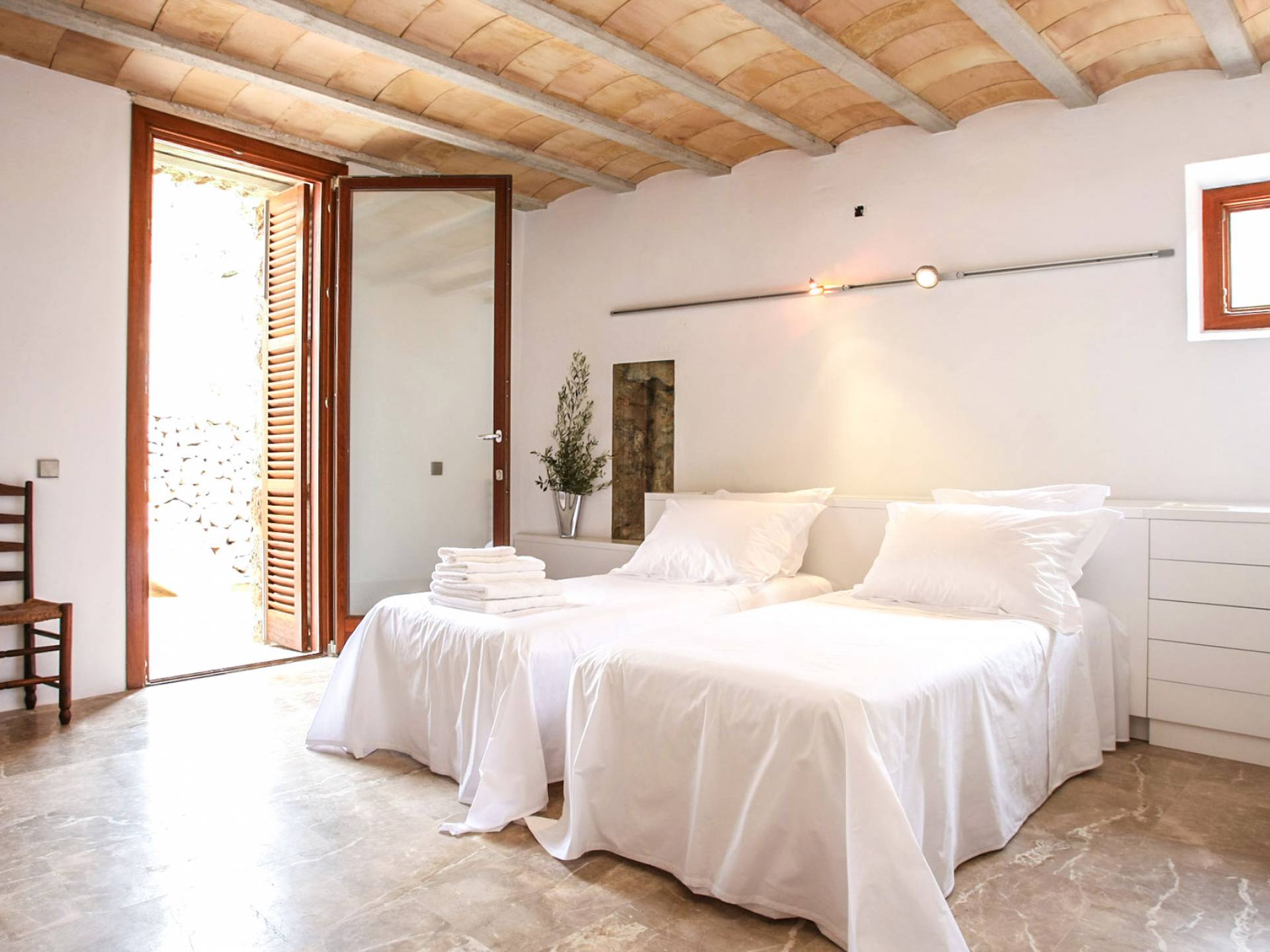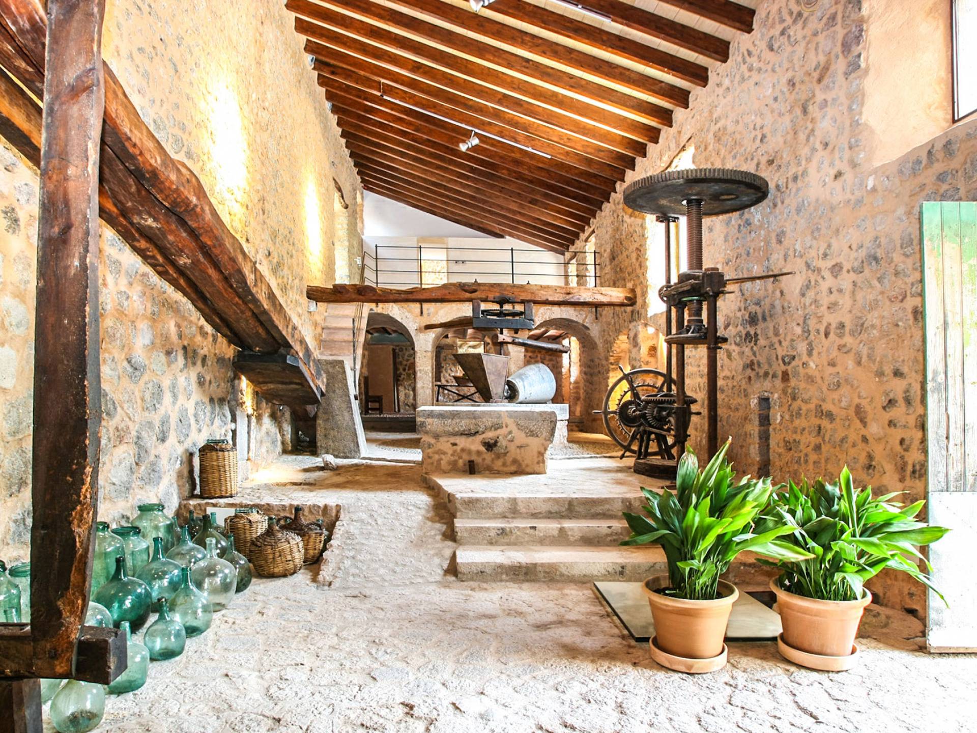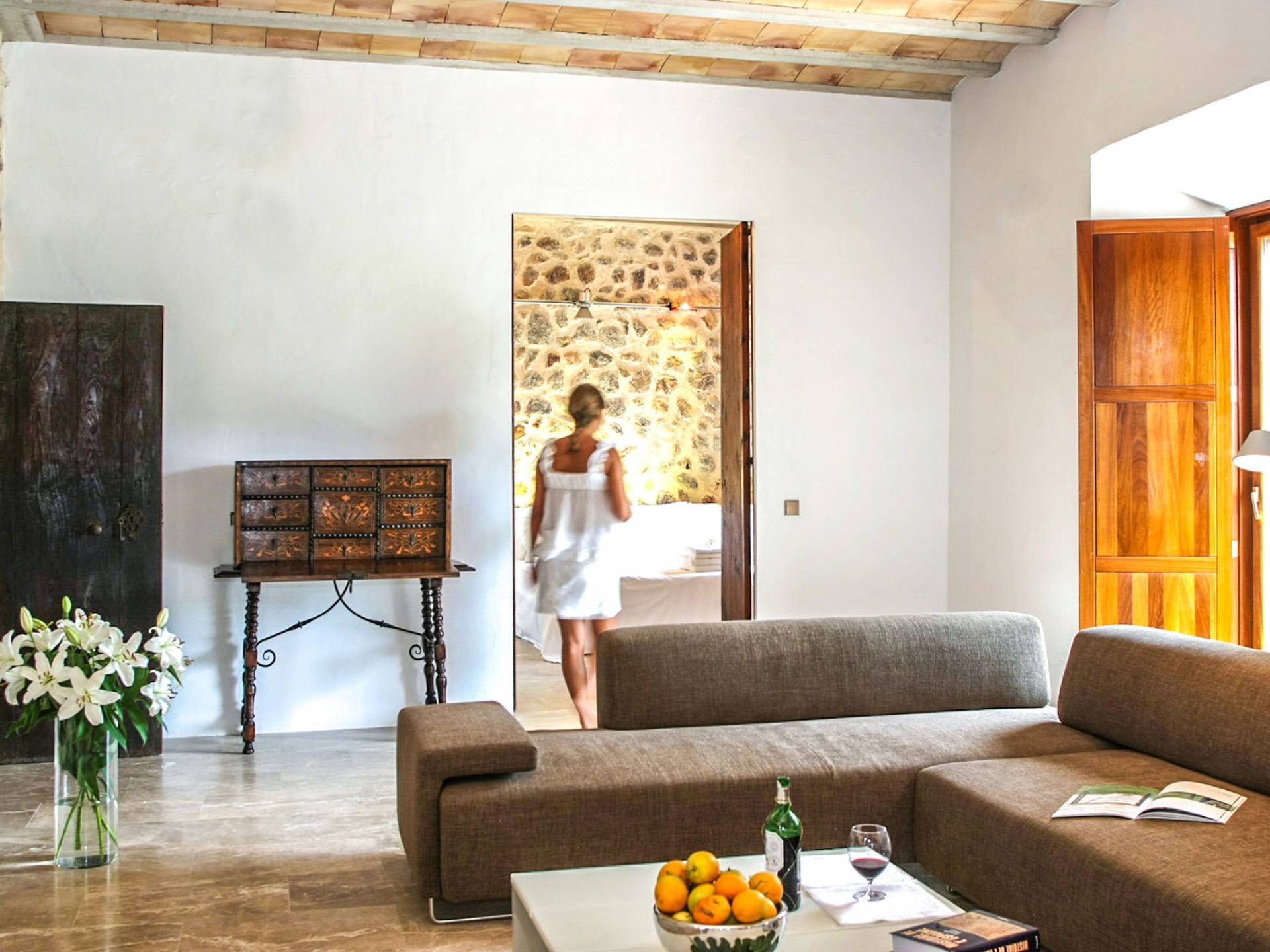 L'intérieur est un mélange tout aussi heureux de rénovation moderne traditionnelle mais sympathique. Les 2 salons, confortables et confortables et la cuisine bien équipée avec une vue imprenable, savourent un mélange de bon goût de la ferme traditionnelle majorquine avec le chic majorquin moderne. L'établissement propose également une autre cuisine «préparatoire» à l'étage inférieur et comprend tous les équipements modernes tels que la climatisation, le chauffage central, une connexion Wi-Fi, une chaîne hi-fi et une télévision par satellite. L'hébergement offre un espace de couchage pour jusqu'à douze personnes avec six chambres doubles, toutes avec salle de bains privative.