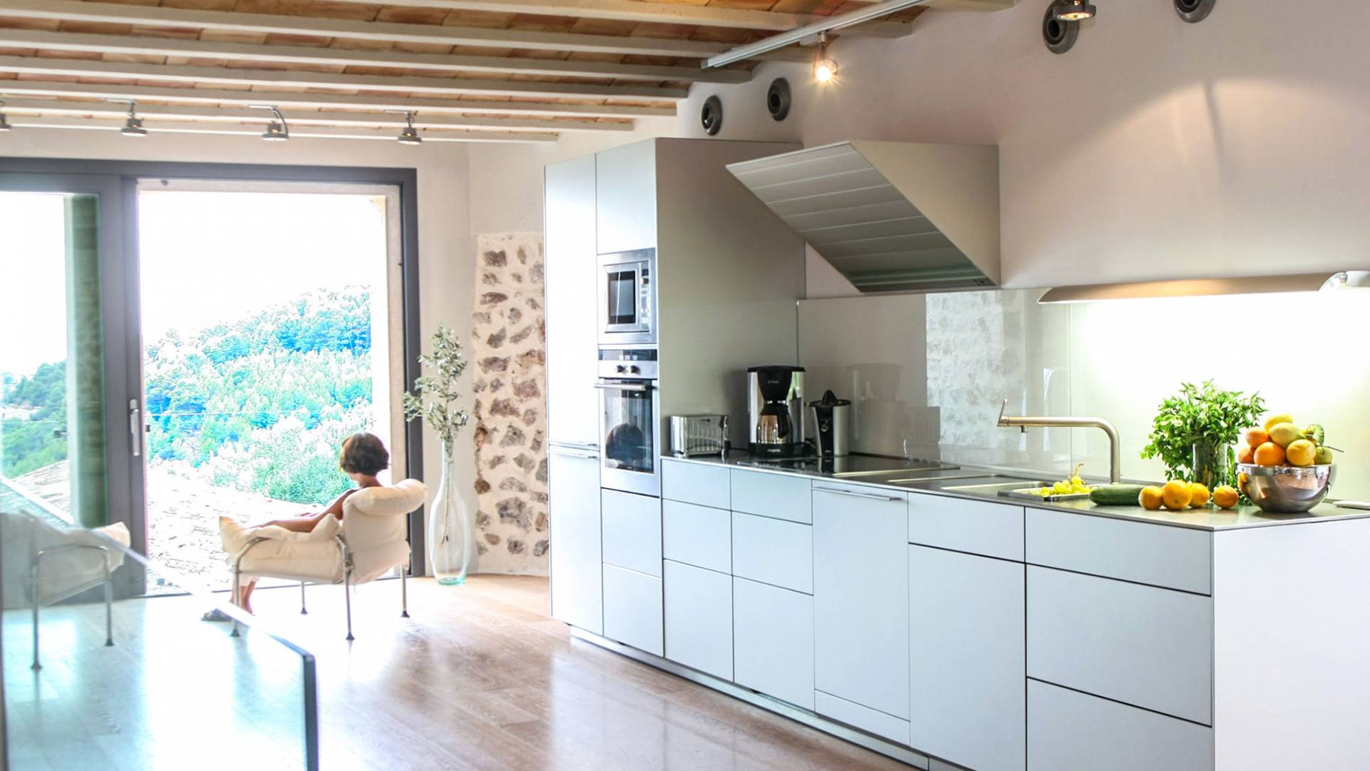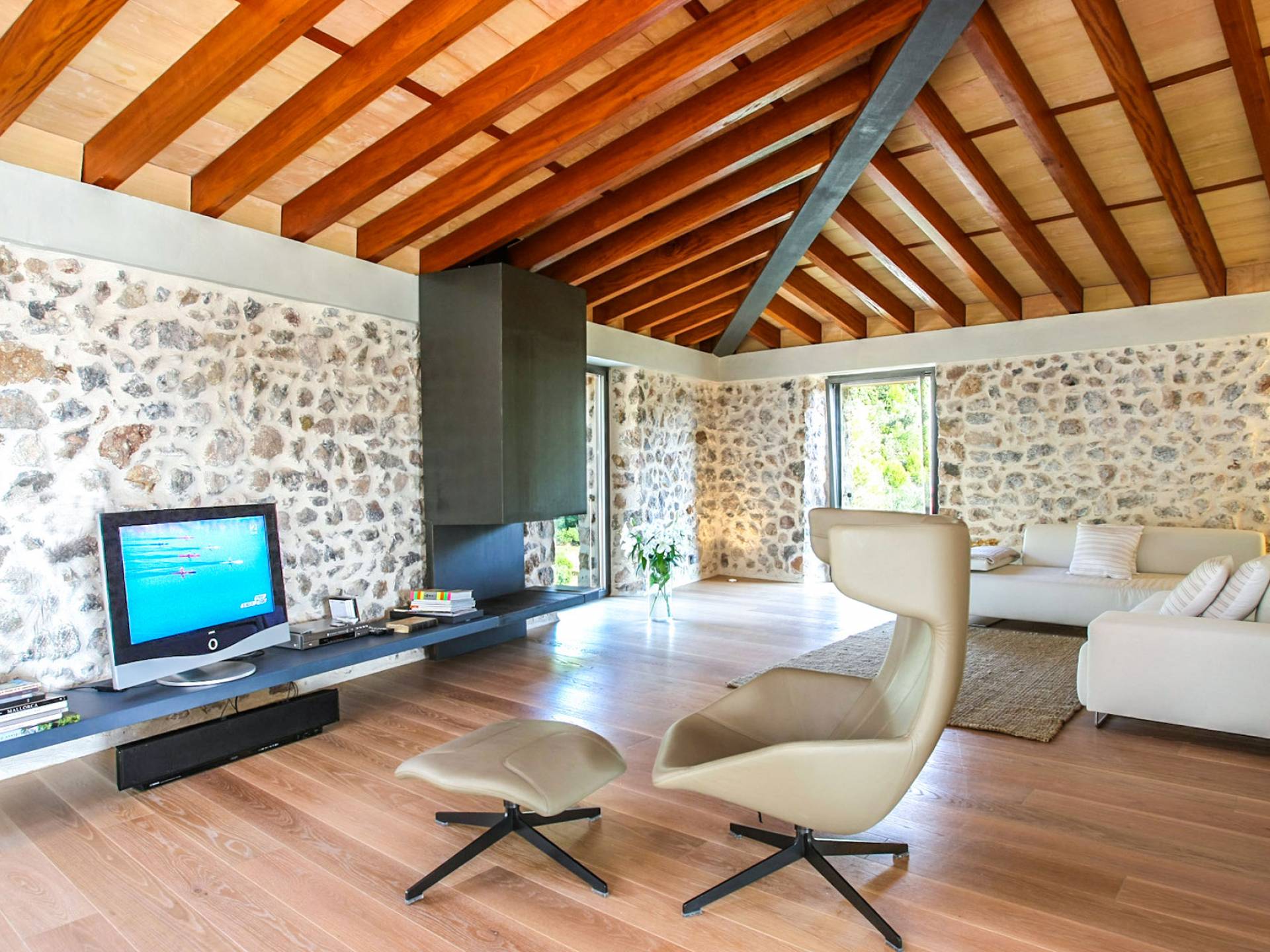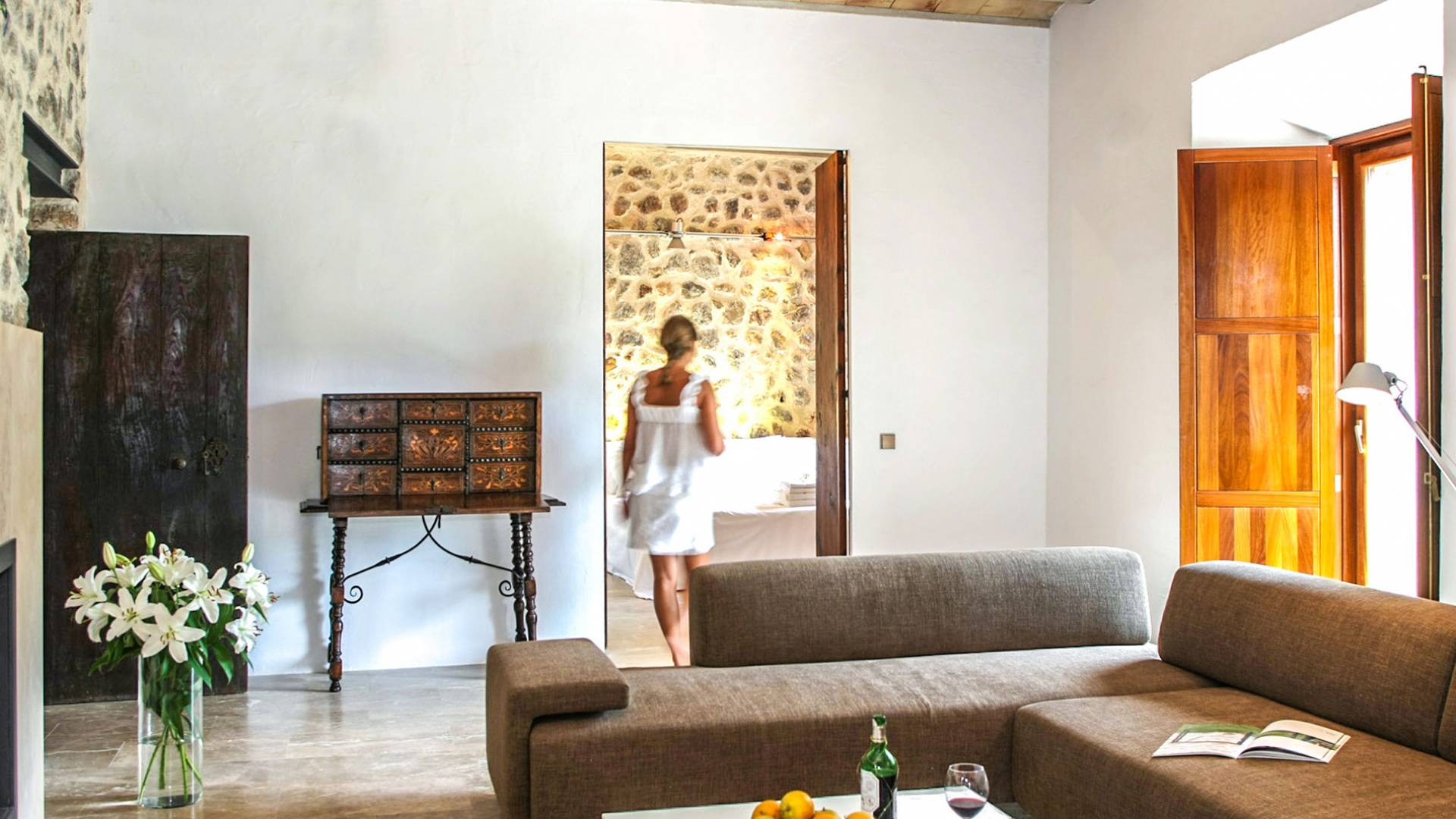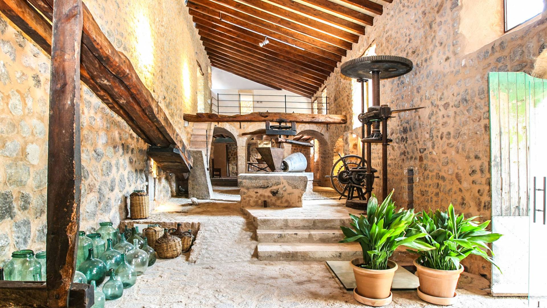 L'intérieur est un mélange tout aussi heureux de rénovation moderne traditionnelle mais sympathique. Les 2 salons, confortables et confortables et la cuisine bien équipée avec une vue imprenable, savourent un mélange de bon goût de la ferme traditionnelle majorquine avec le chic majorquin moderne. L'établissement propose également une autre cuisine «préparatoire» à l'étage inférieur et comprend tous les équipements modernes tels que la climatisation, le chauffage central, une connexion Wi-Fi, une chaîne hi-fi et une télévision par satellite. L'hébergement offre un espace de couchage pour jusqu'à douze personnes avec six chambres doubles, toutes avec salle de bains privative.
