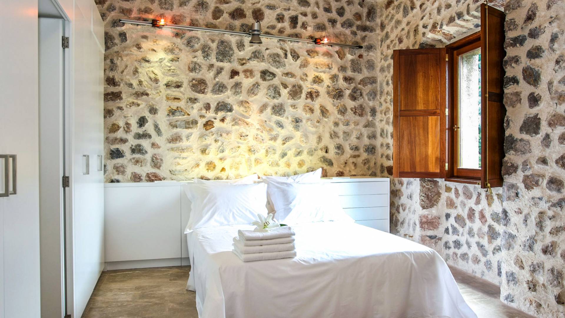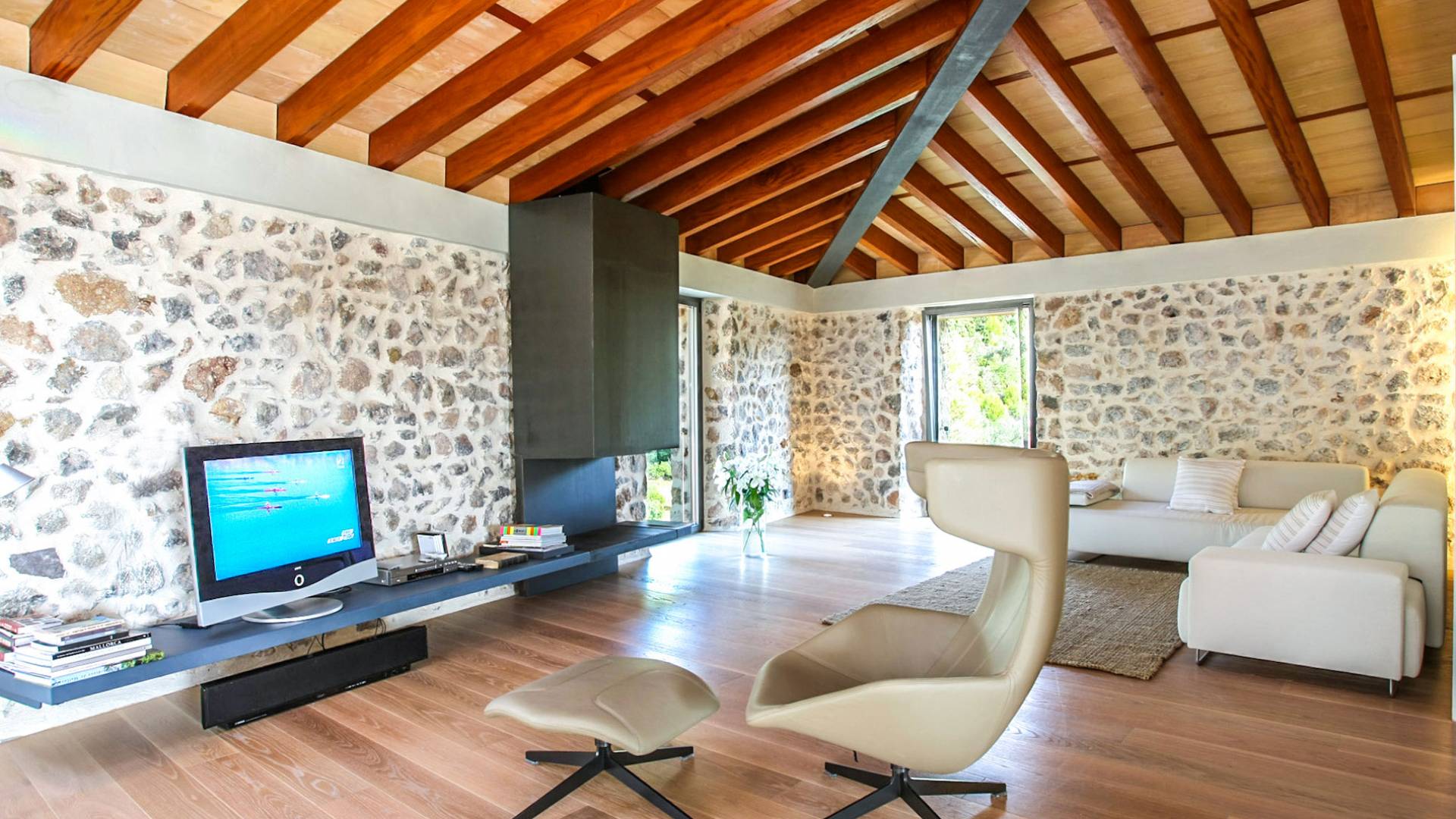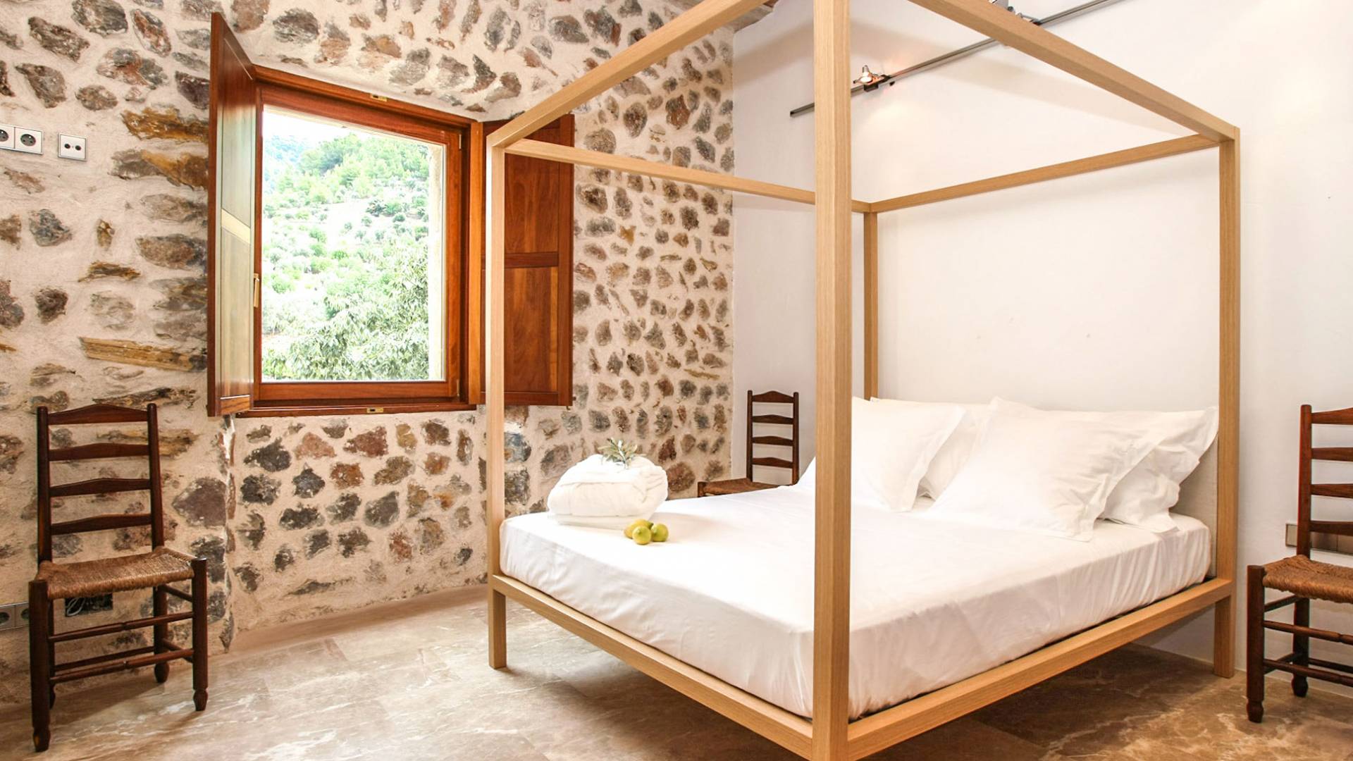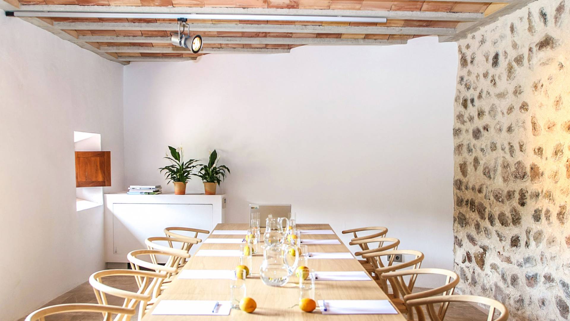 L'intérieur est un mélange tout aussi heureux de rénovation moderne traditionnelle mais sympathique. Les 2 salons, confortables et confortables et la cuisine bien équipée avec une vue imprenable, savourent un mélange de bon goût de la ferme traditionnelle majorquine avec le chic majorquin moderne. L'établissement propose également une autre cuisine «préparatoire» à l'étage inférieur et comprend tous les équipements modernes tels que la climatisation, le chauffage central, une connexion Wi-Fi, une chaîne hi-fi et une télévision par satellite. L'hébergement offre un espace de couchage pour jusqu'à douze personnes avec six chambres doubles, toutes avec salle de bains privative.