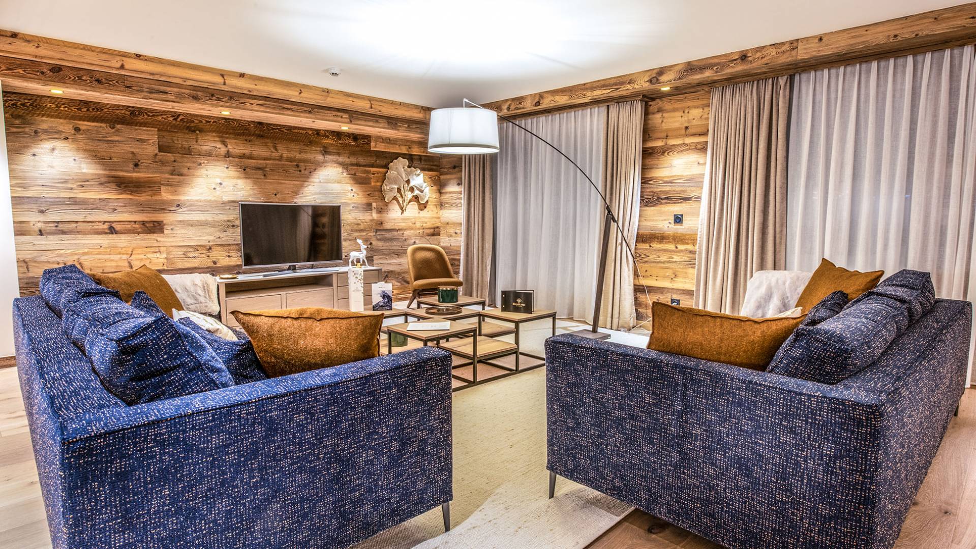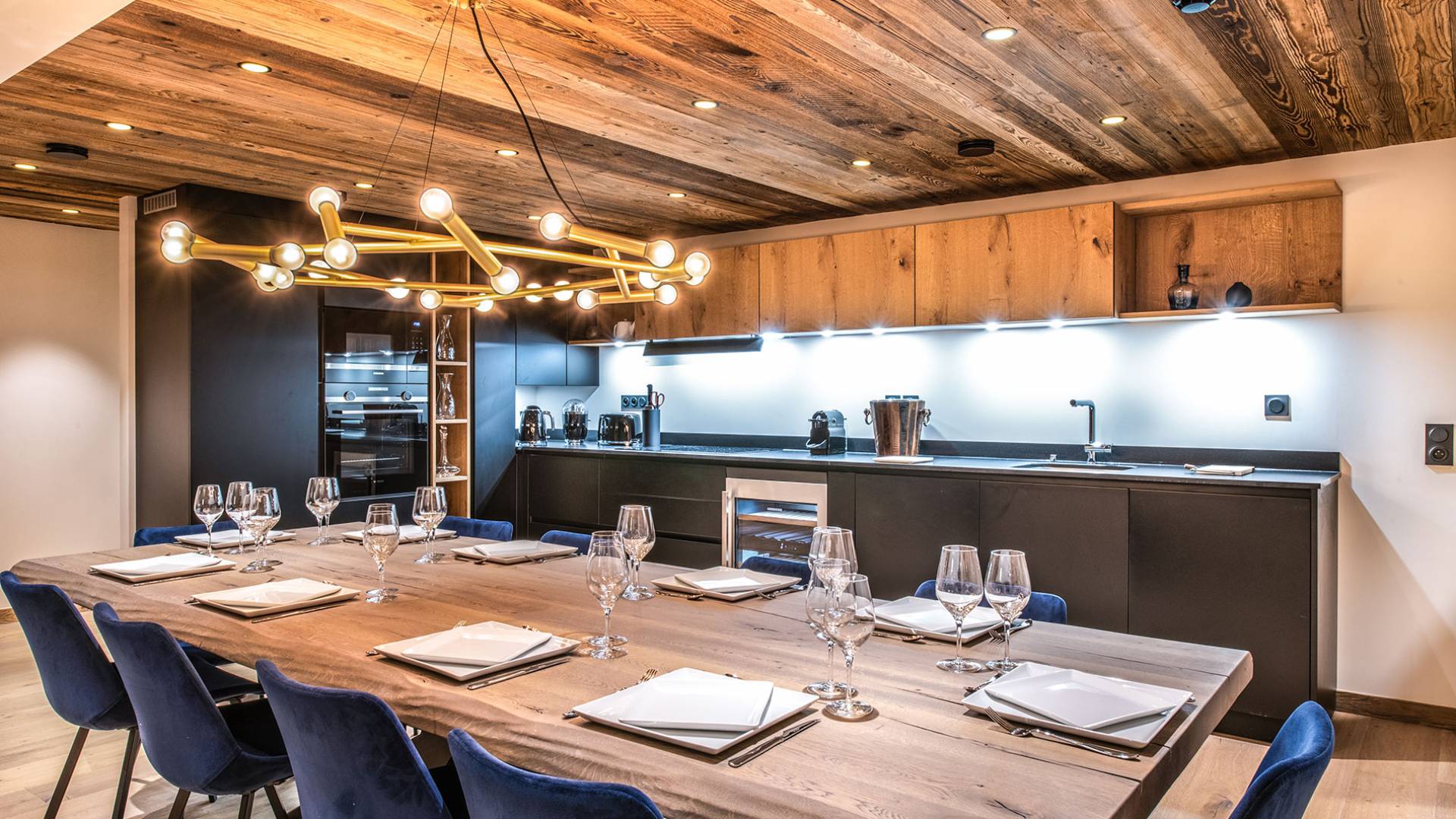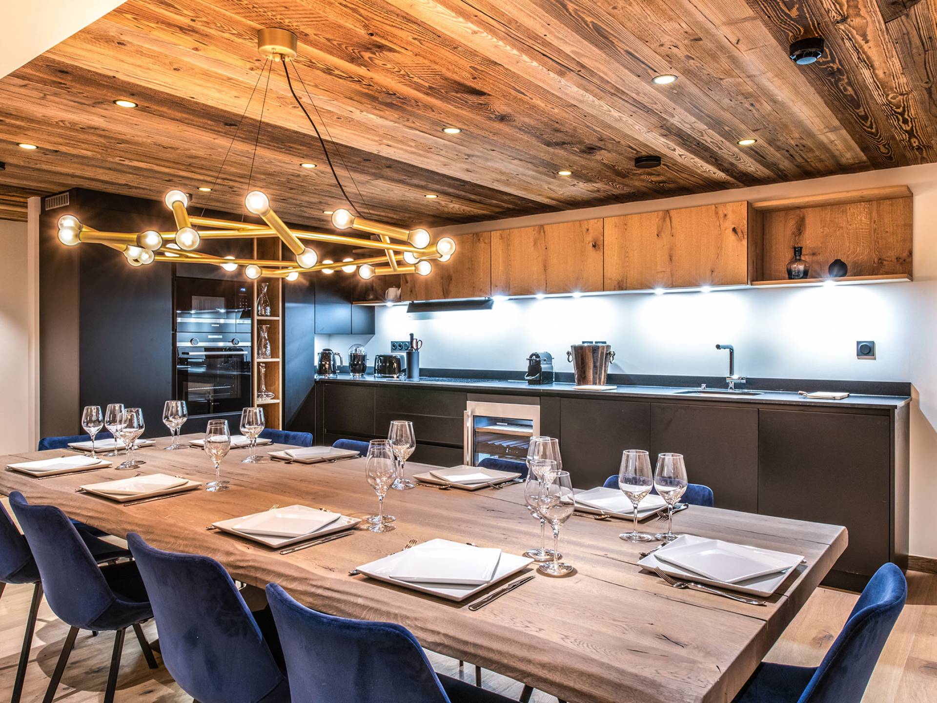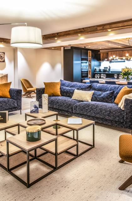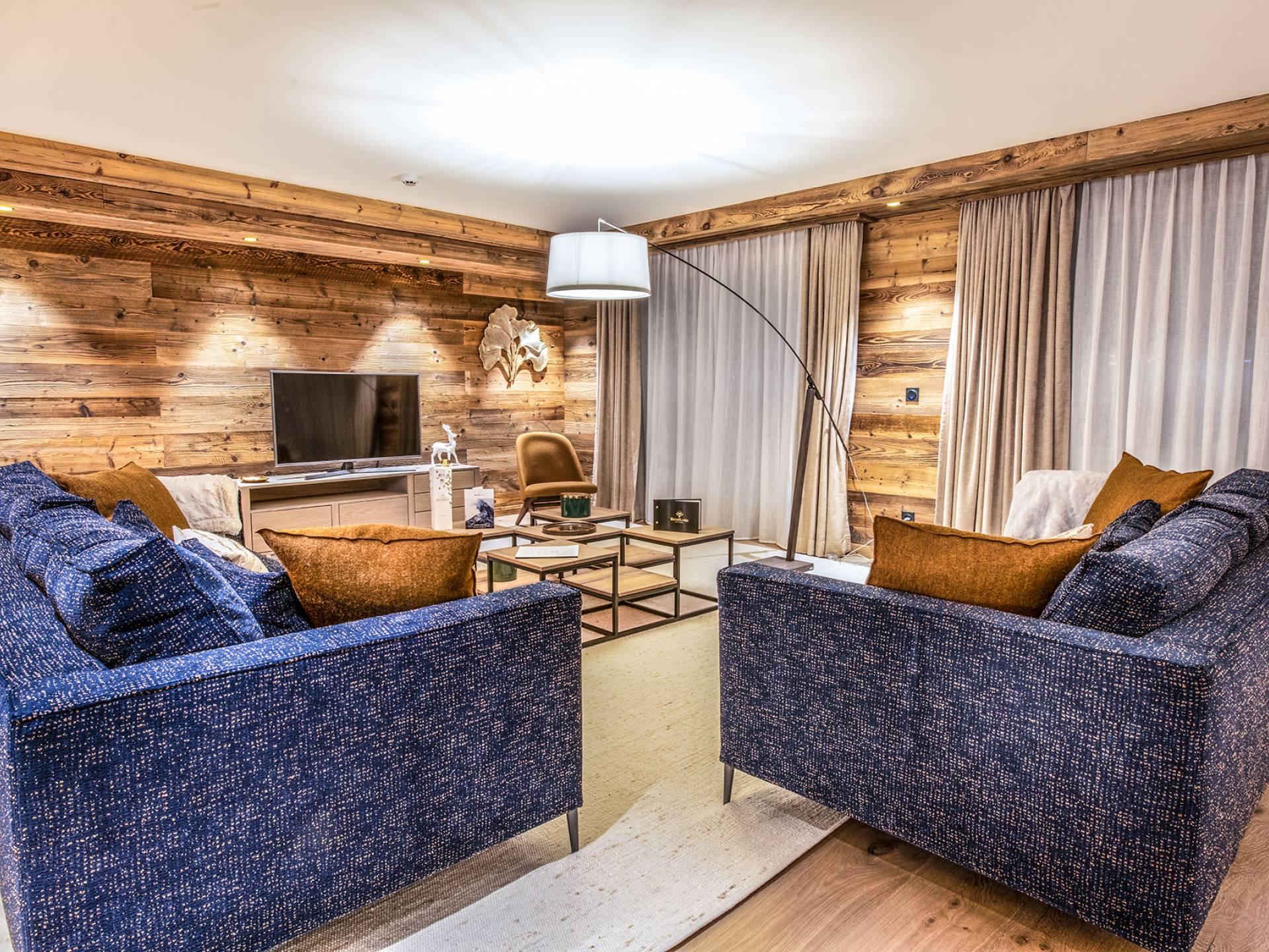 La suite Kailash, située au 4ème étage du Manali Lodge Courchevel 1650, d'une superficie de 194 m², est parfaite pour accueillir jusqu'à 10 personnes avec un maximum de 8 adultes. Cette suite dispose de quatre chambres avec un lit double, d'une chambre cabine avec un lit superposé et de cinq salles de bains privatives. Le séjour avec TV dispose également d'une cuisine entièrement équipée et d'un grand balcon avec vue sur le front de neige de Courchevel 1650 et les montagnes. Pendant vos vacances, vous pourrez bénéficier d'une place de parking dans le parking privé, d'un casier à skis et d'un accès Wifi.