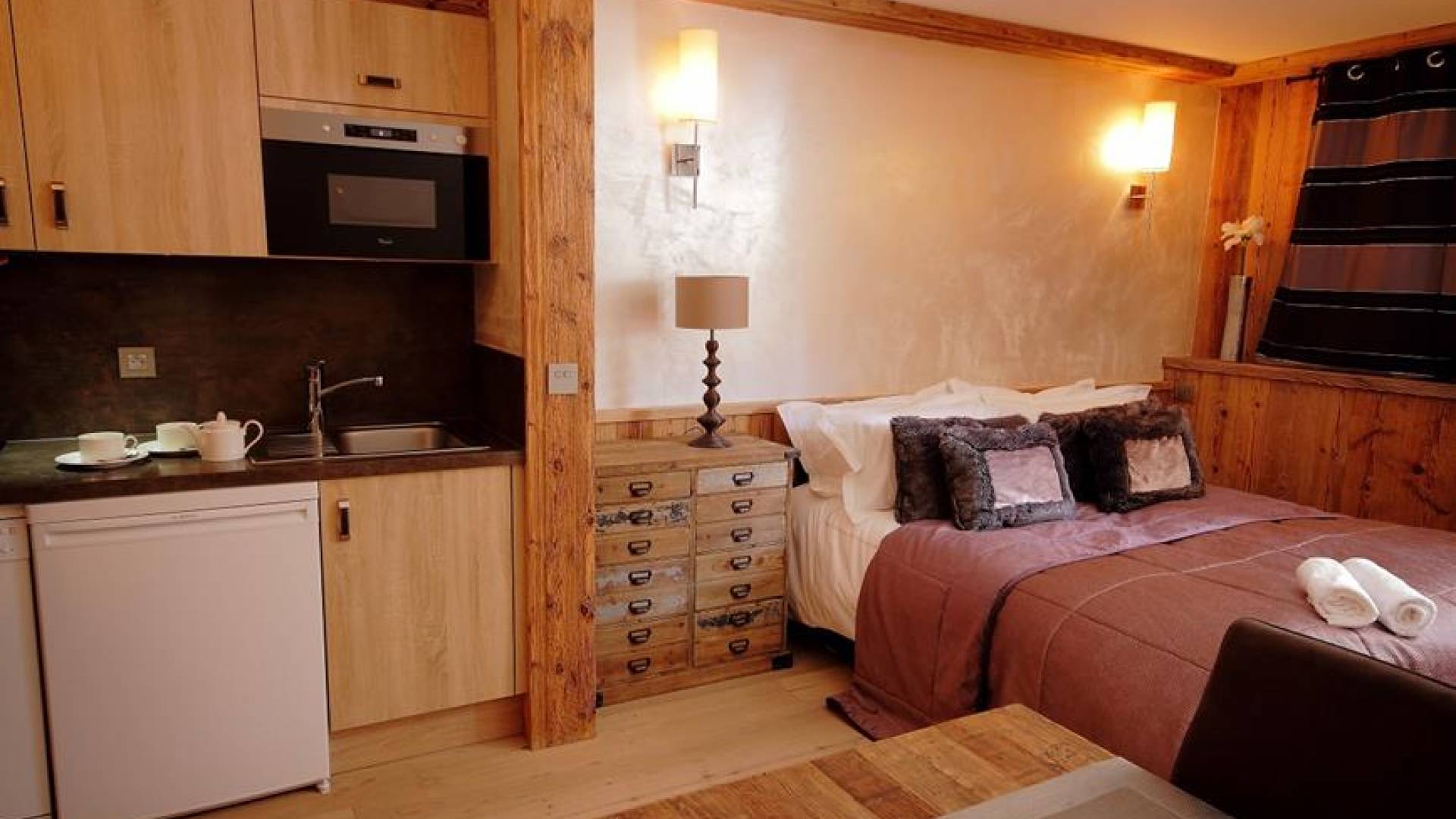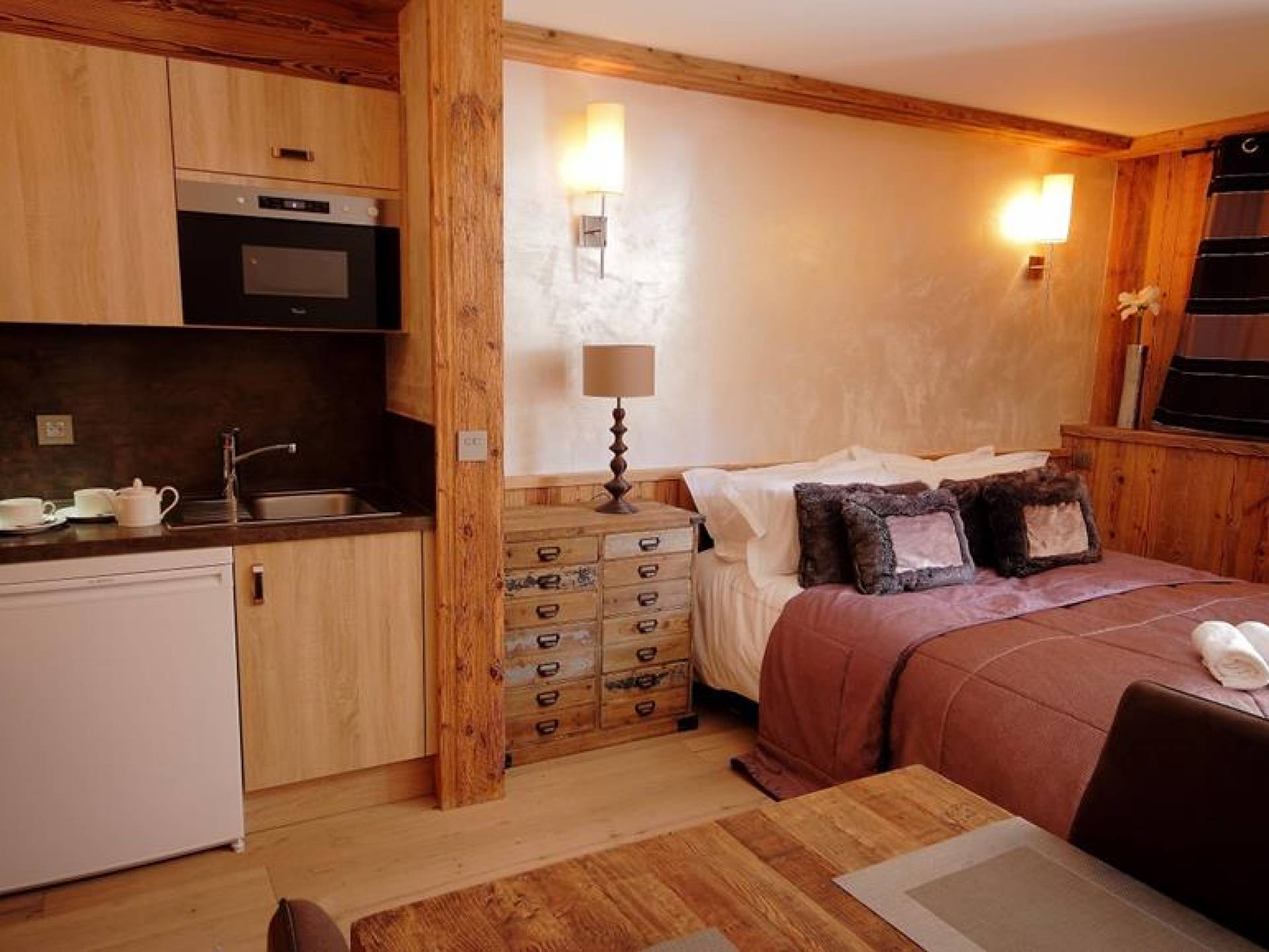 Le studio dispose également d'un balcon privé, d'un casier à skis, de draps, de serviettes, de peignoirs, d'articles de toilette de luxe et d'un sèche-cheveux. Le studio est disponible à la location individuellement. Alternativement, il peut être utilisé comme hébergement supplémentaire pour les réservations du Chalet St Christophe. Quel que soit votre choix, vous saurez que vous vivrez une expérience cinq étoiles qui rivalise même avec certains des meilleurs hôtels de la région.
