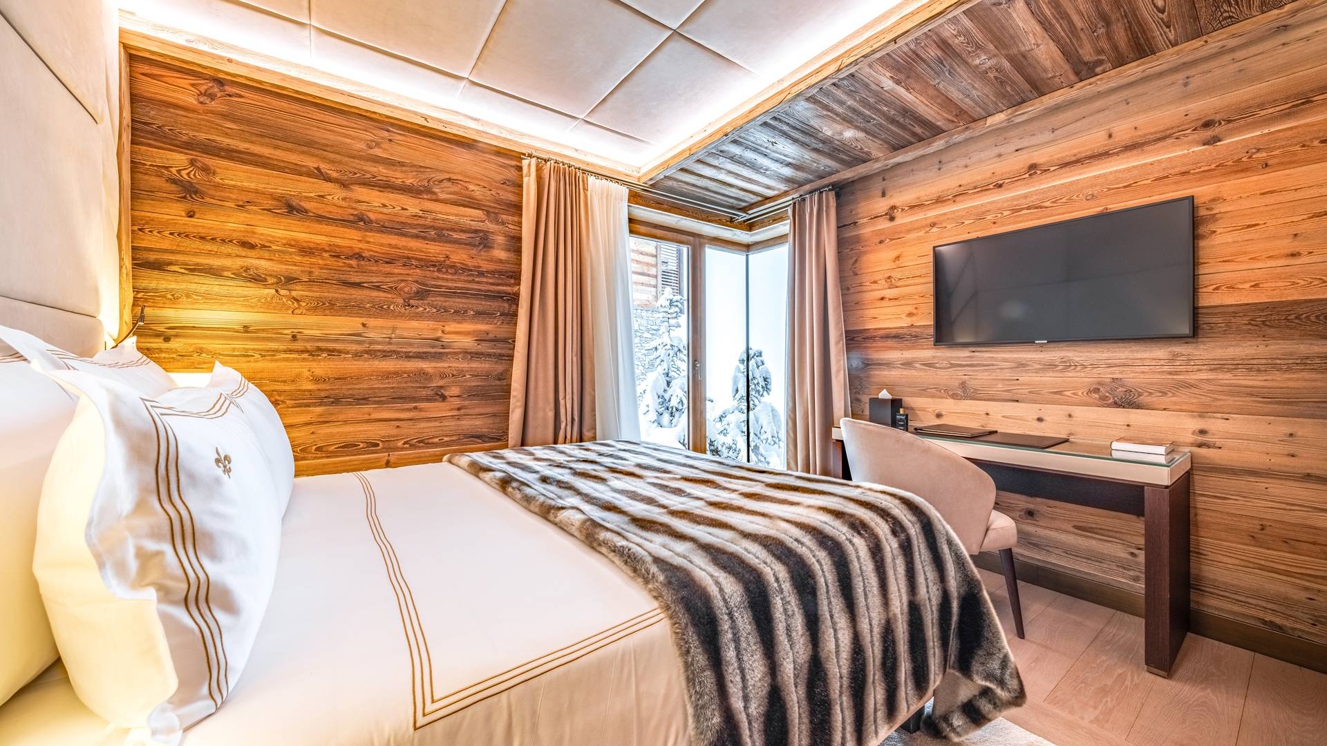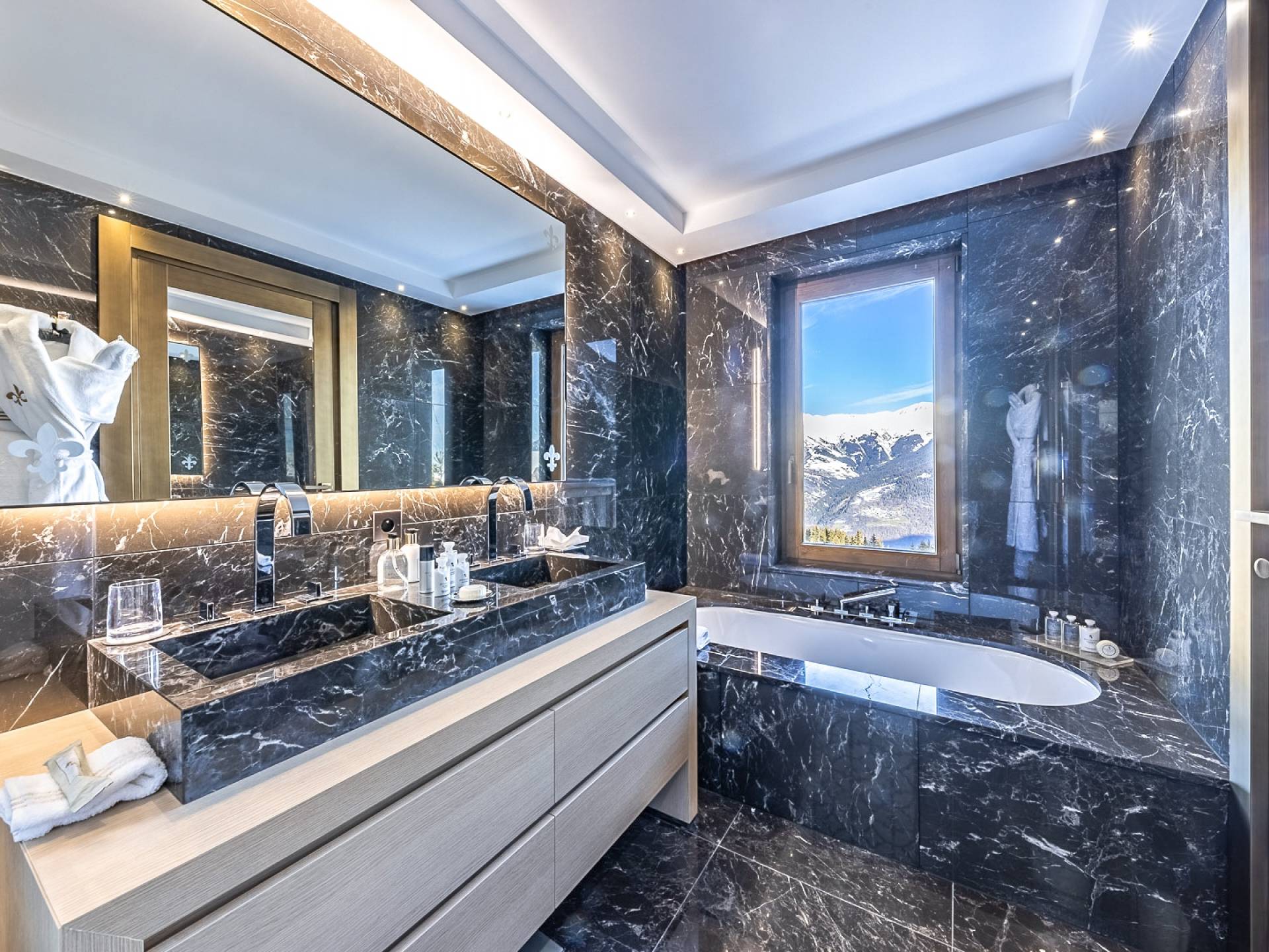 Chalet Ultima Courchevel - 5BD comprend 5 suites parentales avec salles de bains et dressings communicants. Les chalets de ce village de luxe offrent tous les services signatures liés à notre marque à la fleur de lys. Un concierge, un chauffeur, une gouvernante et même un chef privé, tous à votre disposition pour assurer aux clients un service cinq étoiles dans l'intimité d'un magnifique chalet. Avec la qualité et le design qui sautent aux yeux, Ultima Courchevel maintiendra les codes et les visions du concept de la marque. Les matériaux les plus rares et les plus nobles ont été méticuleusement sélectionnés pour créer une atmosphère ultra-luxueuse pour les invités de ce complexe sans limites.