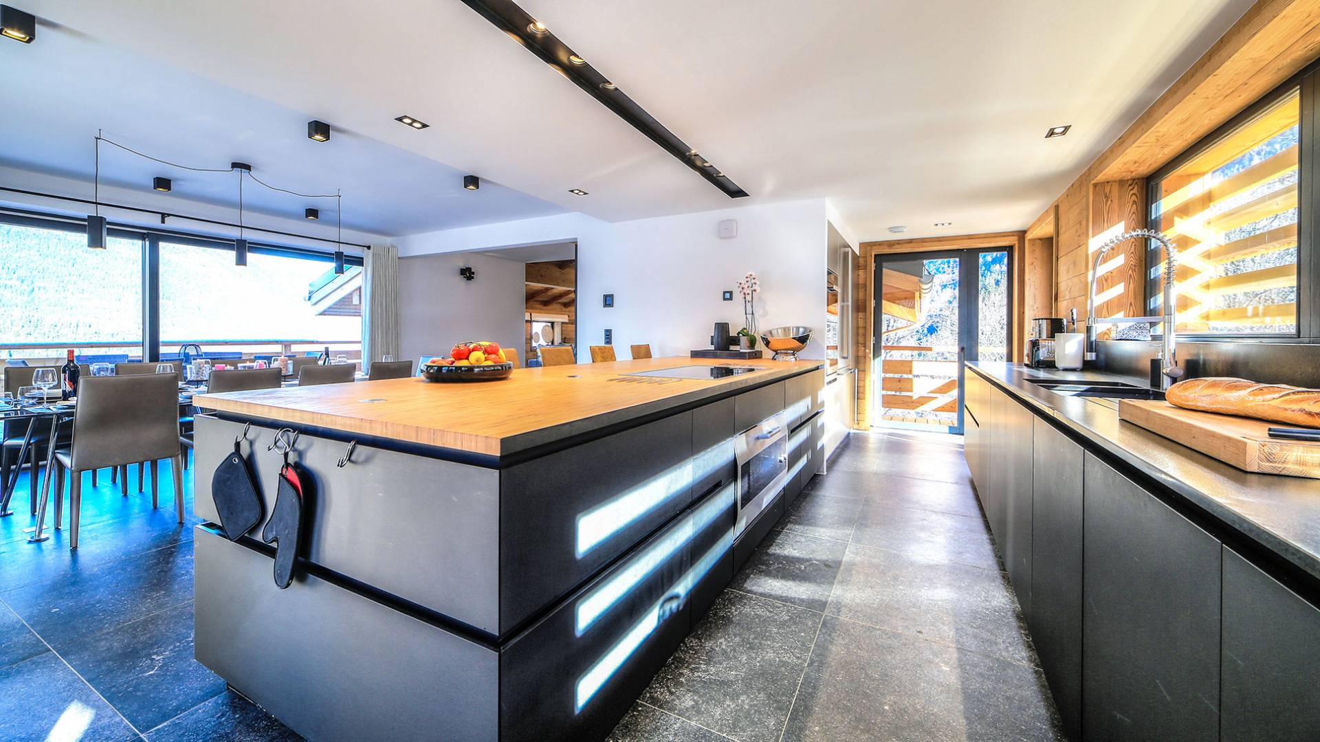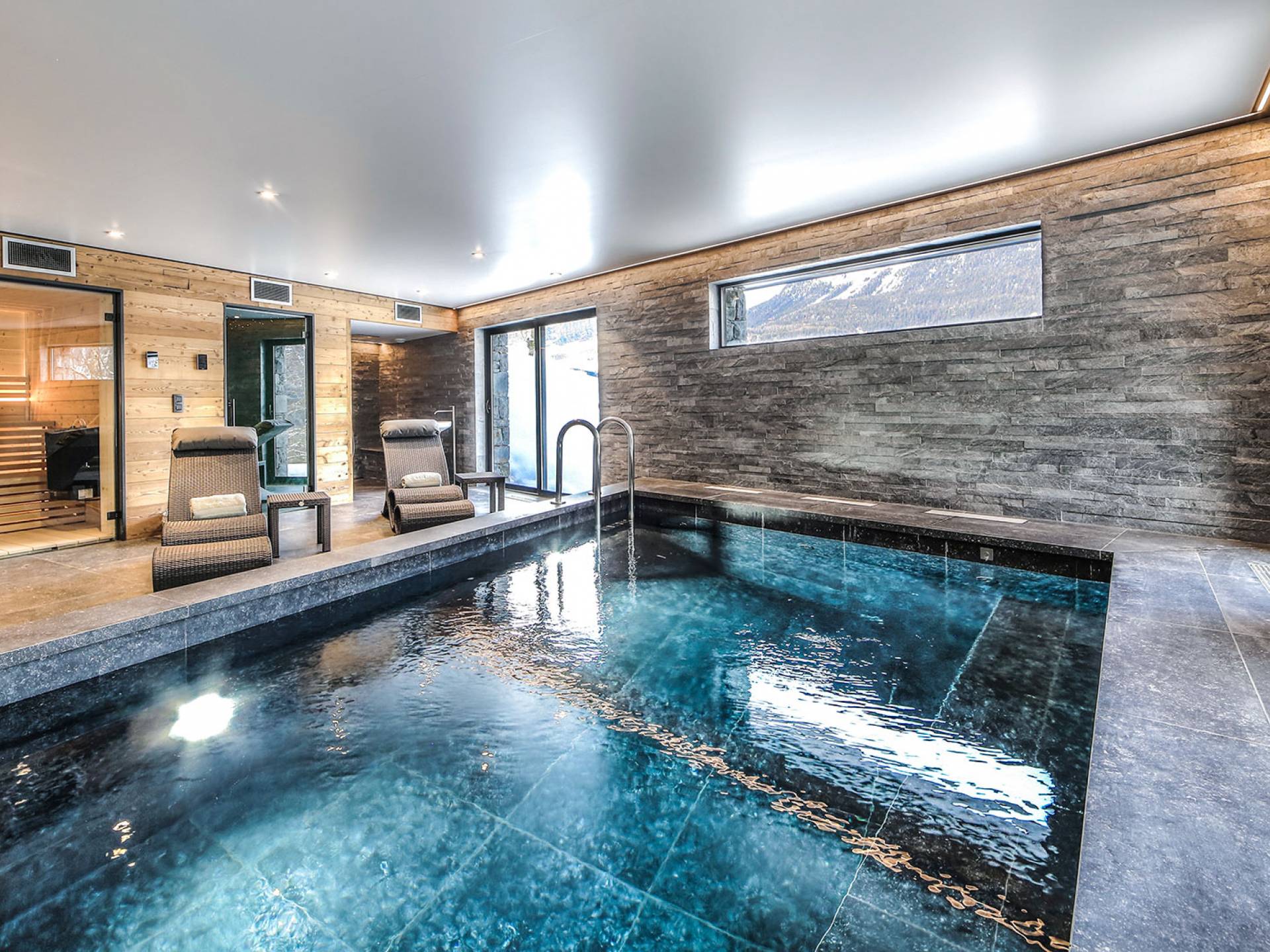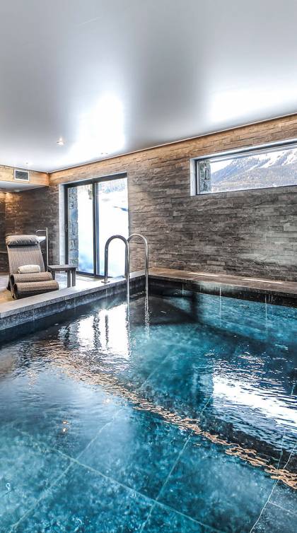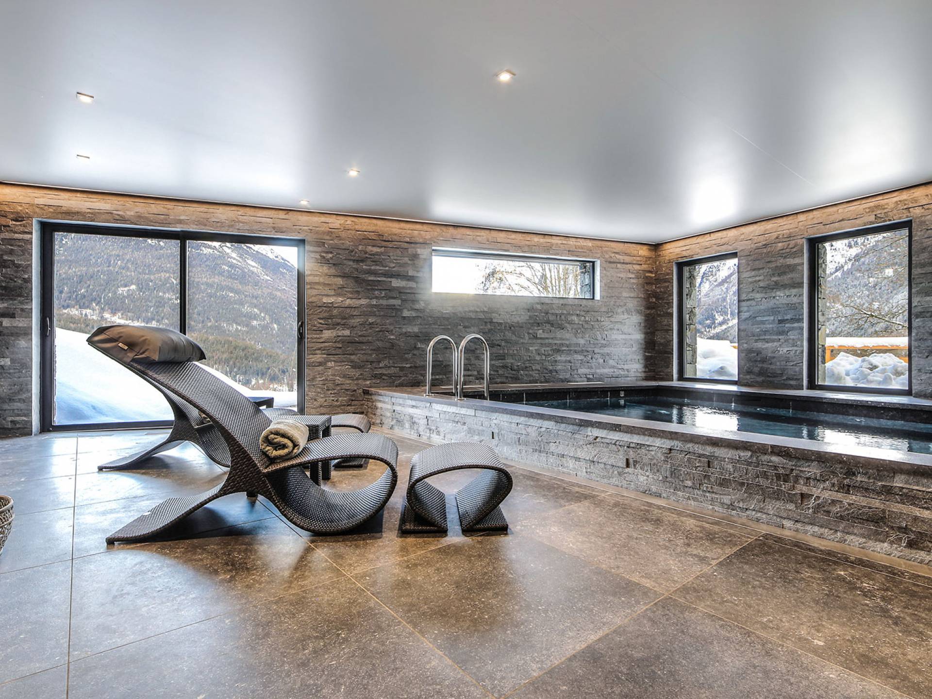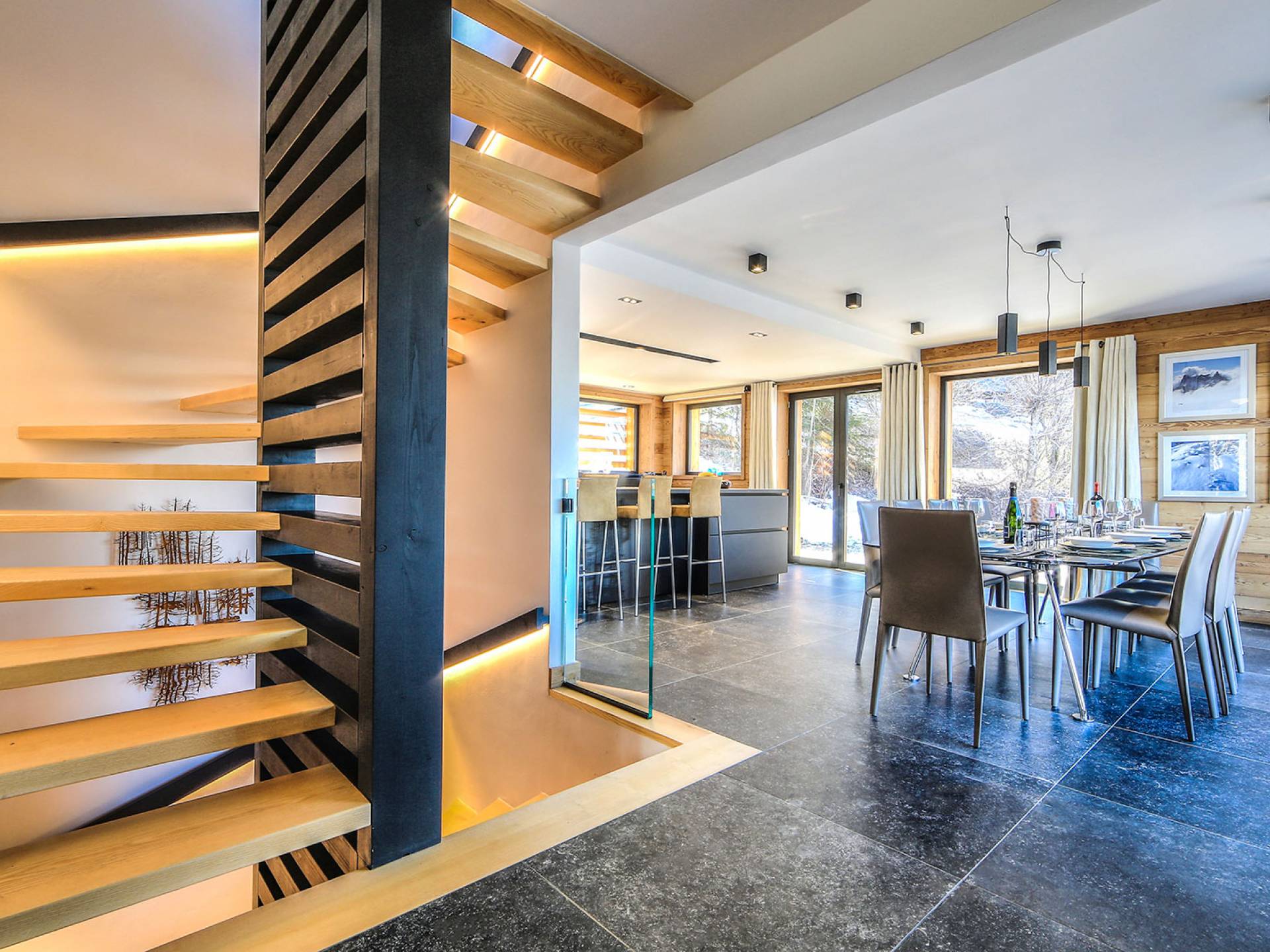 Chalet Kuma Chamonix dispose de 372 mètres carrés d'espace de vie de luxe tout simplement sublime. Il dispose de 5 chambres pouvant accueillir jusqu'à 12 personnes (4 chambres doubles et 1 chambre avec 4 lits superposés adultes), une cuisine ultramoderne, un très grand séjour ouvert avec cheminée, un salon TV avec sa cheminée Starck s'ouvrant sur une terrasse privée avec une vue fantastique tout autour. Le chalet Kuma offre également une caractéristique rare : un espace spa magnifiquement conçu avec un sauna, un hammam (hammam), une grande douche et une terrasse, et une petite piscine intérieure avec une vue magnifique.