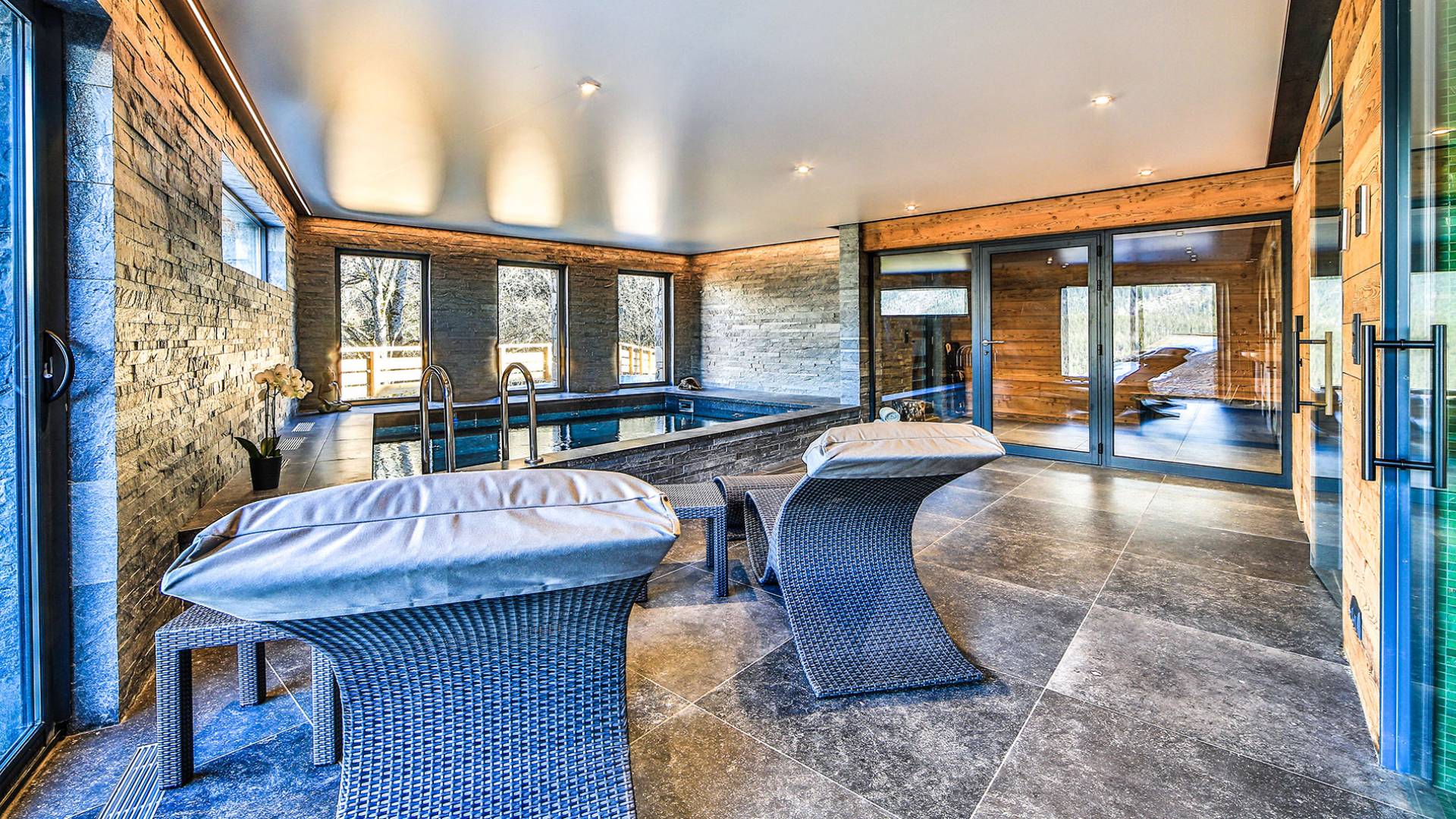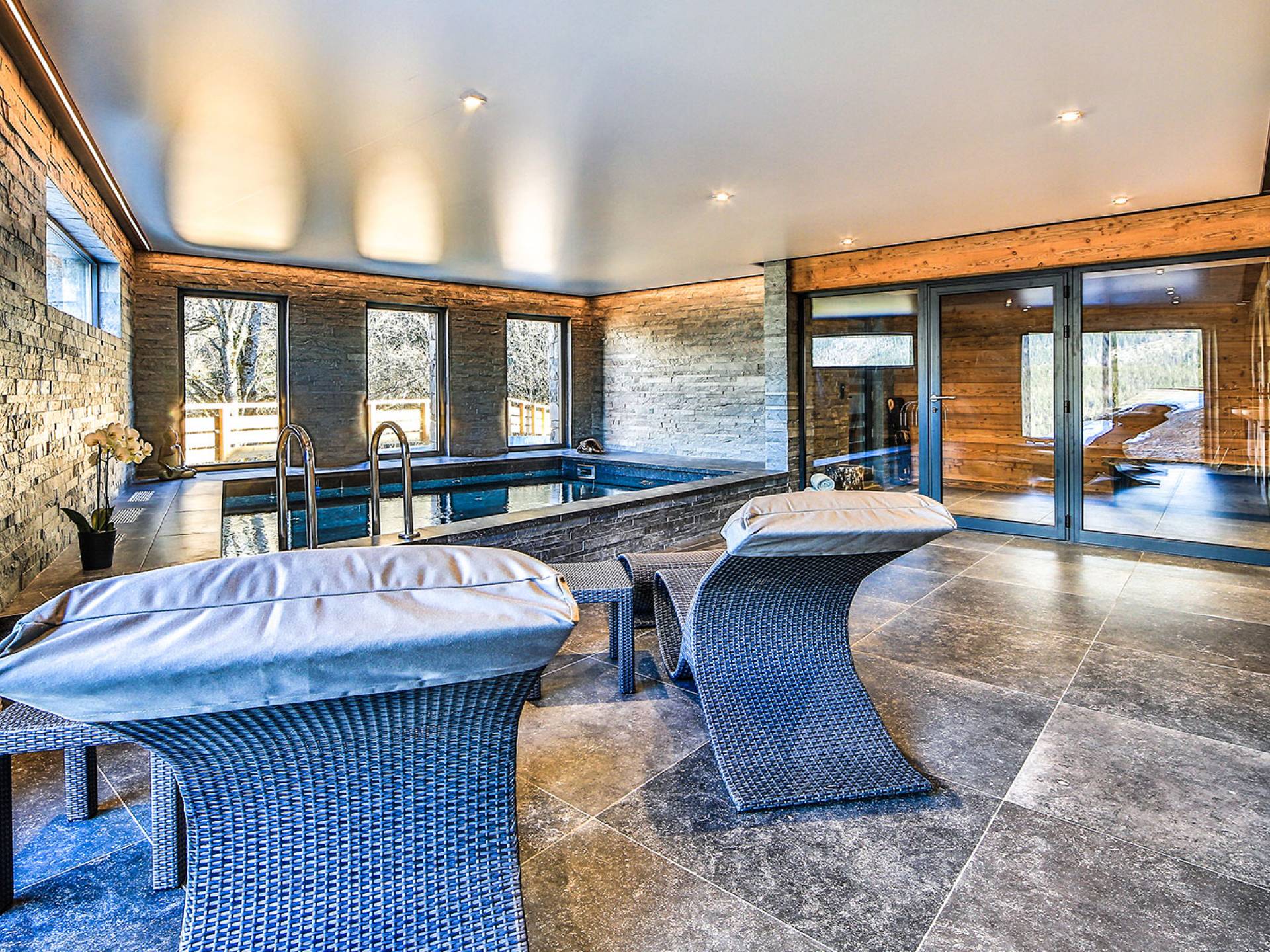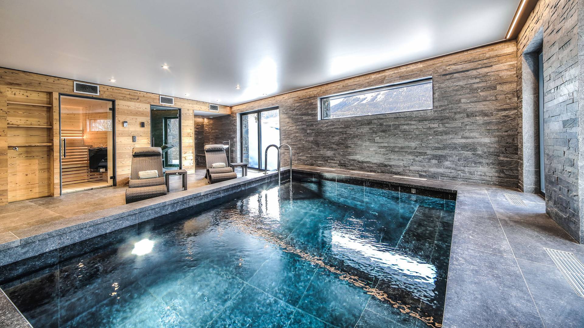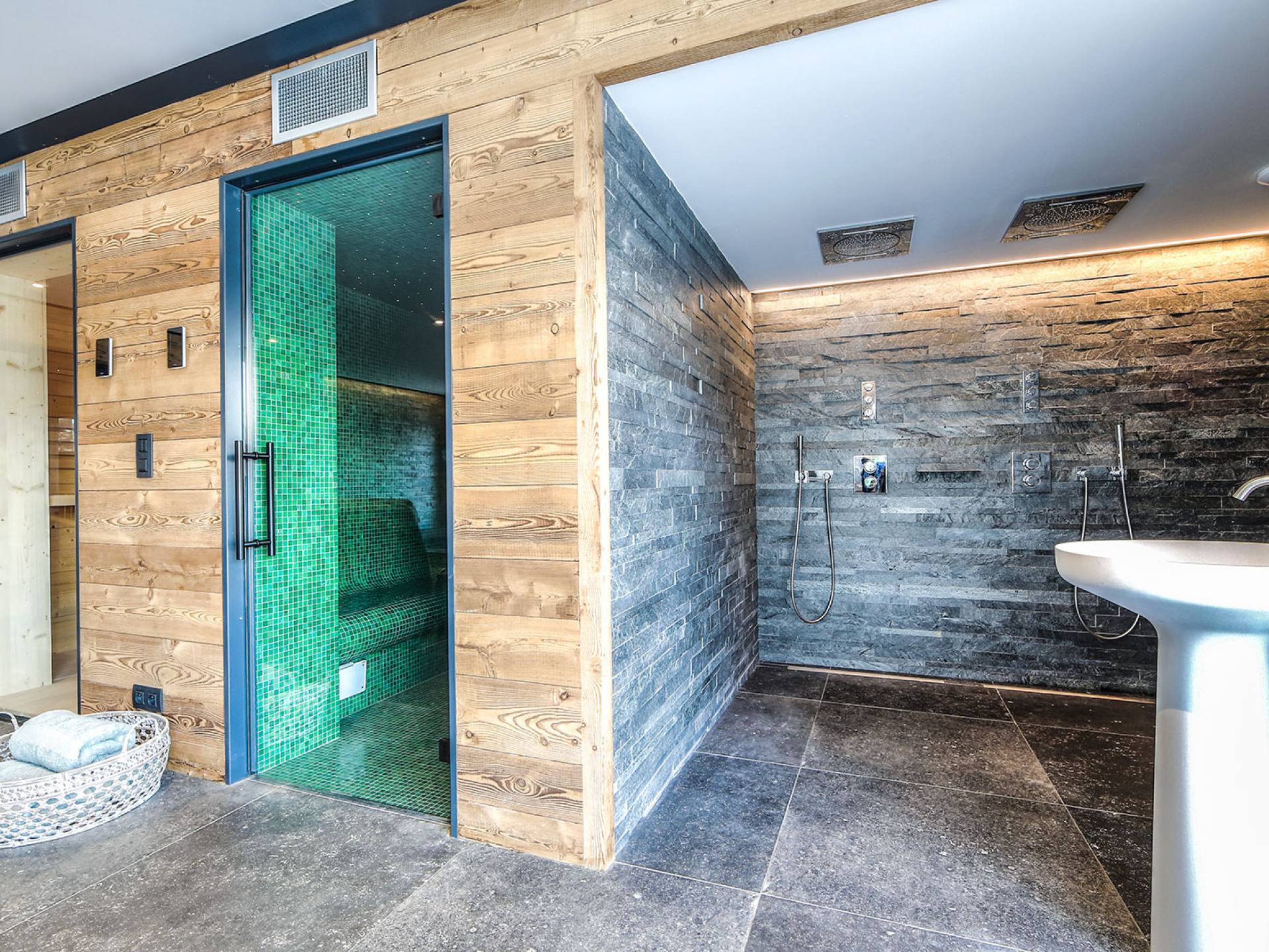 Chalet Kuma Chamonix dispose de 372 mètres carrés d'espace de vie de luxe tout simplement sublime. Il dispose de 5 chambres pouvant accueillir jusqu'à 12 personnes (4 chambres doubles et 1 chambre avec 4 lits superposés adultes), une cuisine ultramoderne, un très grand séjour ouvert avec cheminée, un salon TV avec sa cheminée Starck s'ouvrant sur une terrasse privée avec une vue fantastique tout autour. Le chalet Kuma offre également une caractéristique rare : un espace spa magnifiquement conçu avec un sauna, un hammam (hammam), une grande douche et une terrasse, et une petite piscine intérieure avec une vue magnifique.