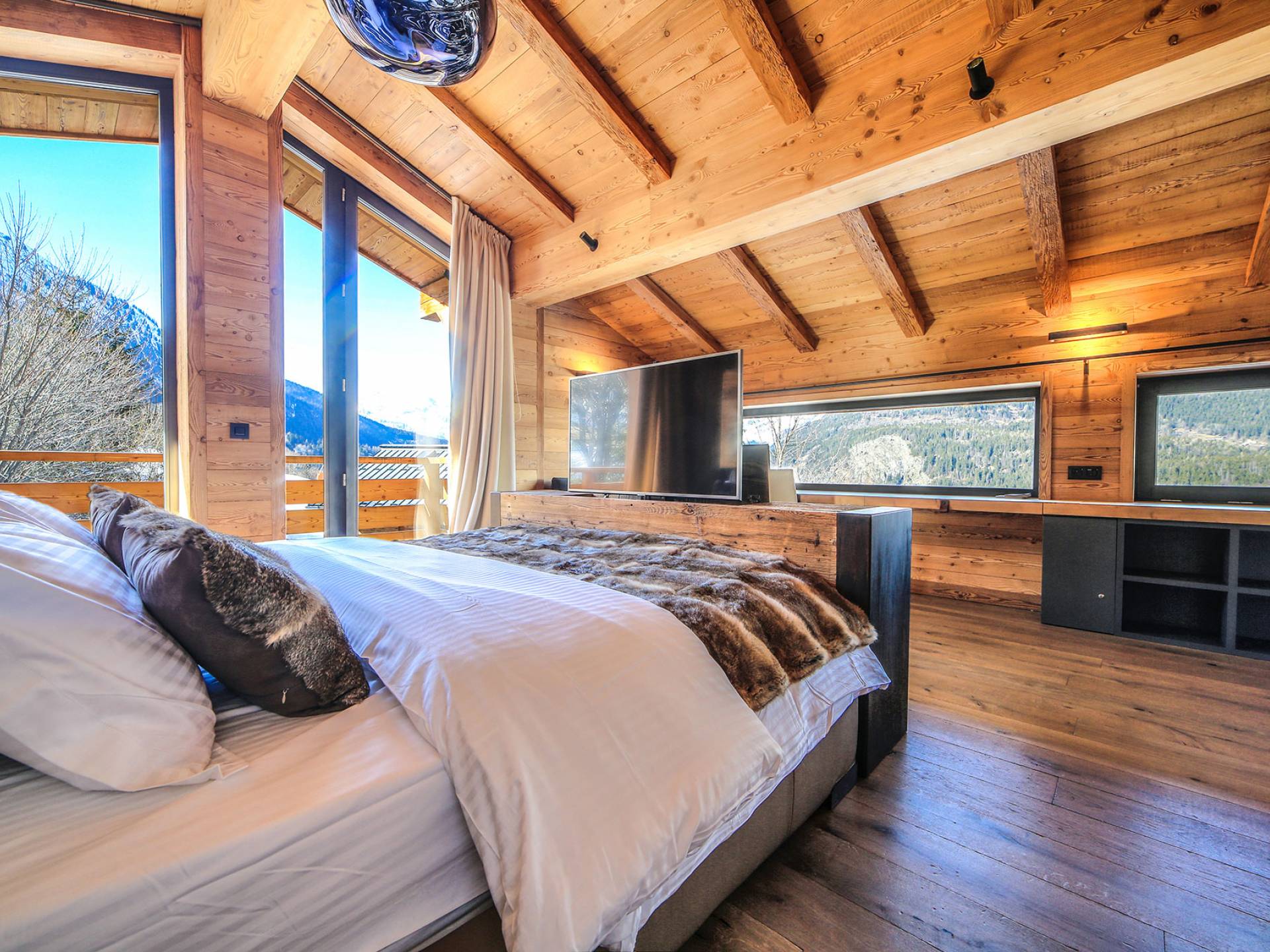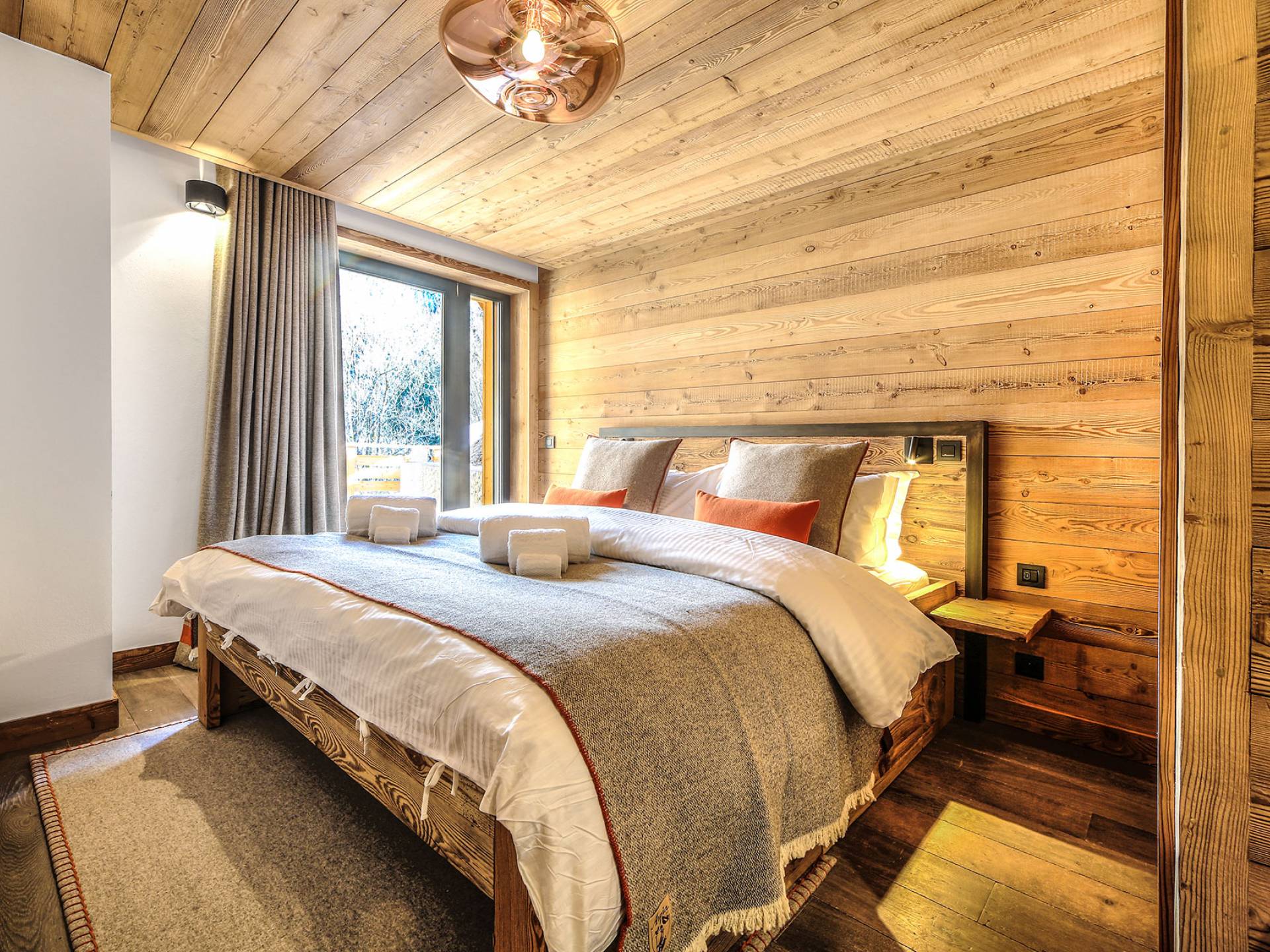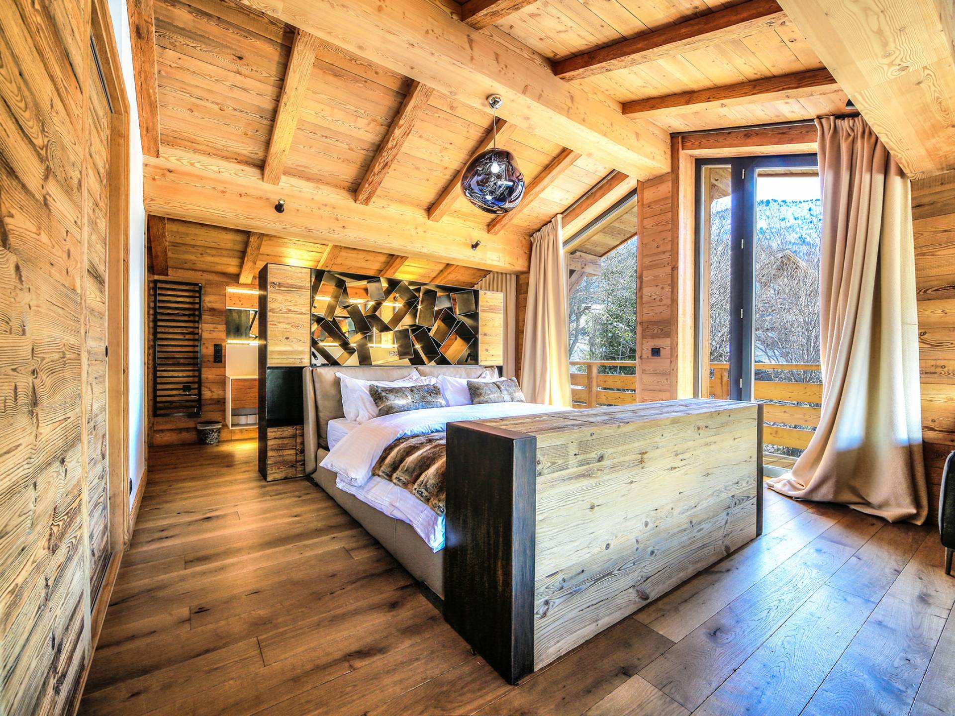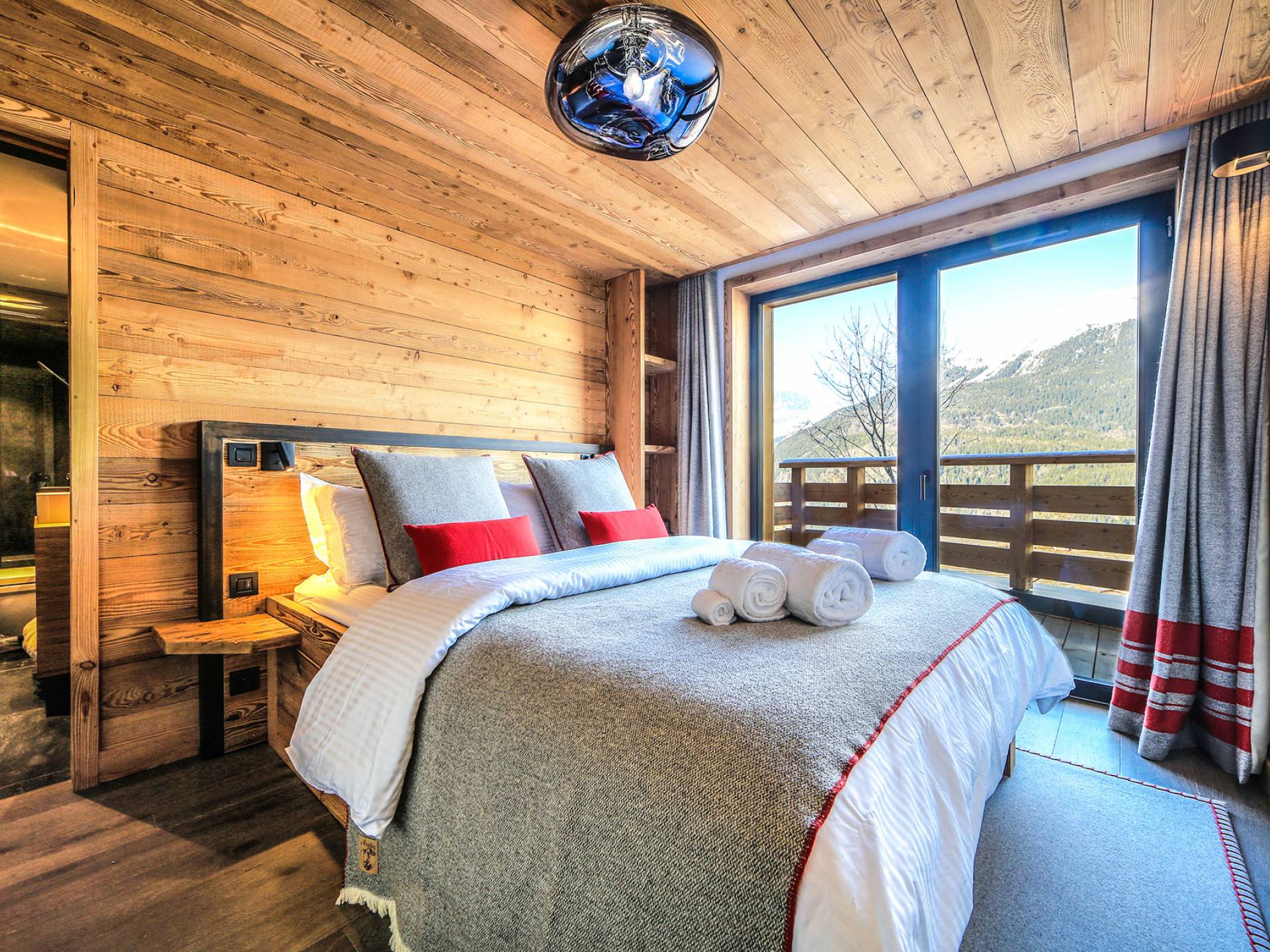 Chalet Kuma Chamonix est un chalet skis aux pieds à l'architecture vraiment unique avec sa suite parentale opulente, des vues incroyables et un bel espace spa comprenant un sauna, un hammam et une piscine.