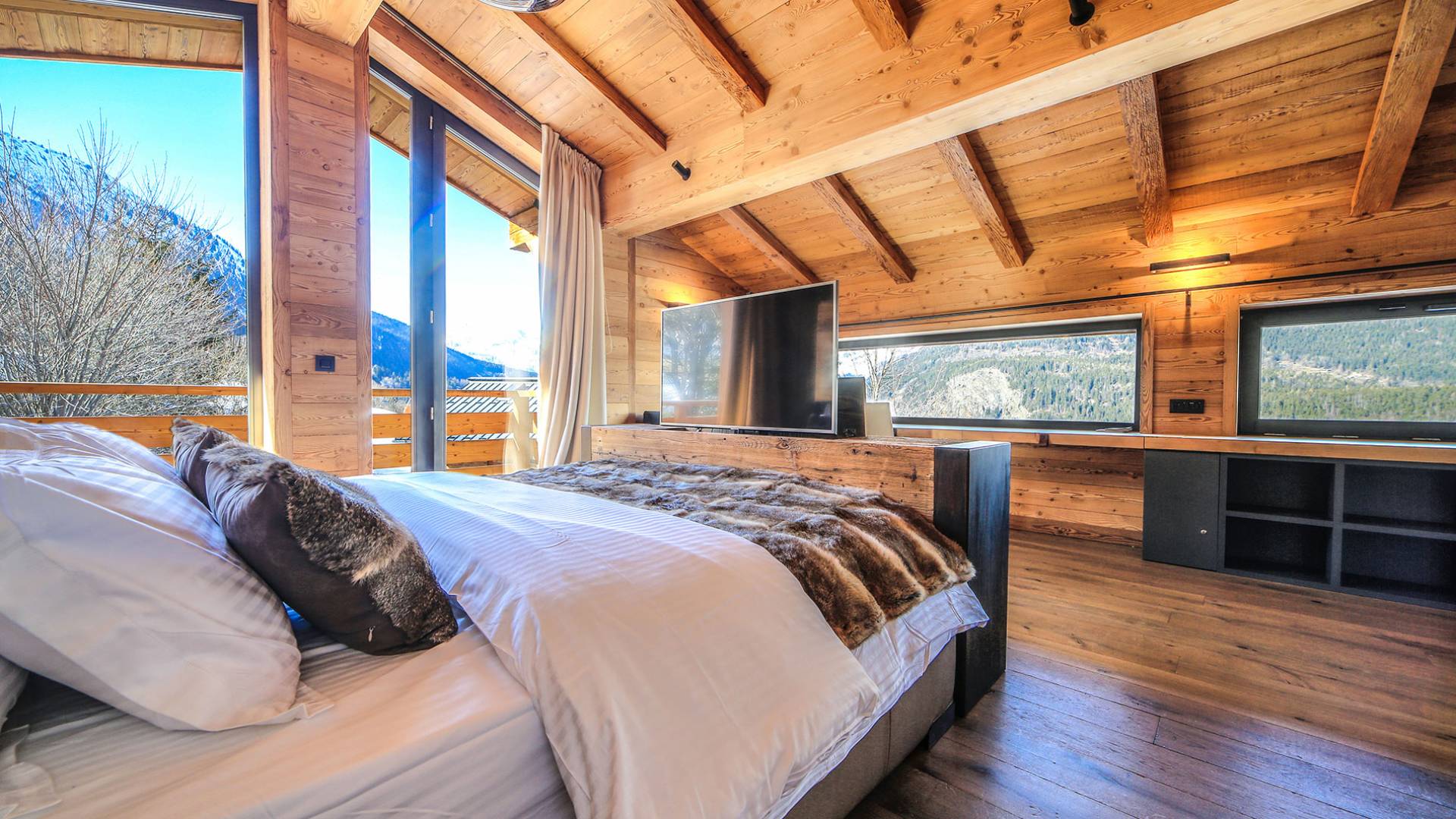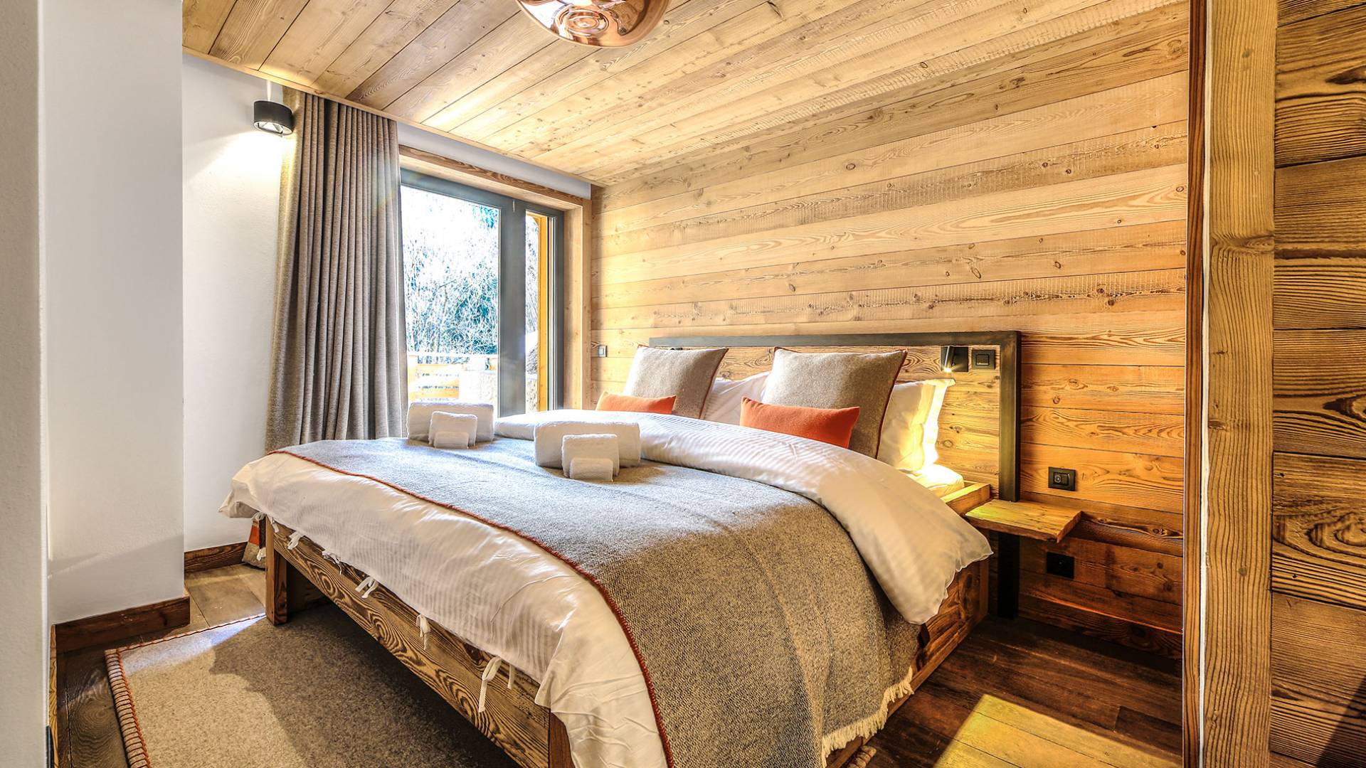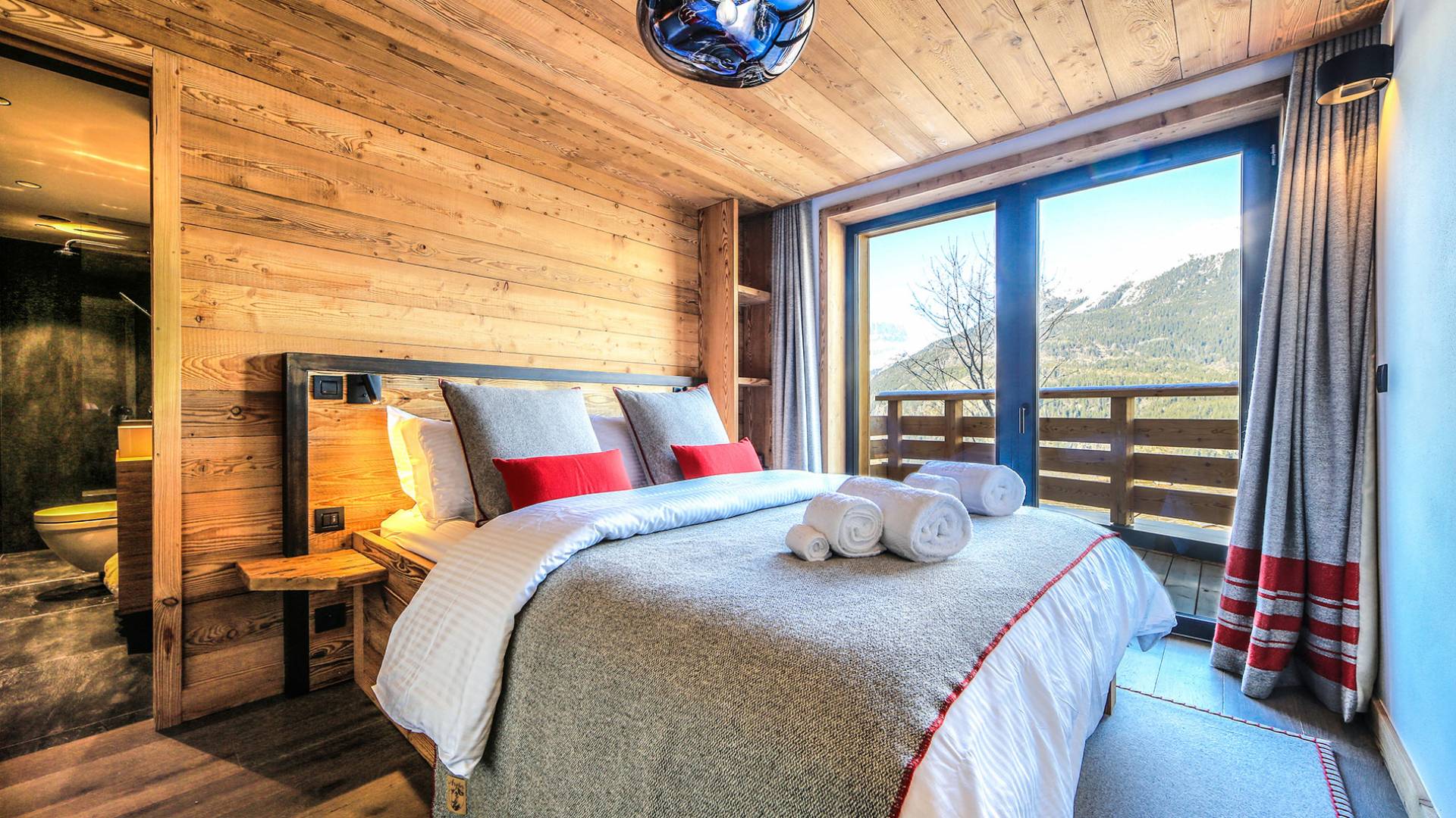 Chalet Kuma Chamonix est un chalet skis aux pieds à l'architecture vraiment unique avec sa suite parentale opulente, des vues incroyables et un bel espace spa comprenant un sauna, un hammam et une piscine.